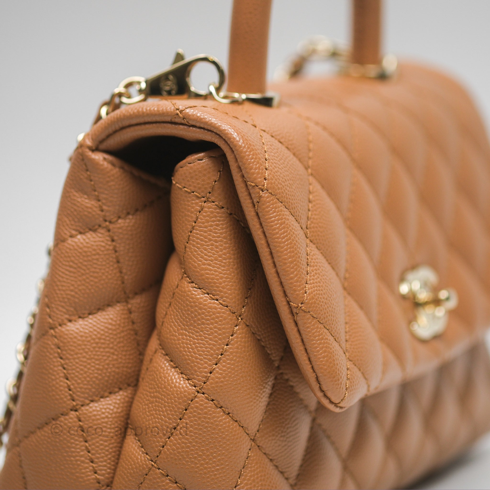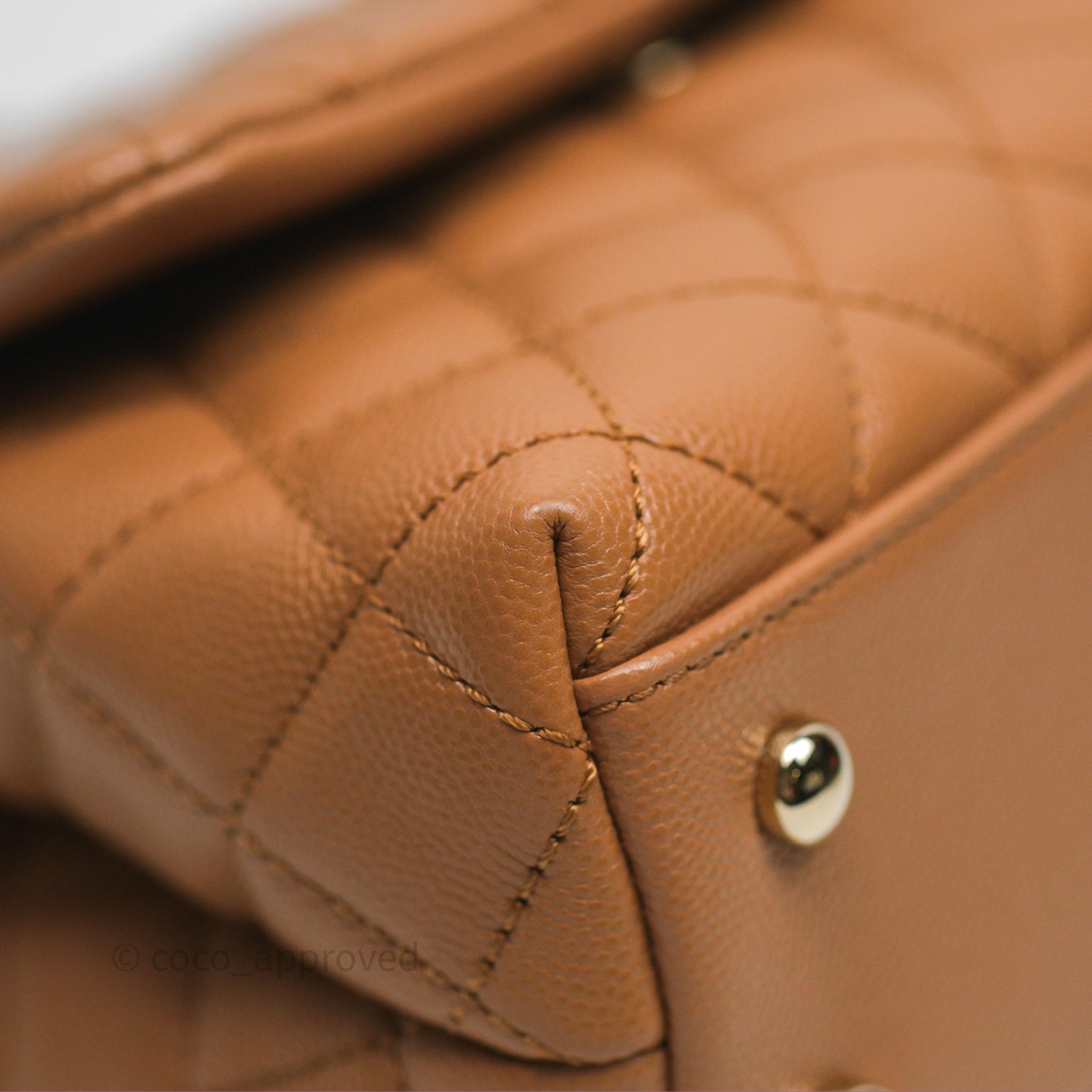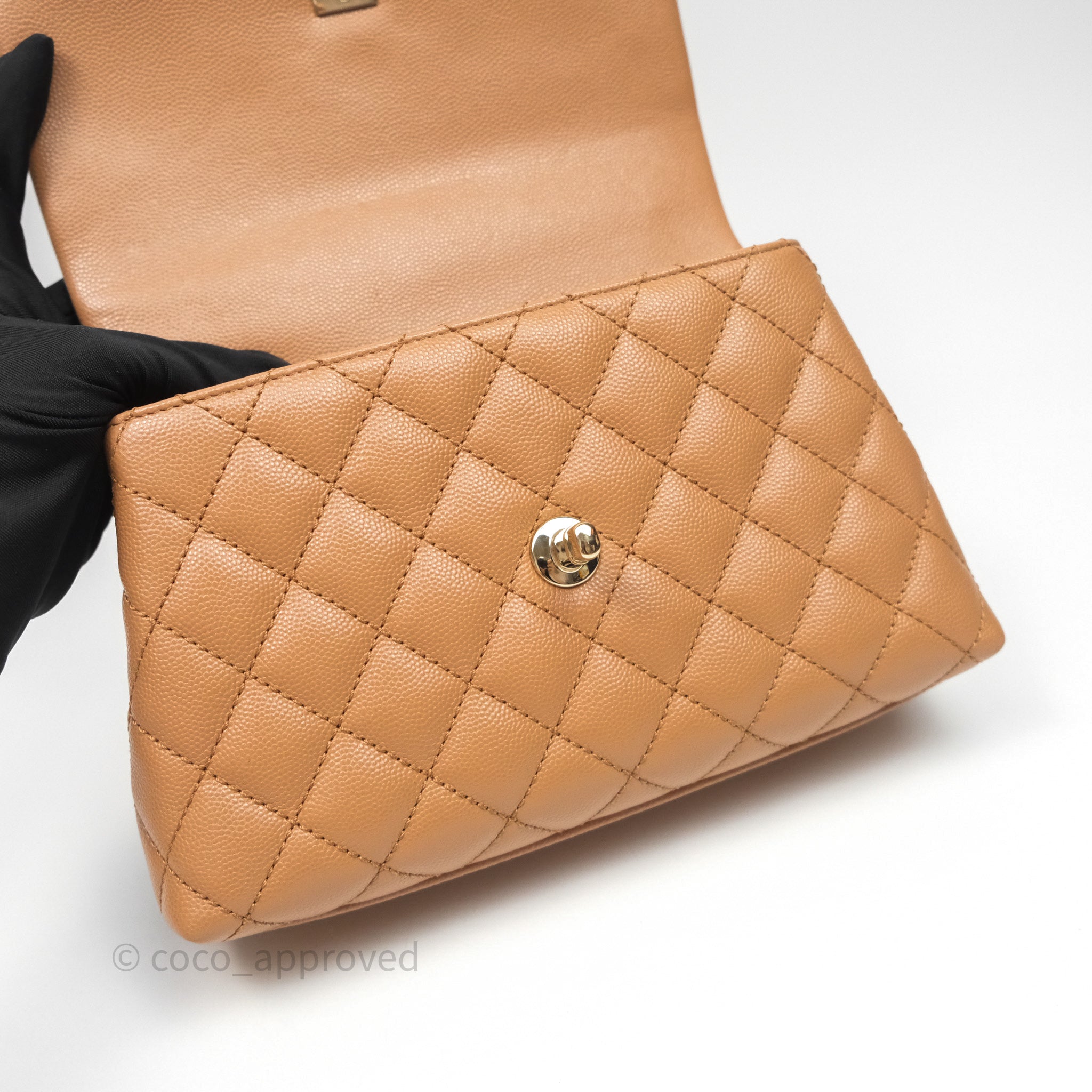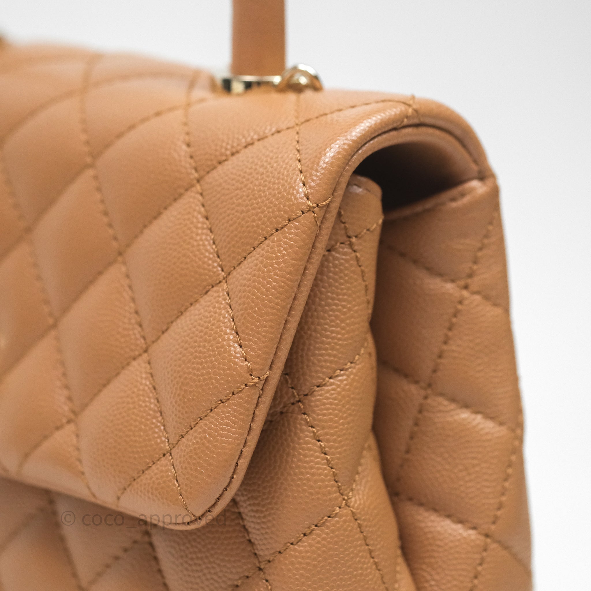 Chanel Small Coco Handle Dark Beige Caramel Caviar Gold Hardware