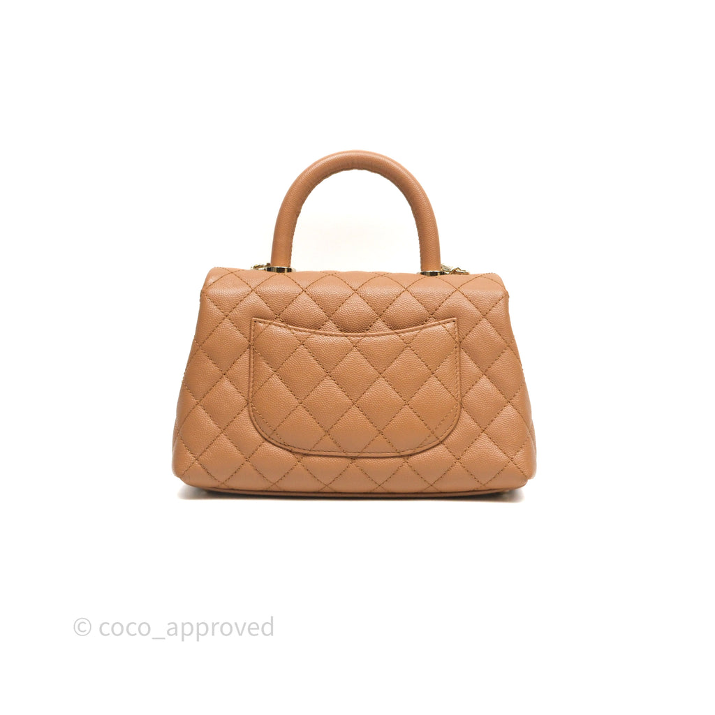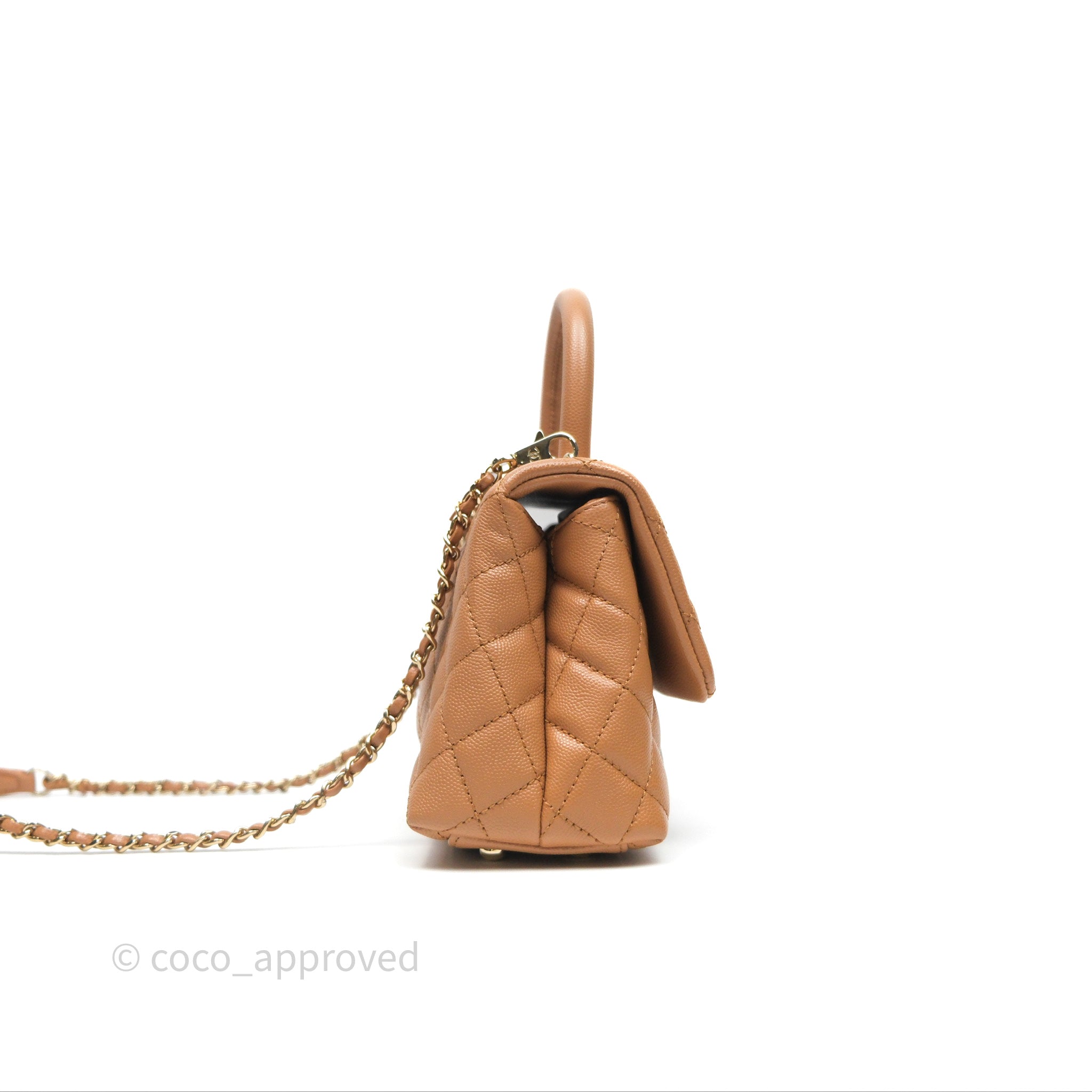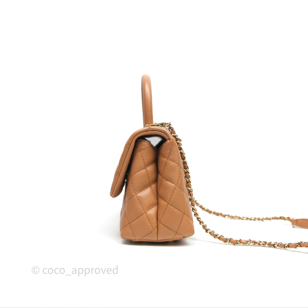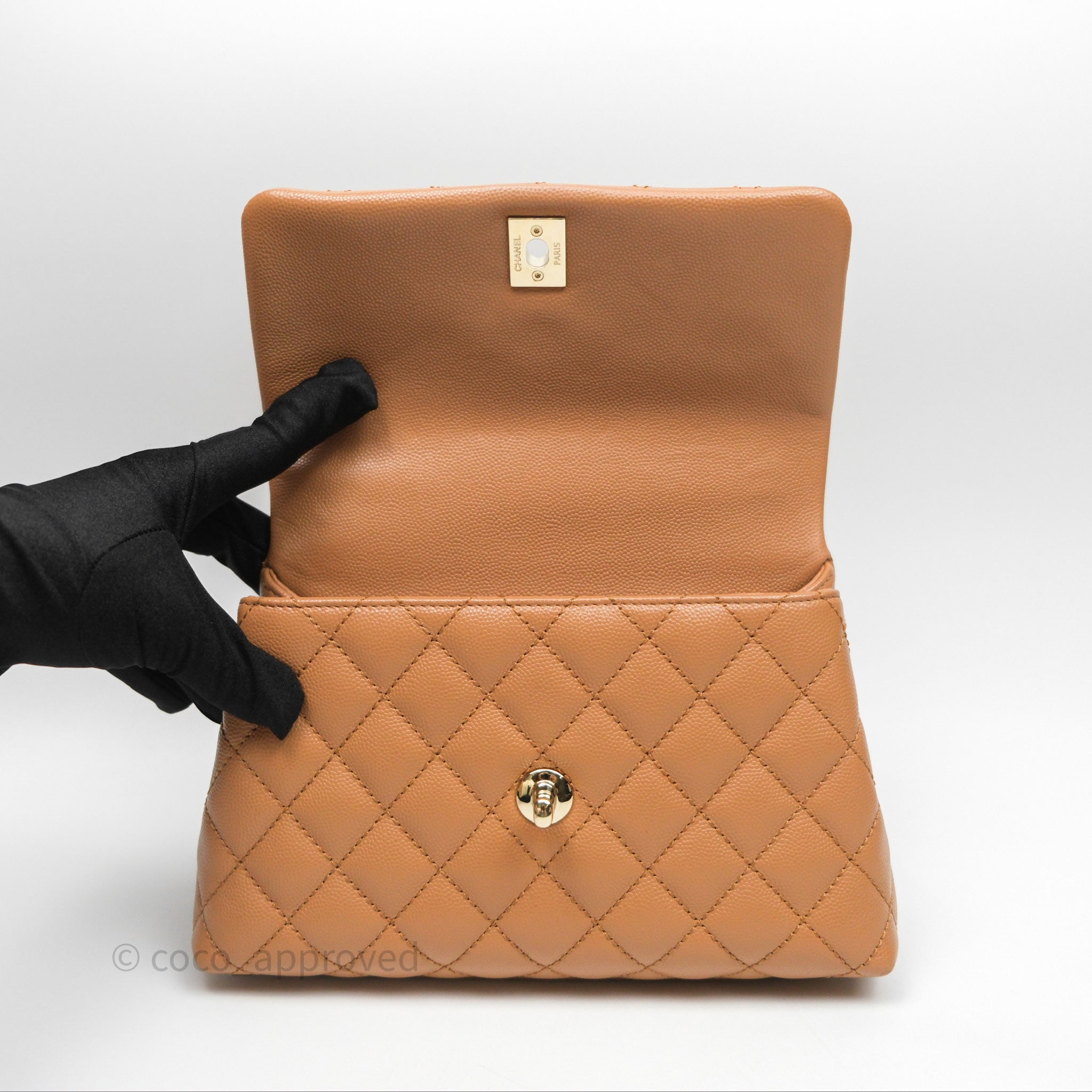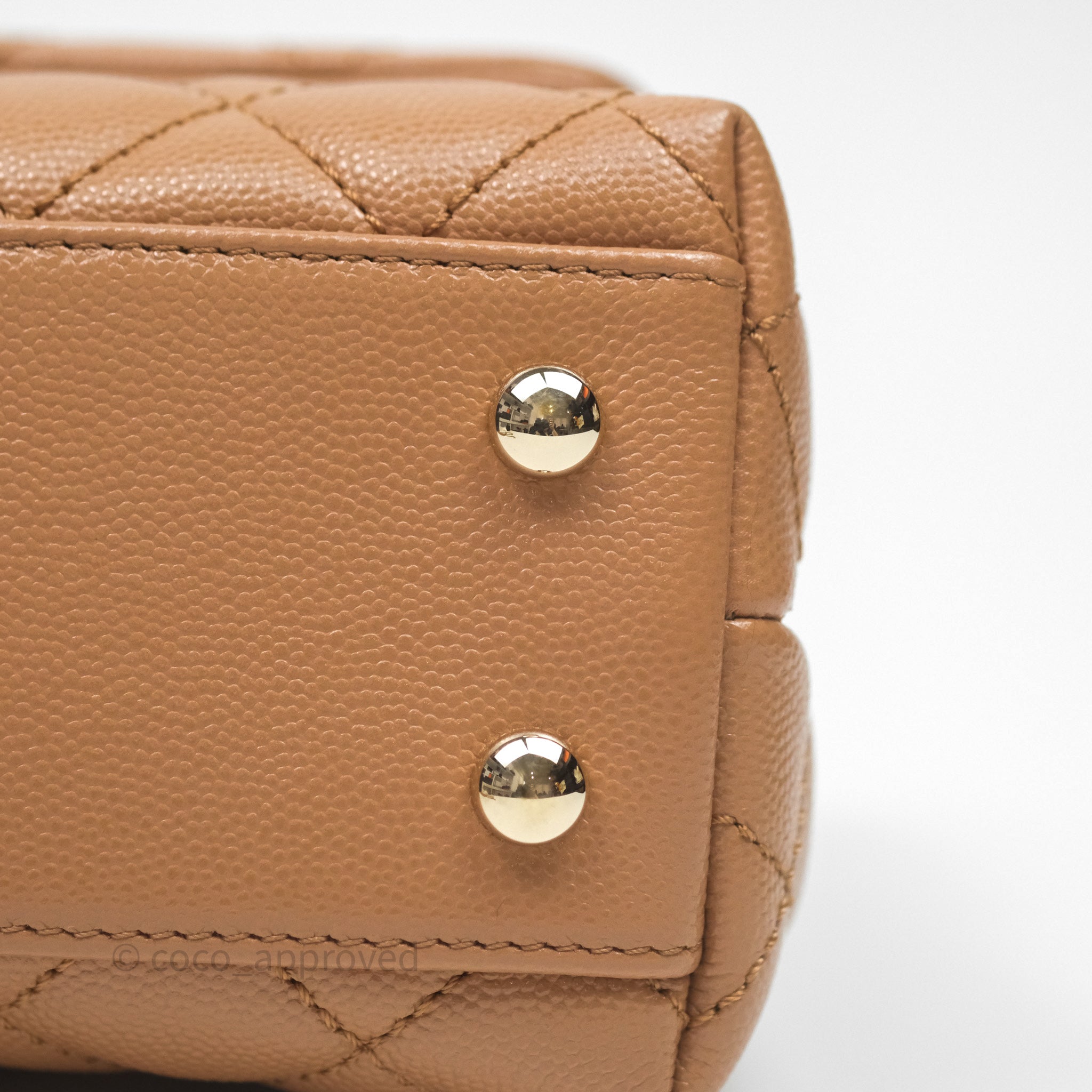 Chanel Small Coco Handle Dark Beige Caramel Caviar Gold Hardware