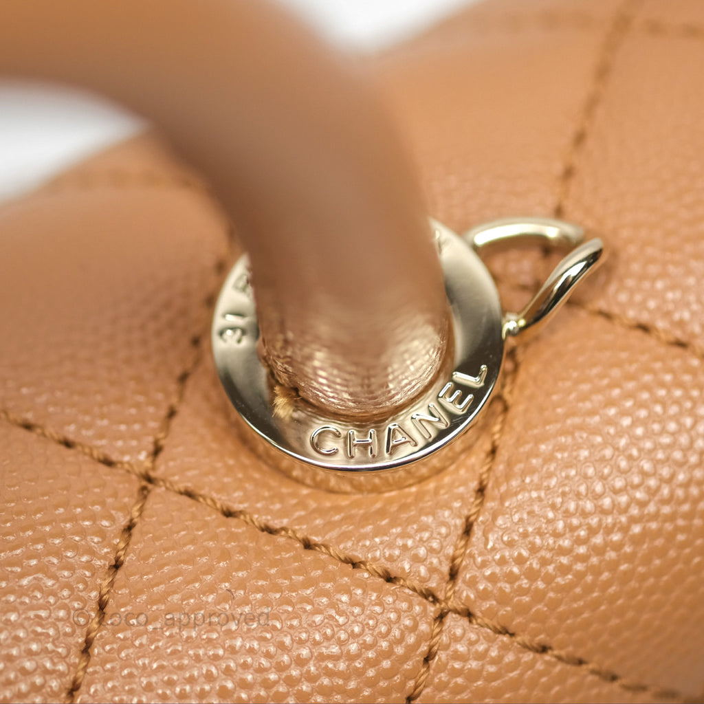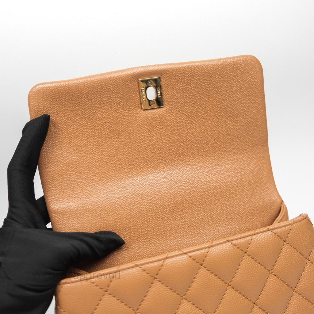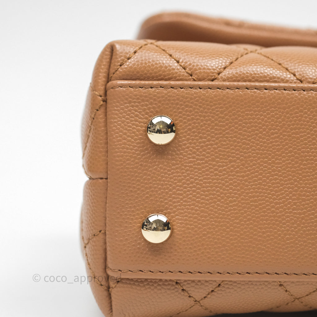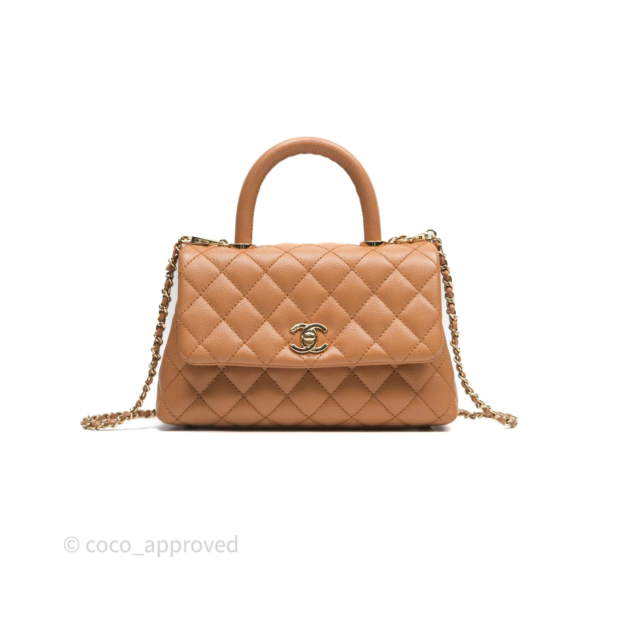 Chanel Small Coco Handle Dark Beige Caramel Caviar Gold Hardware