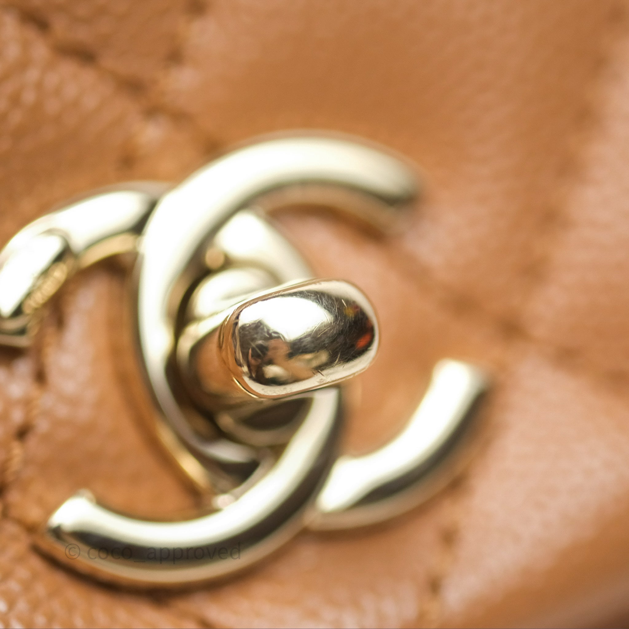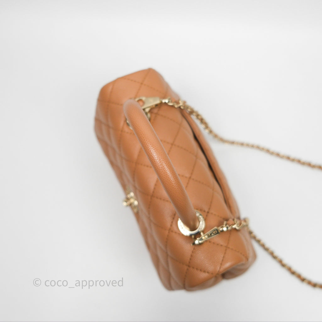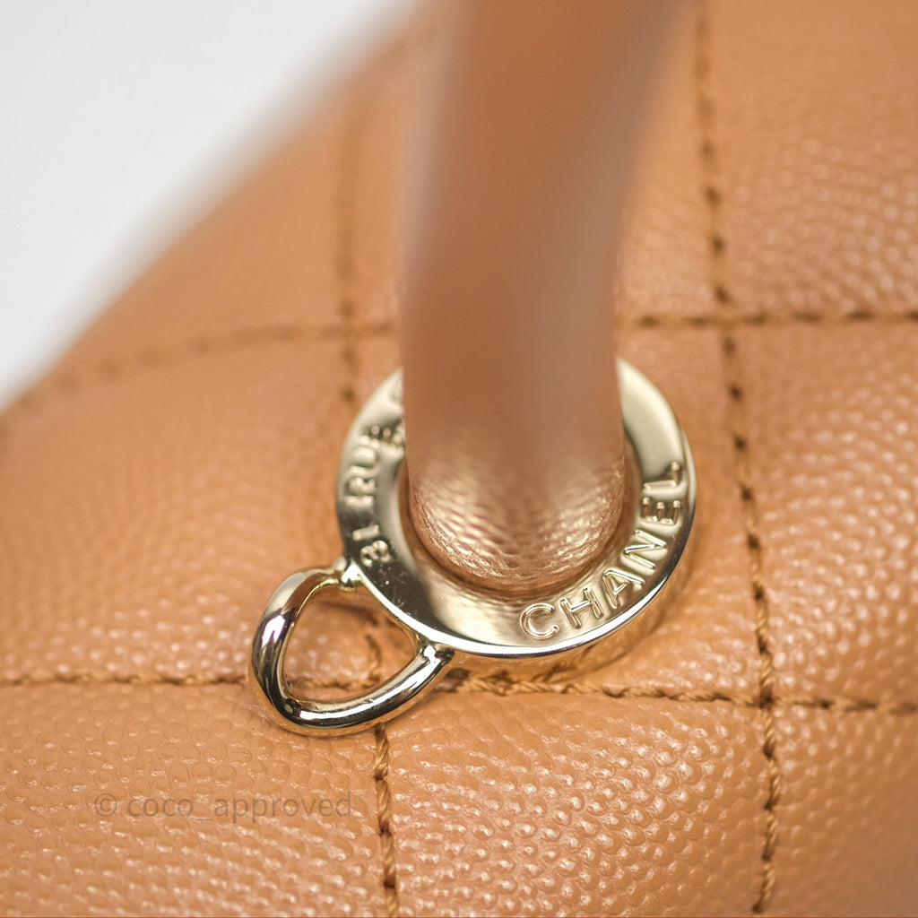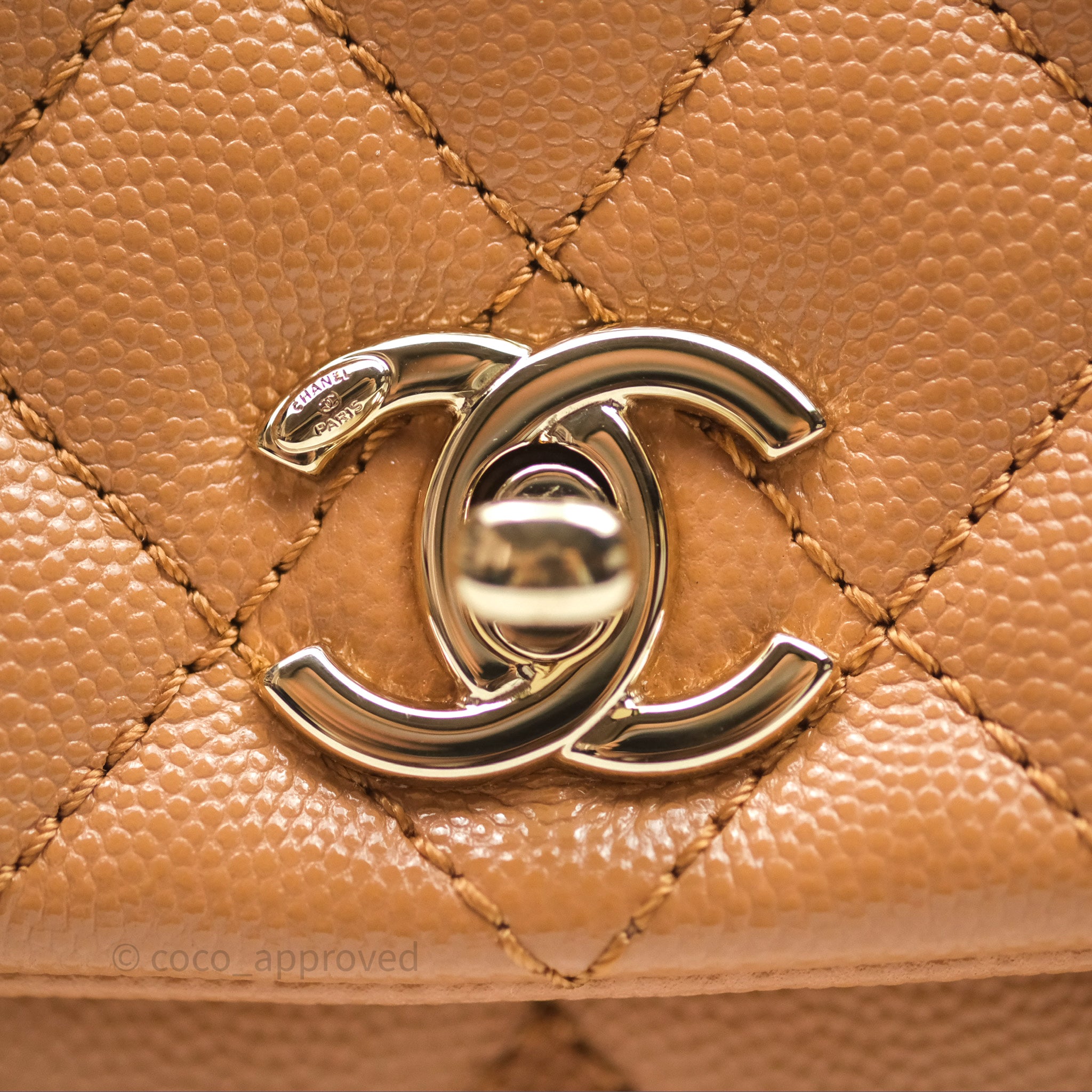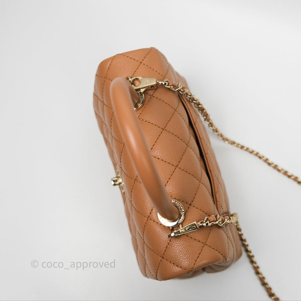 Chanel Small Coco Handle Dark Beige Caramel Caviar Gold Hardware