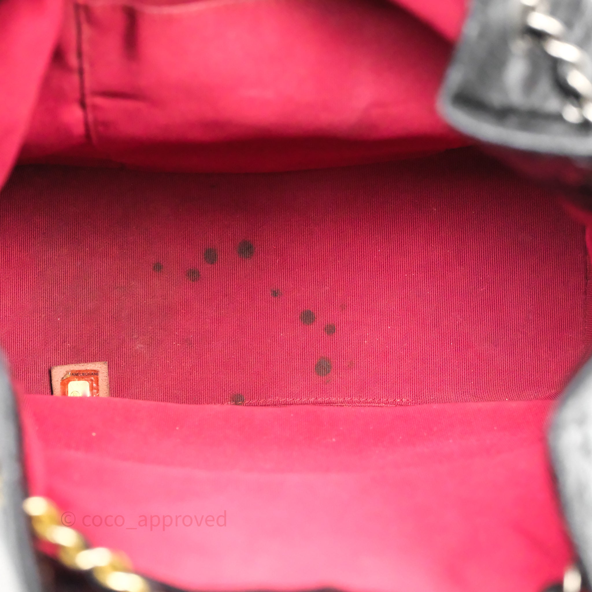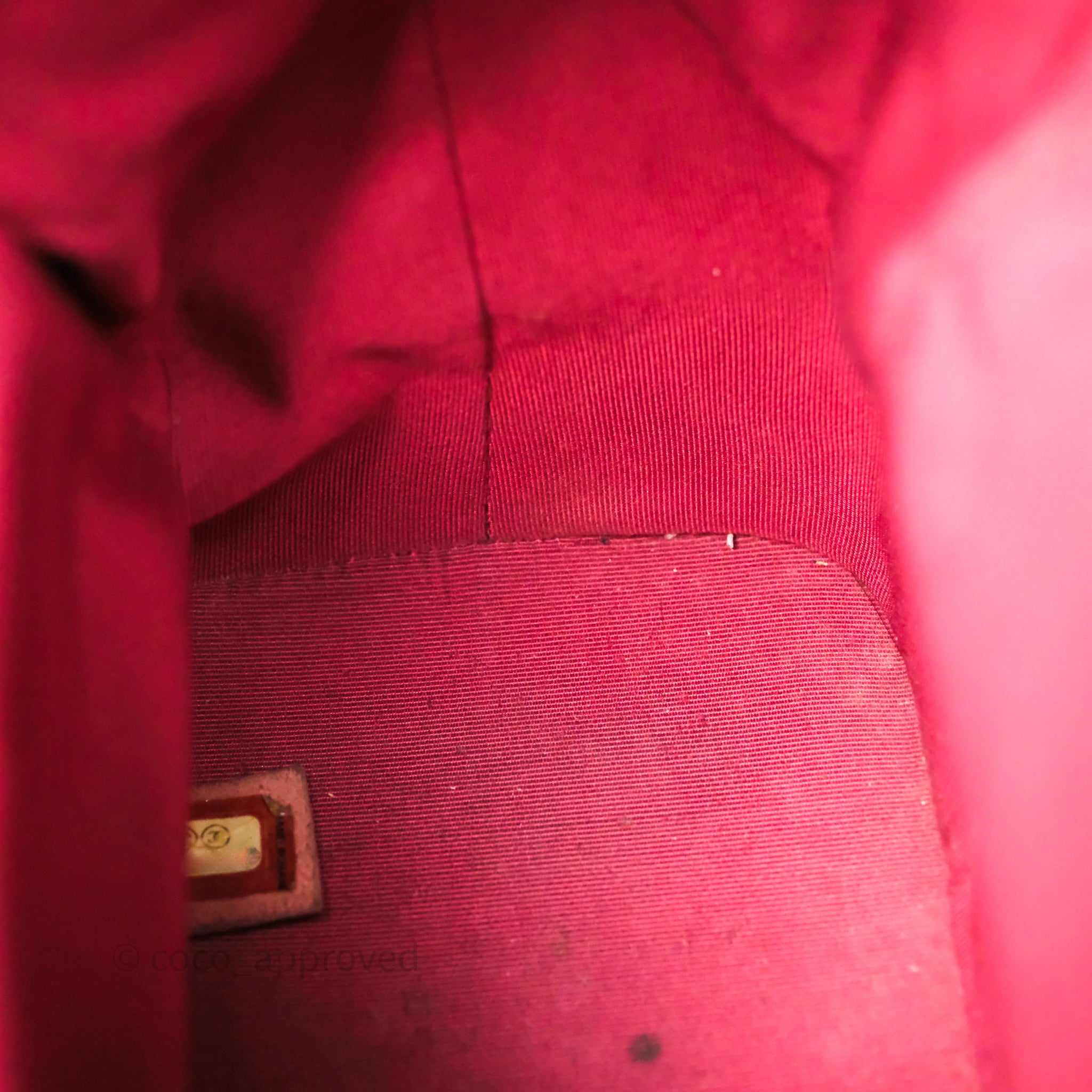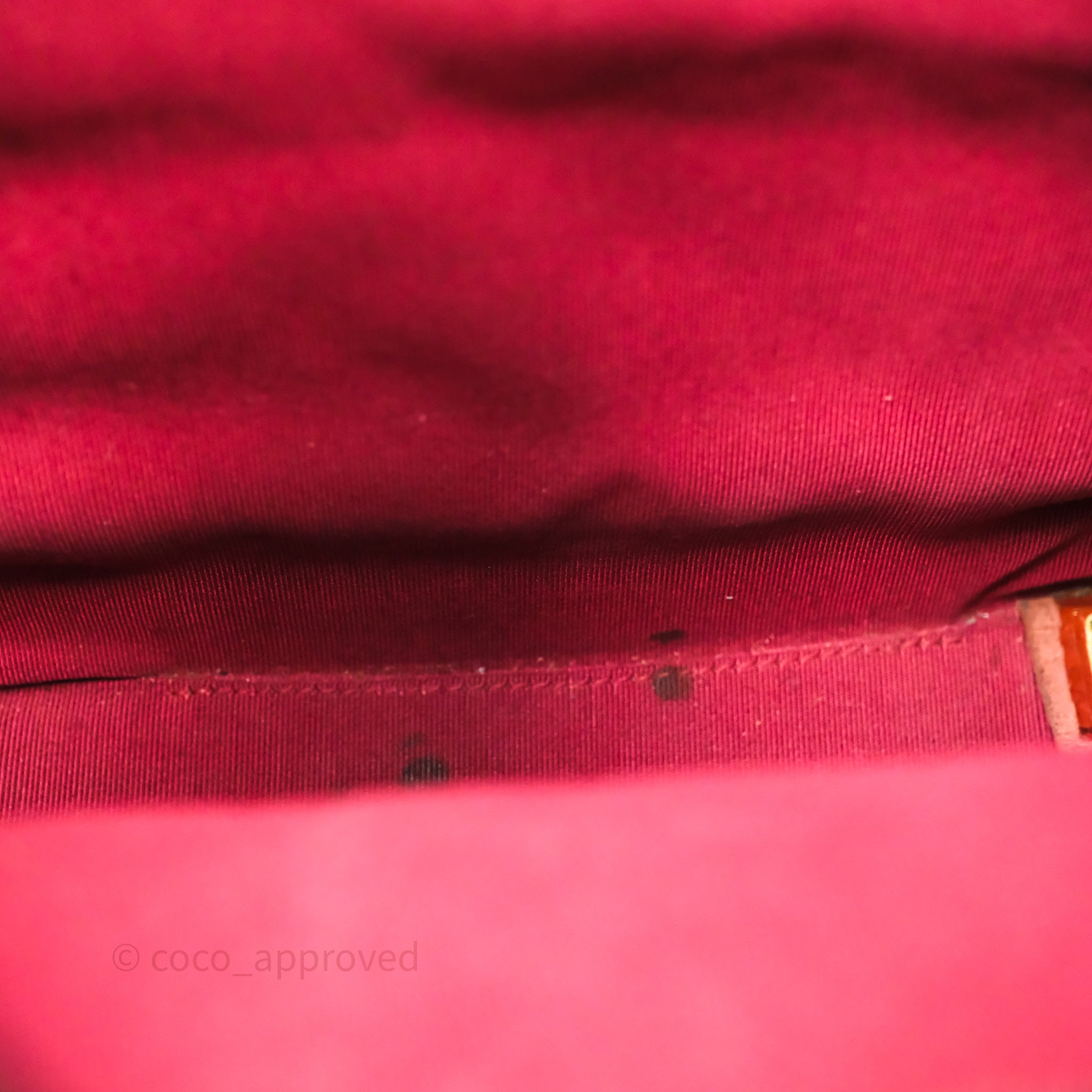 8.5/10 good condition. Rubbings, scratches and dent on base. Sign of use on strap and top rim. Fading on strap hardware. Marks on interior and CC. Softened.