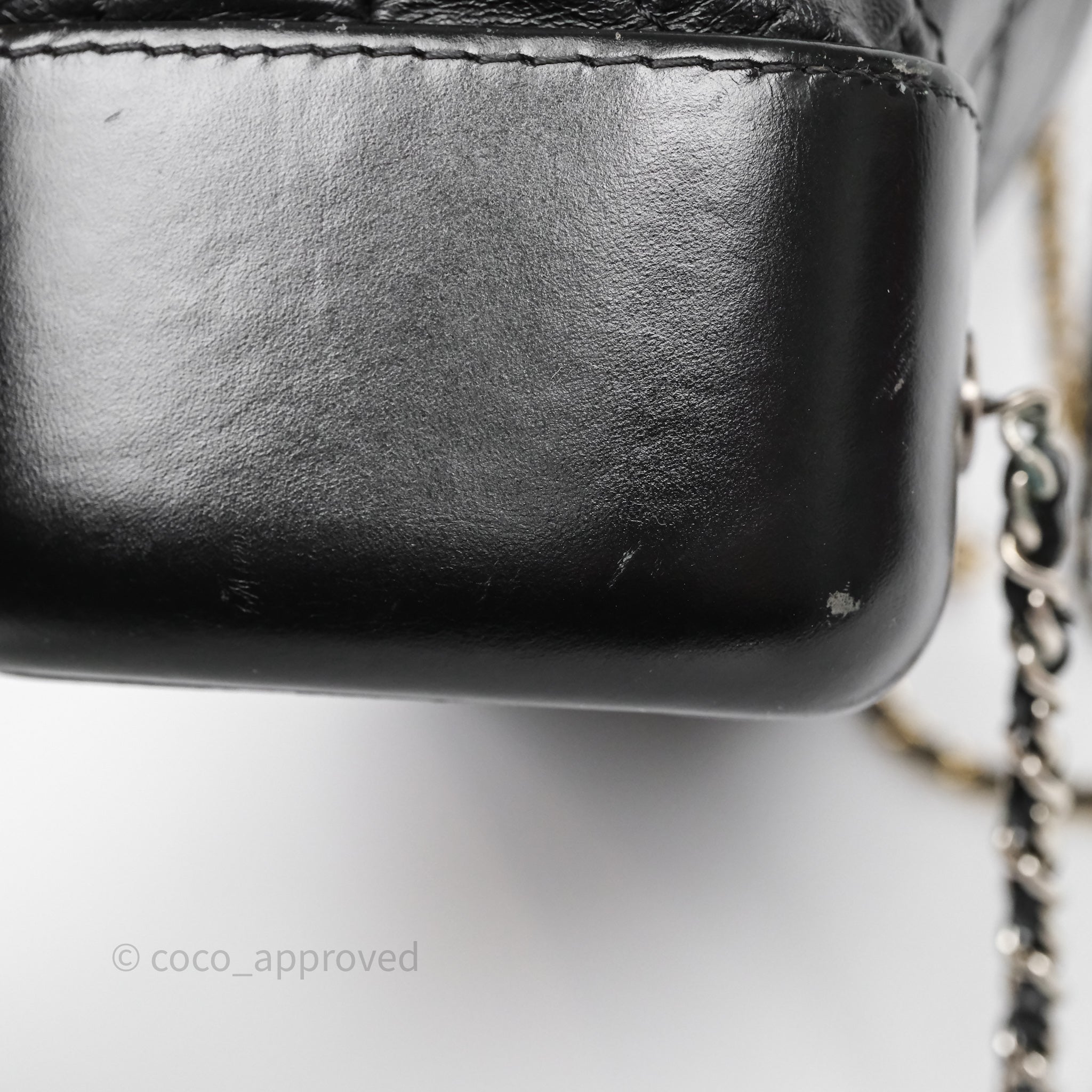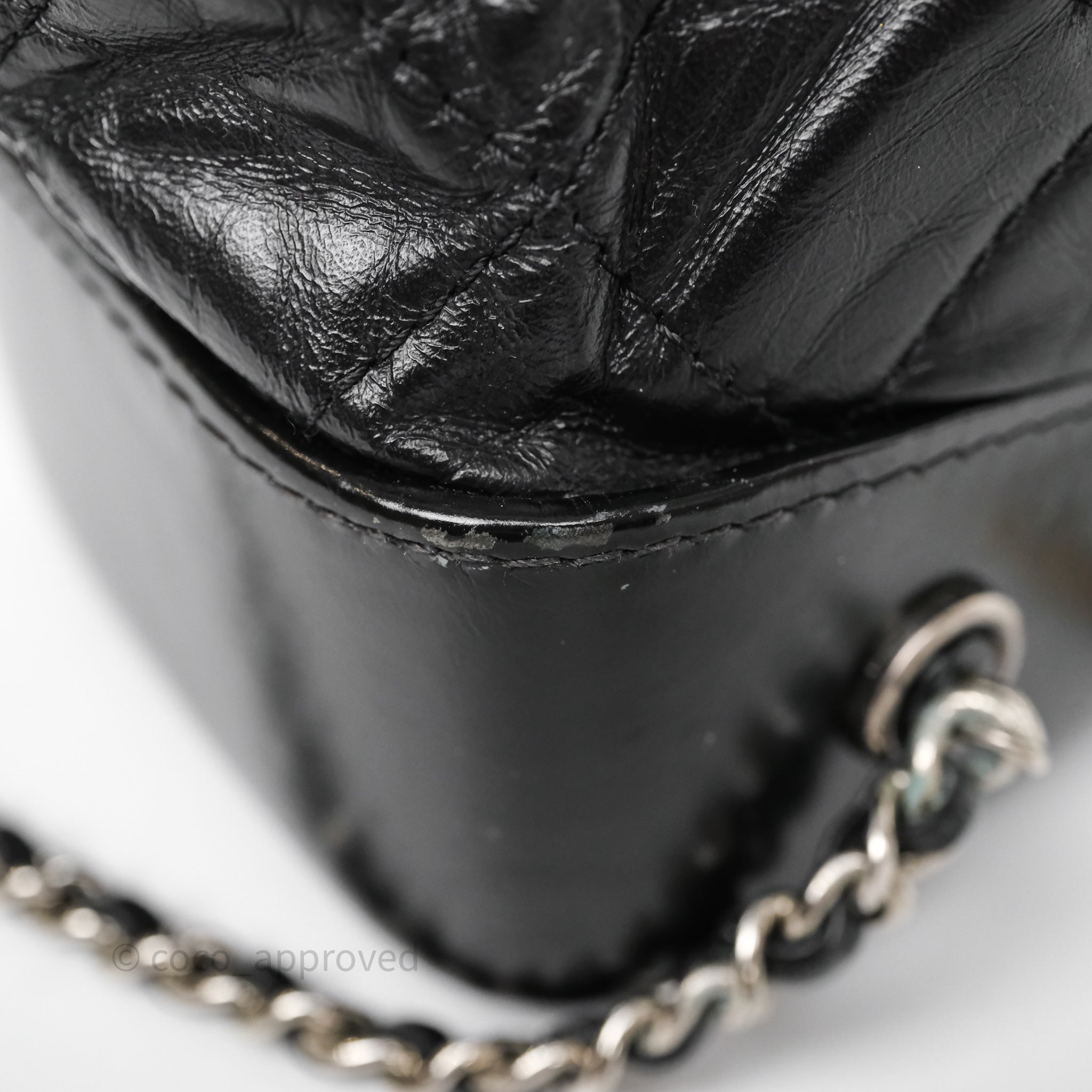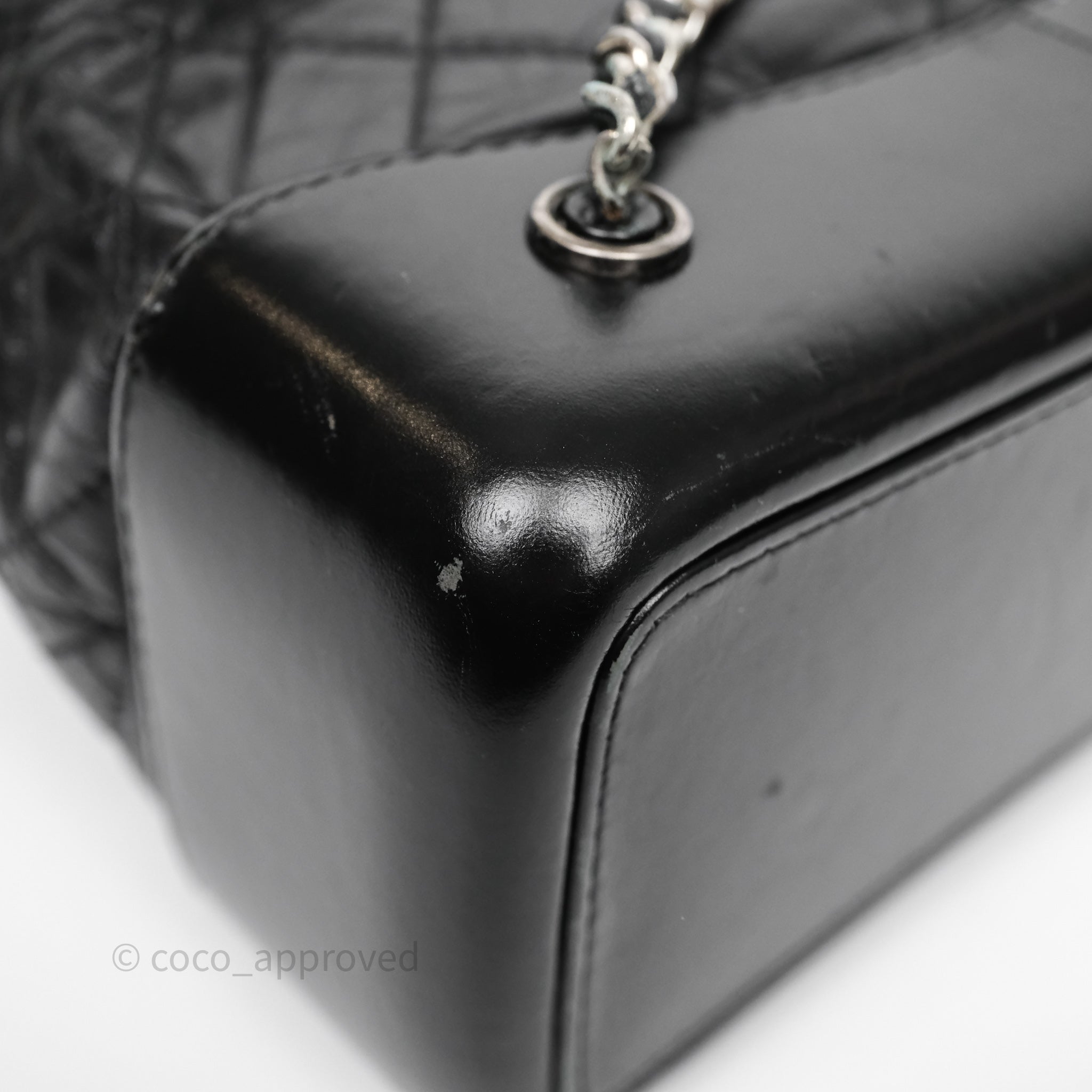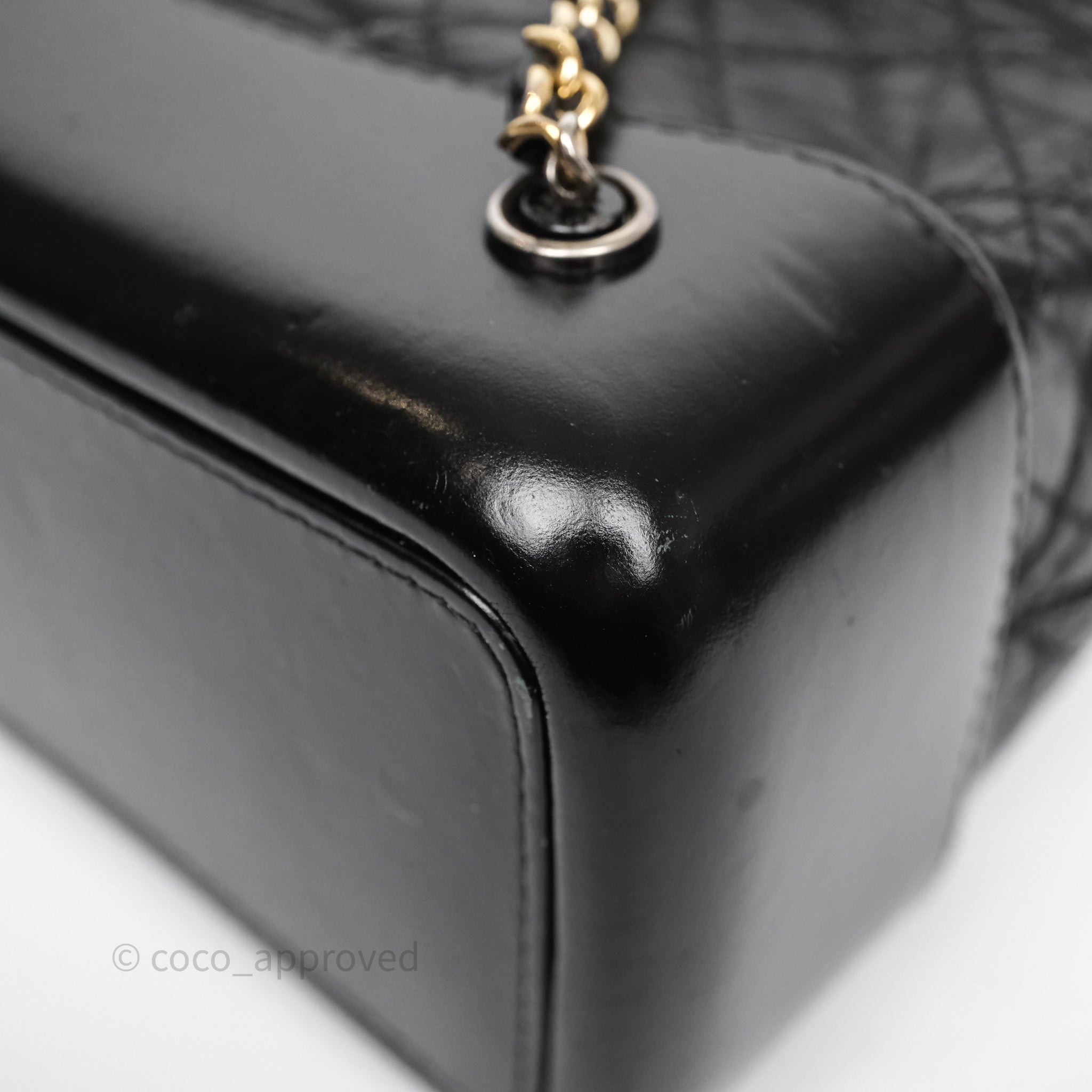 8.5/10 good condition. Rubbings, scratches and dent on base. Sign of use on strap and top rim. Fading on strap hardware. Marks on interior and CC. Softened.
