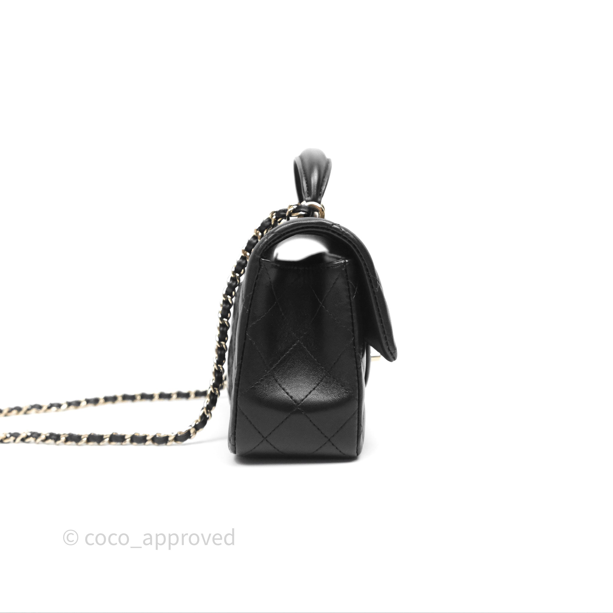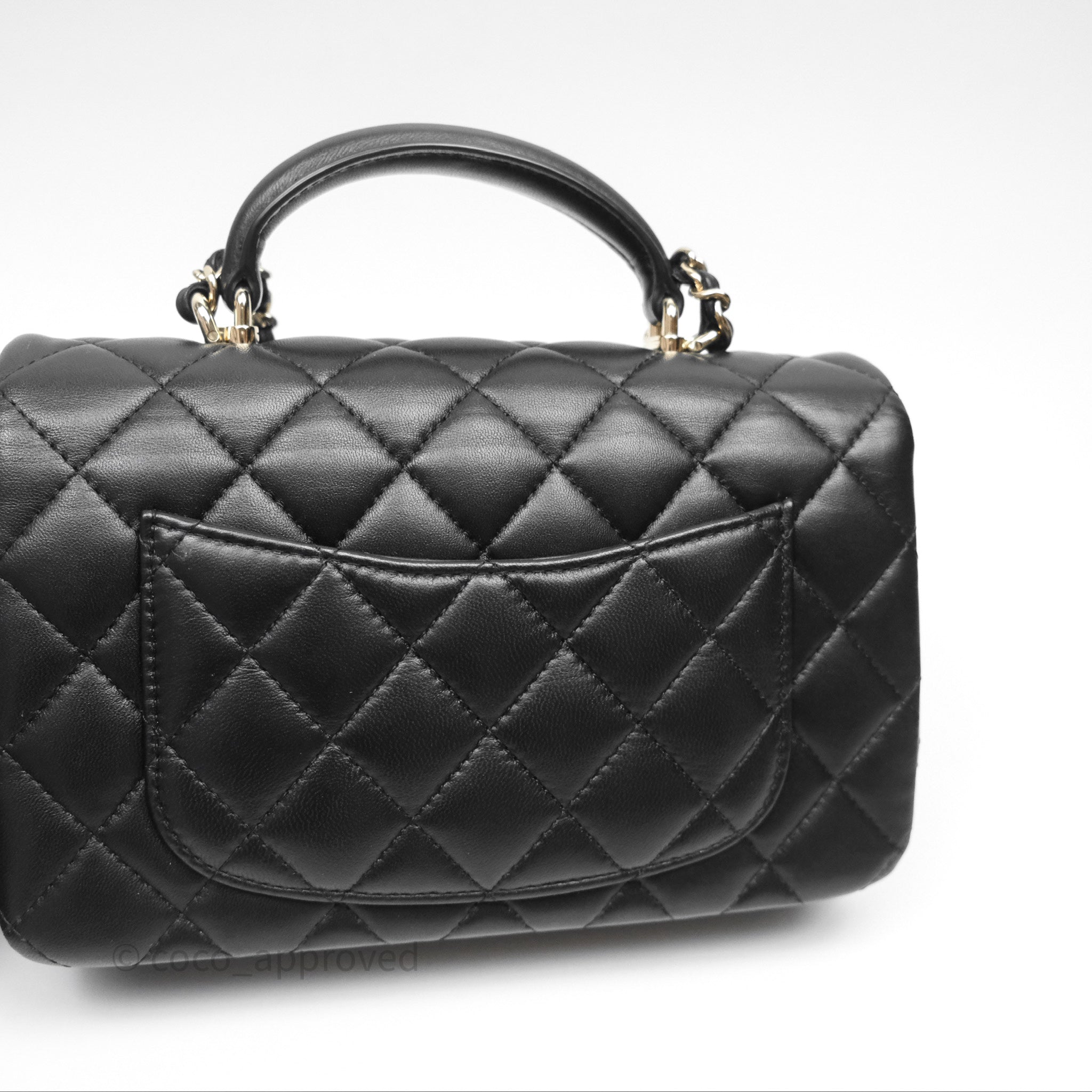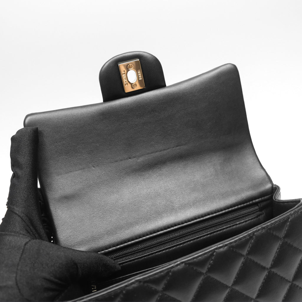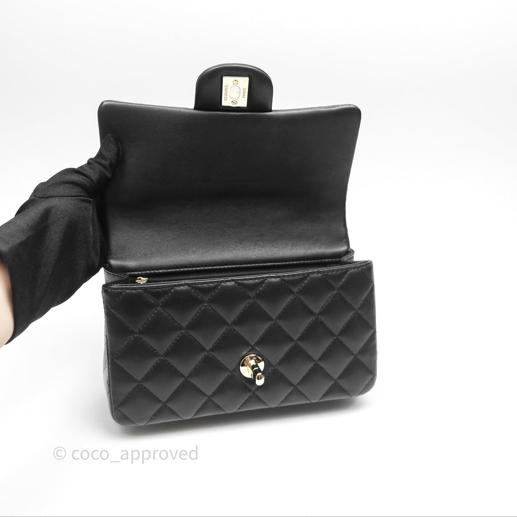 Chanel Top Handle Mini Rectangular Flap Black Lambskin Gold Hardware