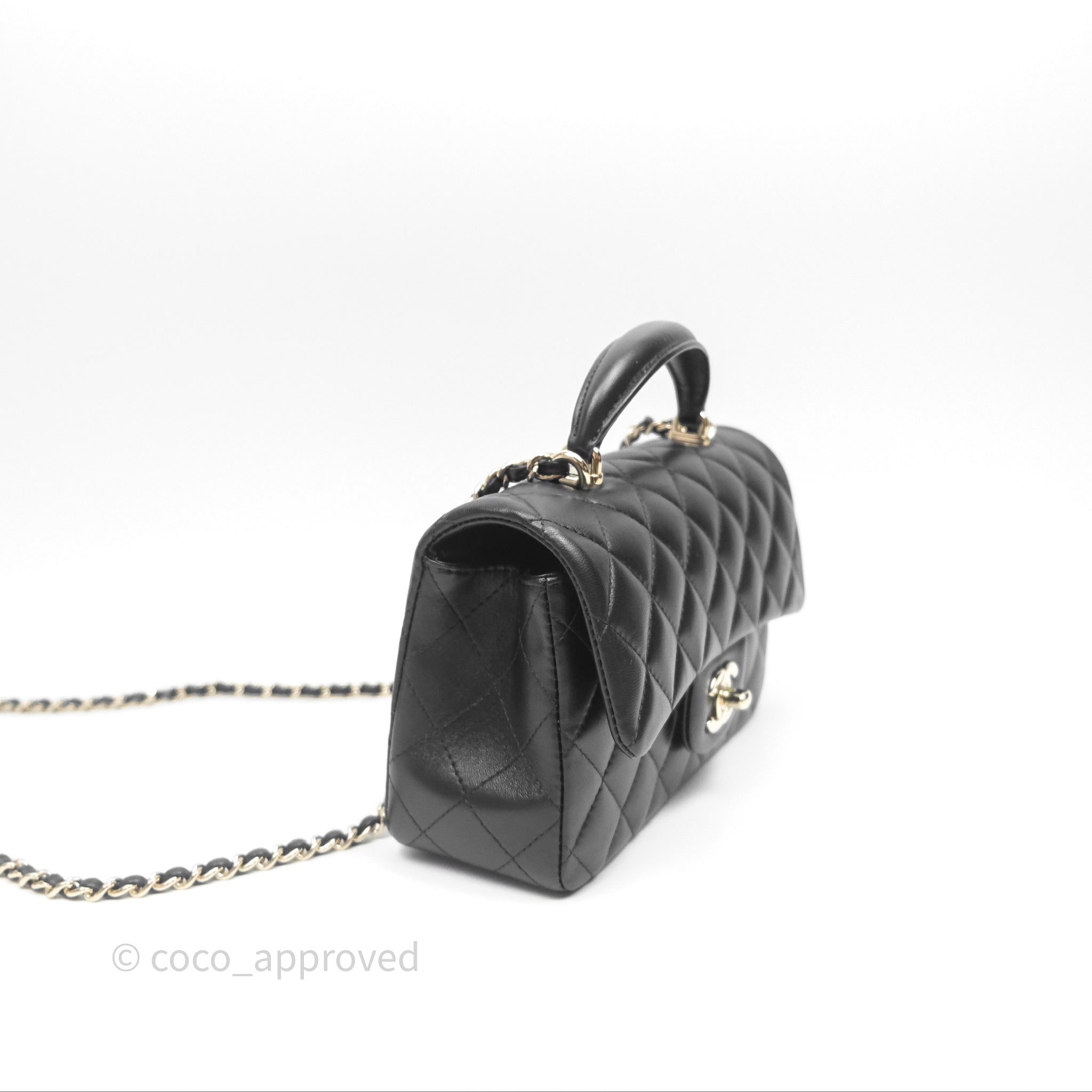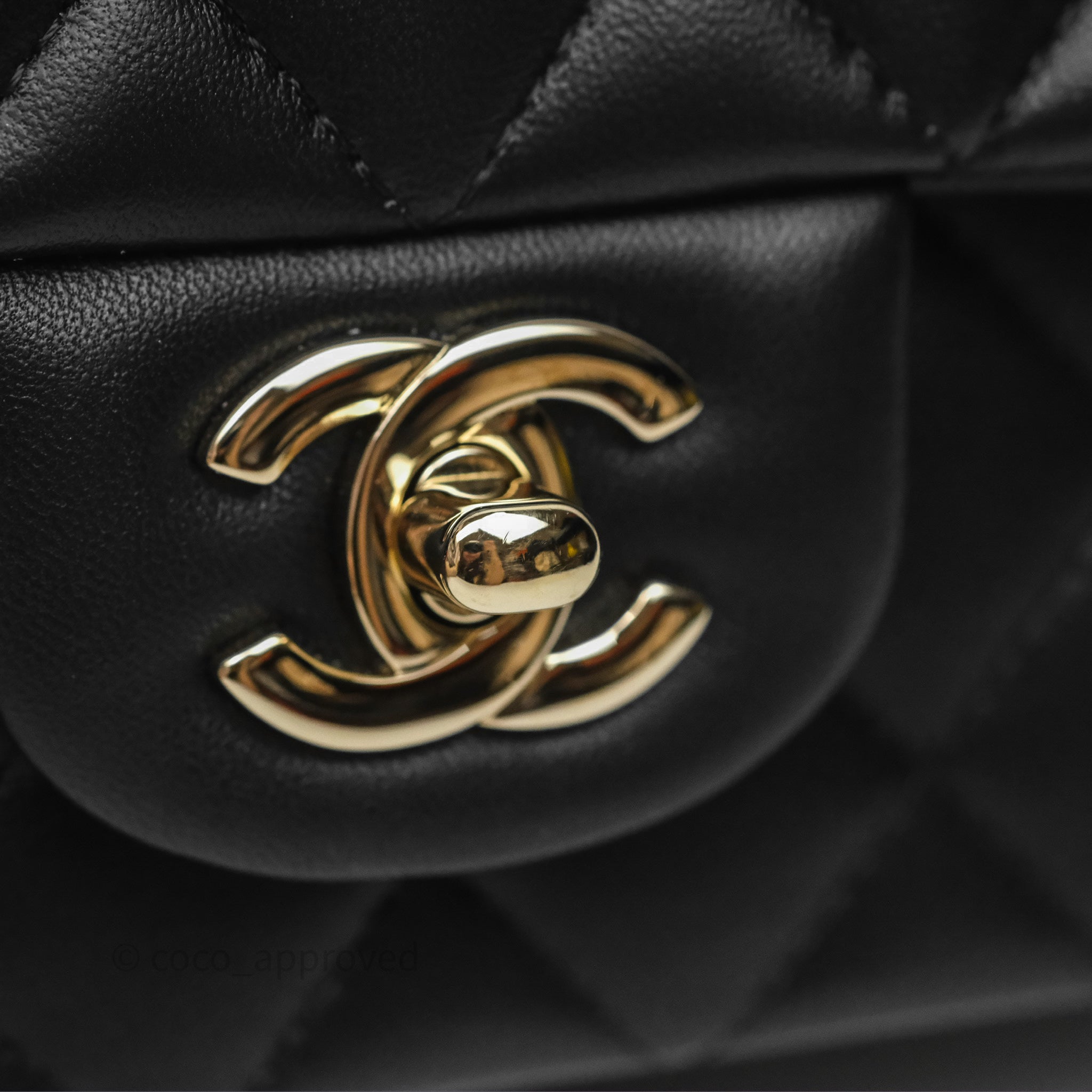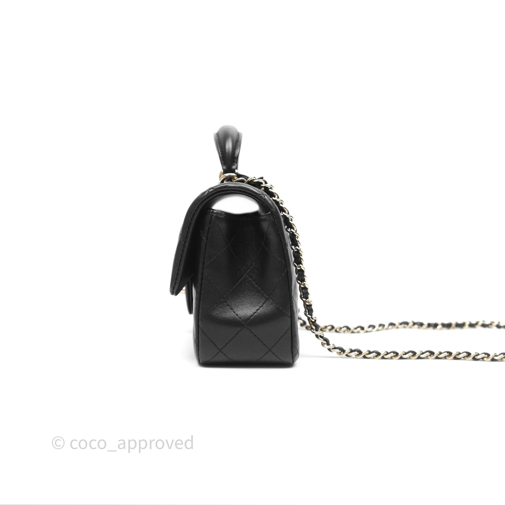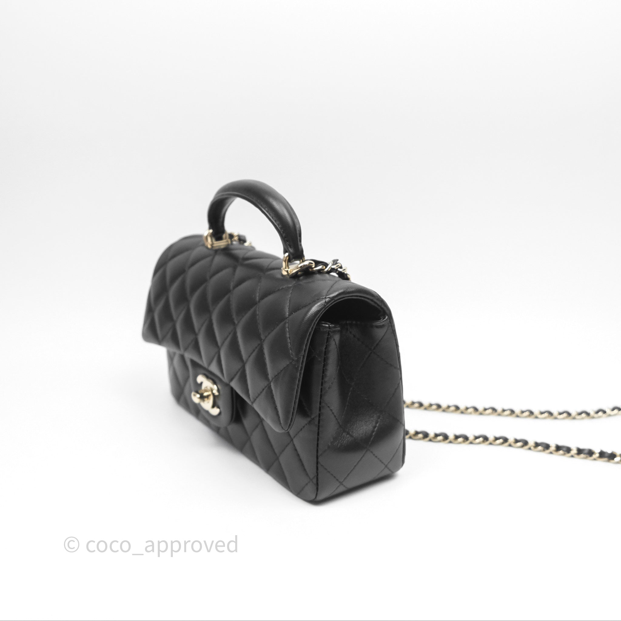 Chanel Top Handle Mini Rectangular Flap Black Lambskin Gold Hardware