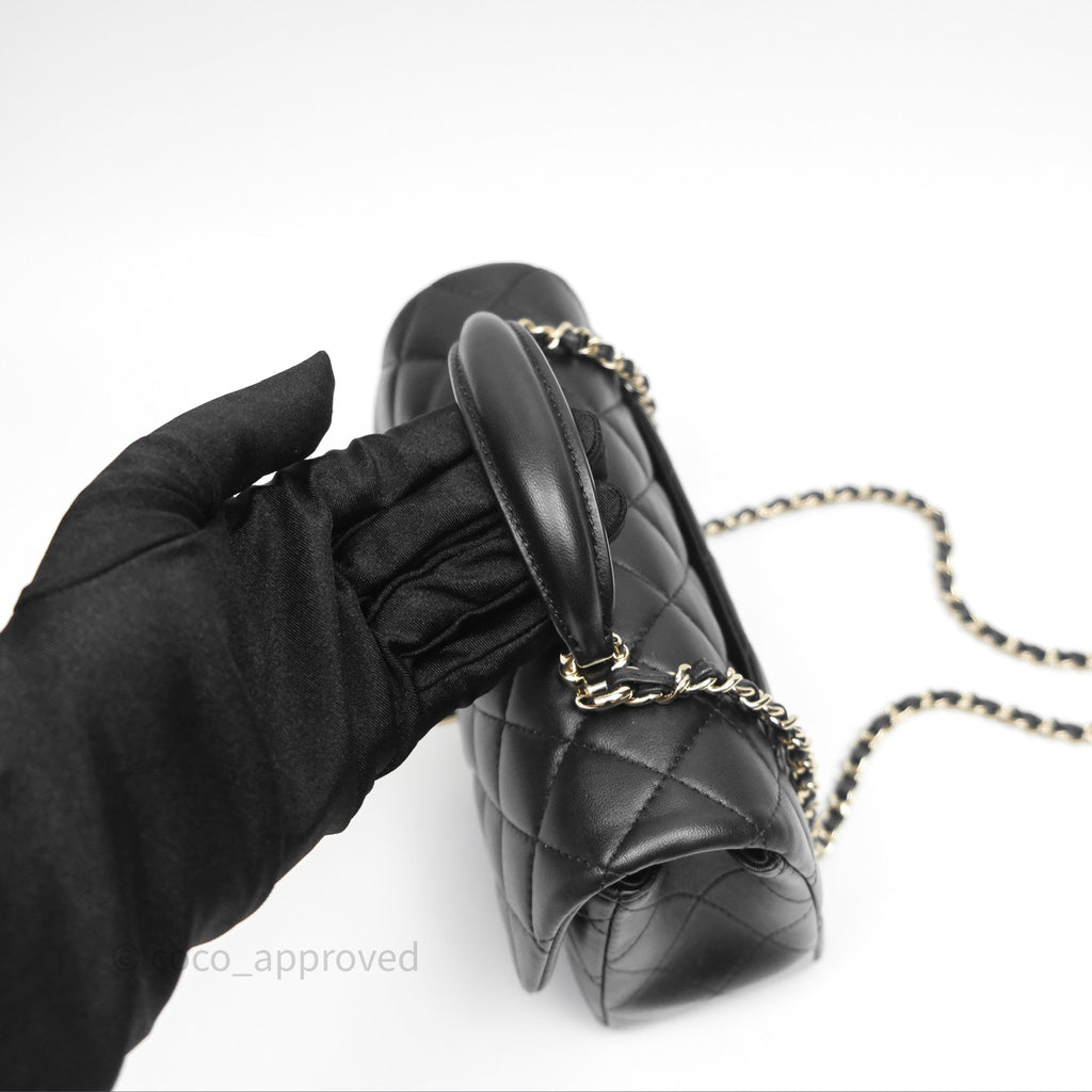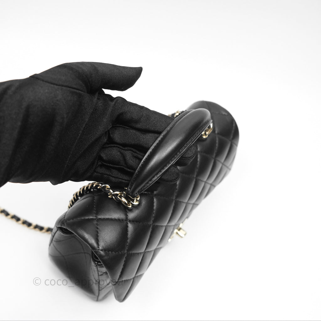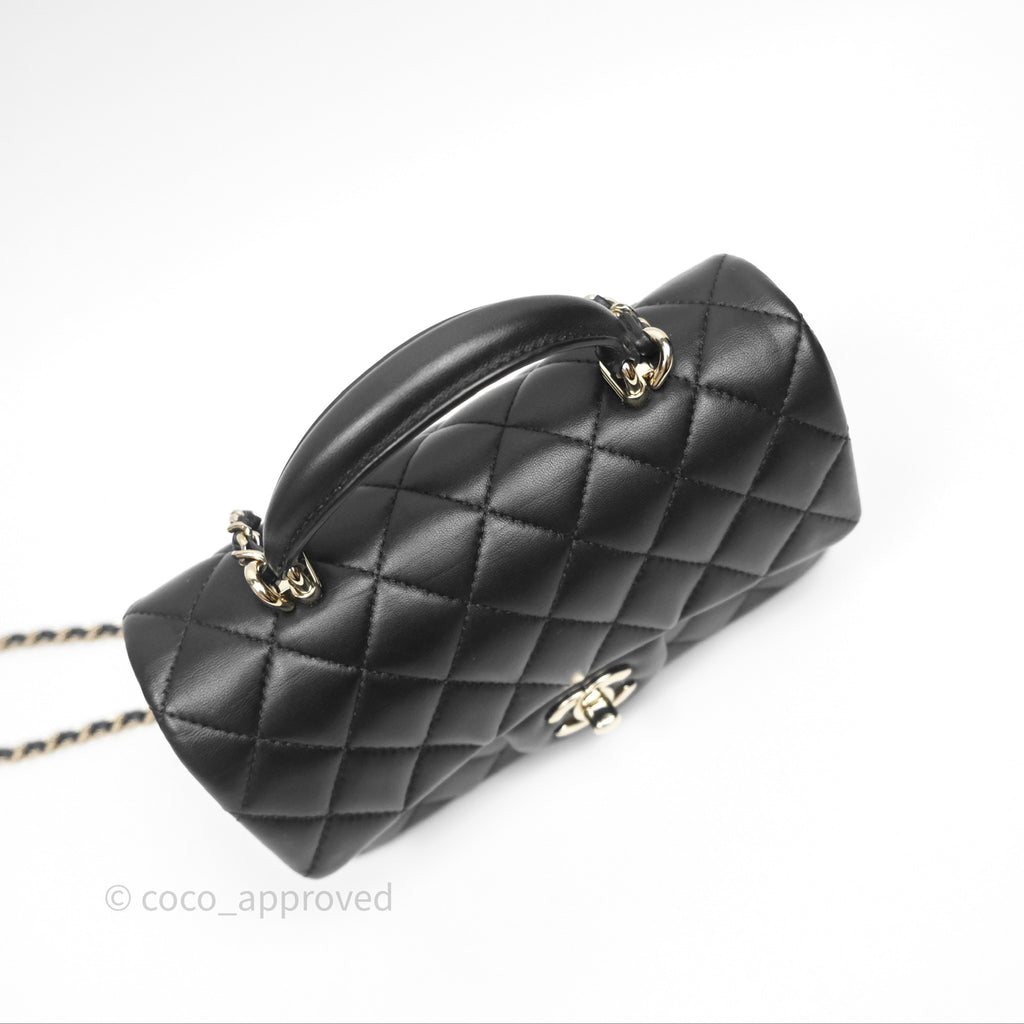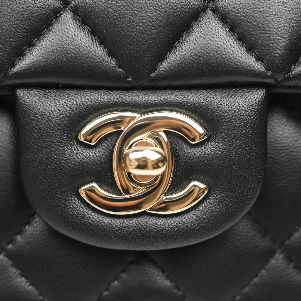 Chanel Top Handle Mini Rectangular Flap Black Lambskin Gold Hardware