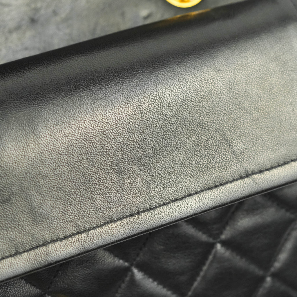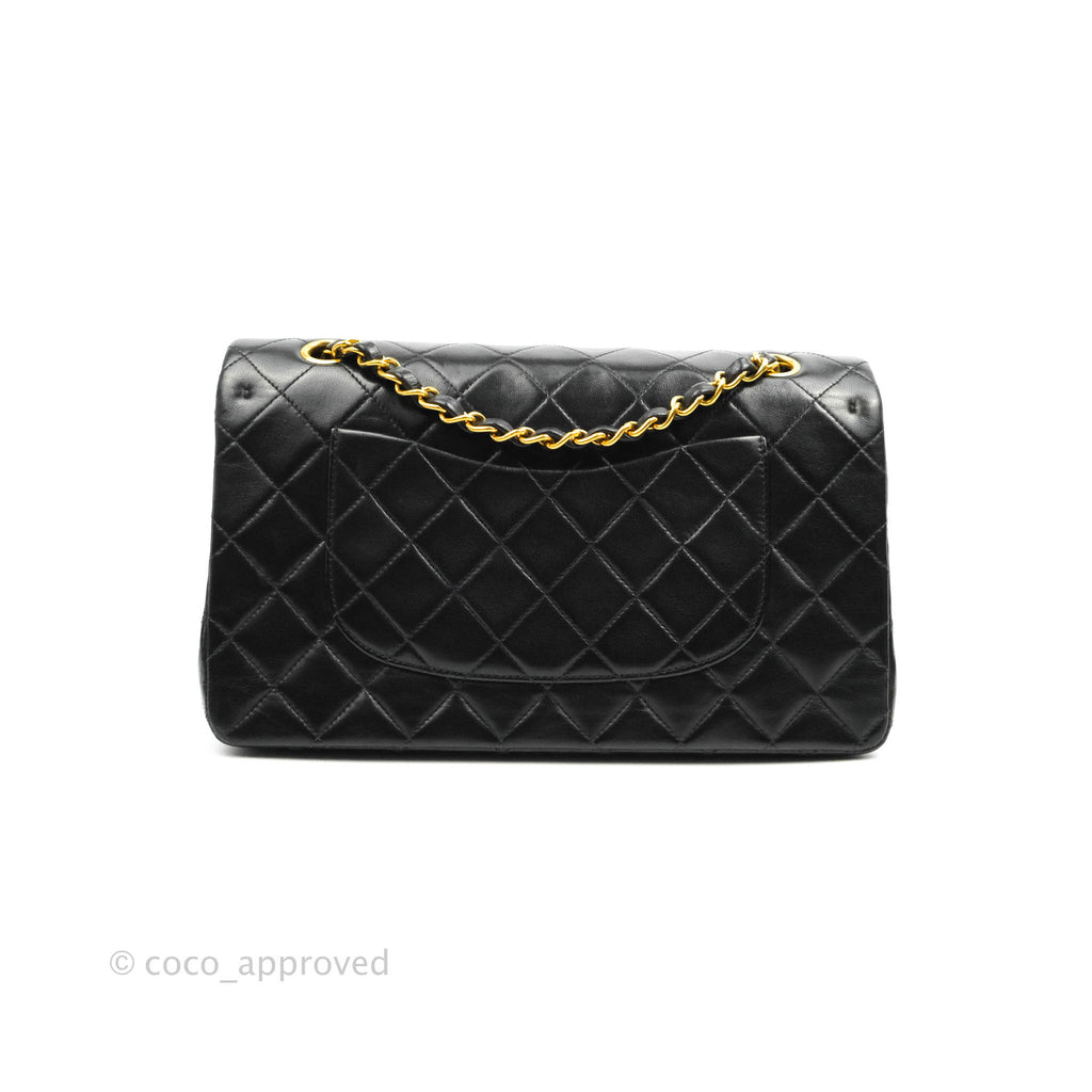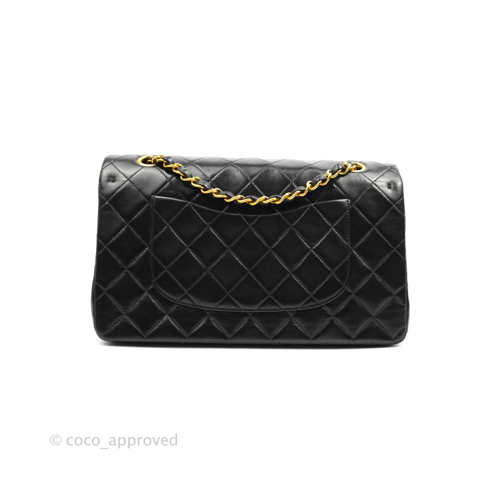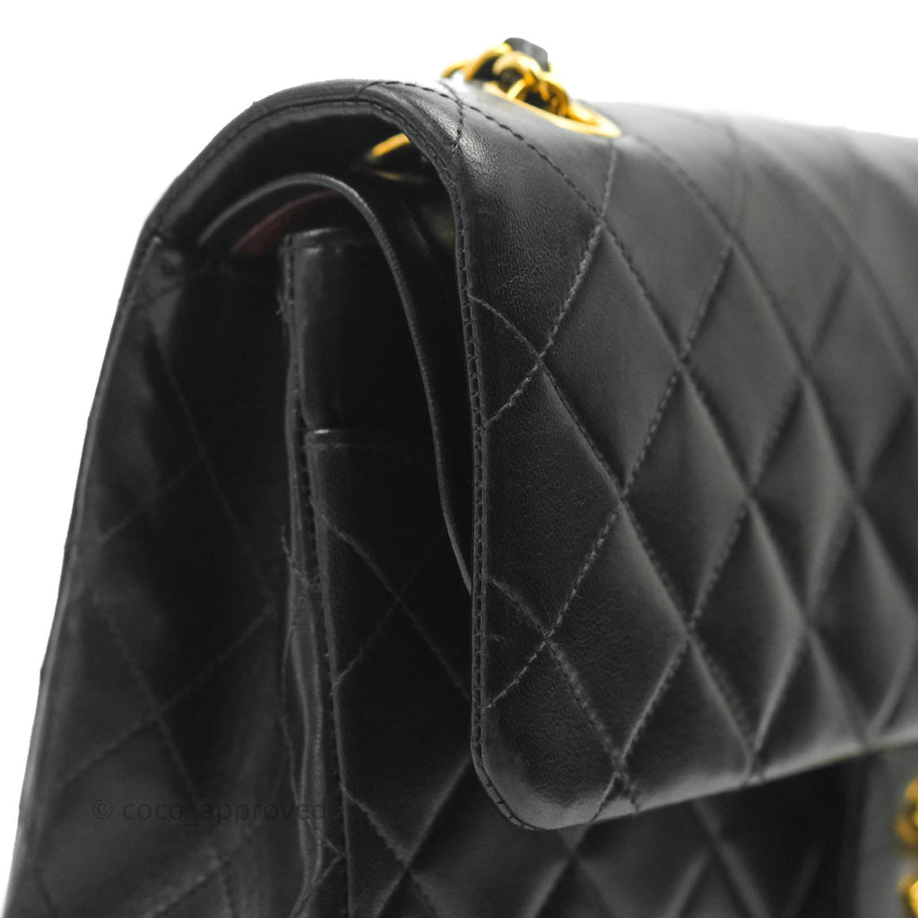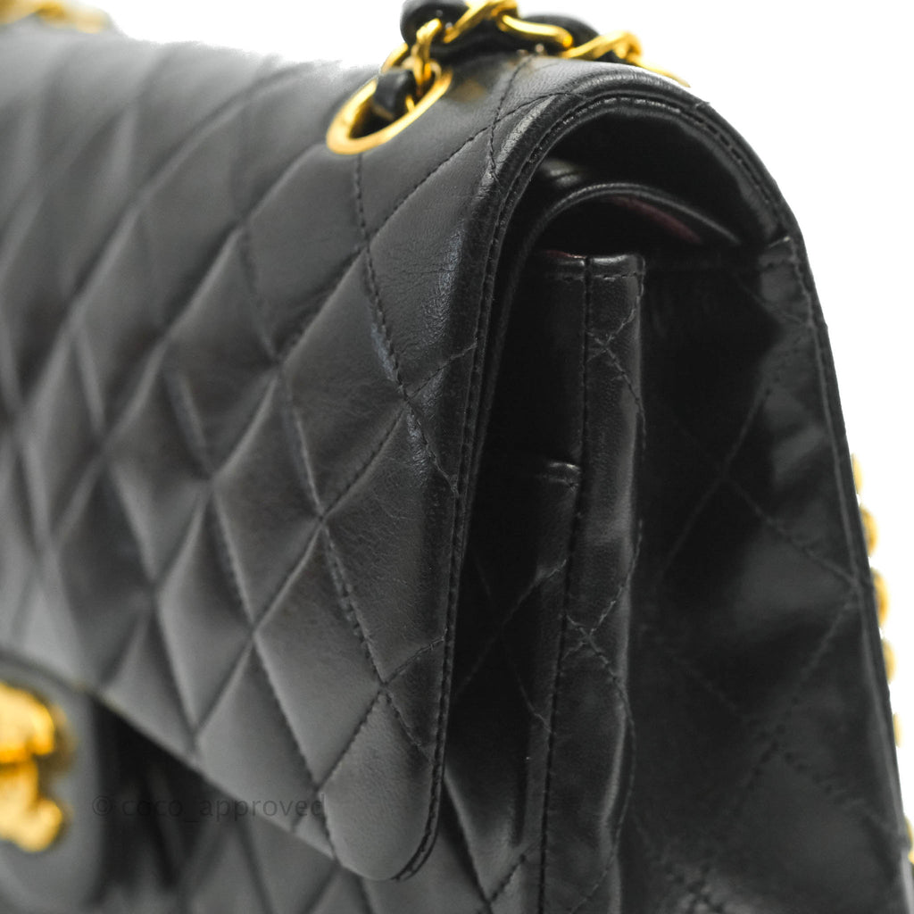 Chanel Vintage Classic M/L Medium Double Flap Black Lambskin 24K Gold Hardware