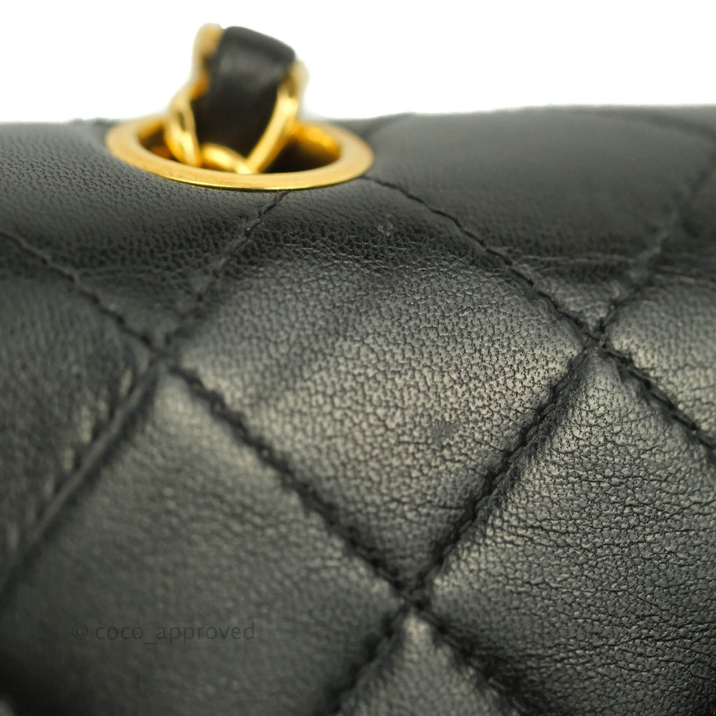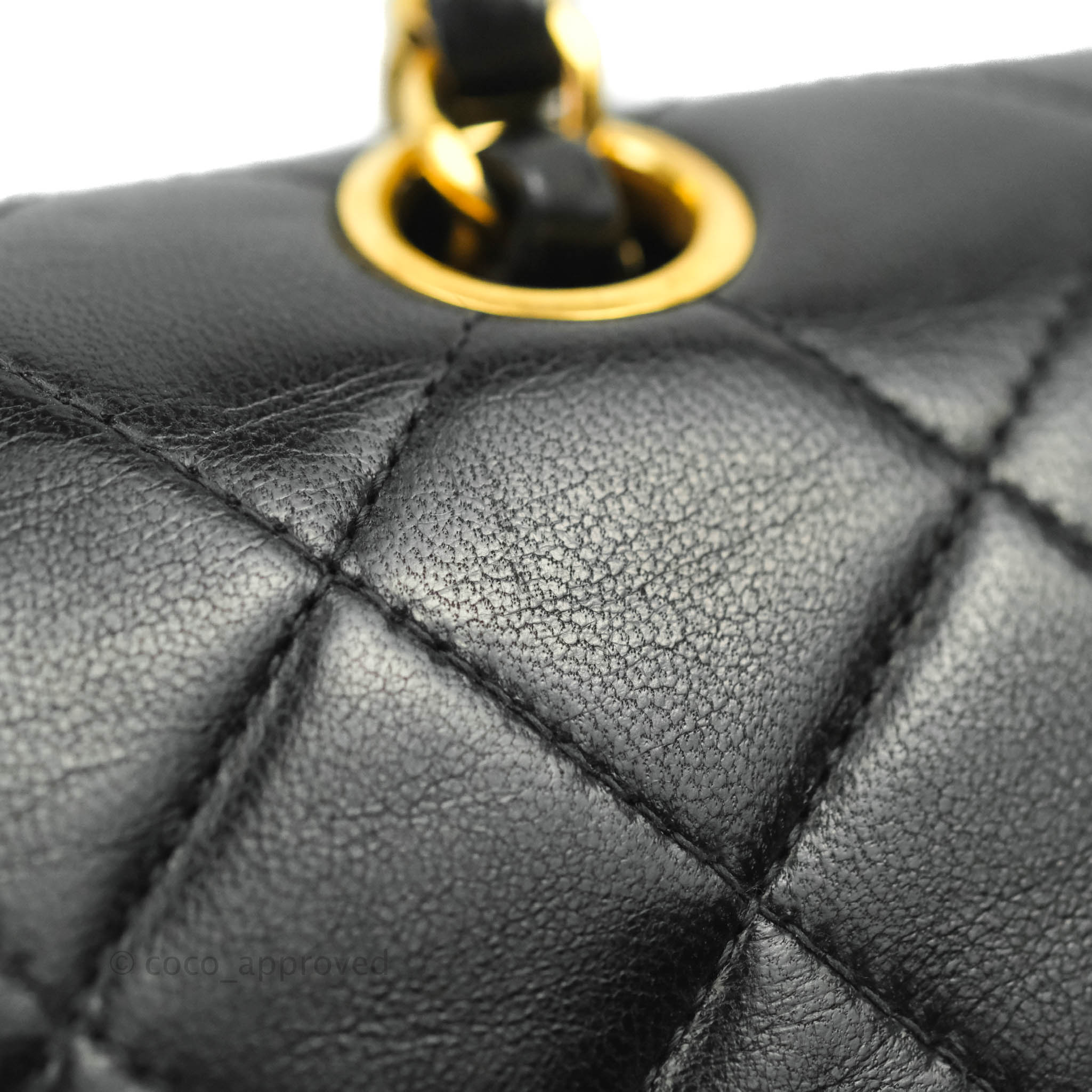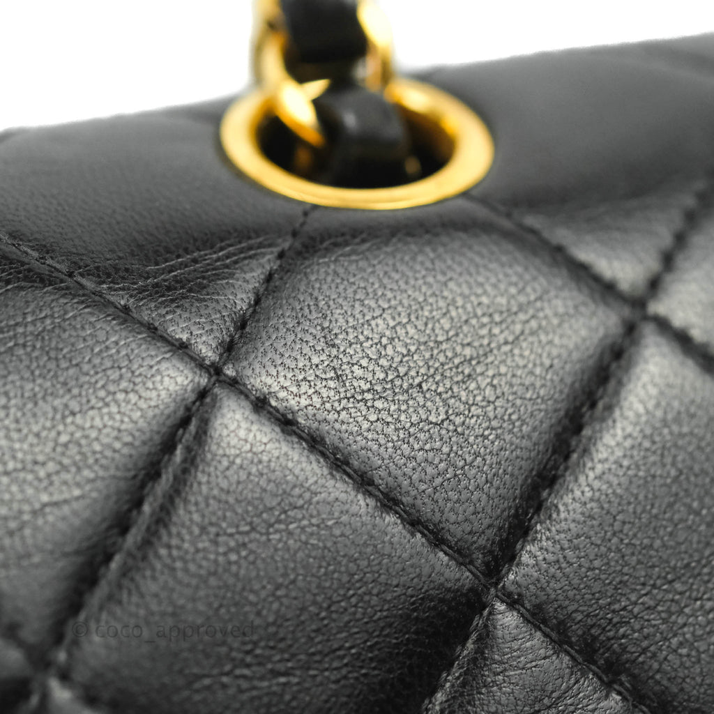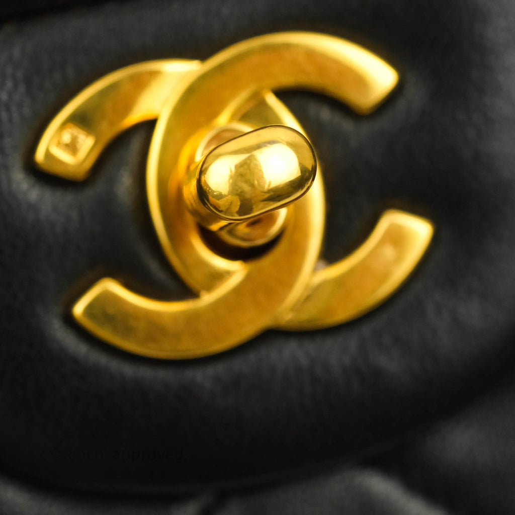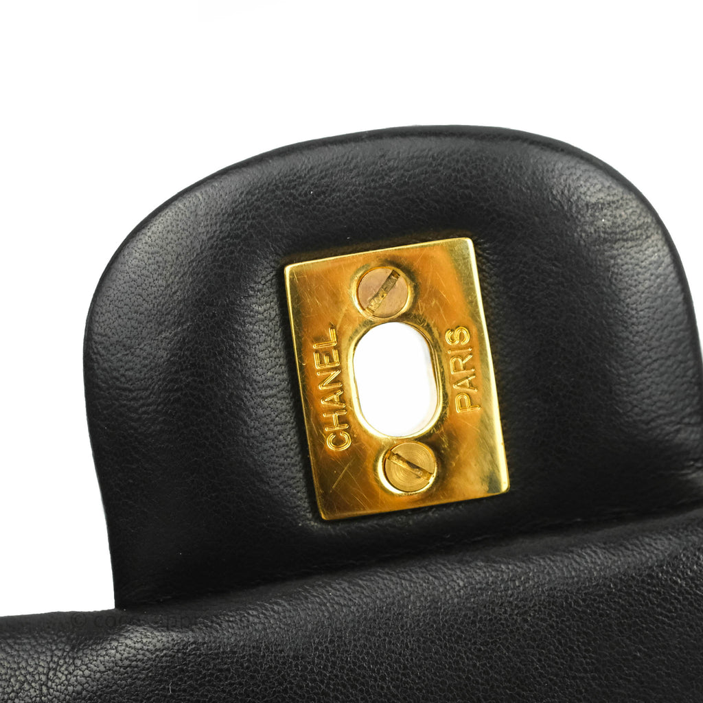 Chanel Vintage Classic M/L Medium Double Flap Black Lambskin 24K Gold Hardware