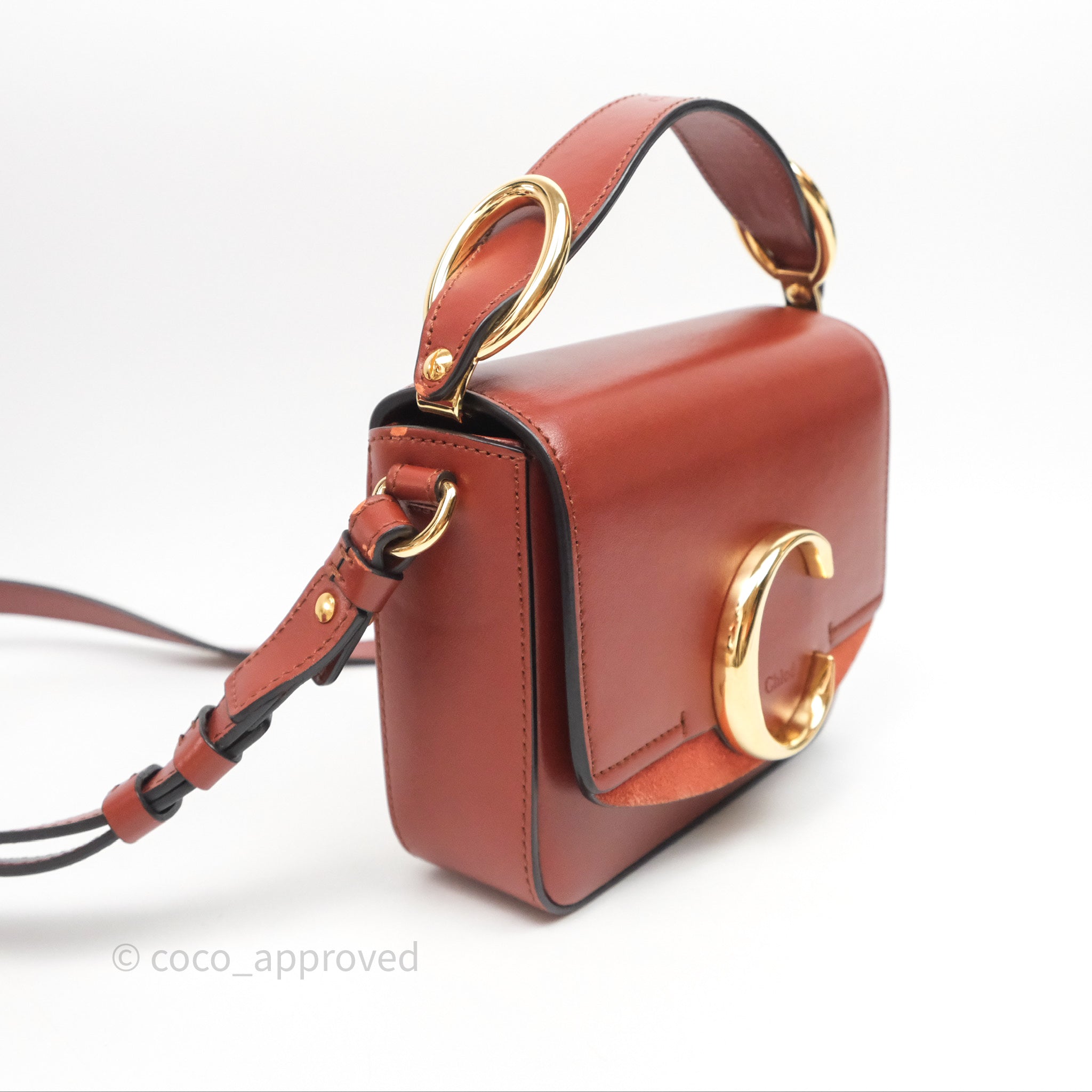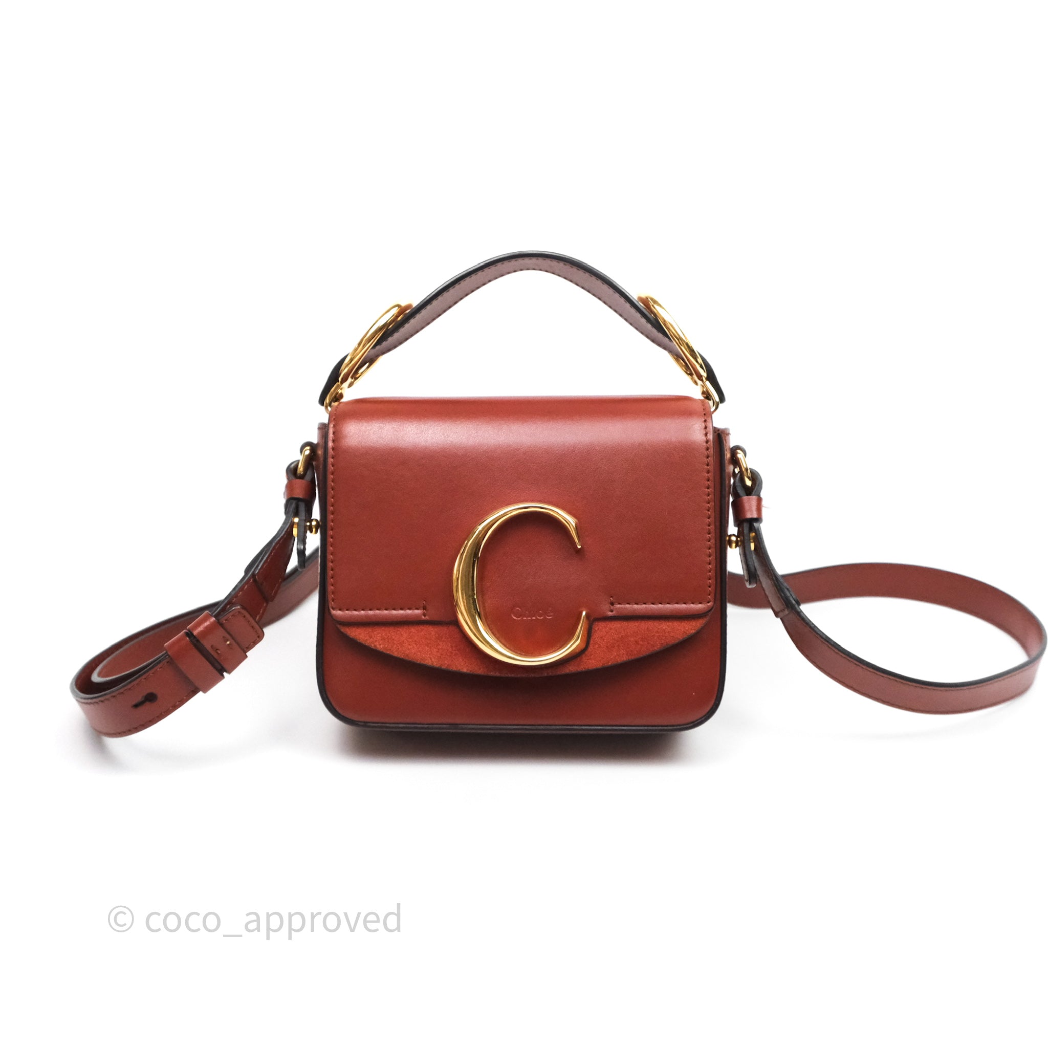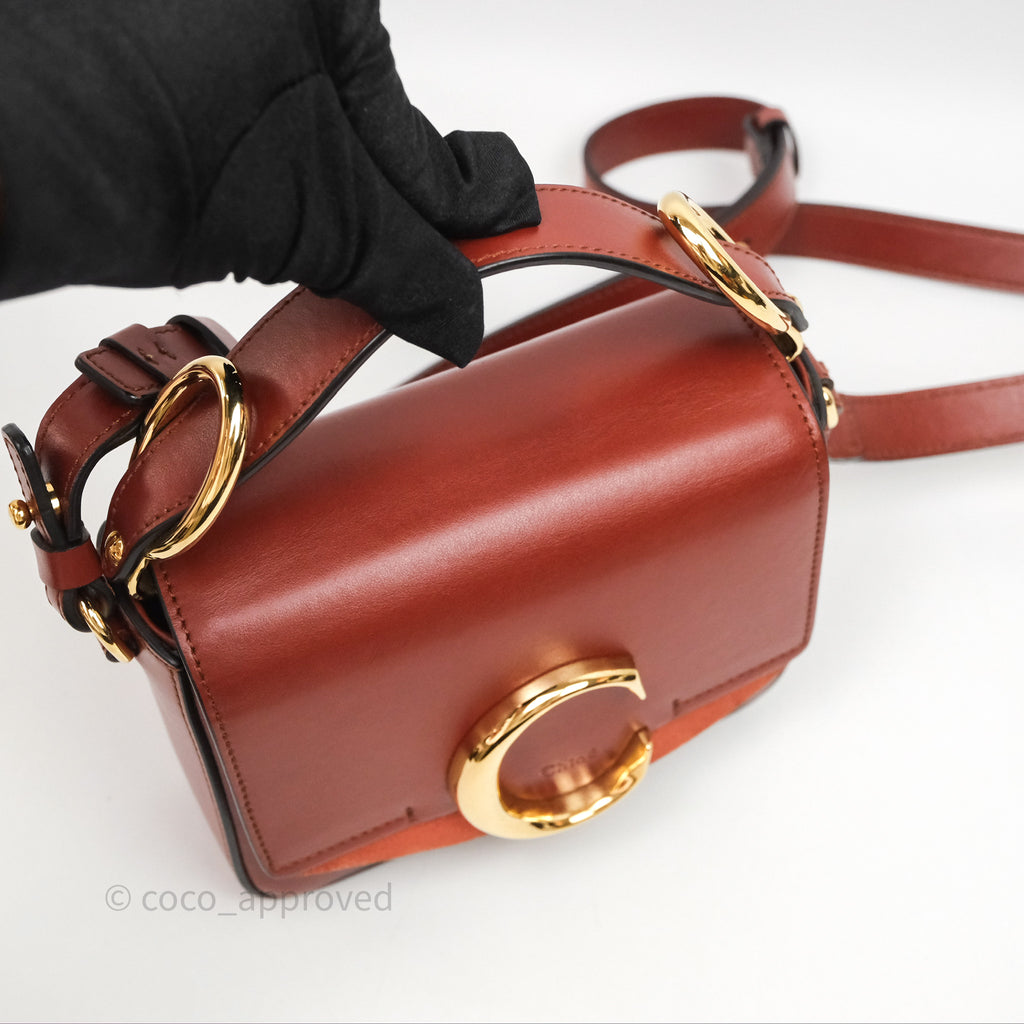 Chloé Mini C Bag Sepia Brown Shiny/Suede Calfskin