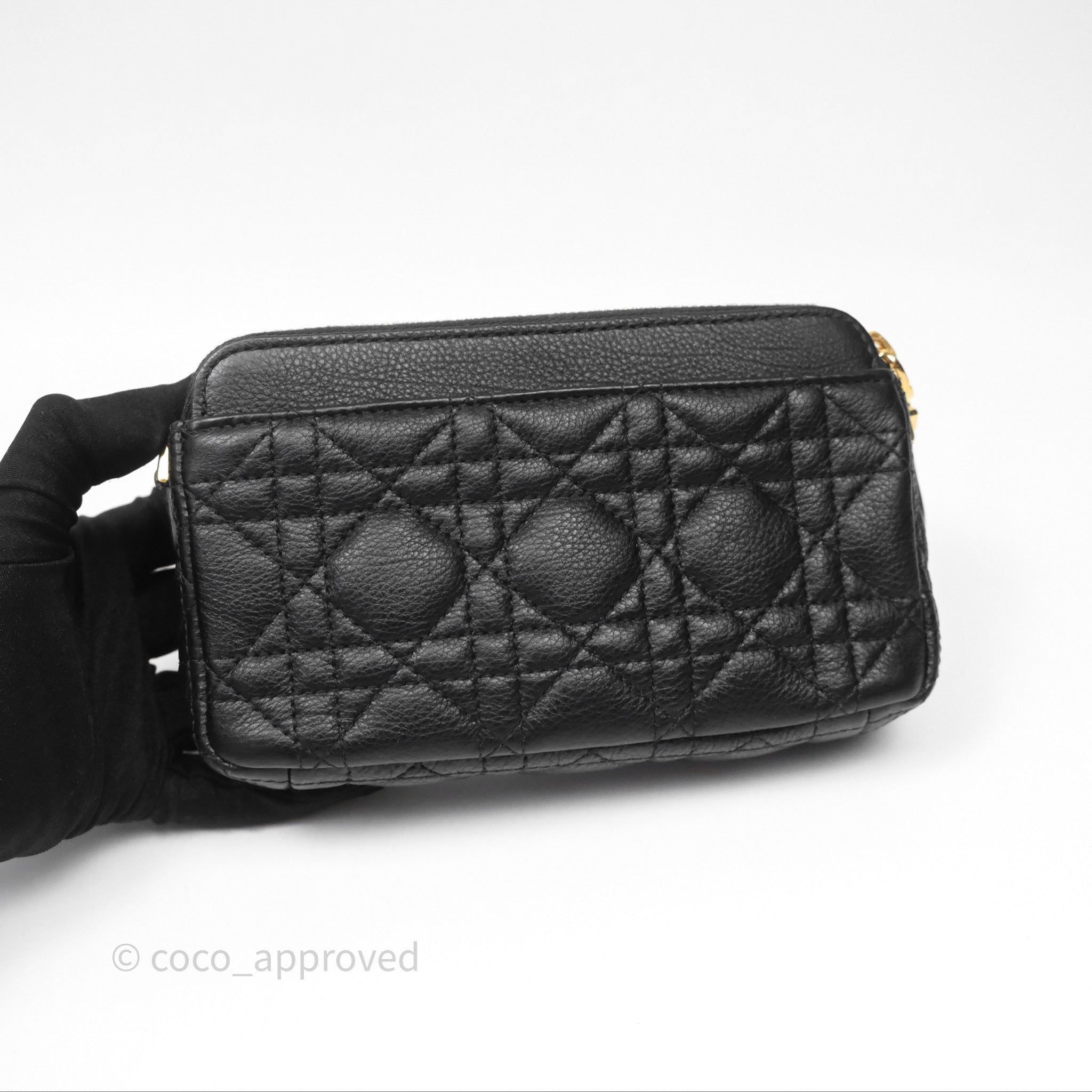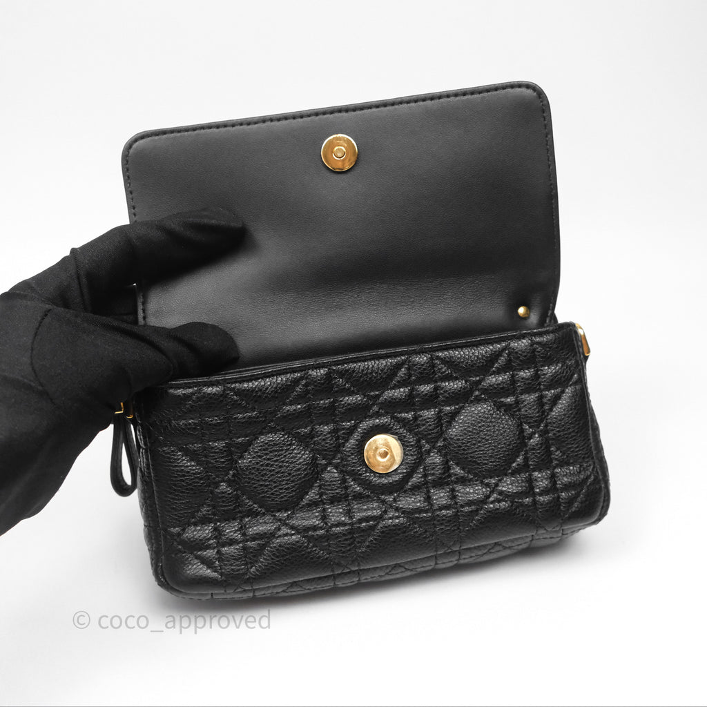 Christian Dior Caro Pouch with Chain Black Cannage Calfskin