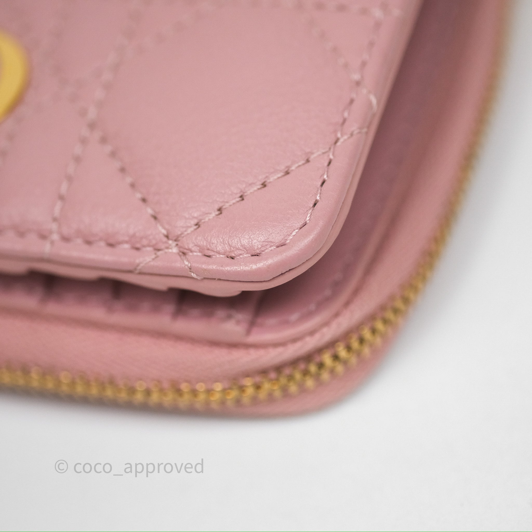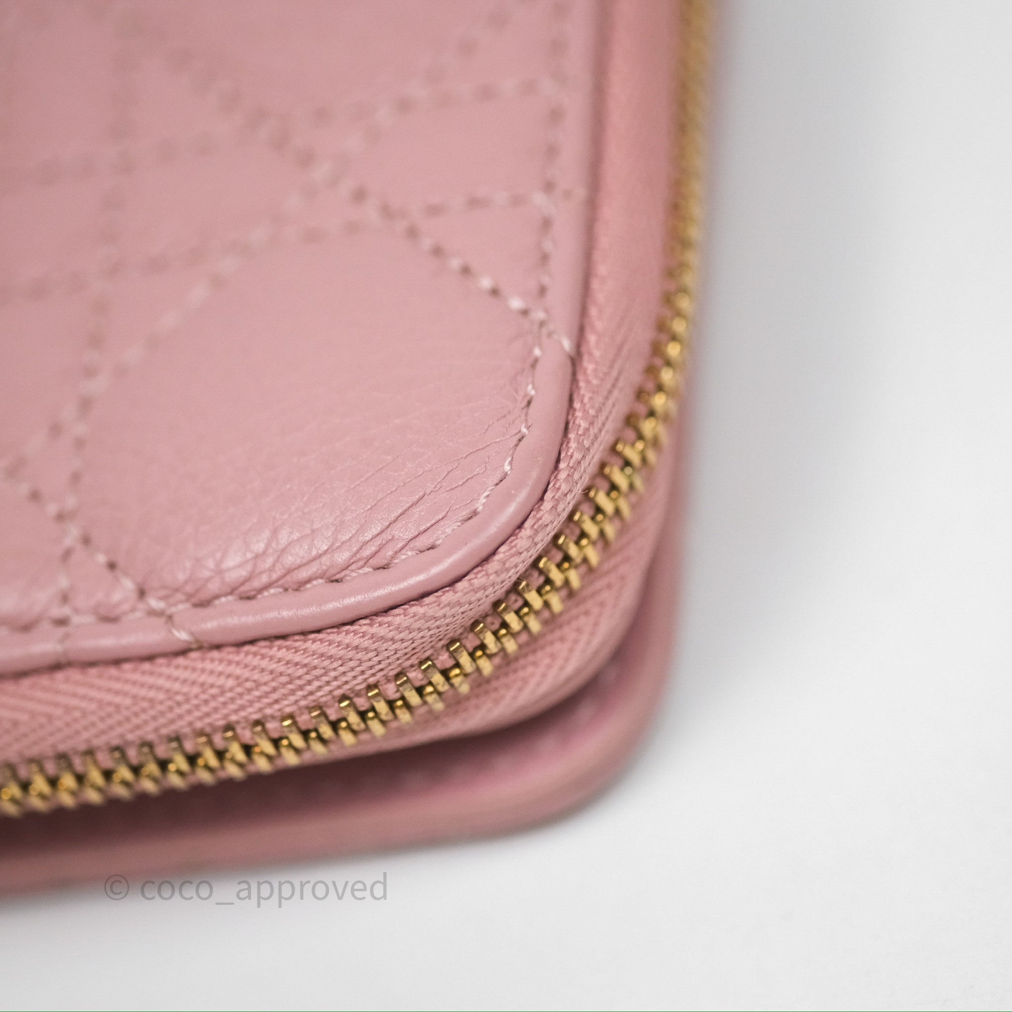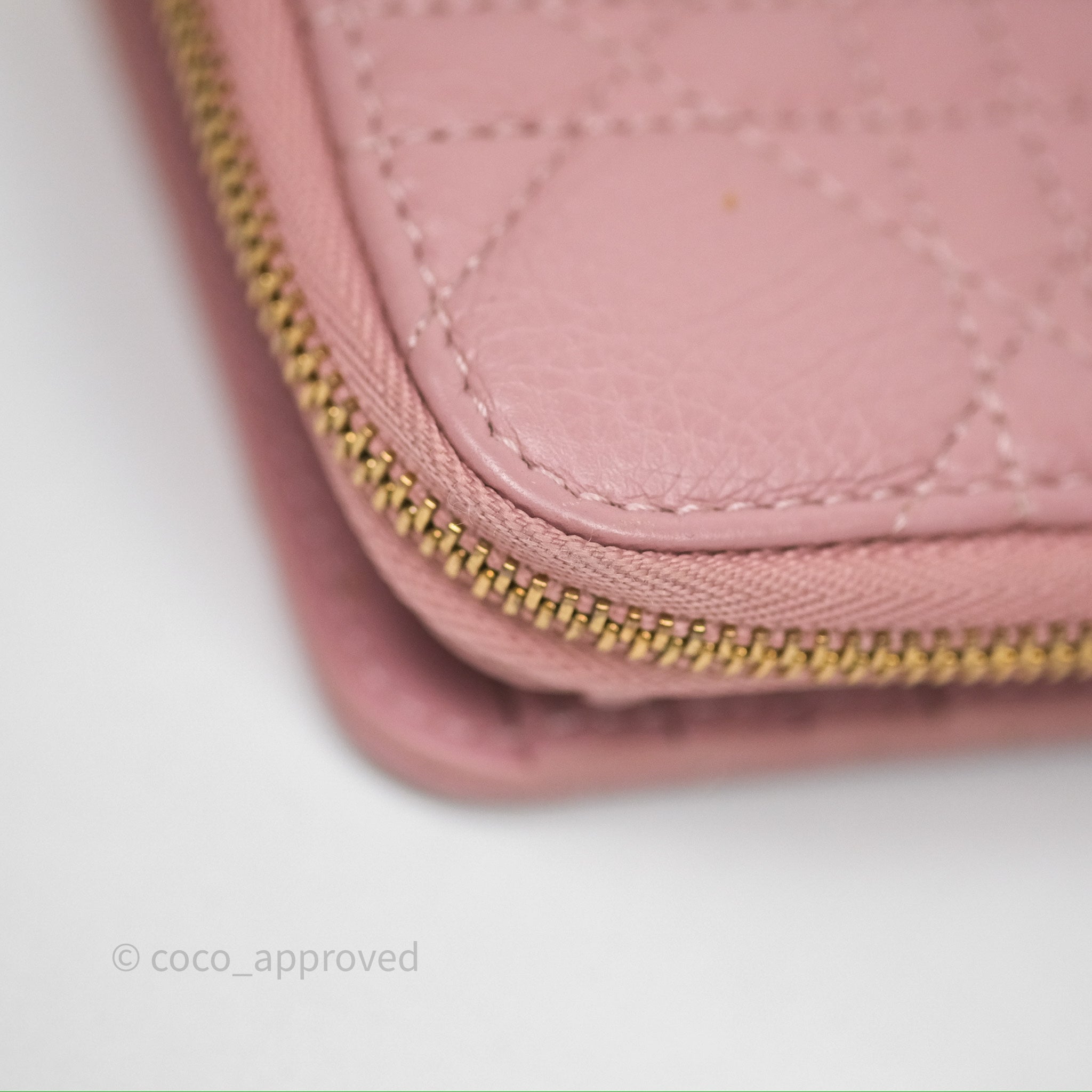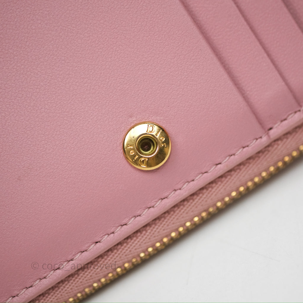 Christian Dior Medium Caro Scarlet Zipped Wallet Pink Cannage Calfskin