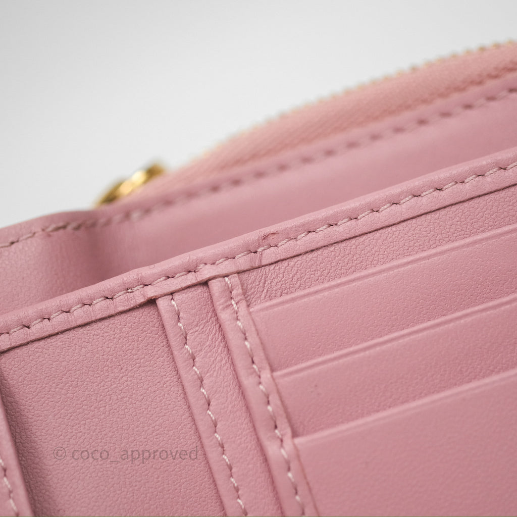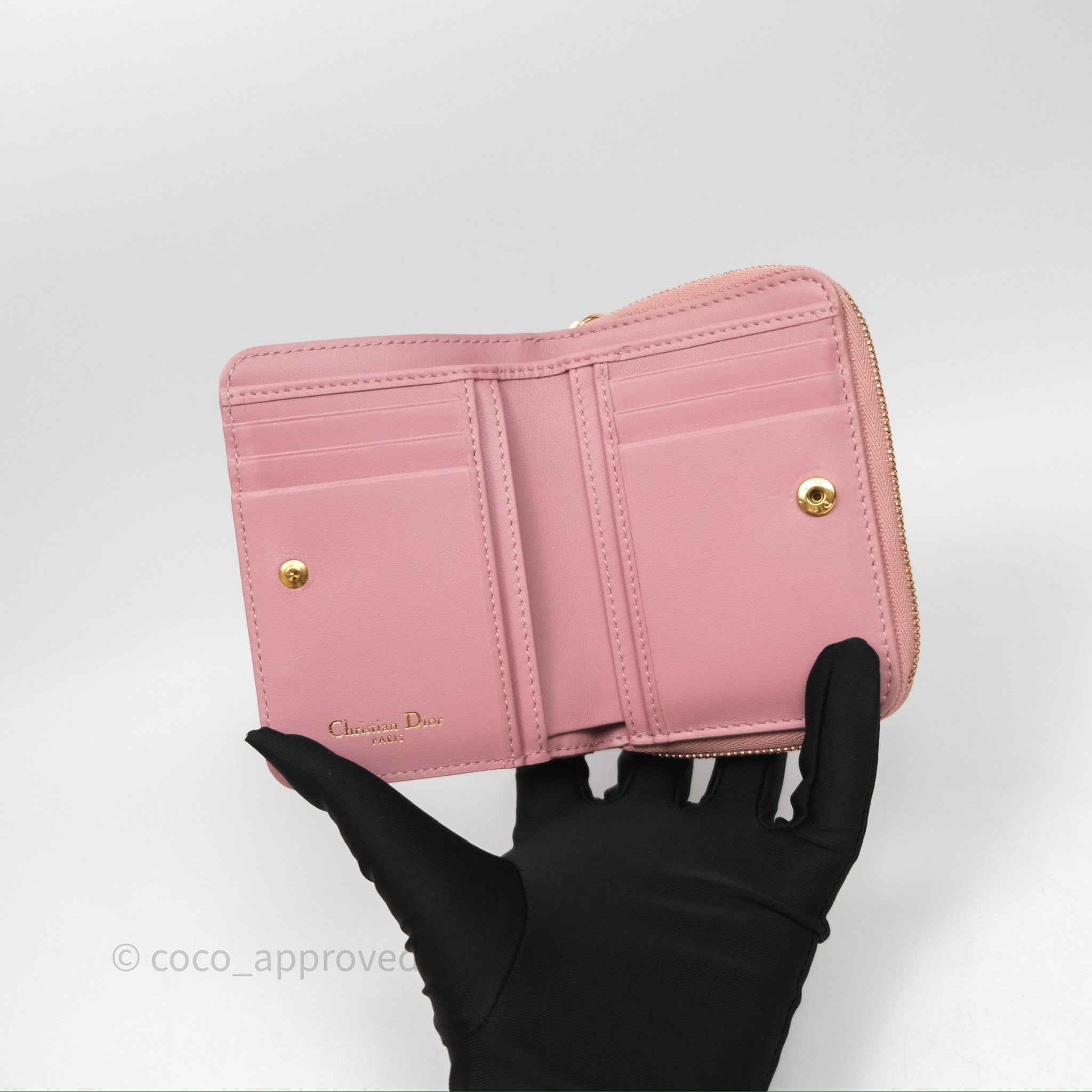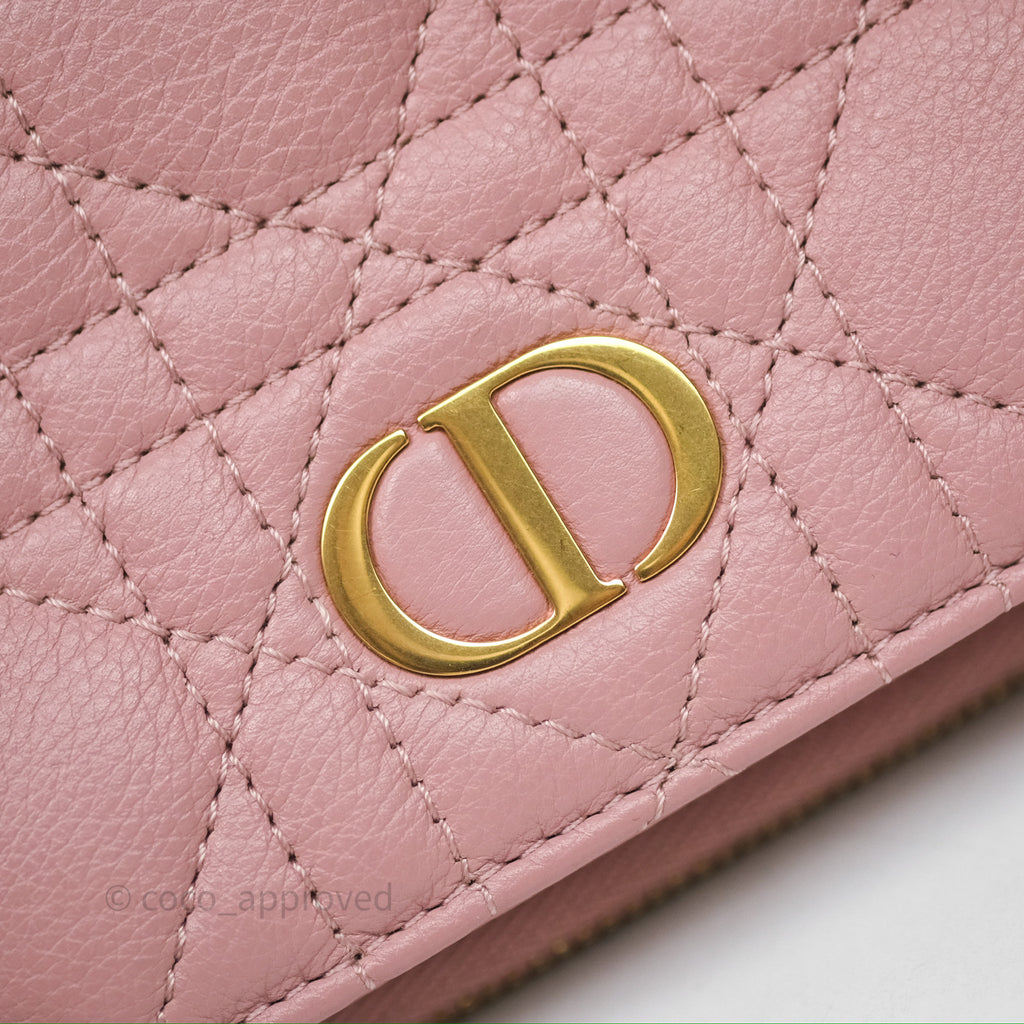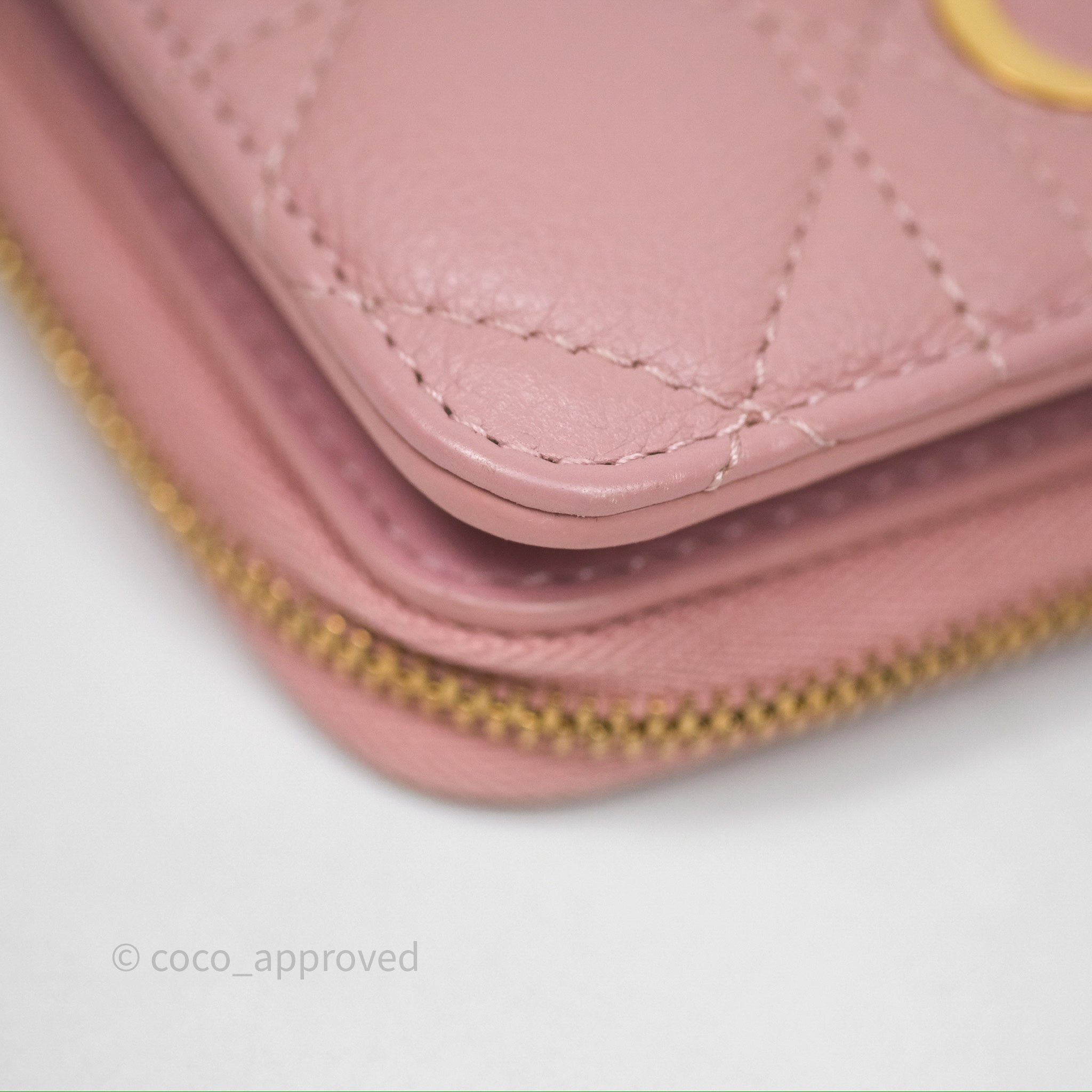 Christian Dior Medium Caro Scarlet Zipped Wallet Pink Cannage Calfskin