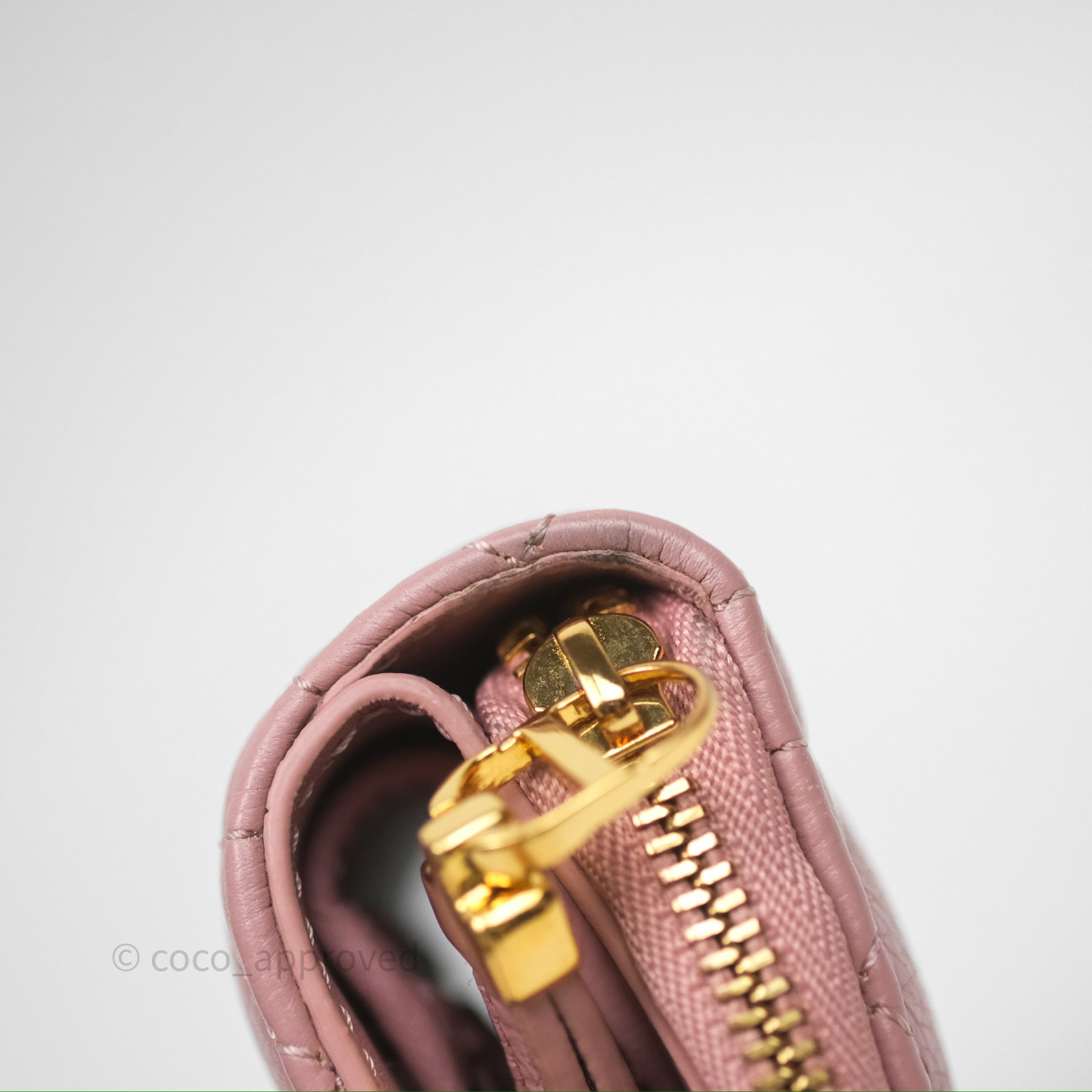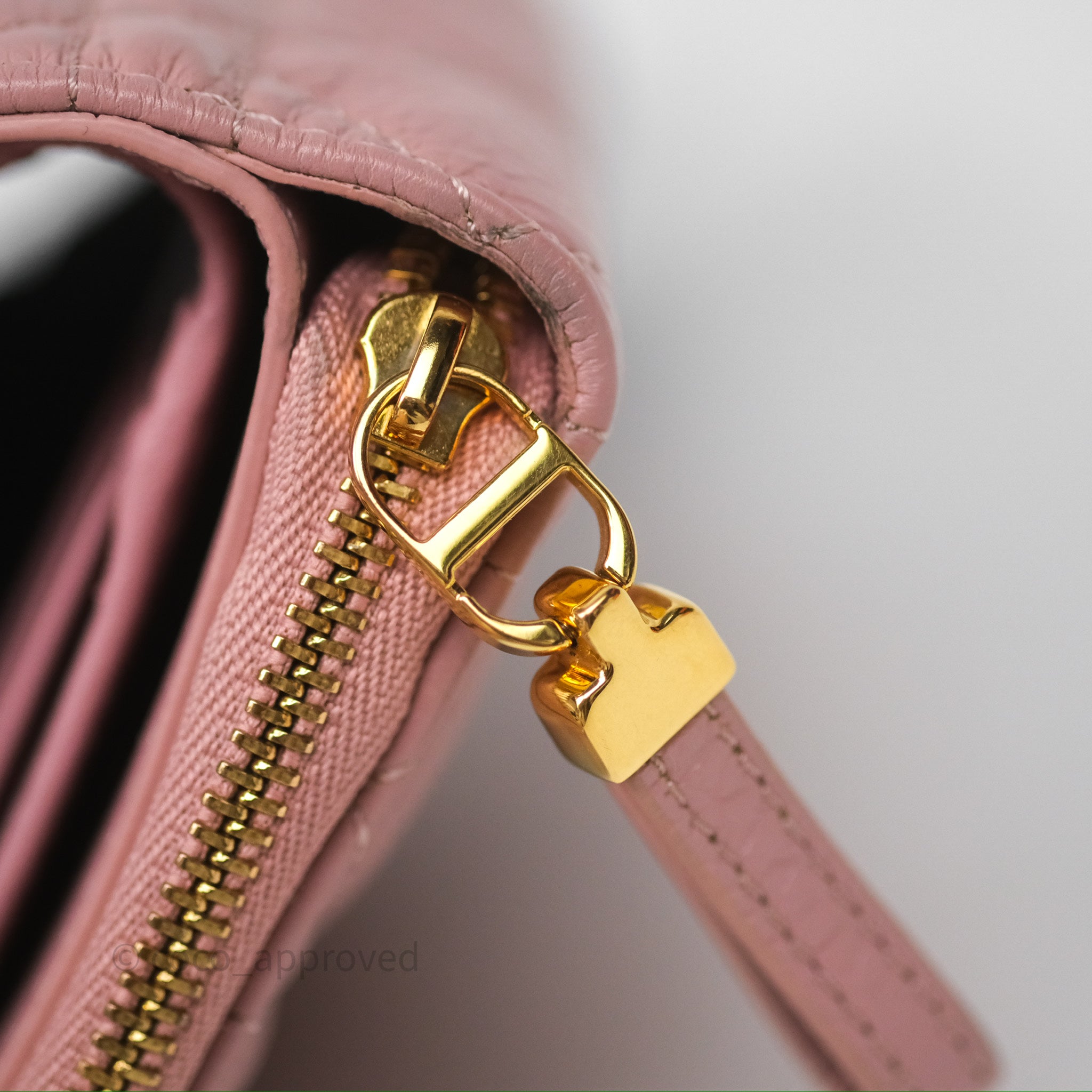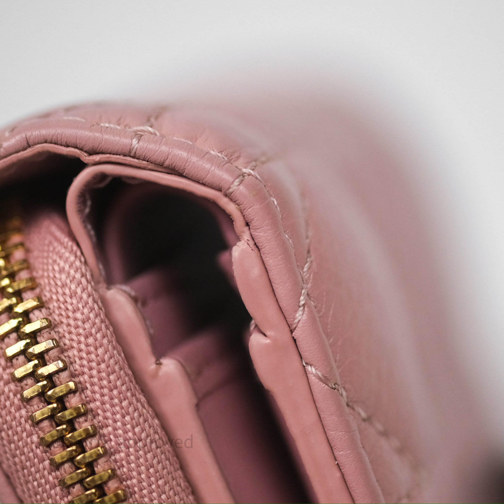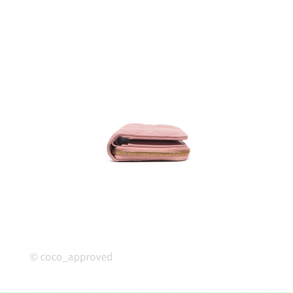 Christian Dior Medium Caro Scarlet Zipped Wallet Pink Cannage Calfskin