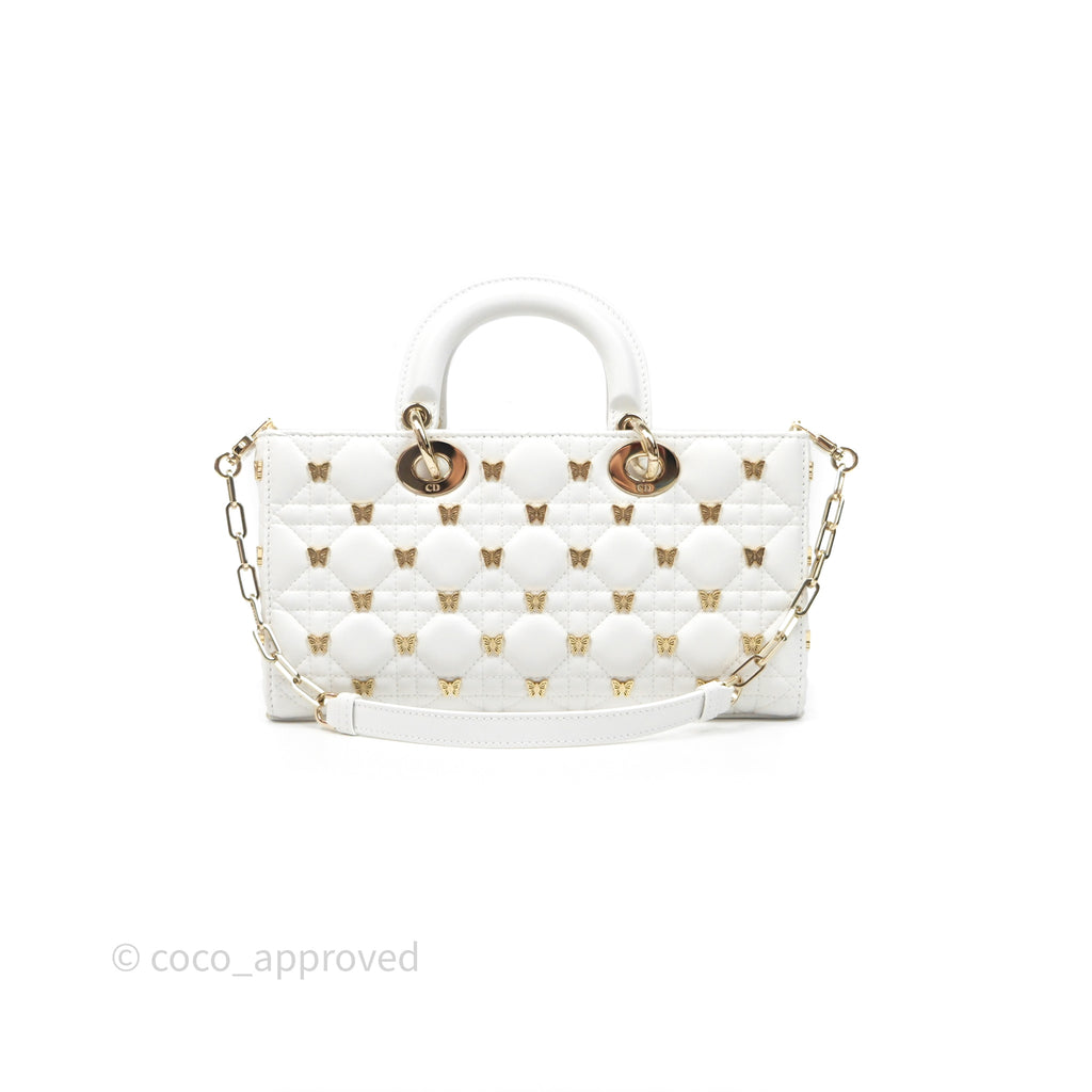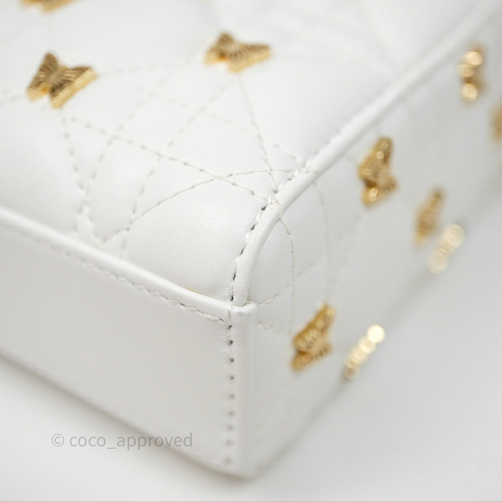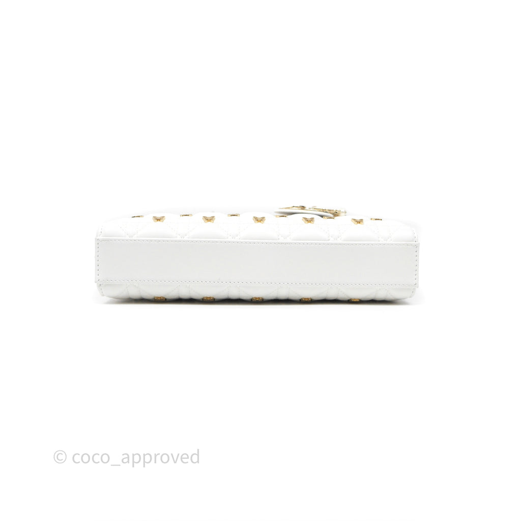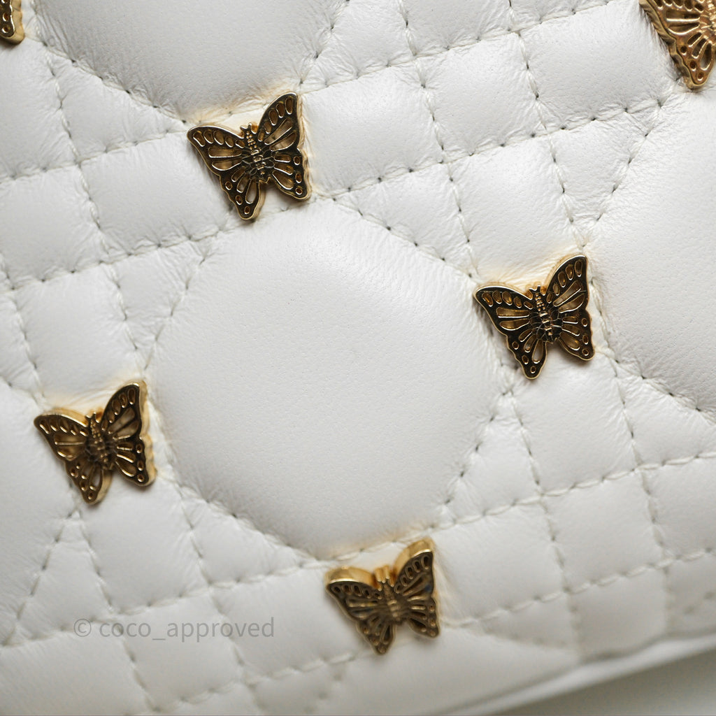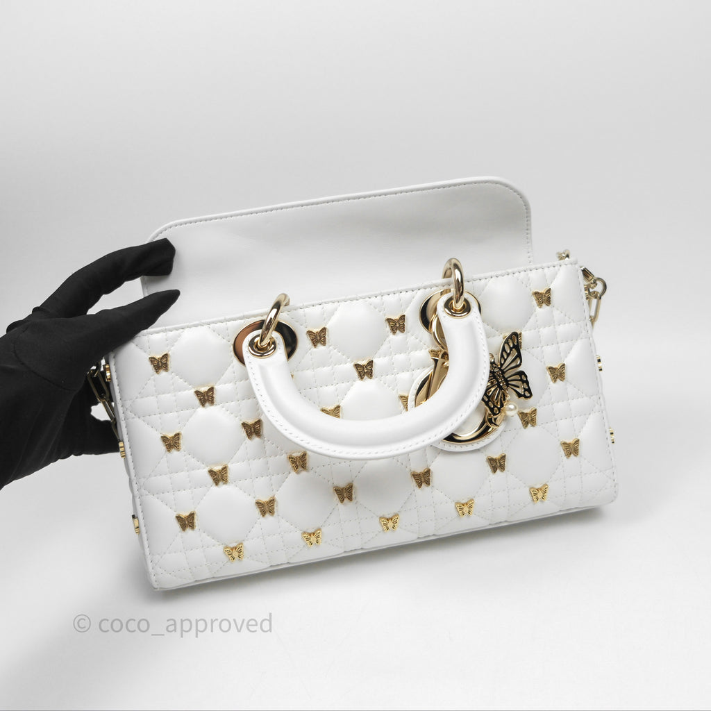 Christian Dior Medium Lady D-Joy Bag Butterfly White Lambskin Cannage Gold Hardware