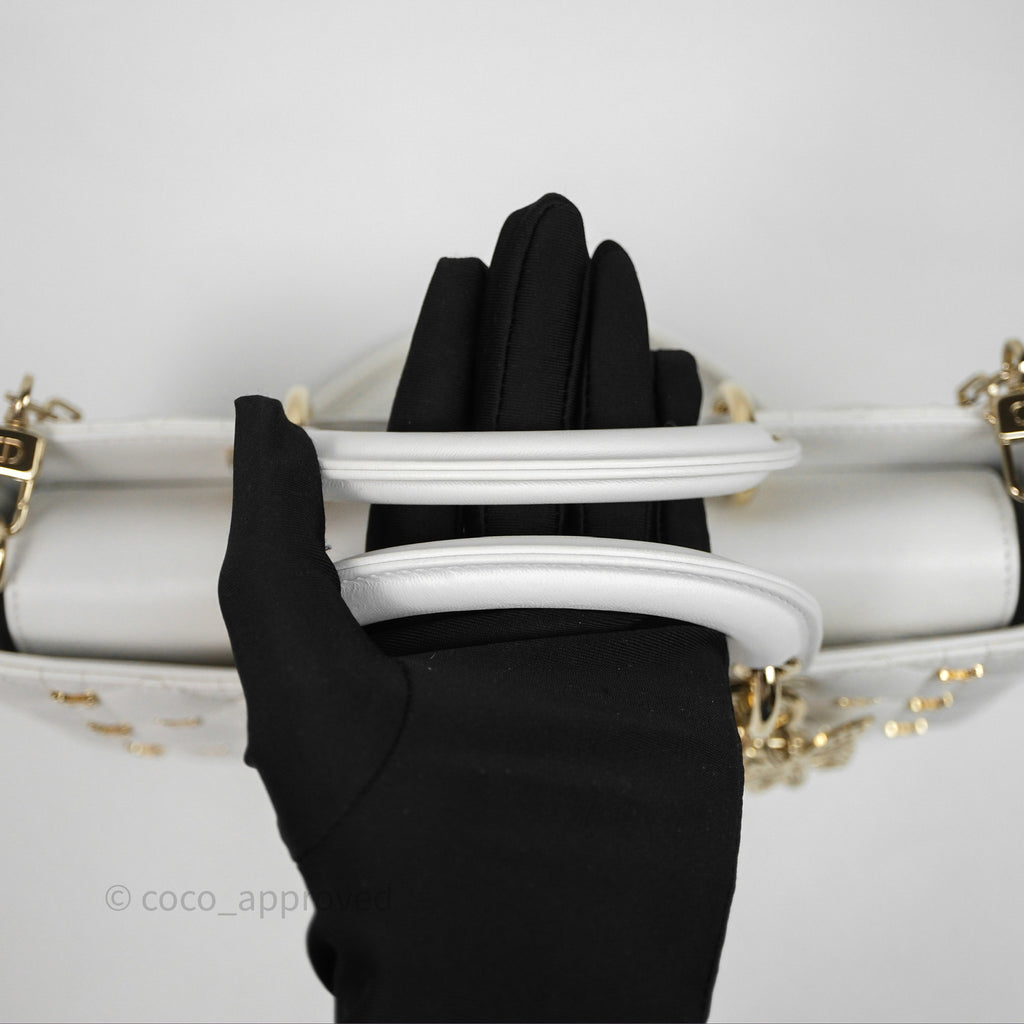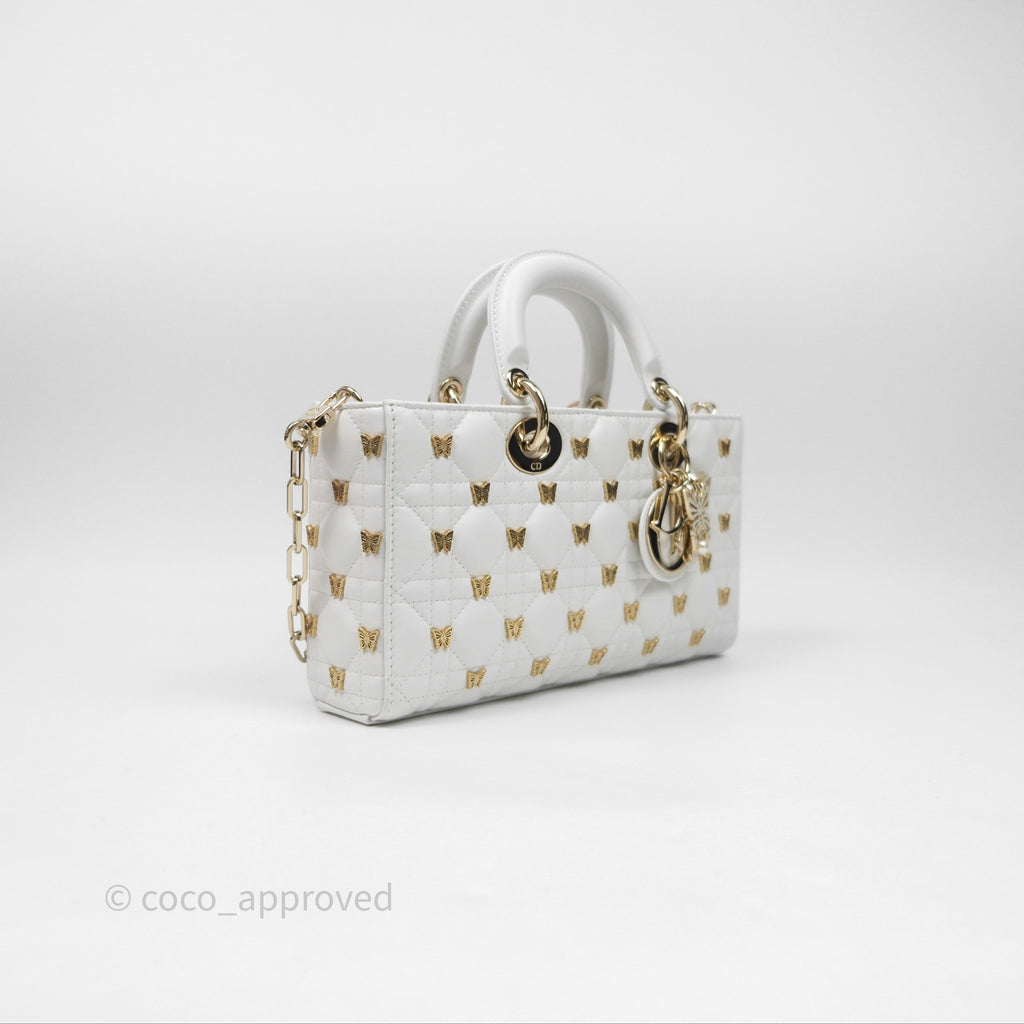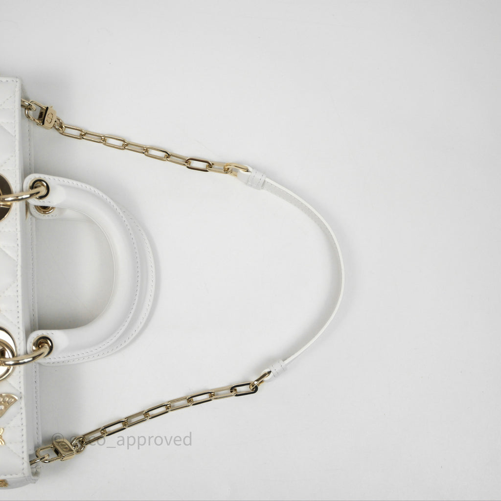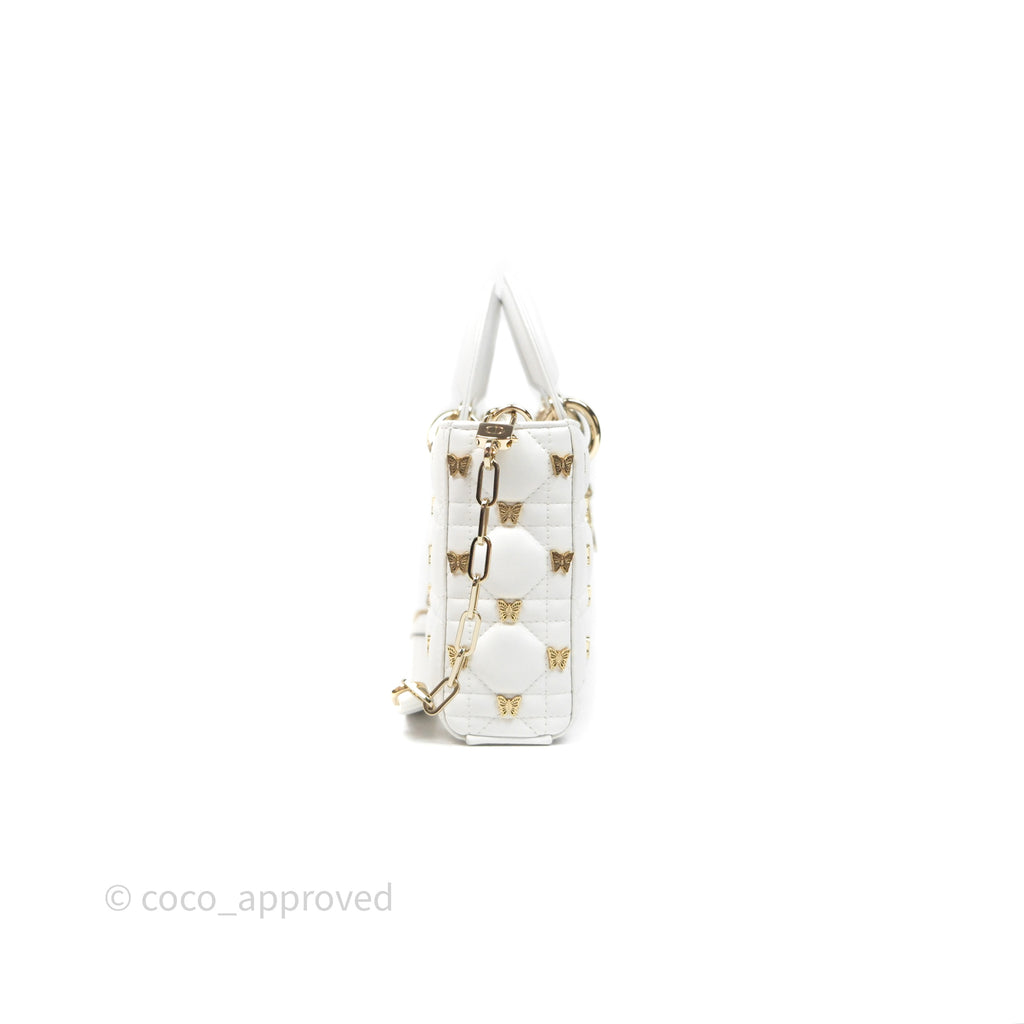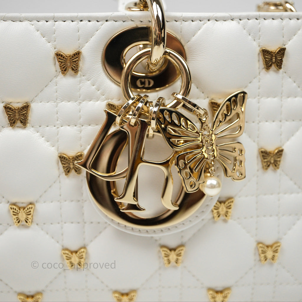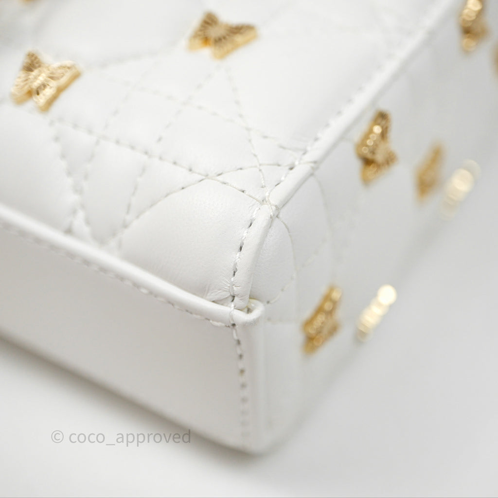 Christian Dior Medium Lady D-Joy Bag Butterfly White Lambskin Cannage Gold Hardware