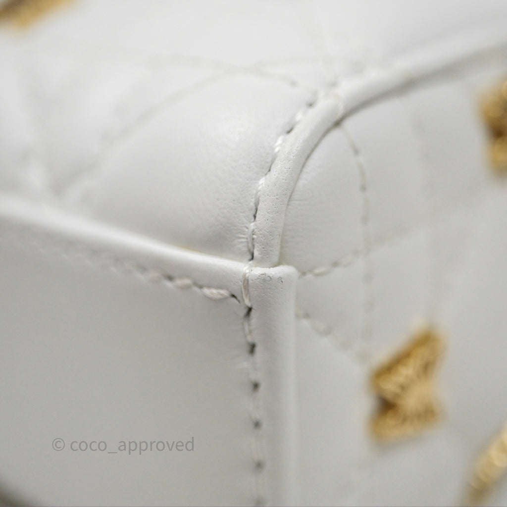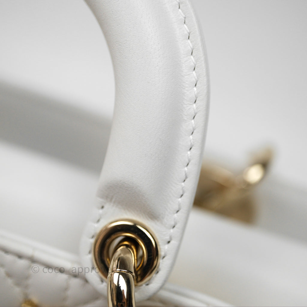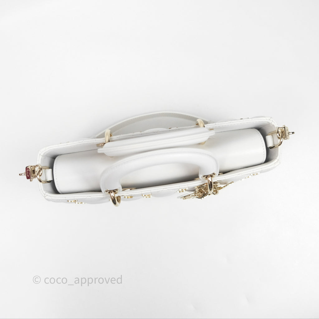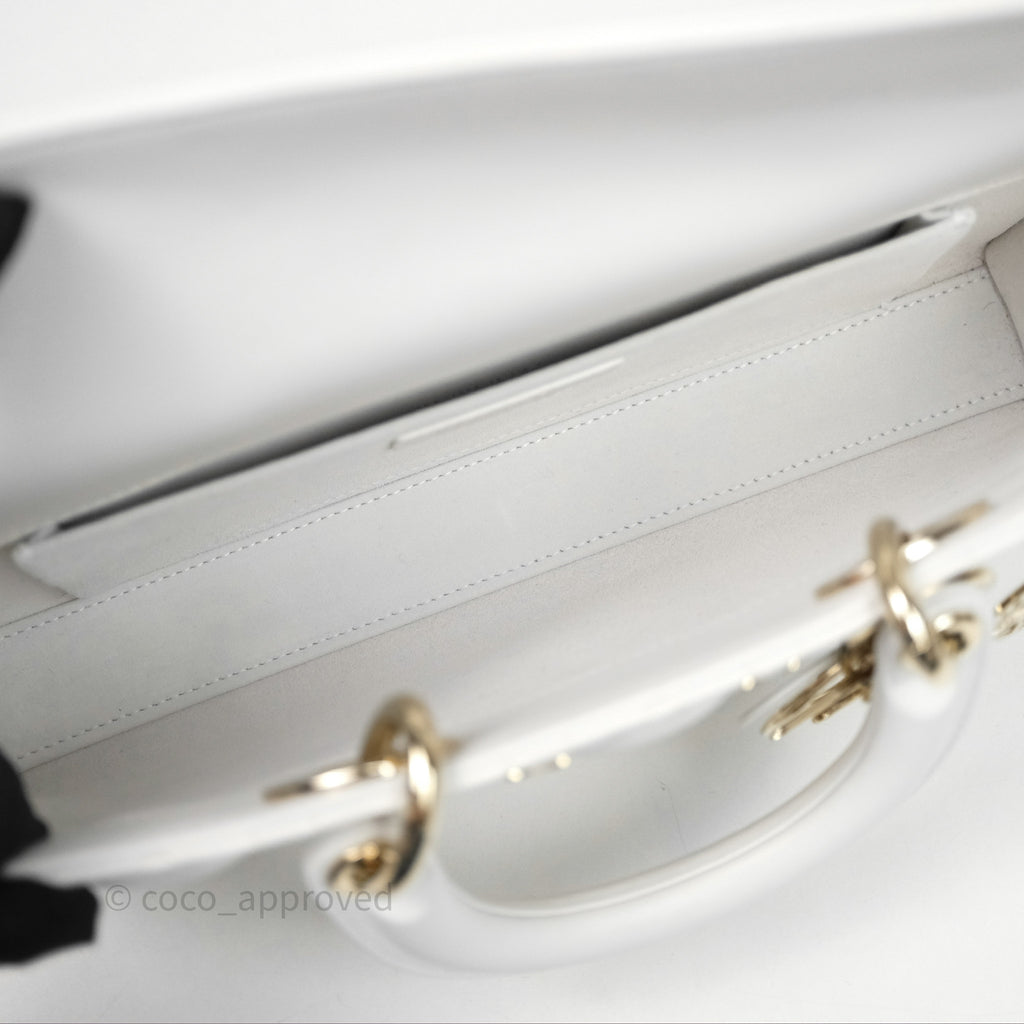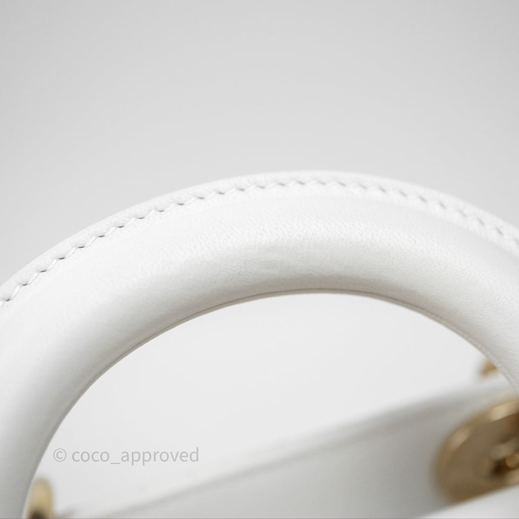 Christian Dior Medium Lady D-Joy Bag Butterfly White Lambskin Cannage Gold Hardware