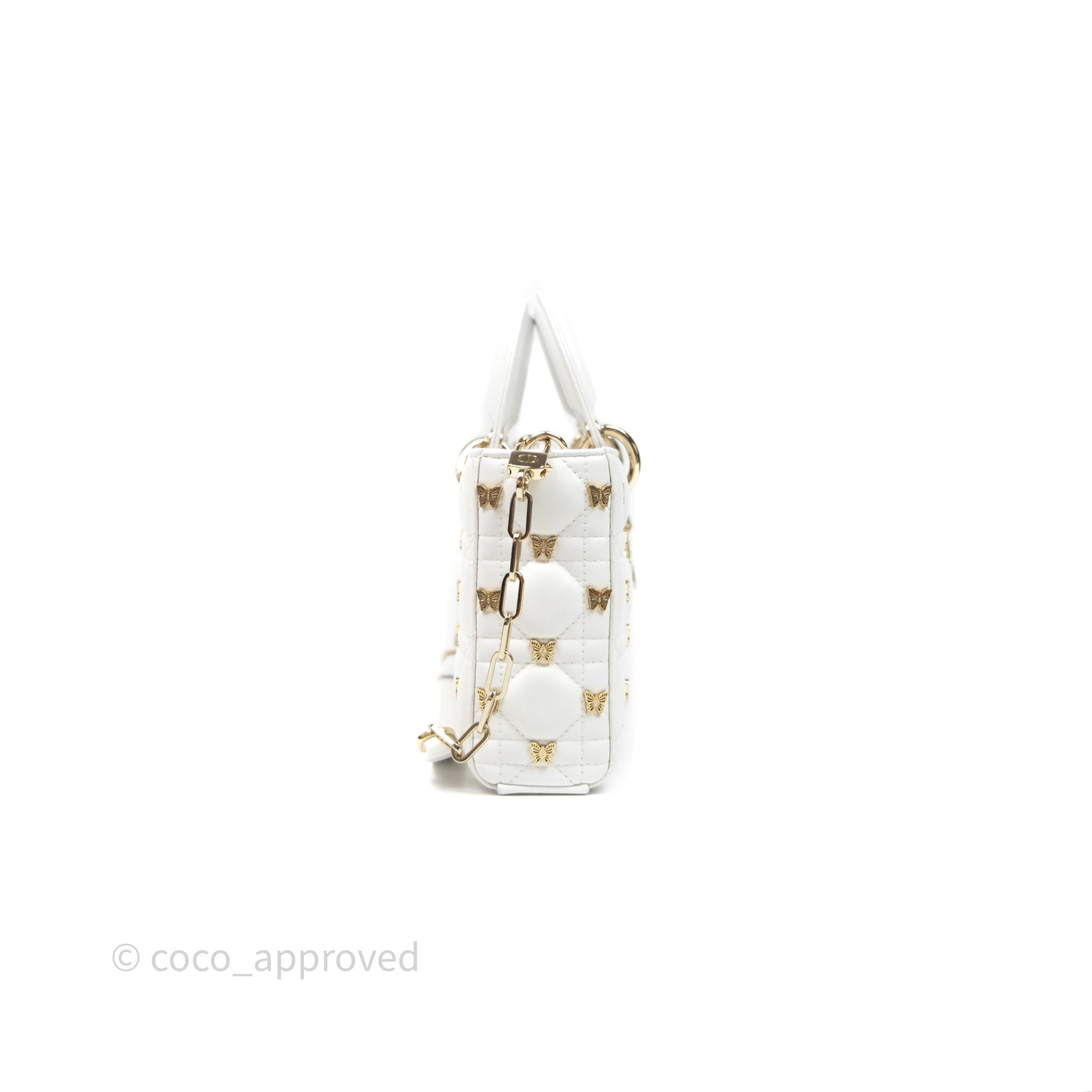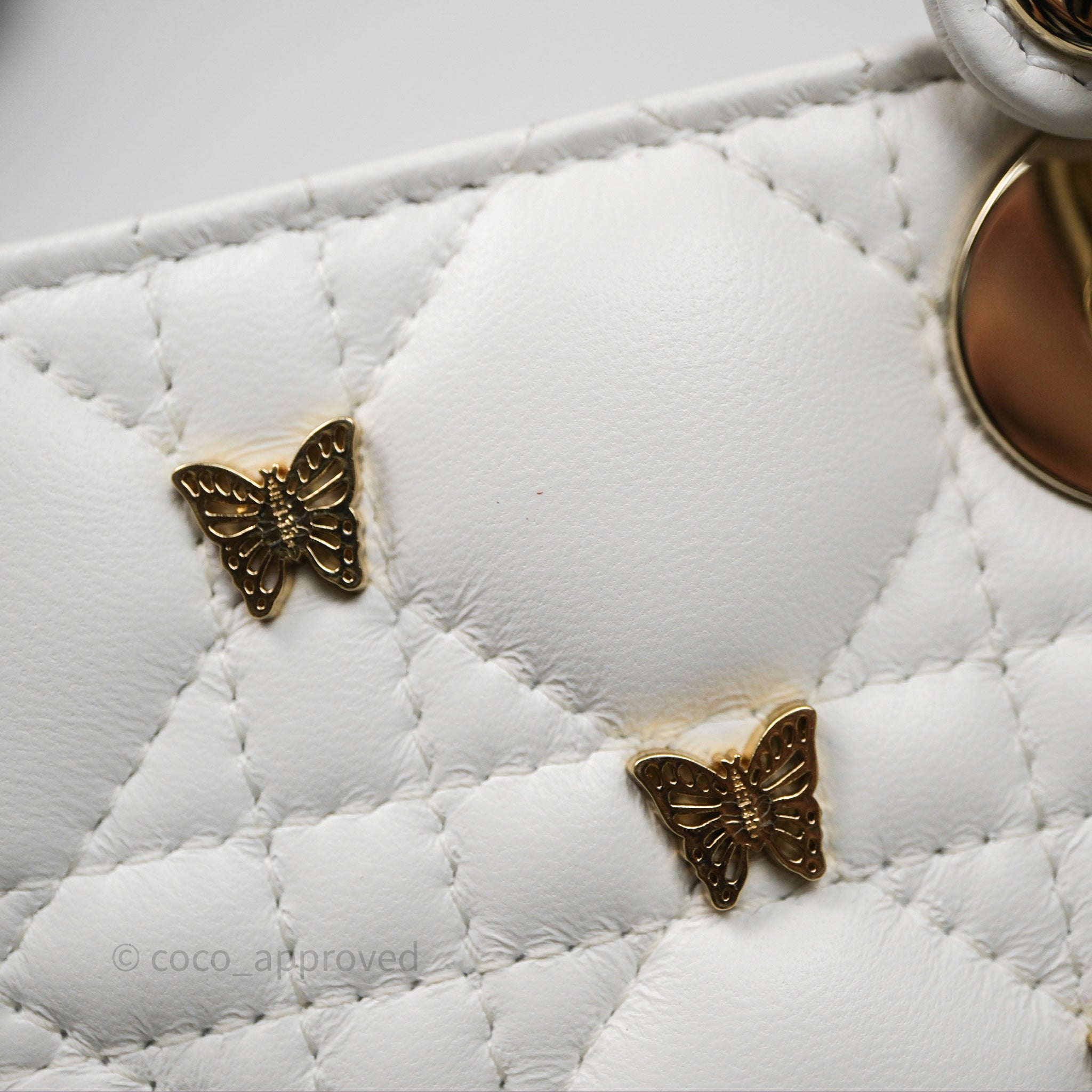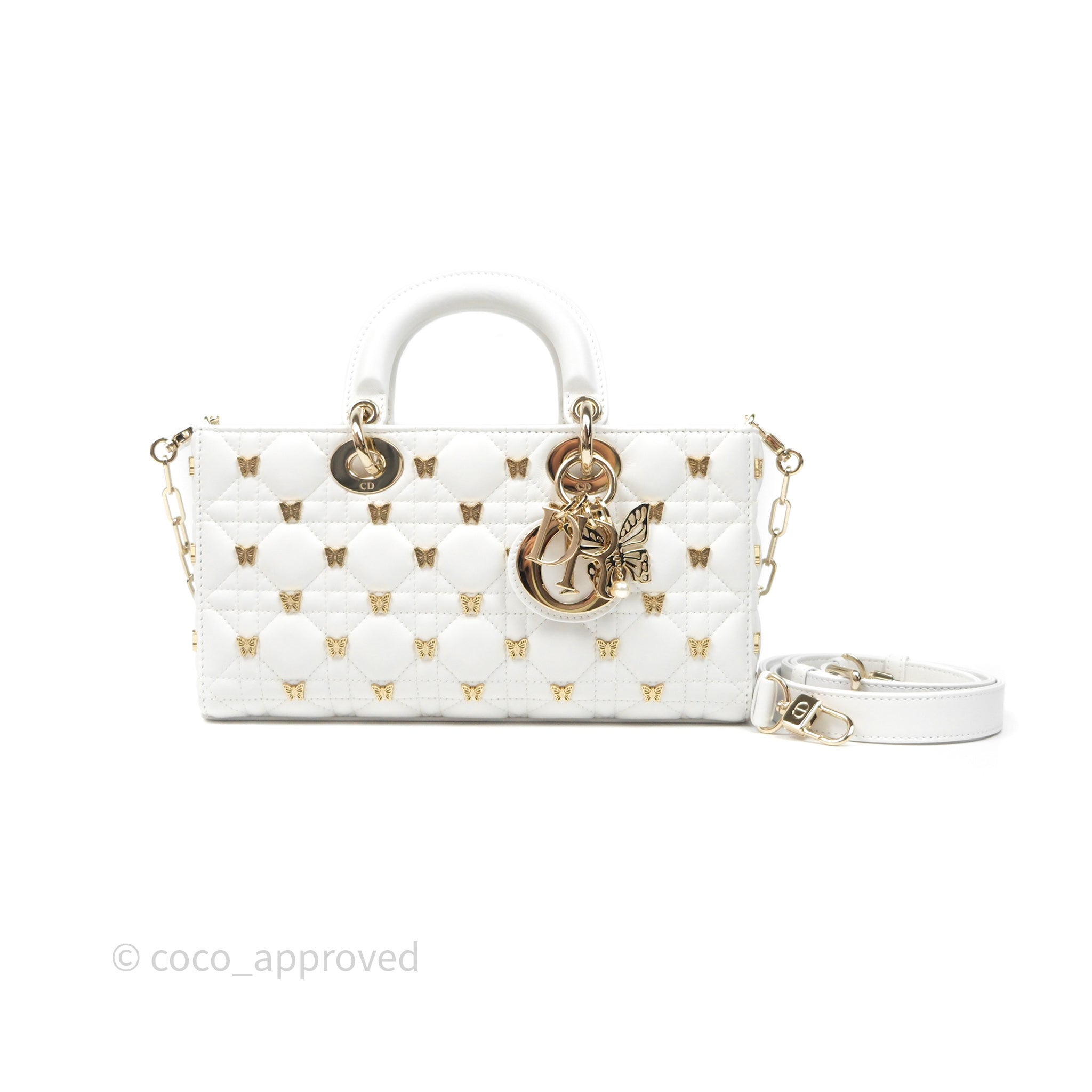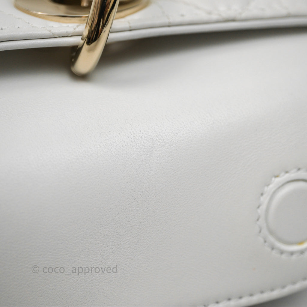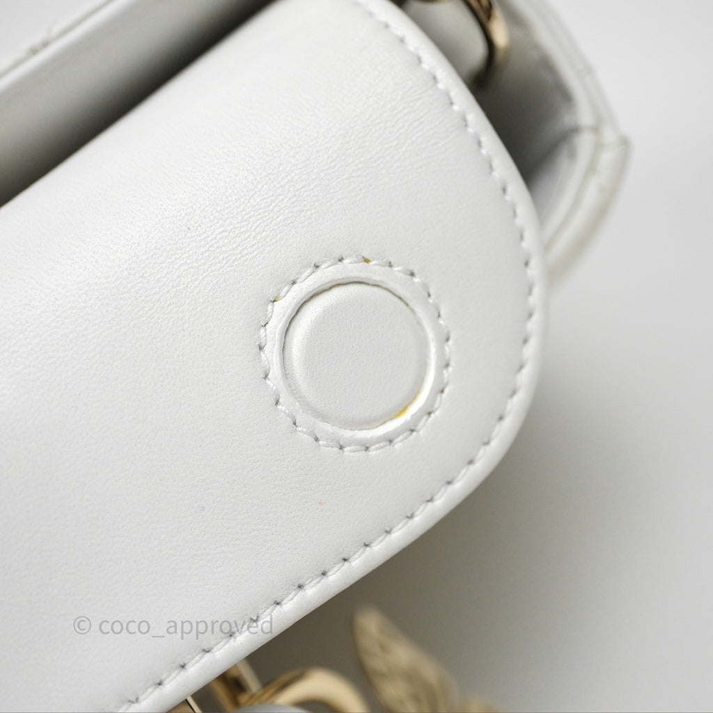 Christian Dior Medium Lady D-Joy Bag Butterfly White Lambskin Cannage Gold Hardware