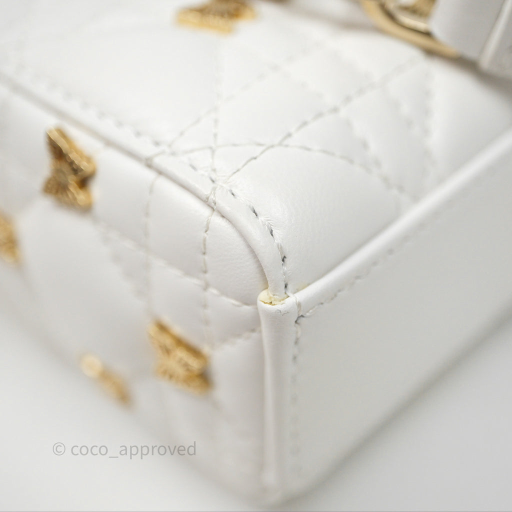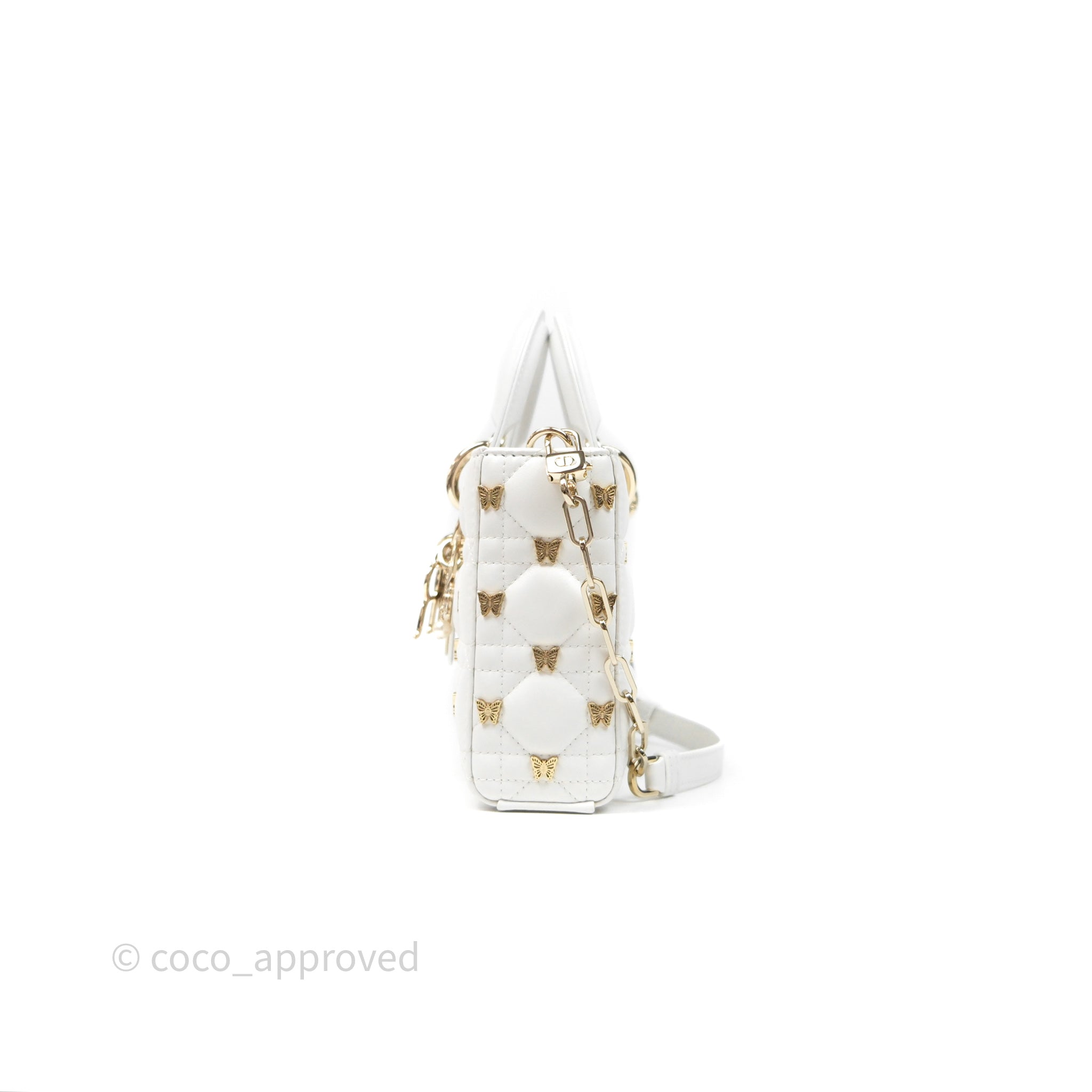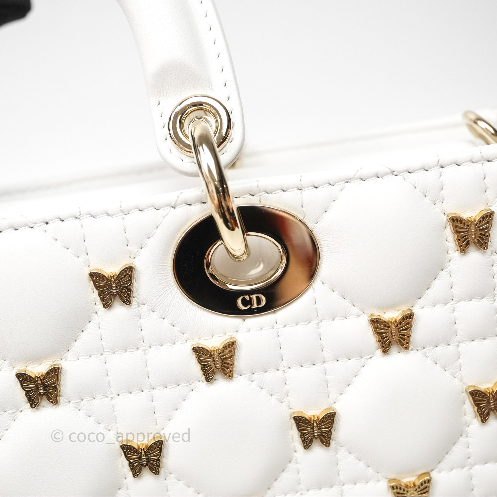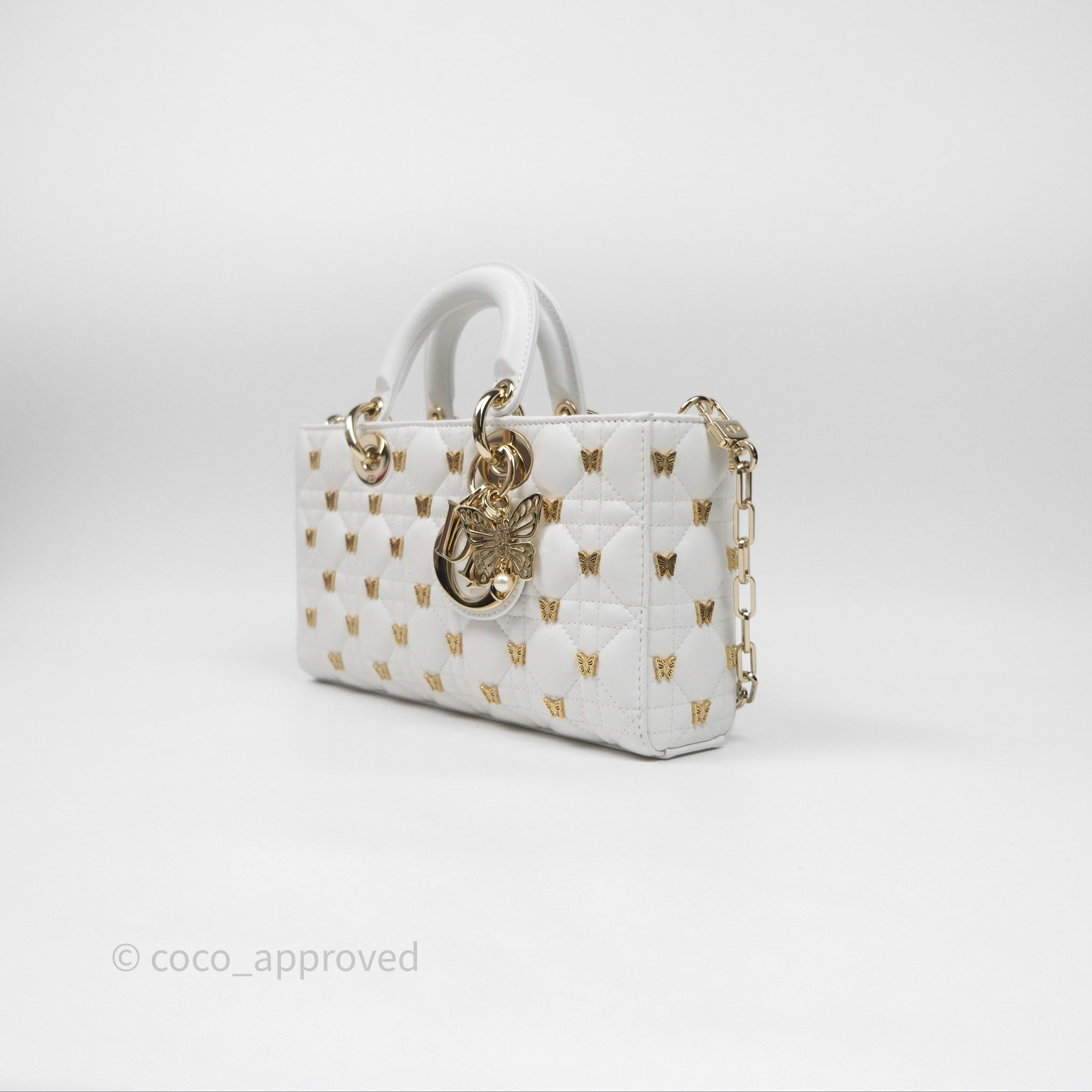 Christian Dior Medium Lady D-Joy Bag Butterfly White Lambskin Cannage Gold Hardware