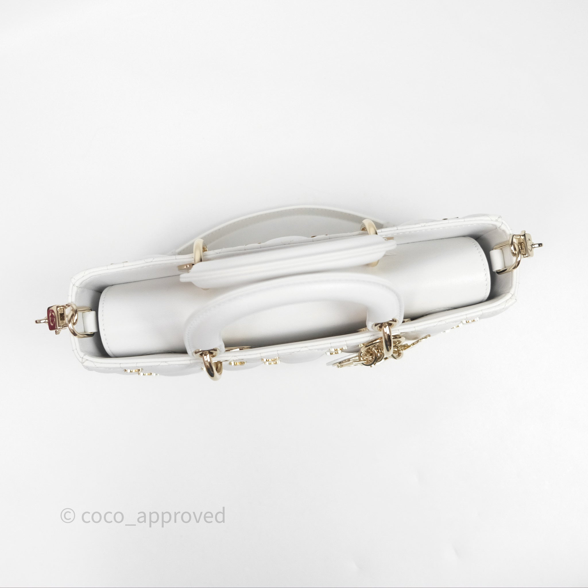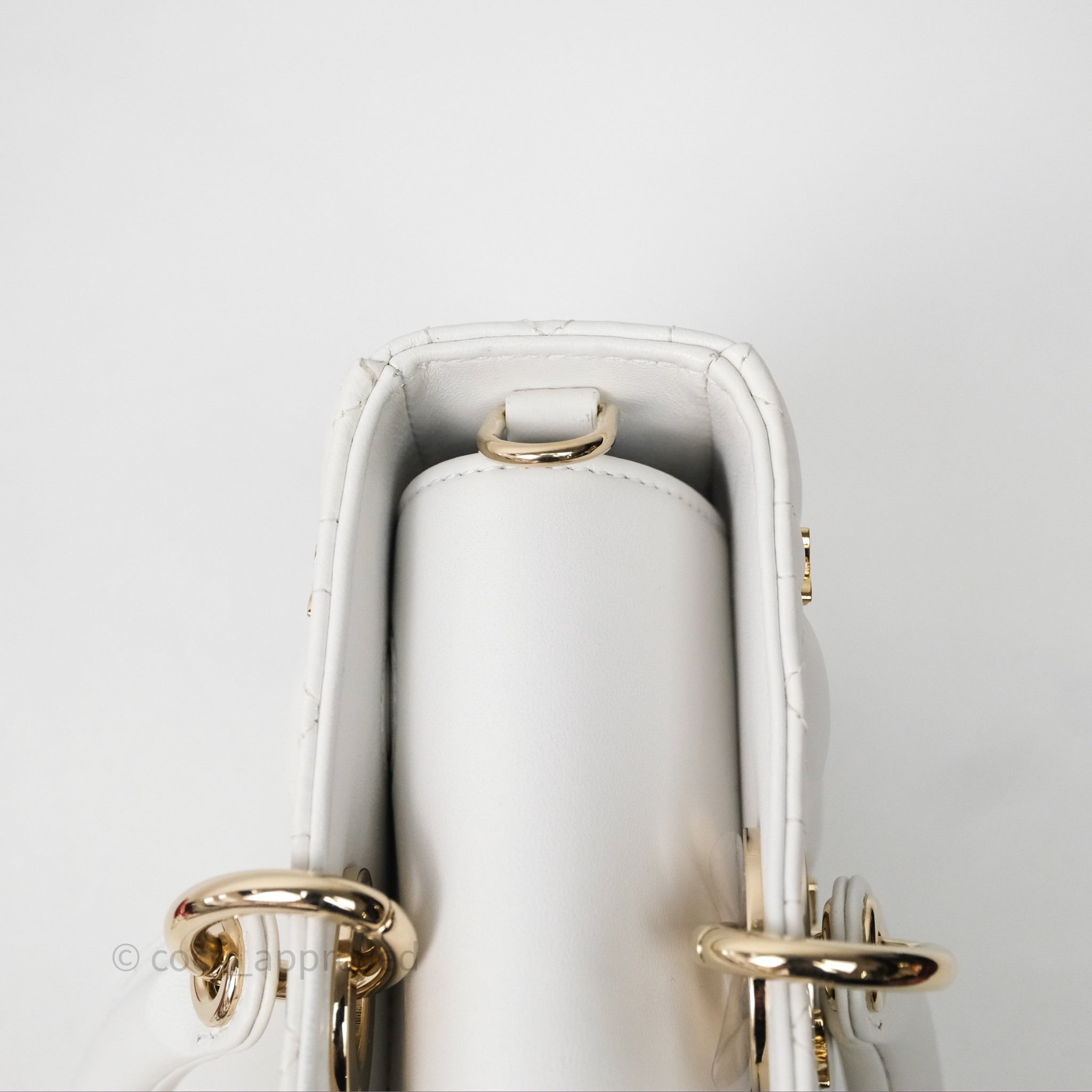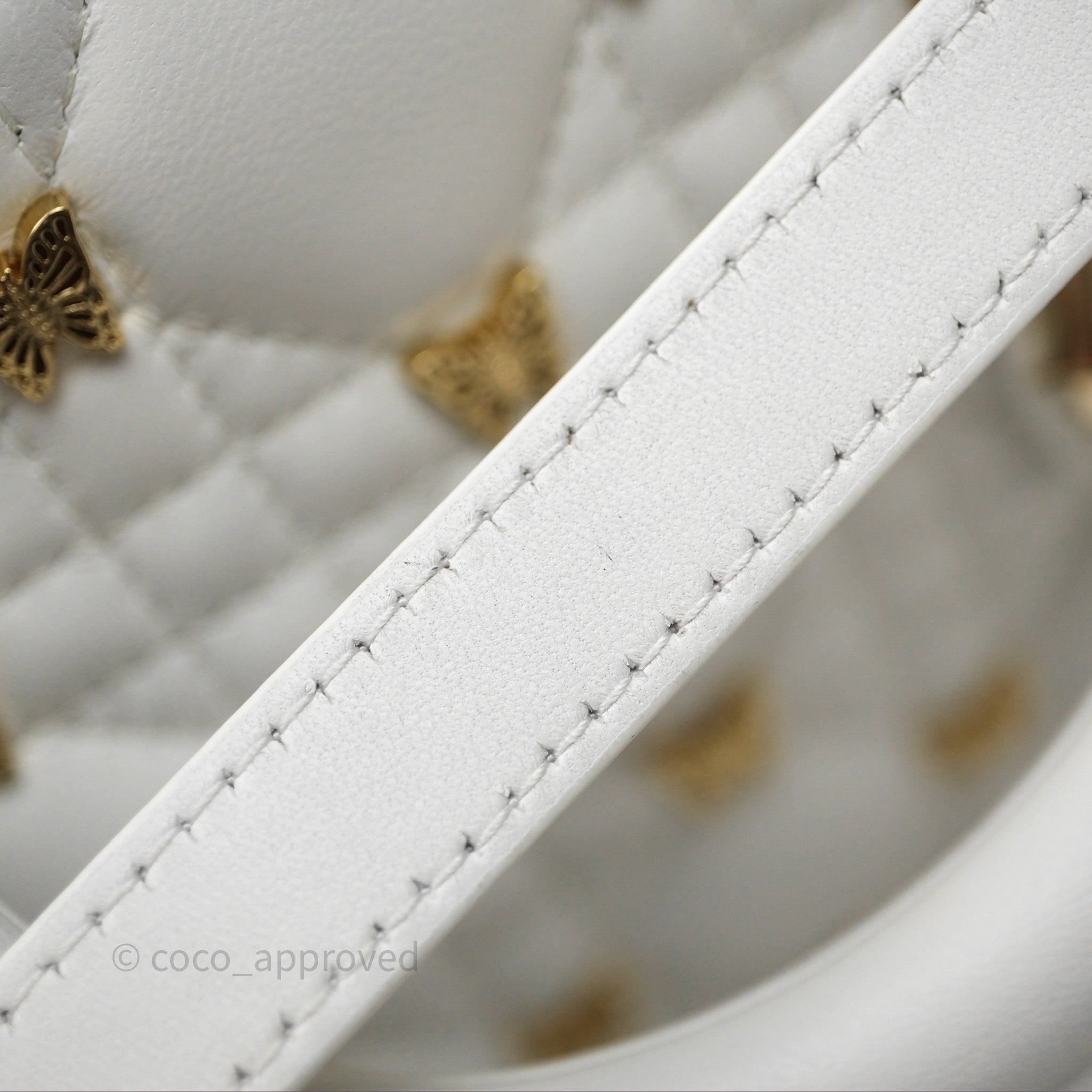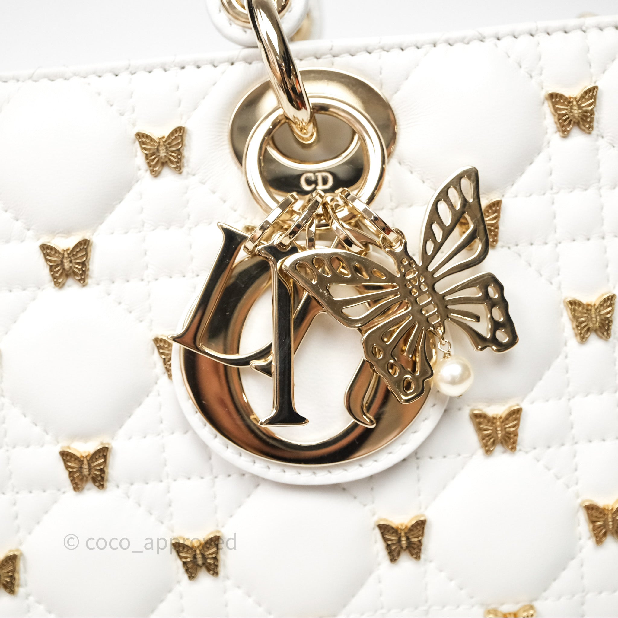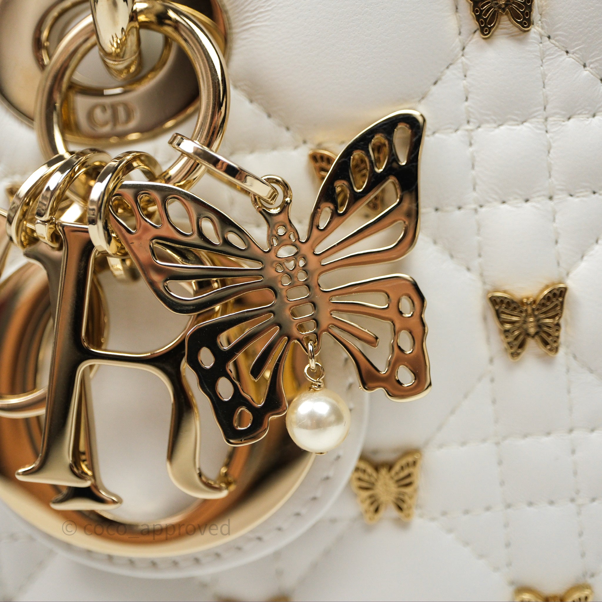 Christian Dior Medium Lady D-Joy Bag Butterfly White Lambskin Cannage Gold Hardware
