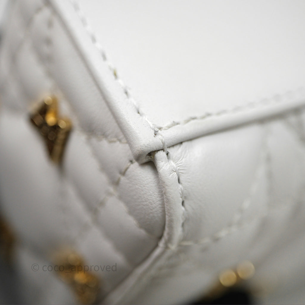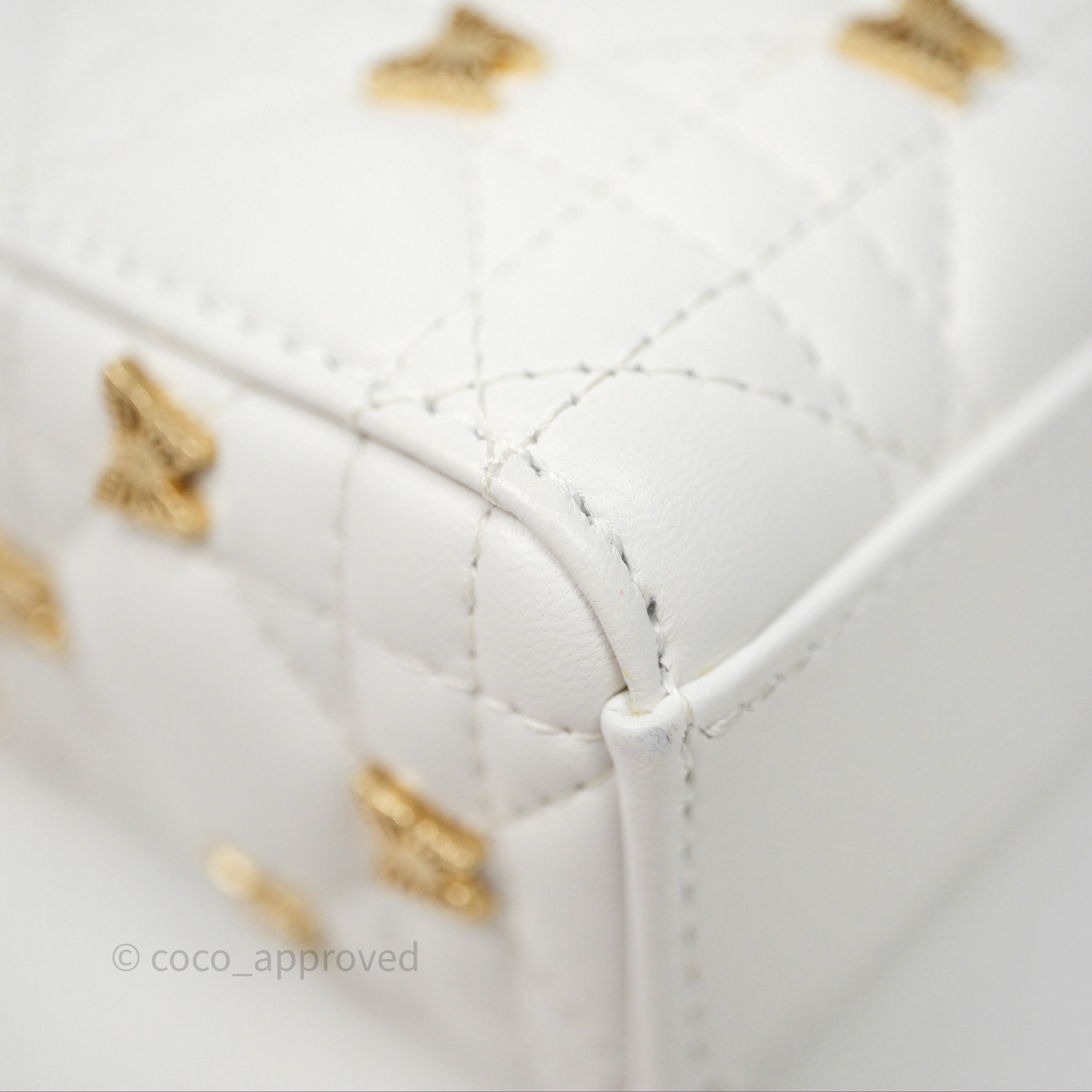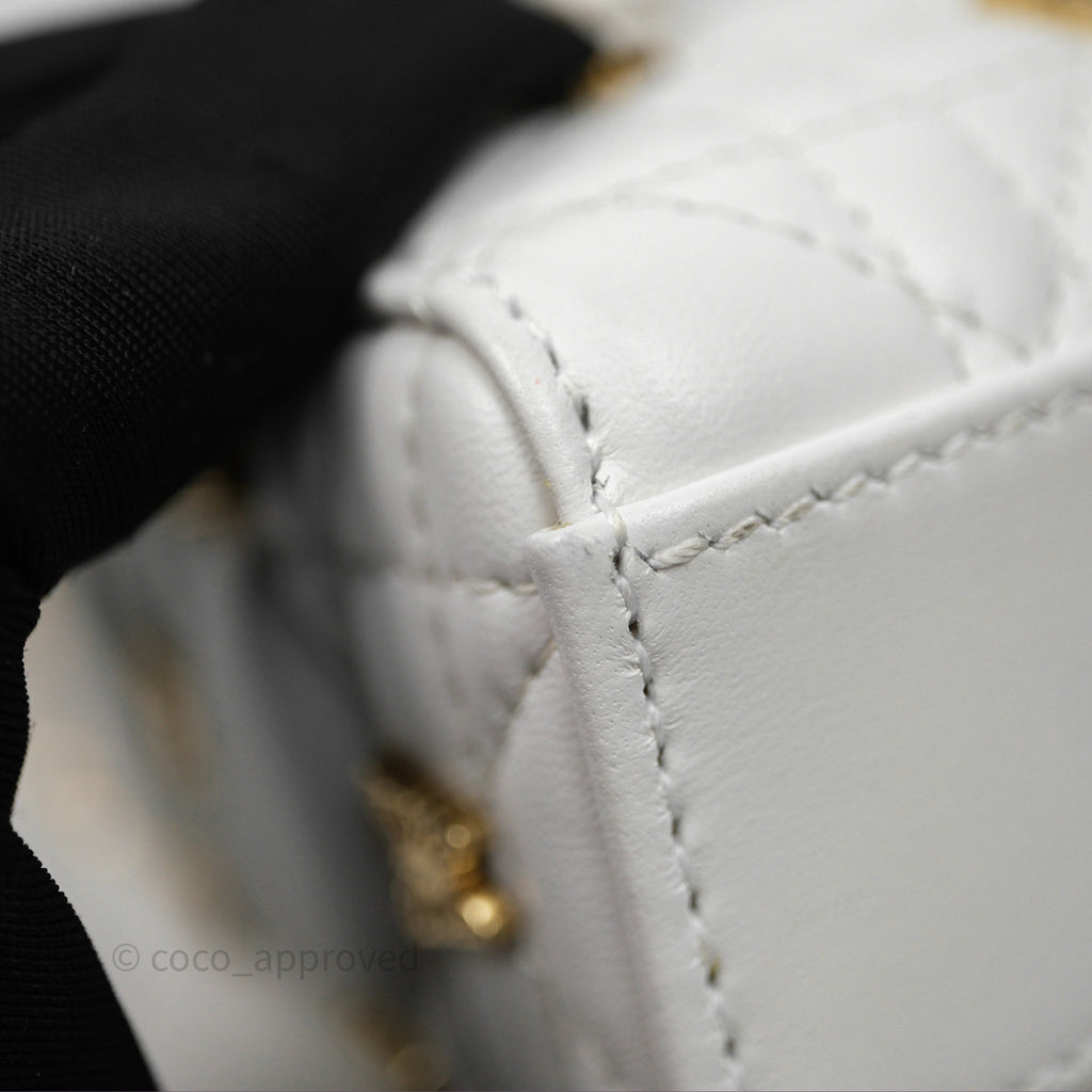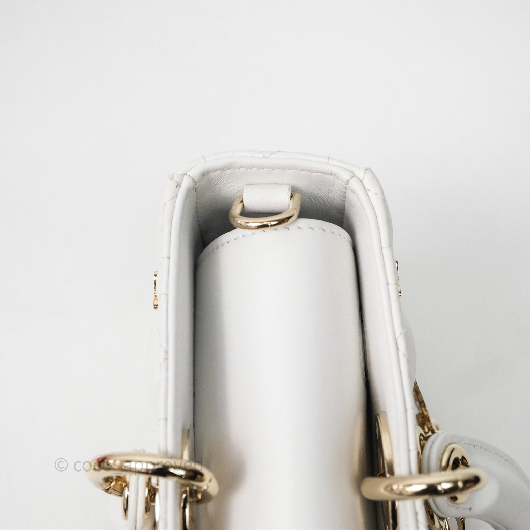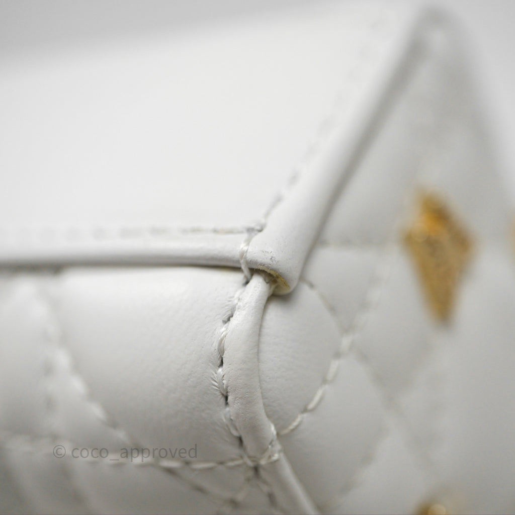 Christian Dior Medium Lady D-Joy Bag Butterfly White Lambskin Cannage Gold Hardware