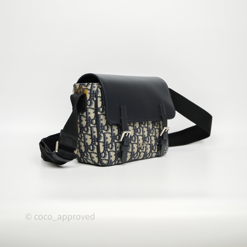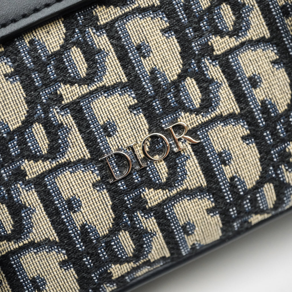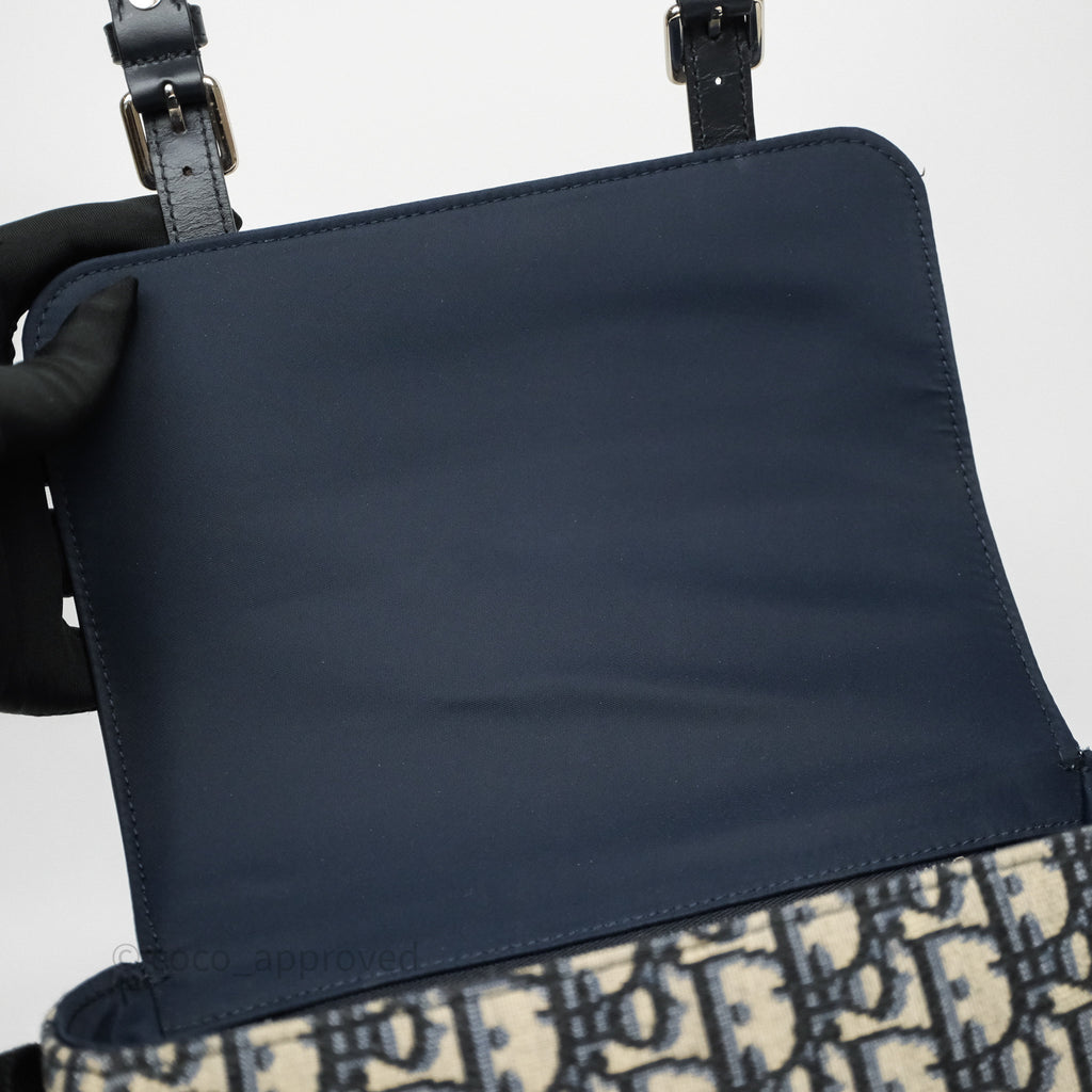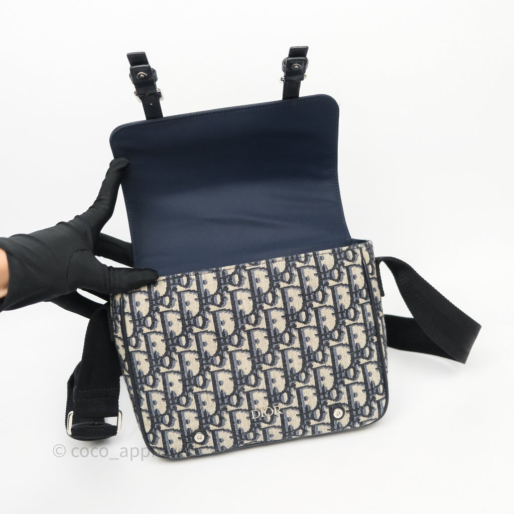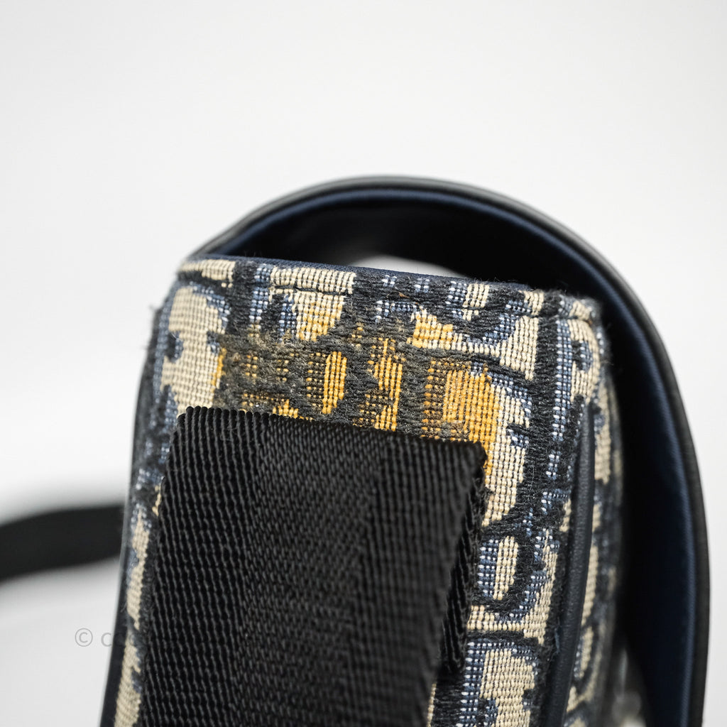 Christian Dior Messenger Bag in Blue Smooth Calfskin and Beige/ Black Dior Oblique Jacquard