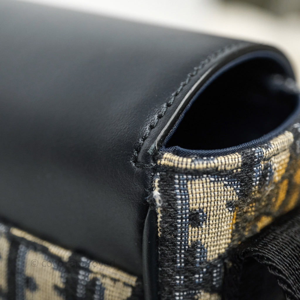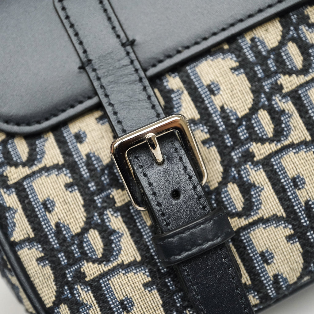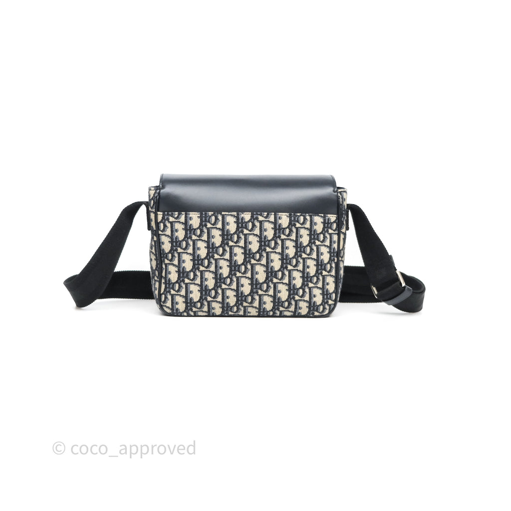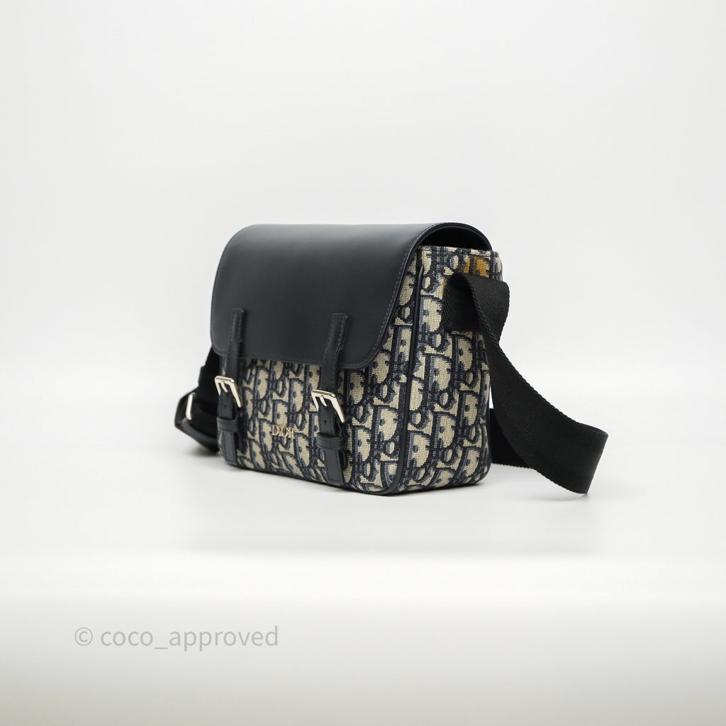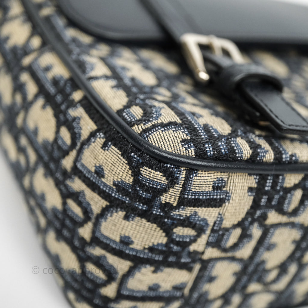Christian Dior Messenger Bag in Blue Smooth Calfskin and Beige/ Black Dior Oblique Jacquard