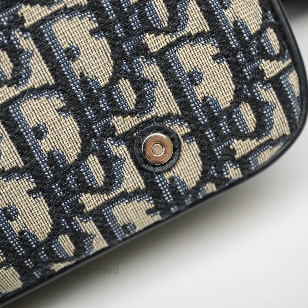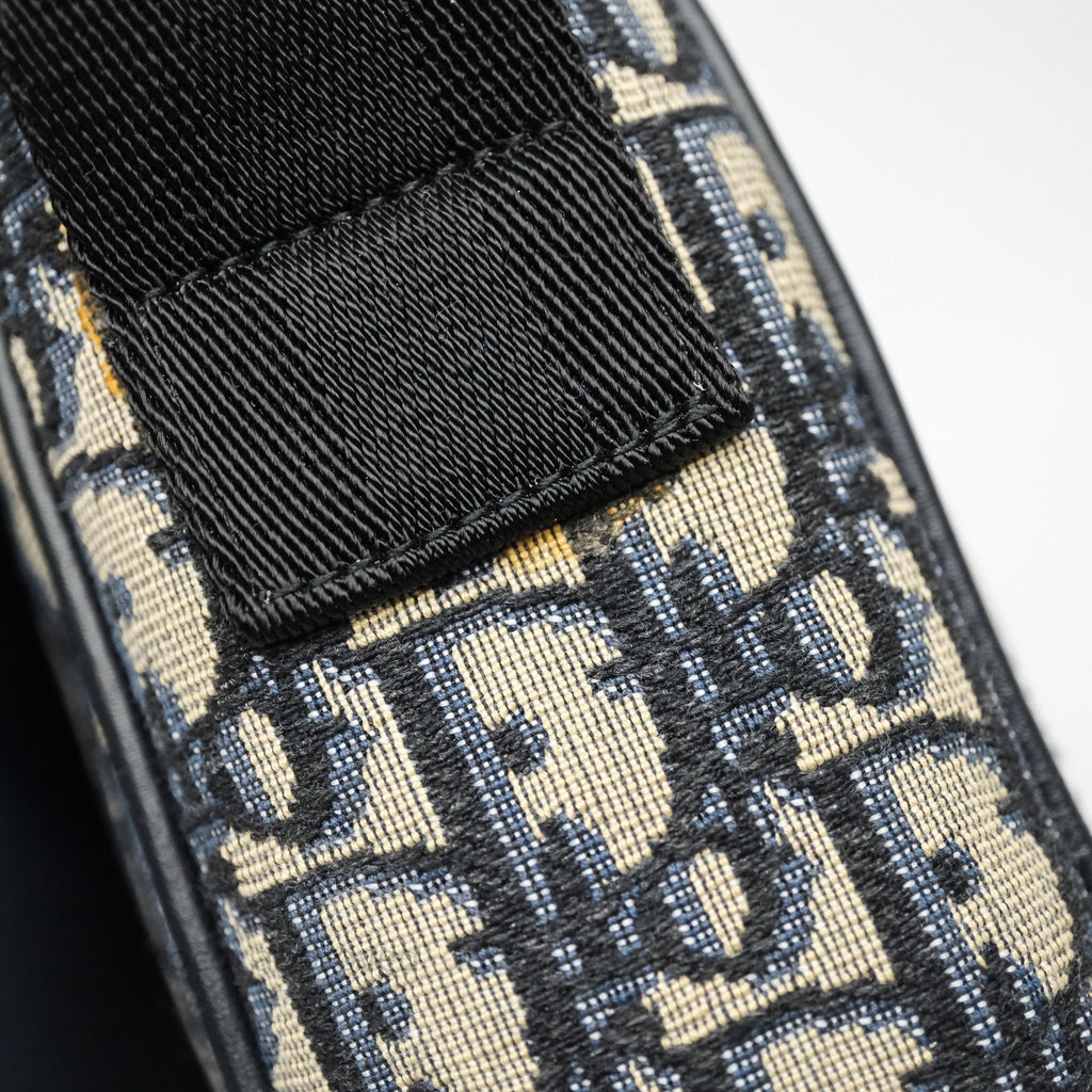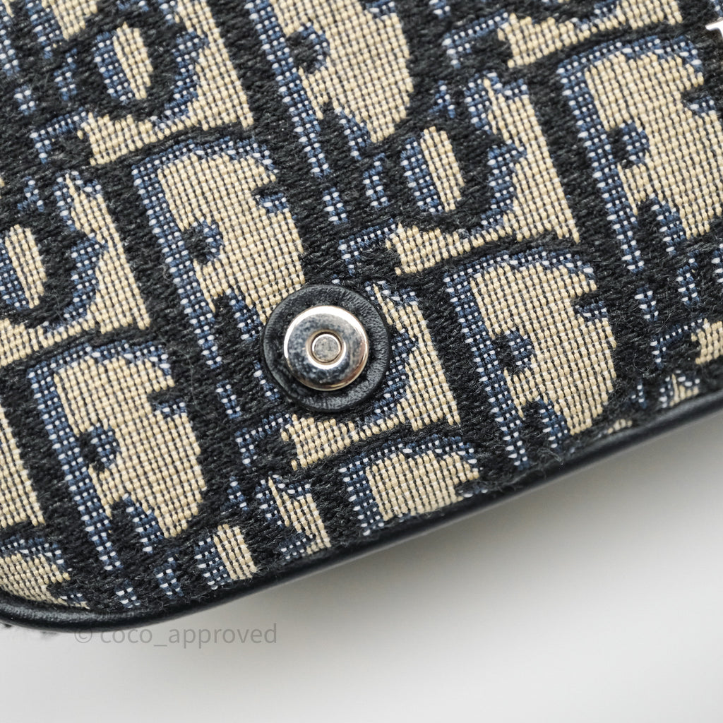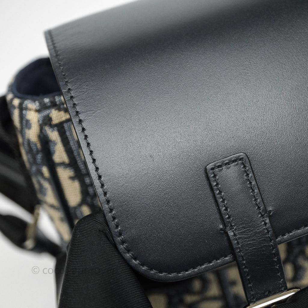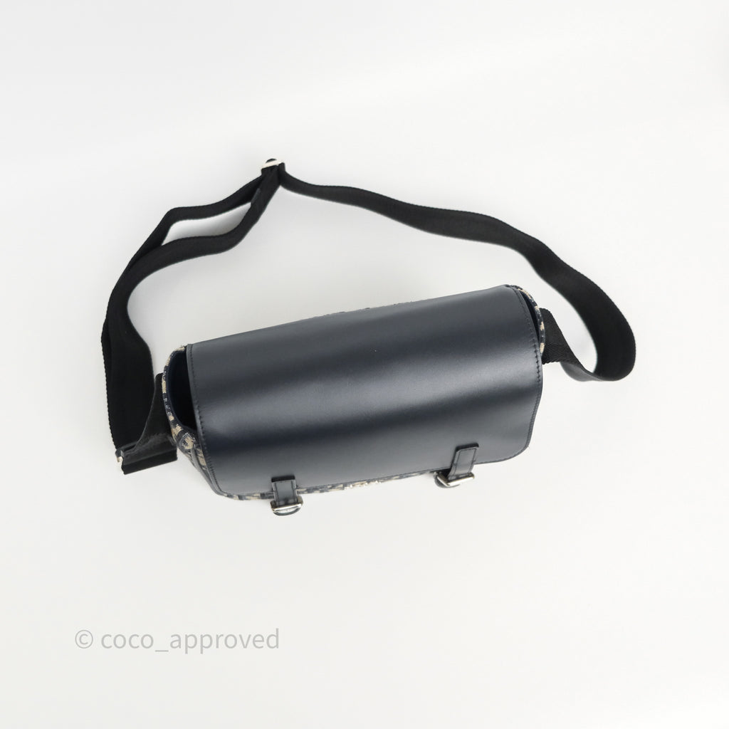 Christian Dior Messenger Bag in Blue Smooth Calfskin and Beige/ Black Dior Oblique Jacquard