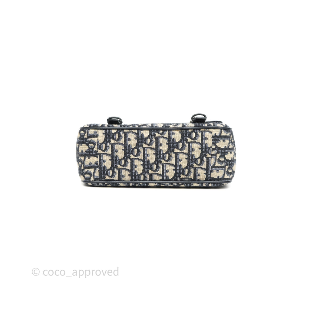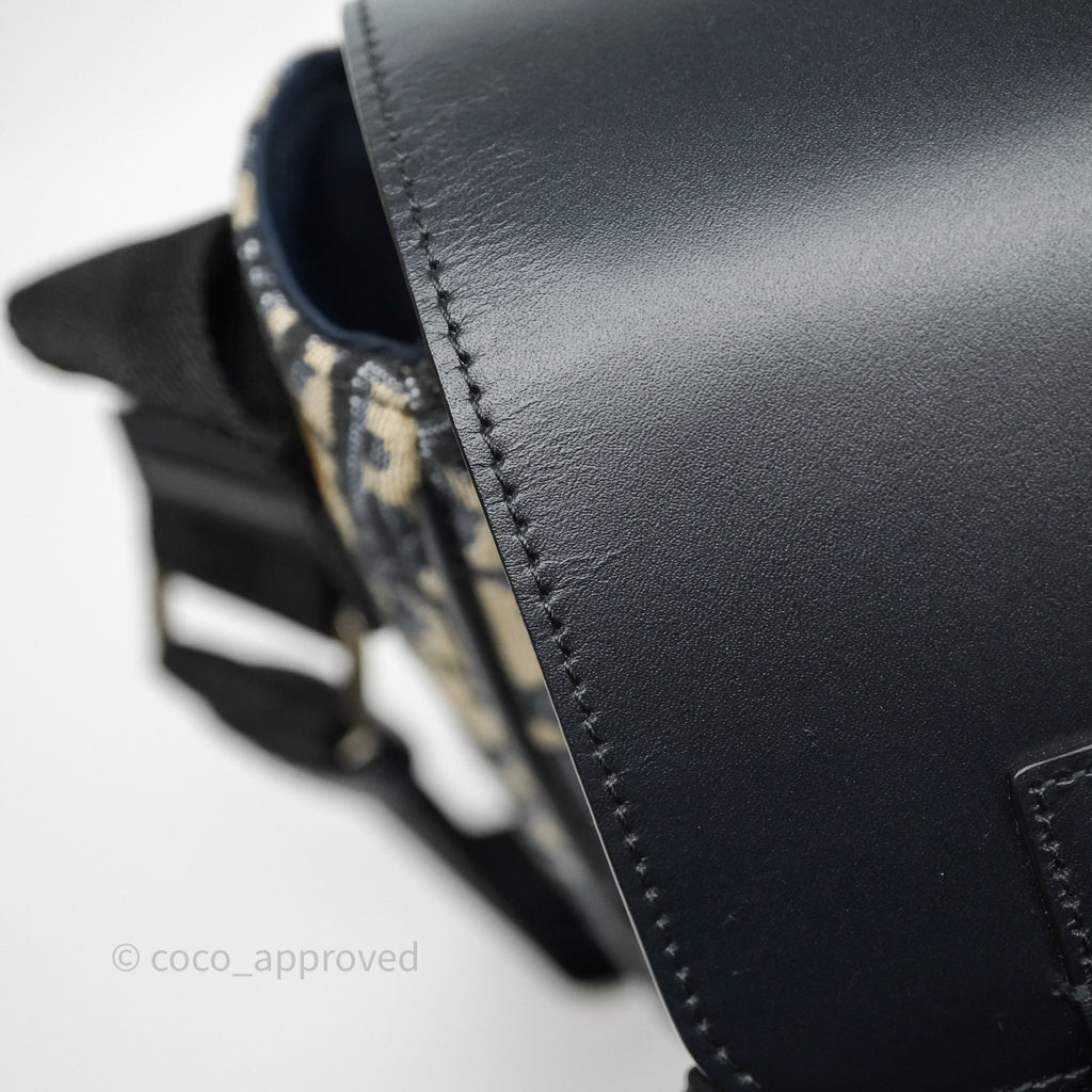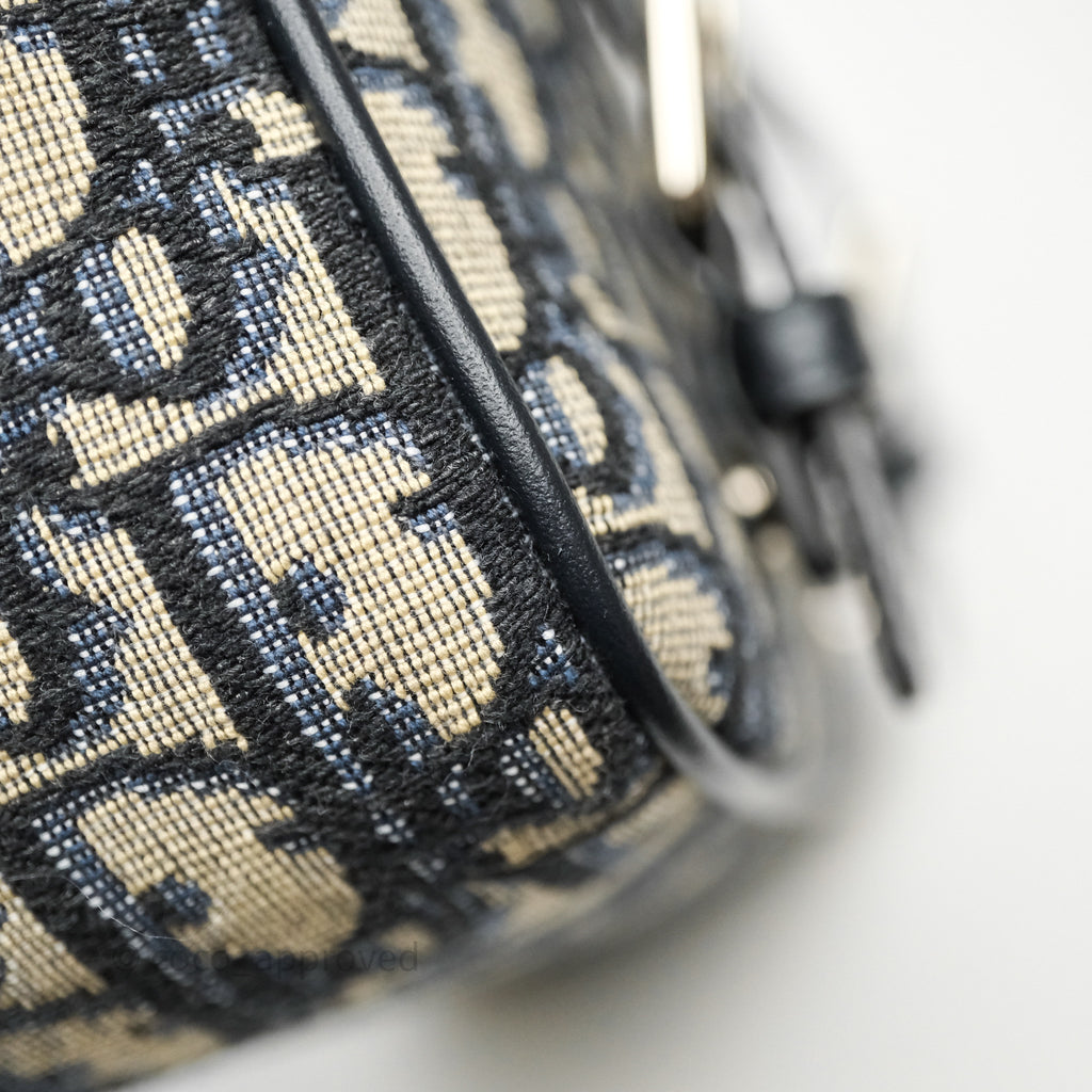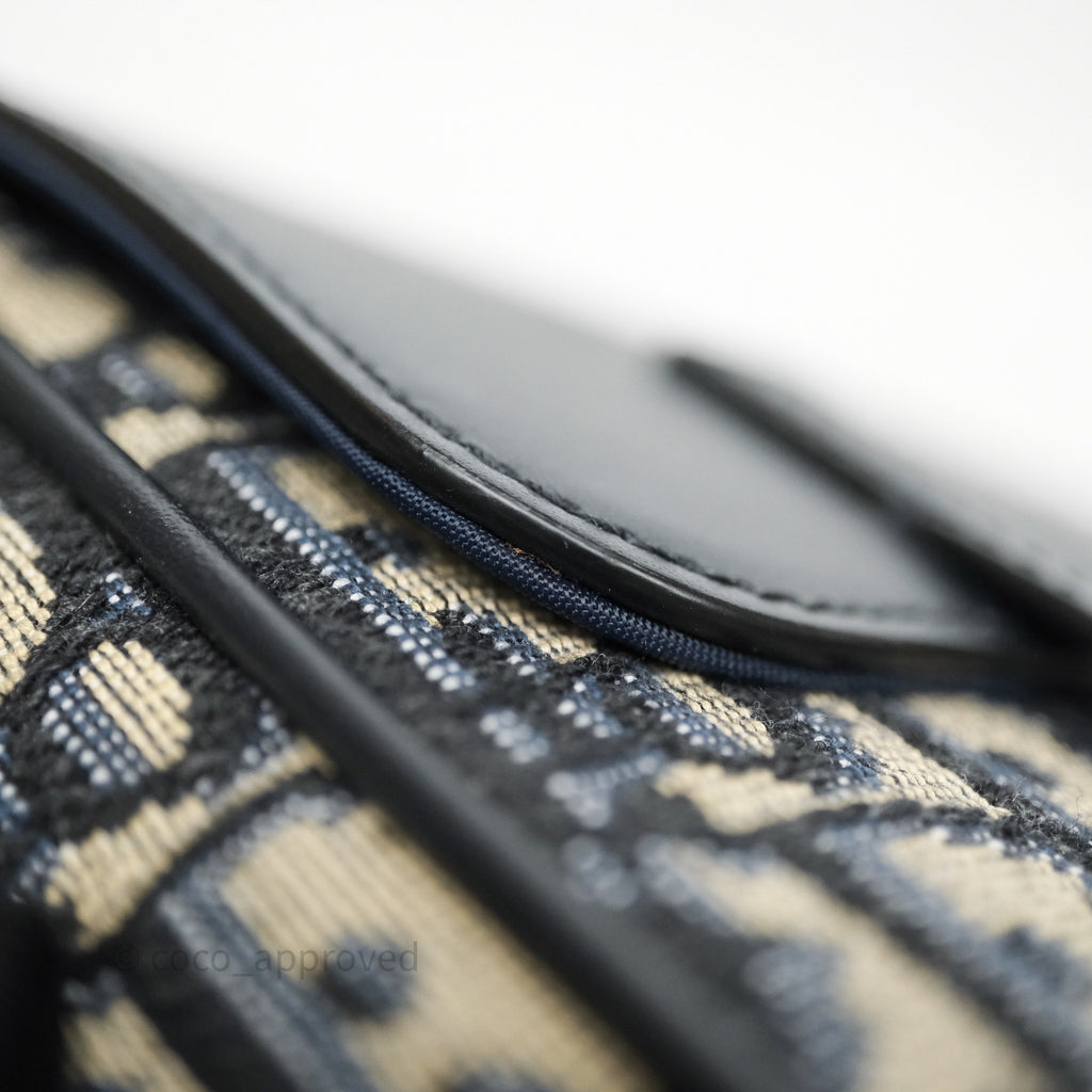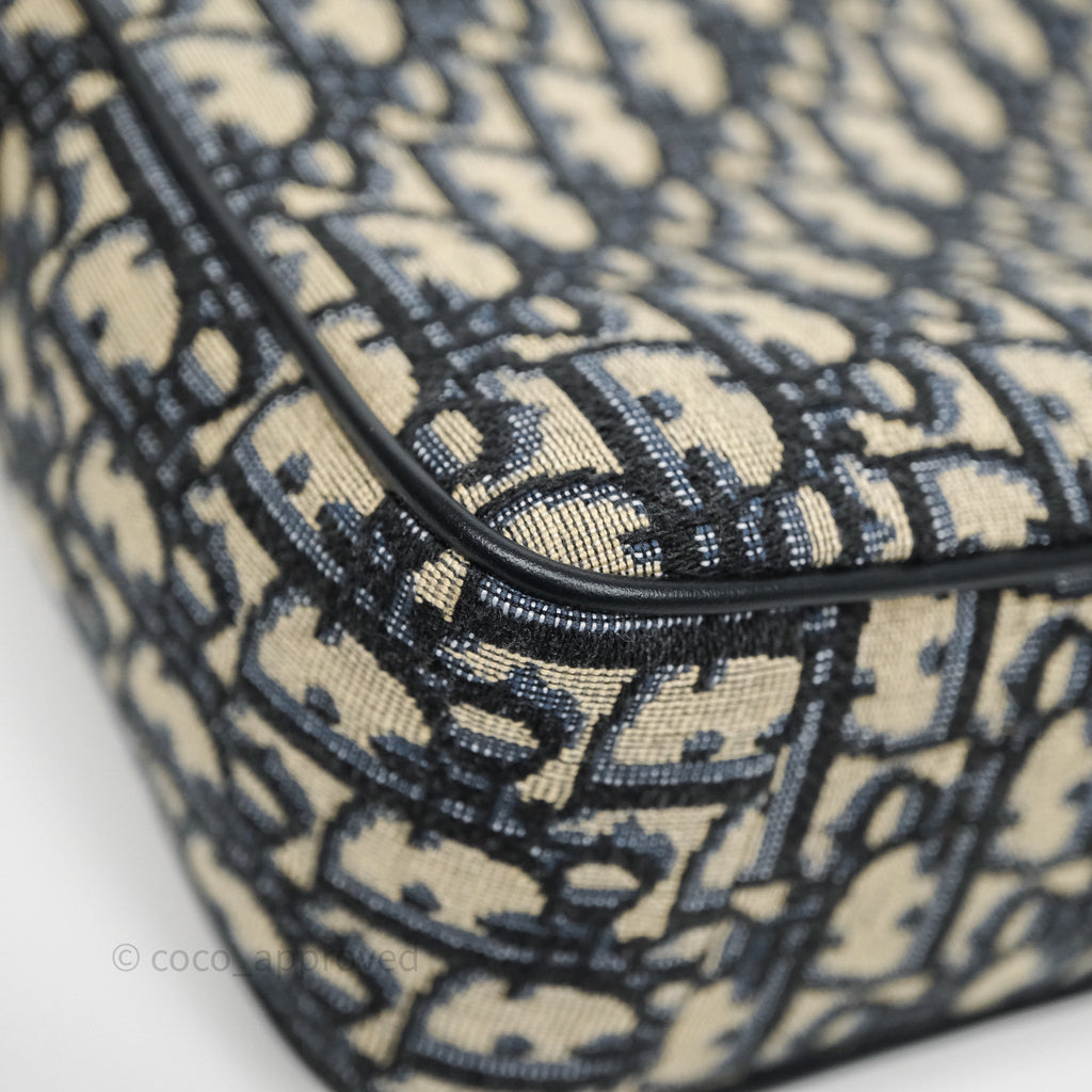 Christian Dior Messenger Bag in Blue Smooth Calfskin and Beige/ Black Dior Oblique Jacquard