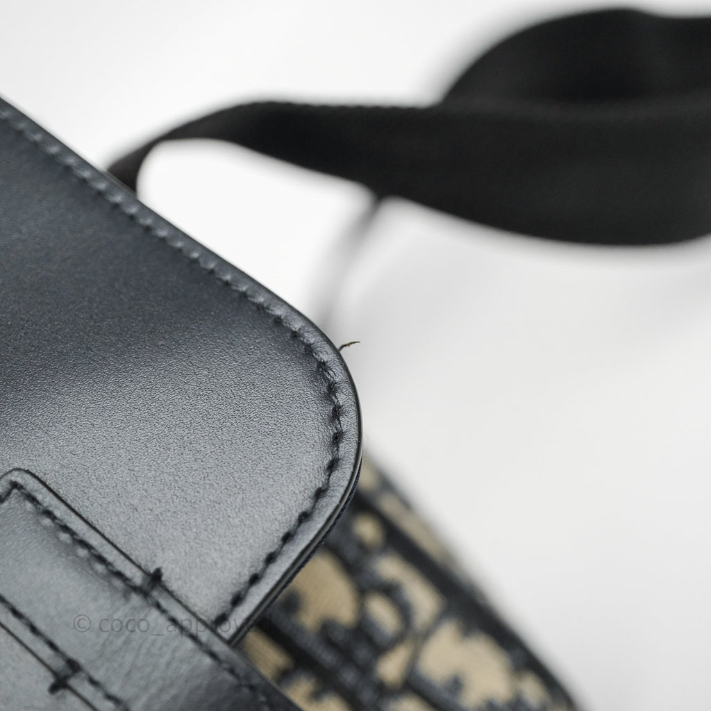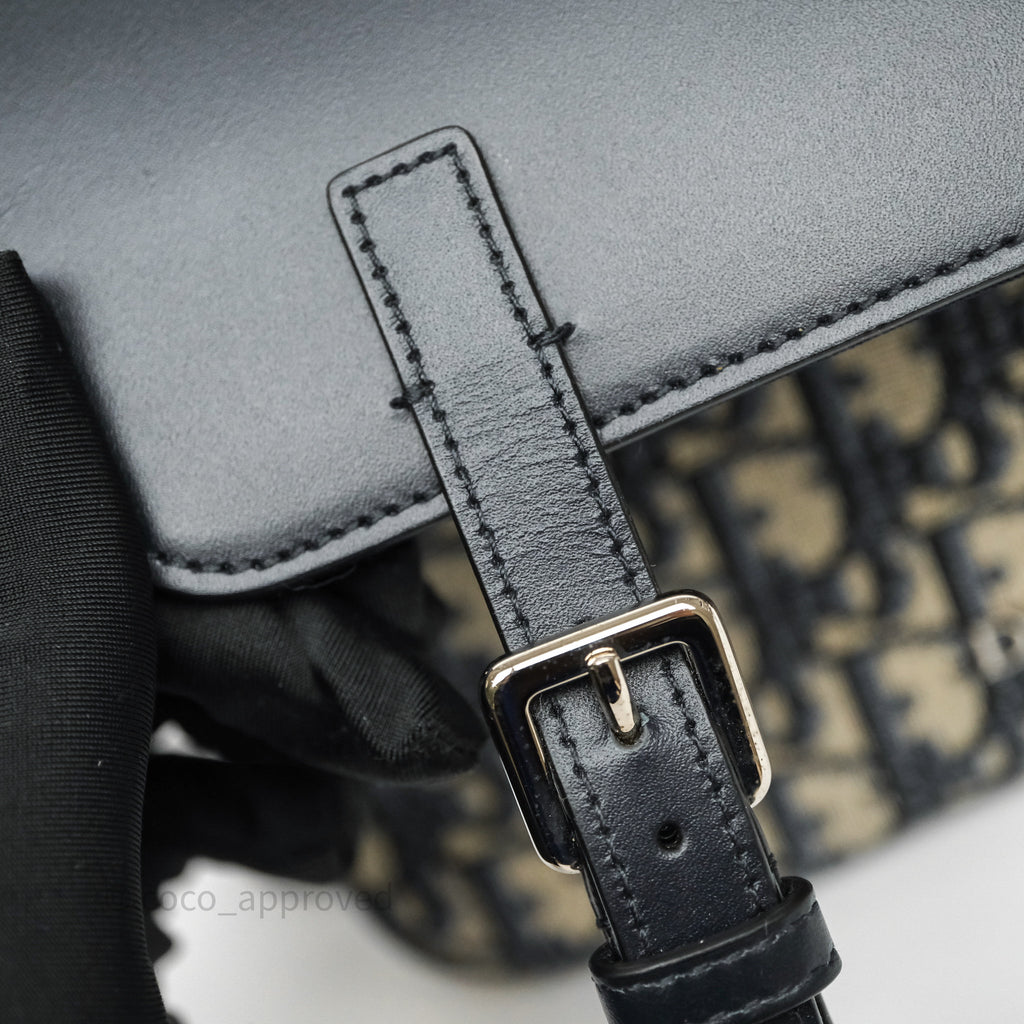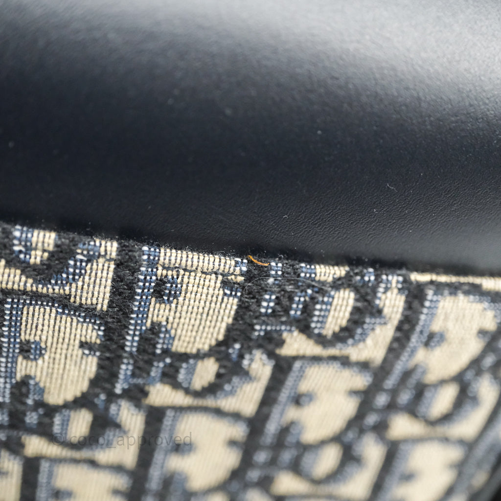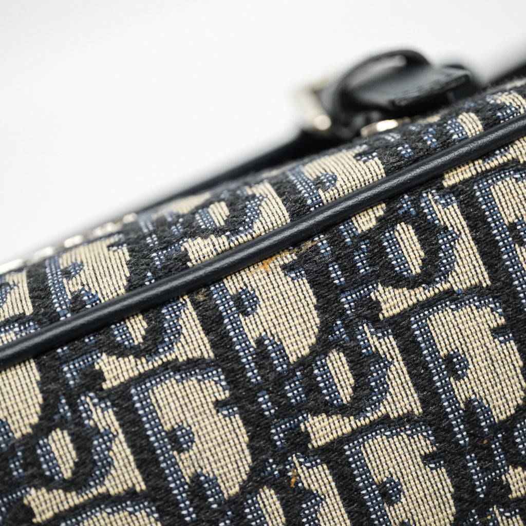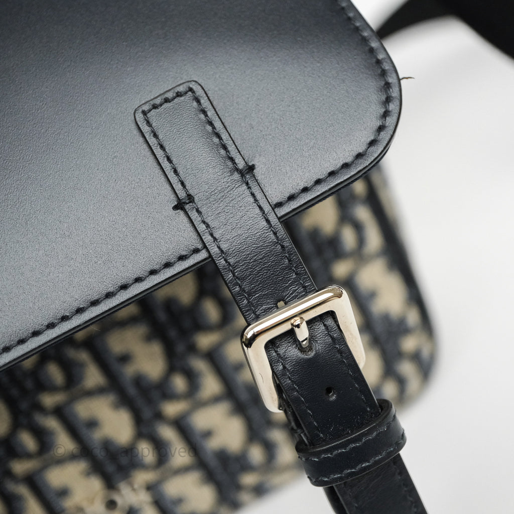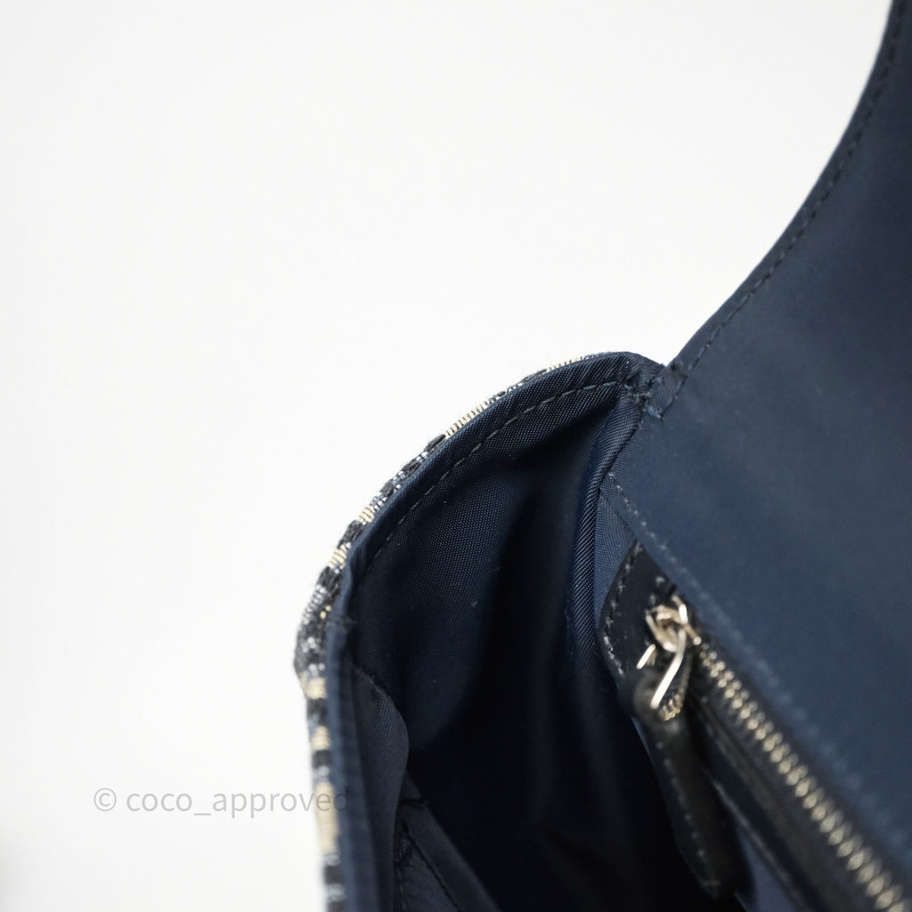Christian Dior Messenger Bag in Blue Smooth Calfskin and Beige/ Black Dior Oblique Jacquard
