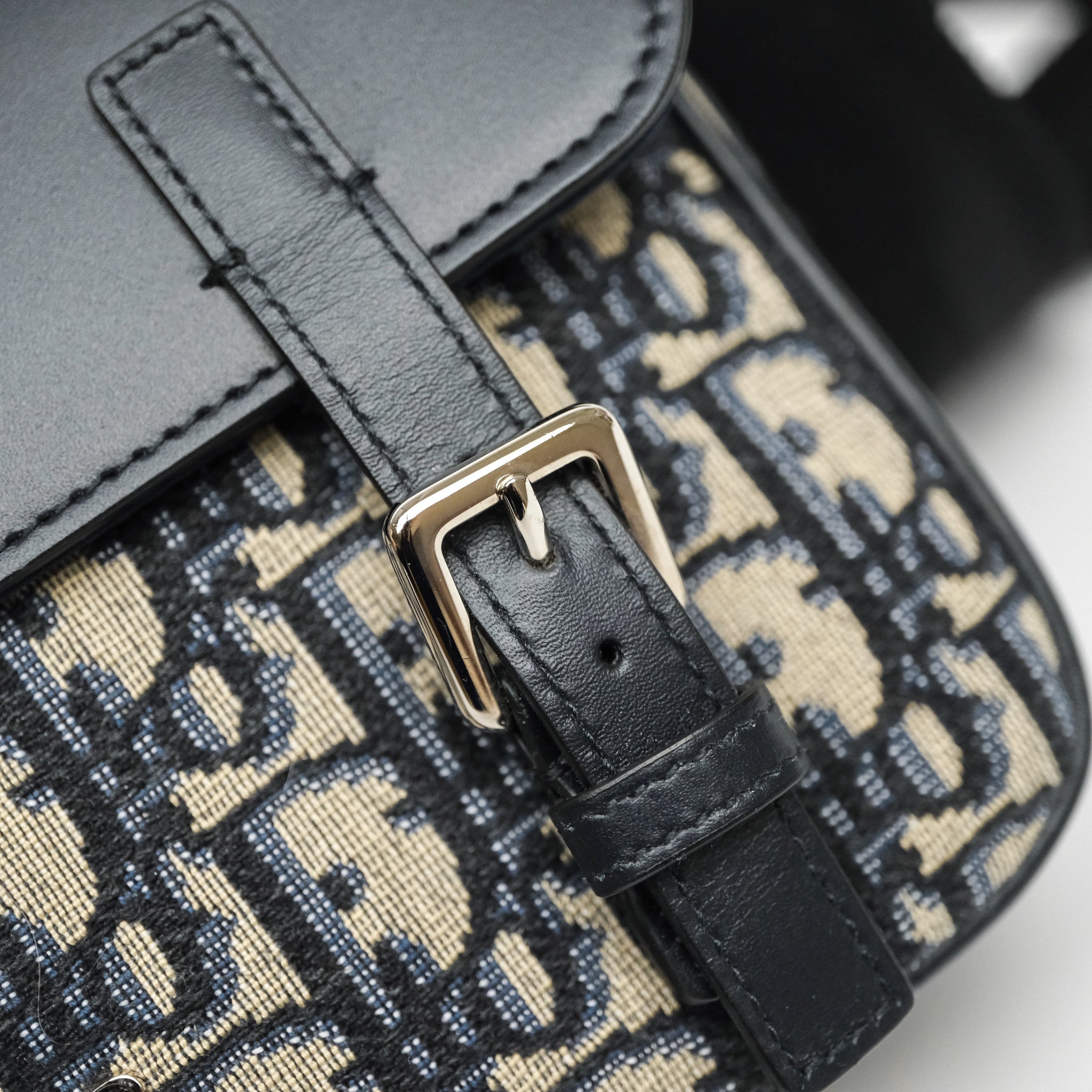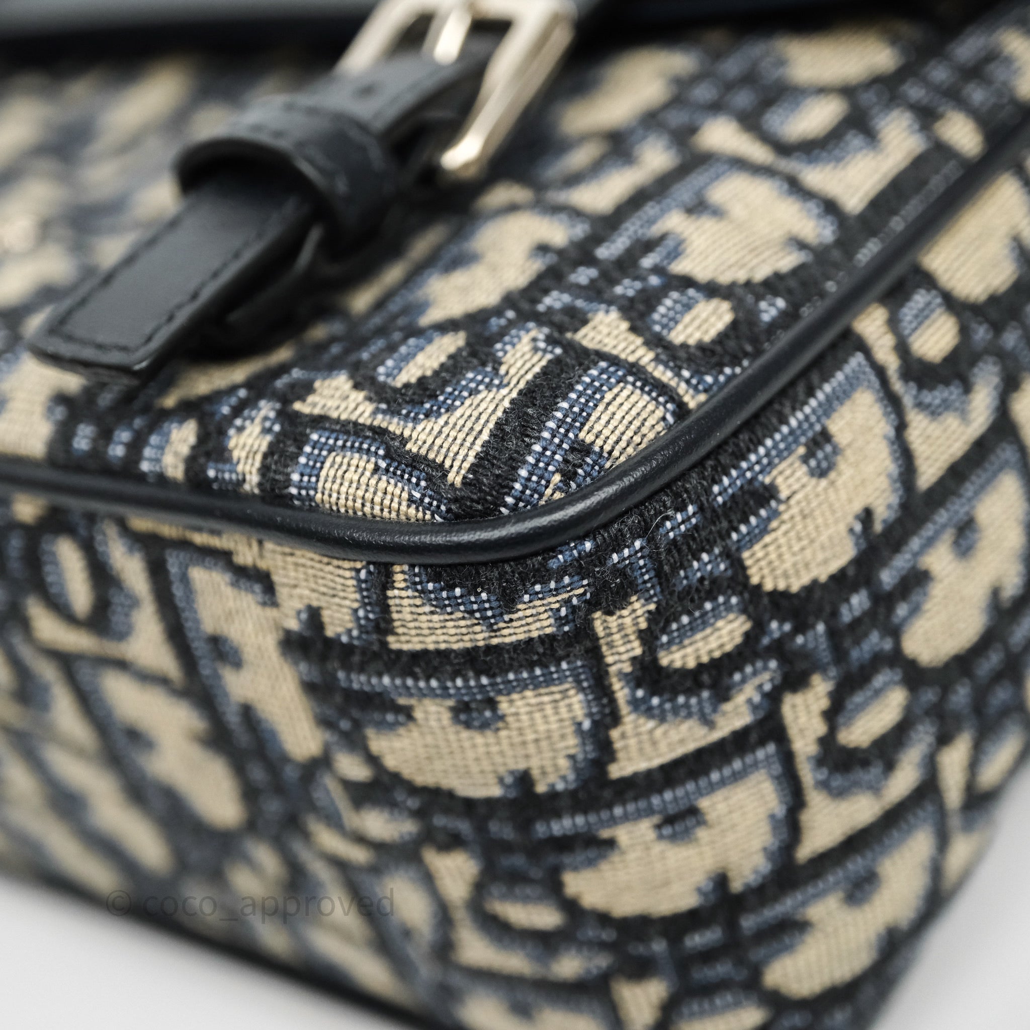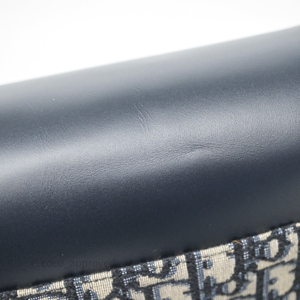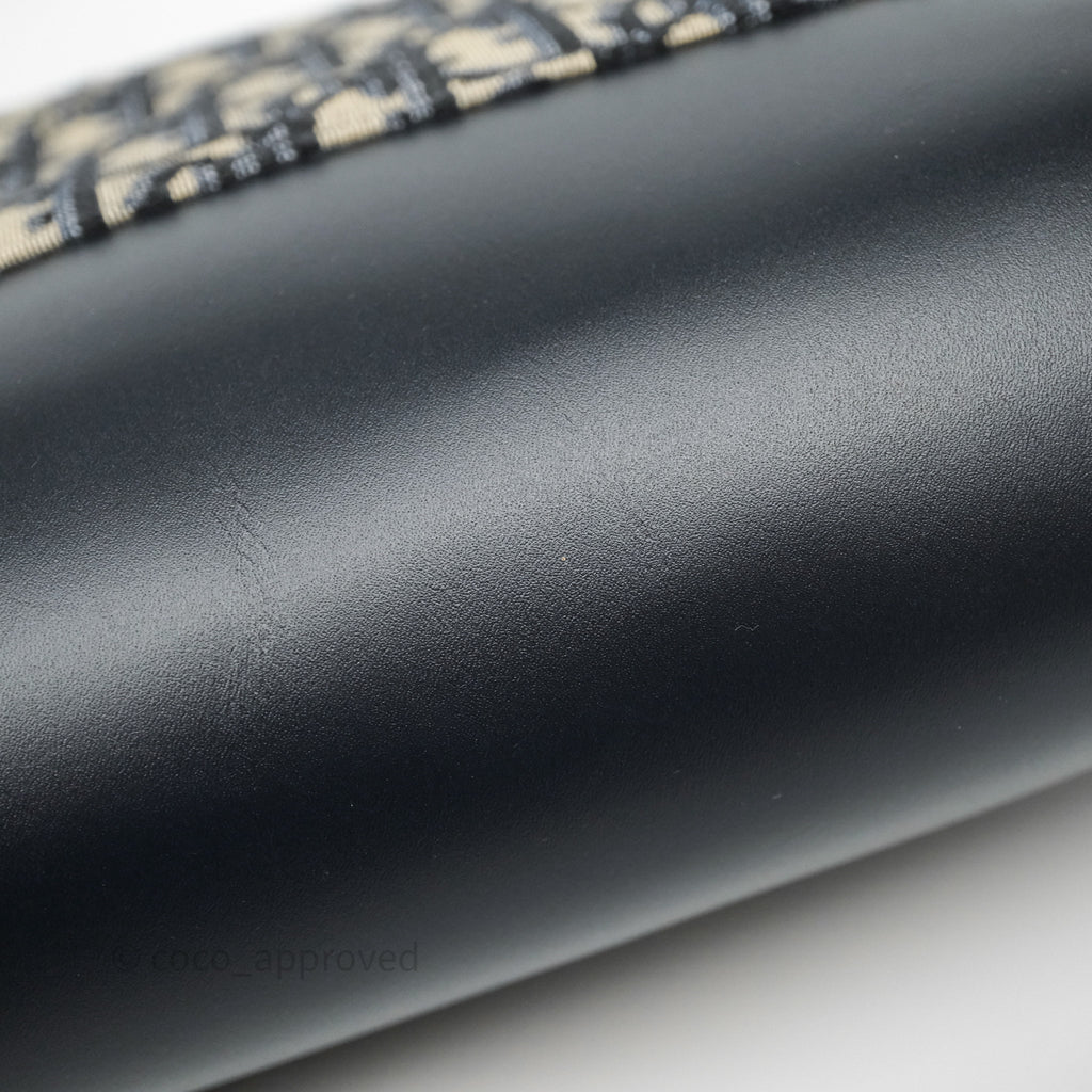 Christian Dior Messenger Bag in Blue Smooth Calfskin and Beige/ Black Dior Oblique Jacquard