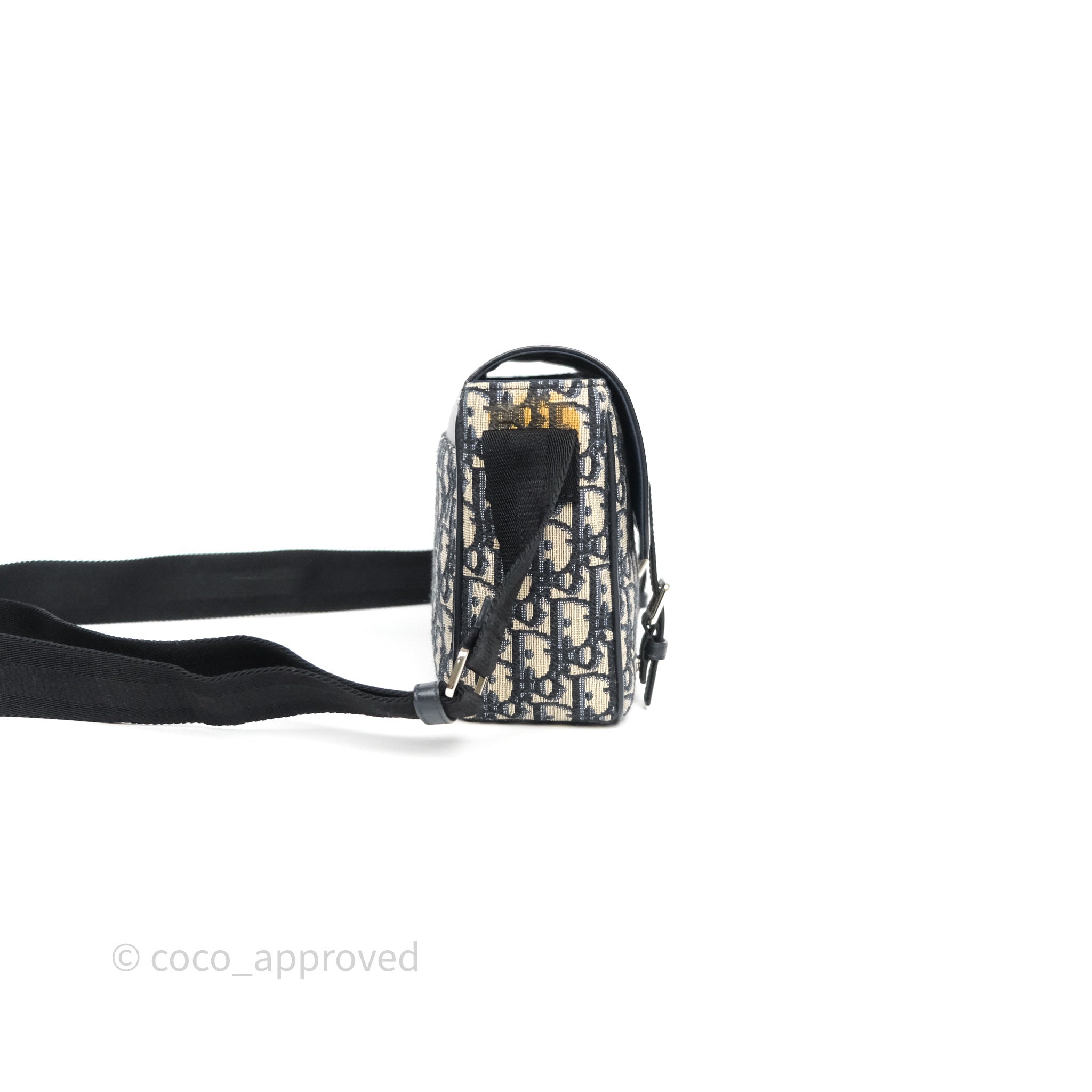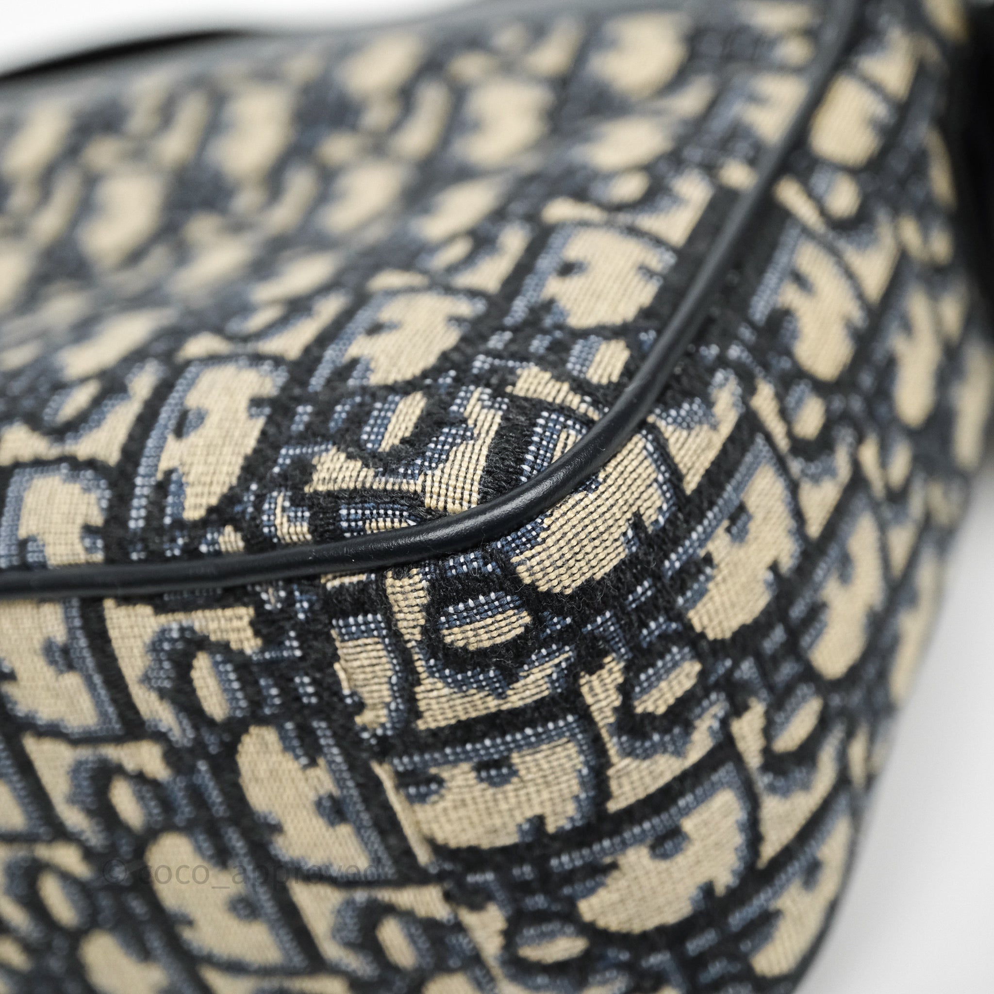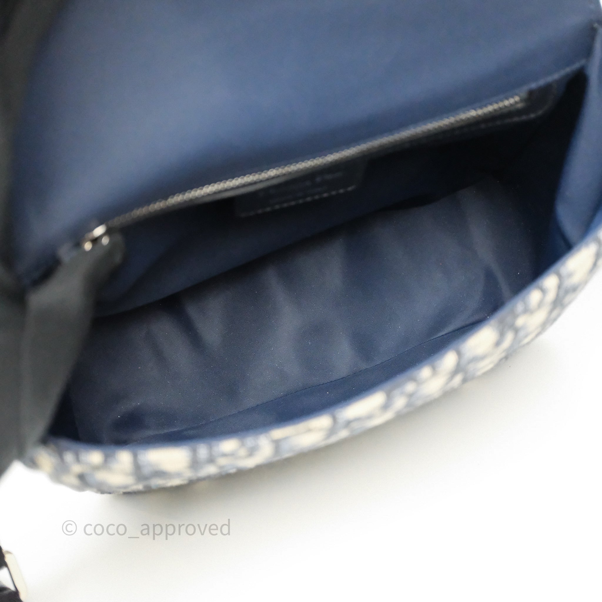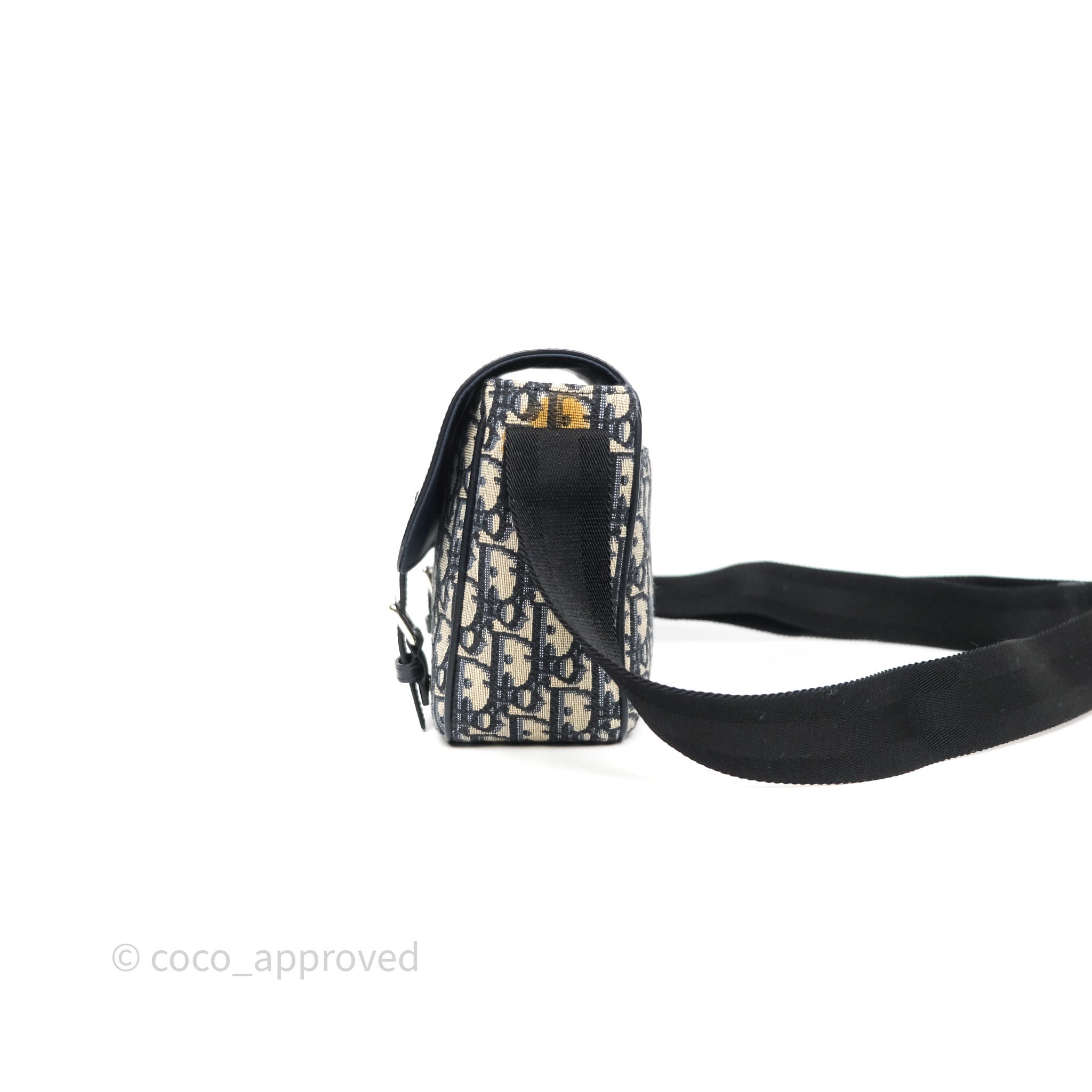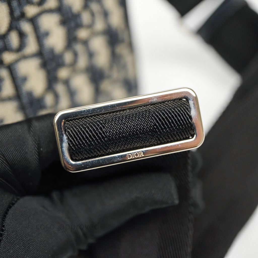Christian Dior Messenger Bag in Blue Smooth Calfskin and Beige/ Black Dior Oblique Jacquard