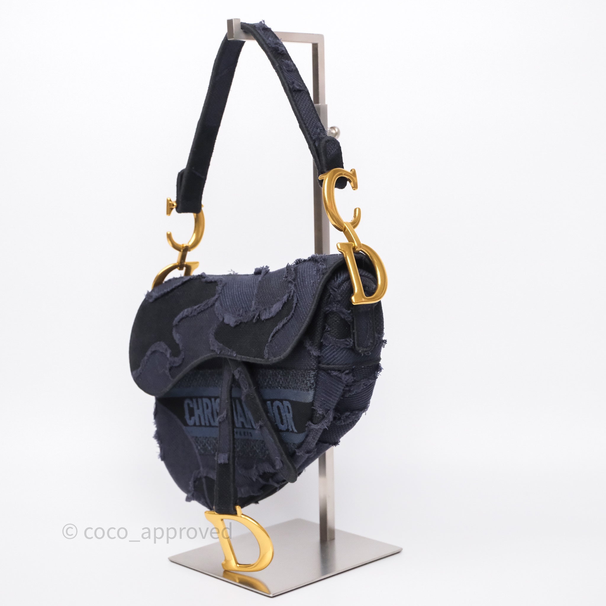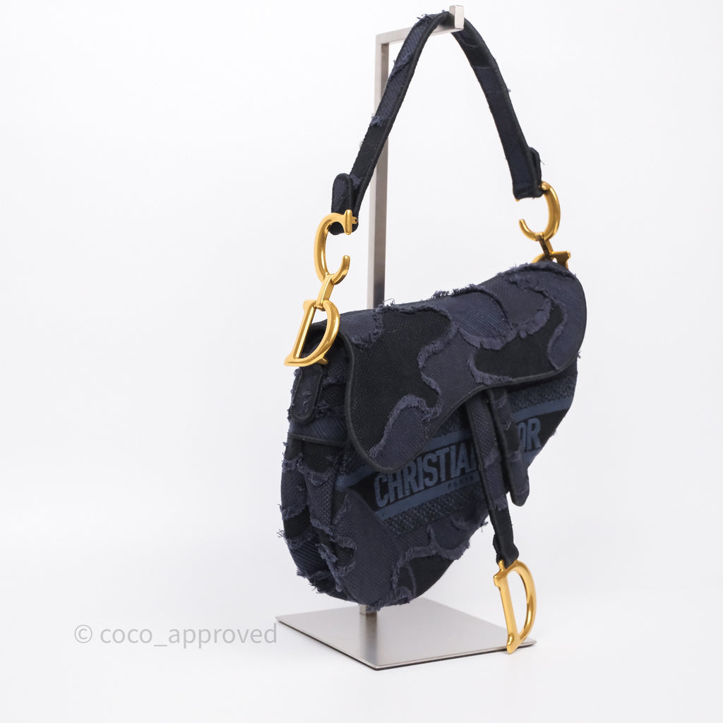 Christian Dior Saddle Navy Camouflage Canvas Embroidered