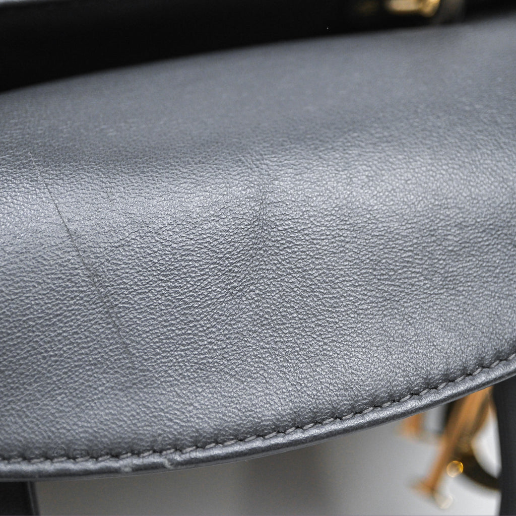 9/10 excellent condition. Hairlines and oxidized on hardwares. Scratches on handle, interior ,bottom and under the flap. Rubbing on corners and rims.