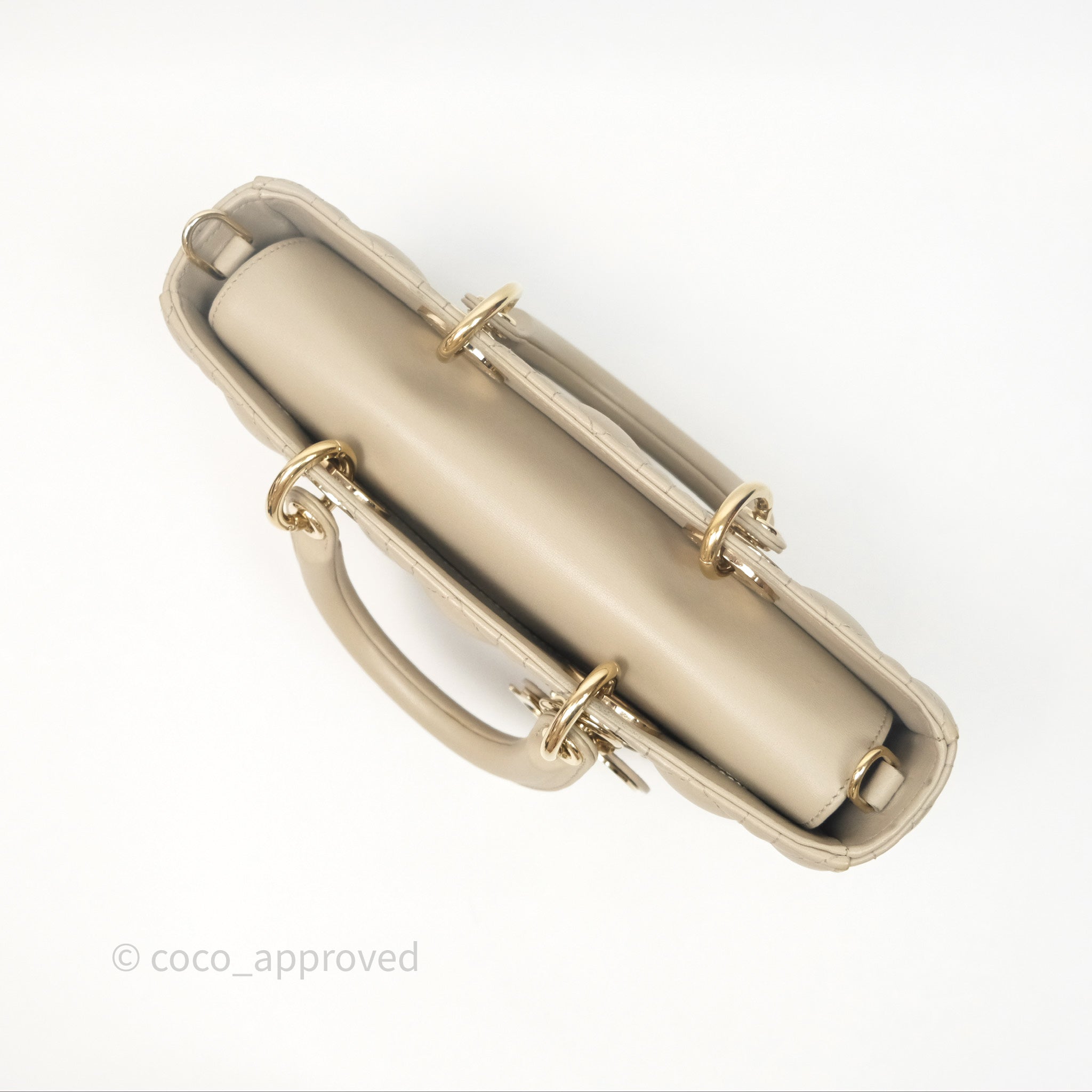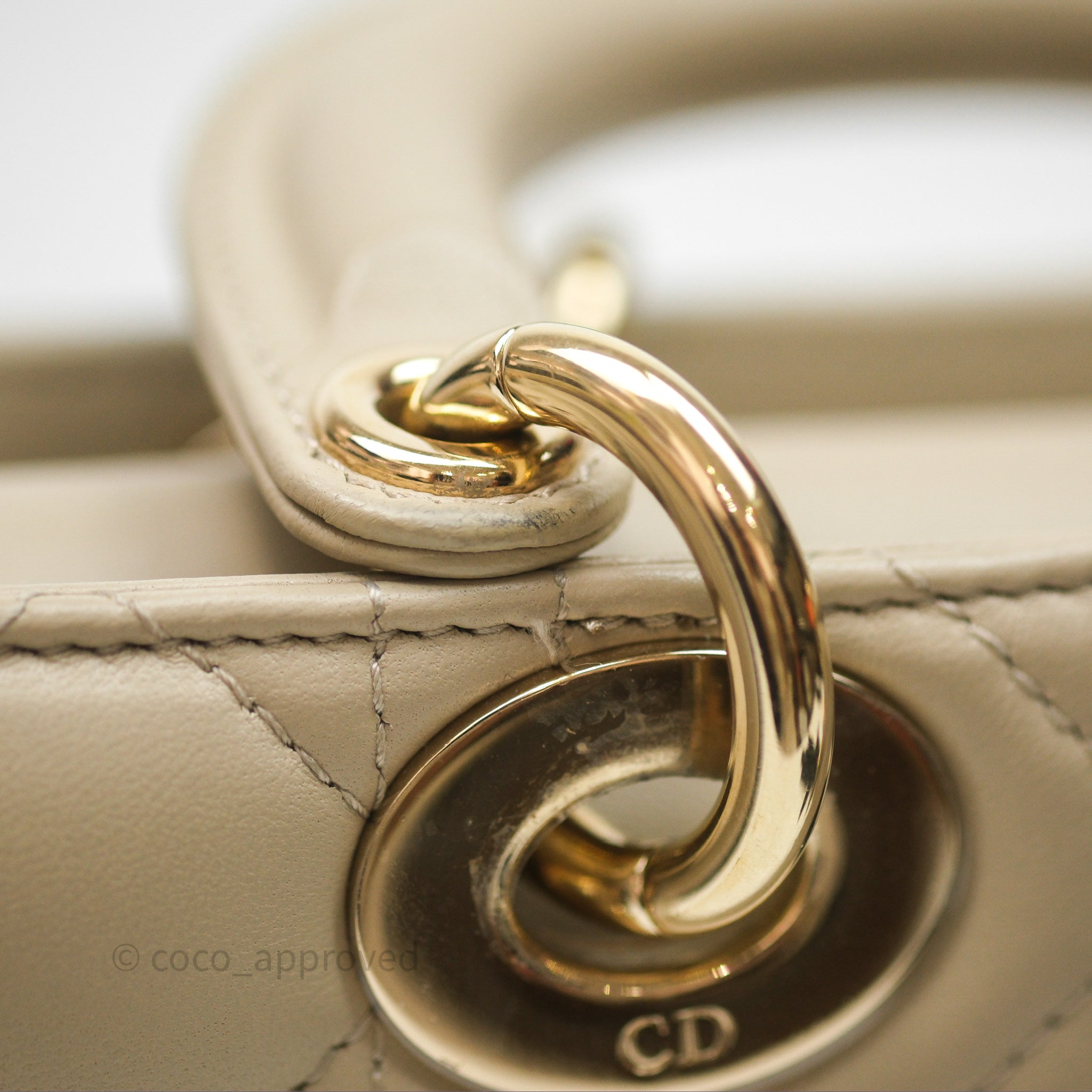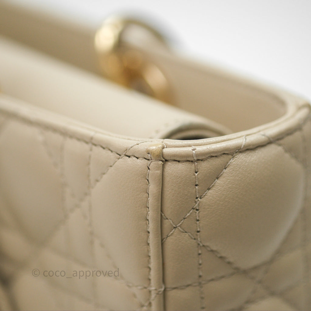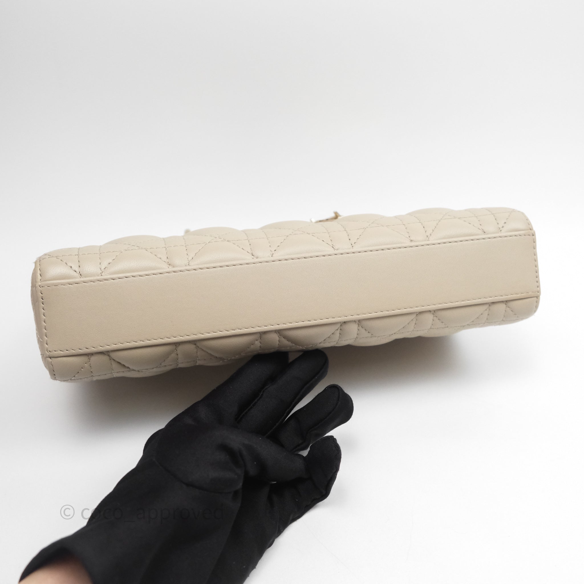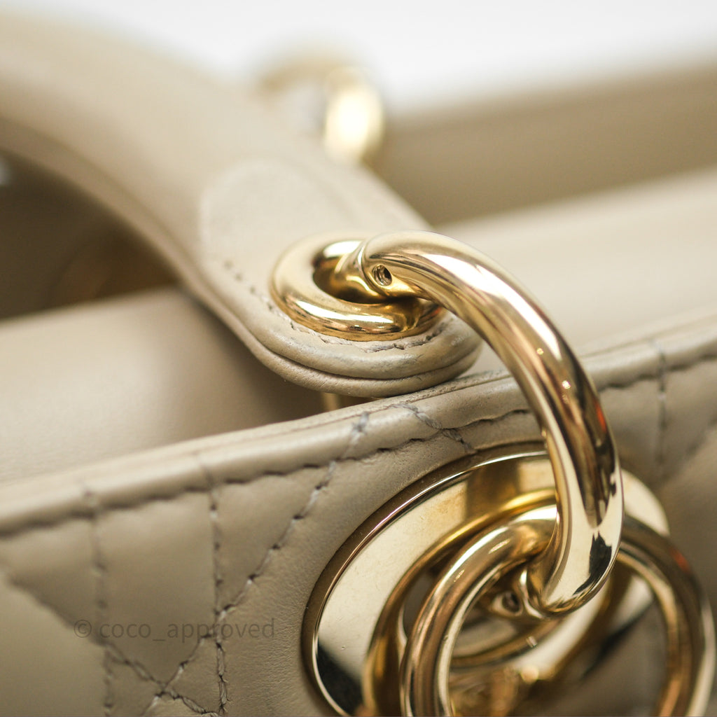 Dior Medium Lady D-Joy Bag Sand Lambskin Cannage Gold Hardware