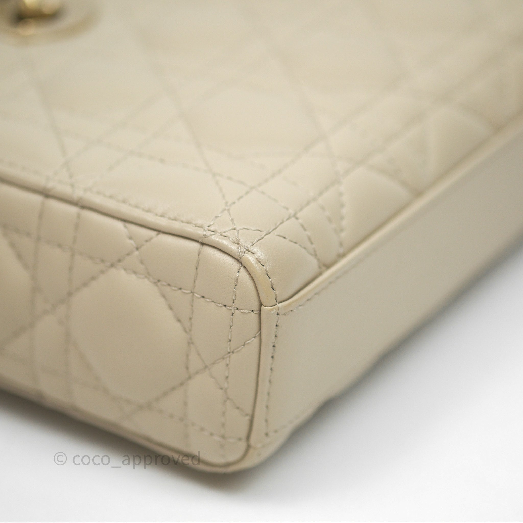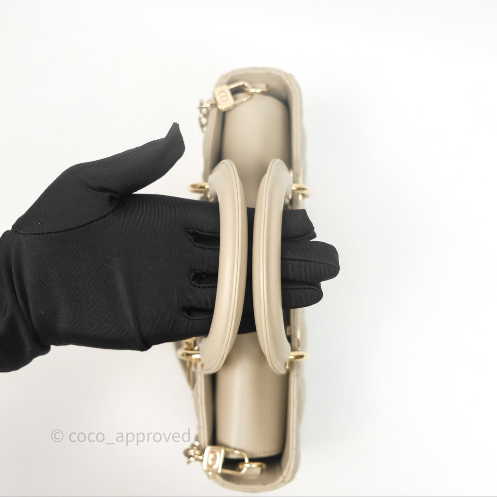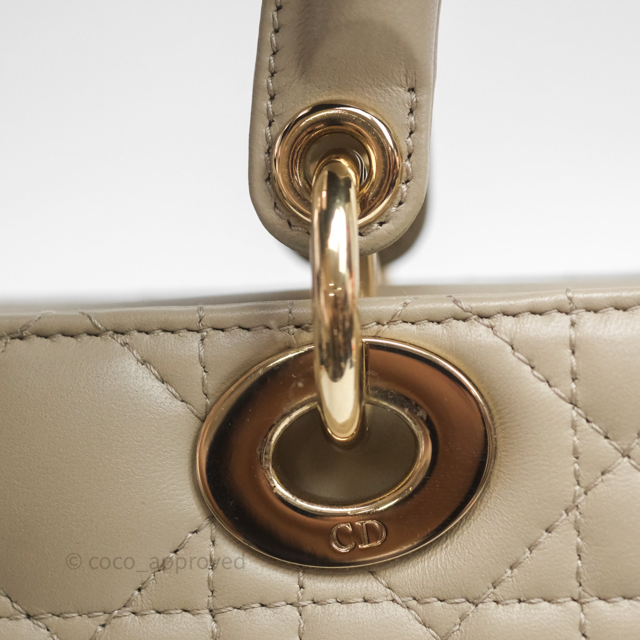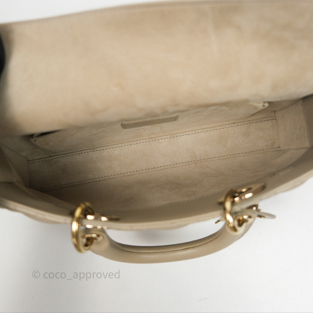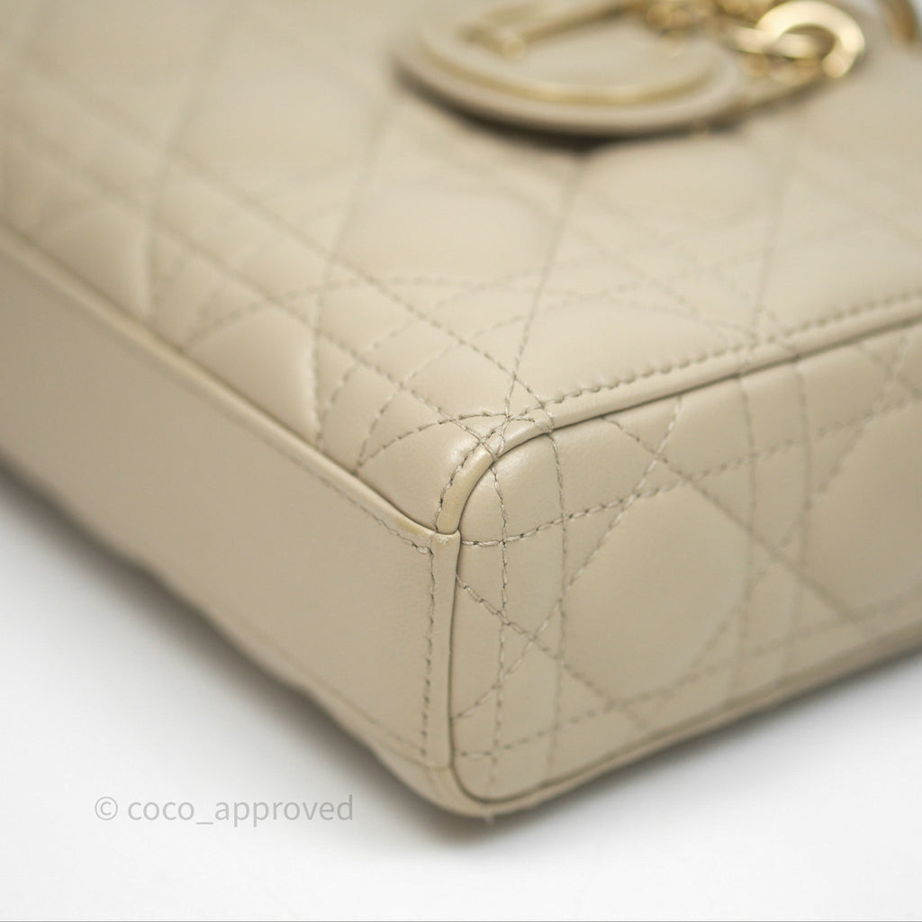 Dior Medium Lady D-Joy Bag Sand Lambskin Cannage Gold Hardware