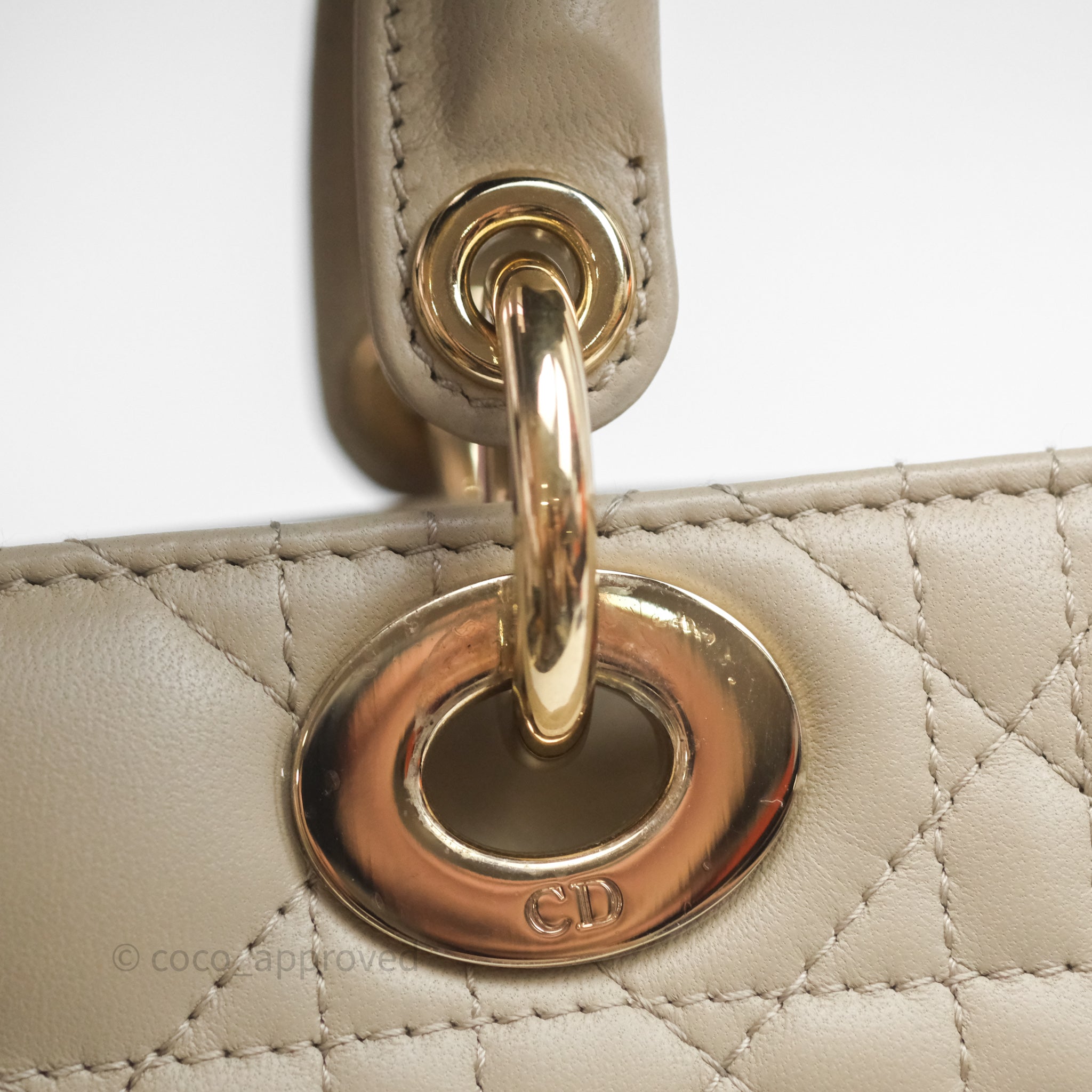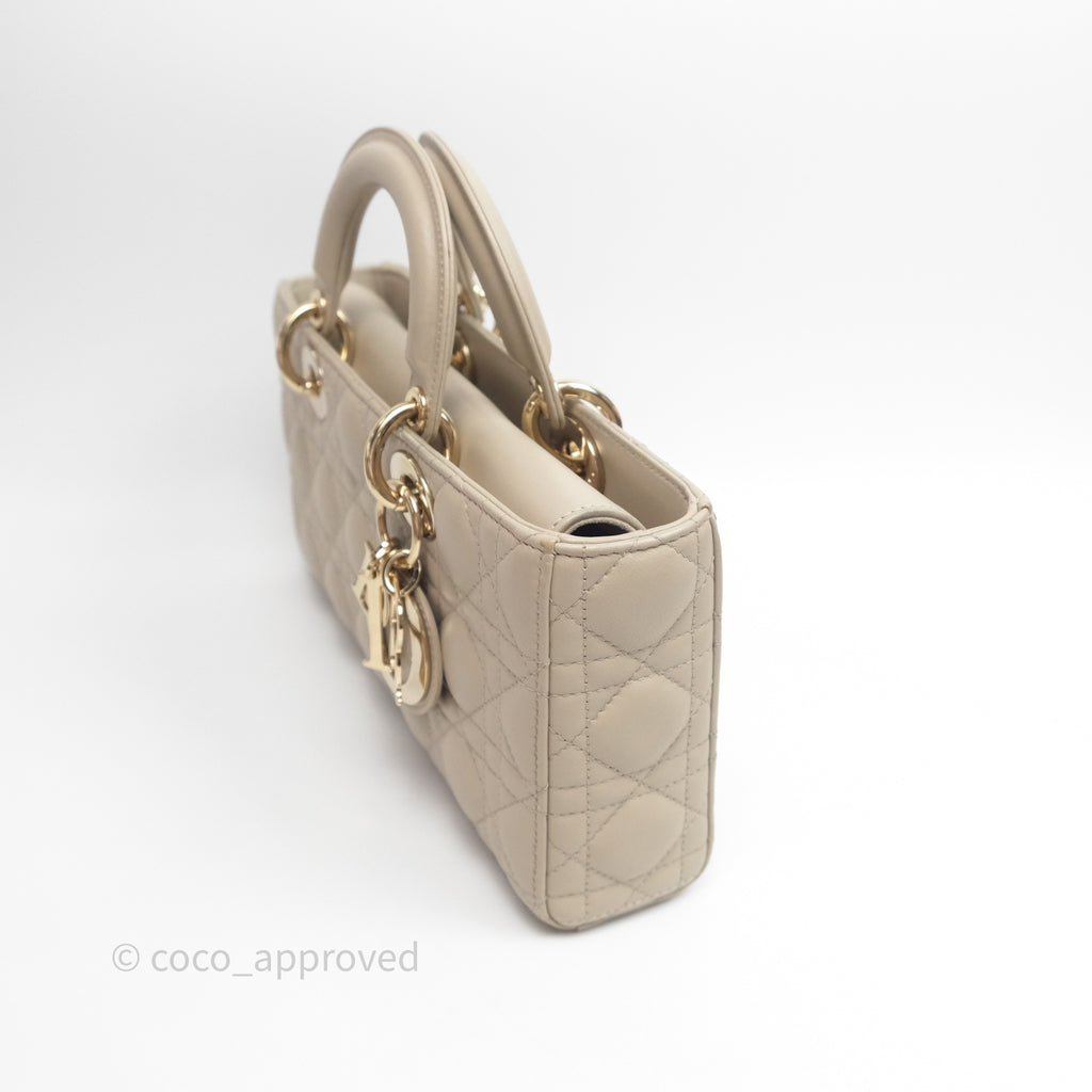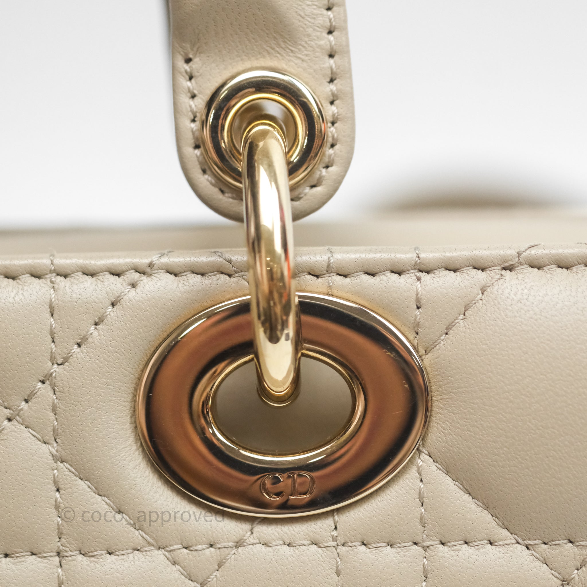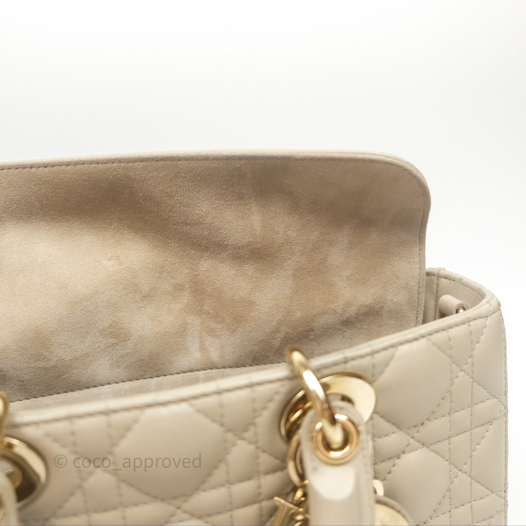 Dior Medium Lady D-Joy Bag Sand Lambskin Cannage Gold Hardware