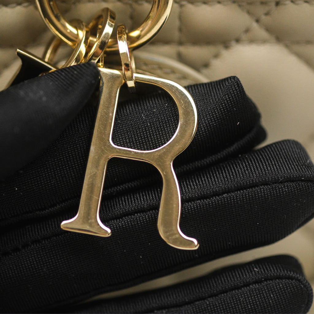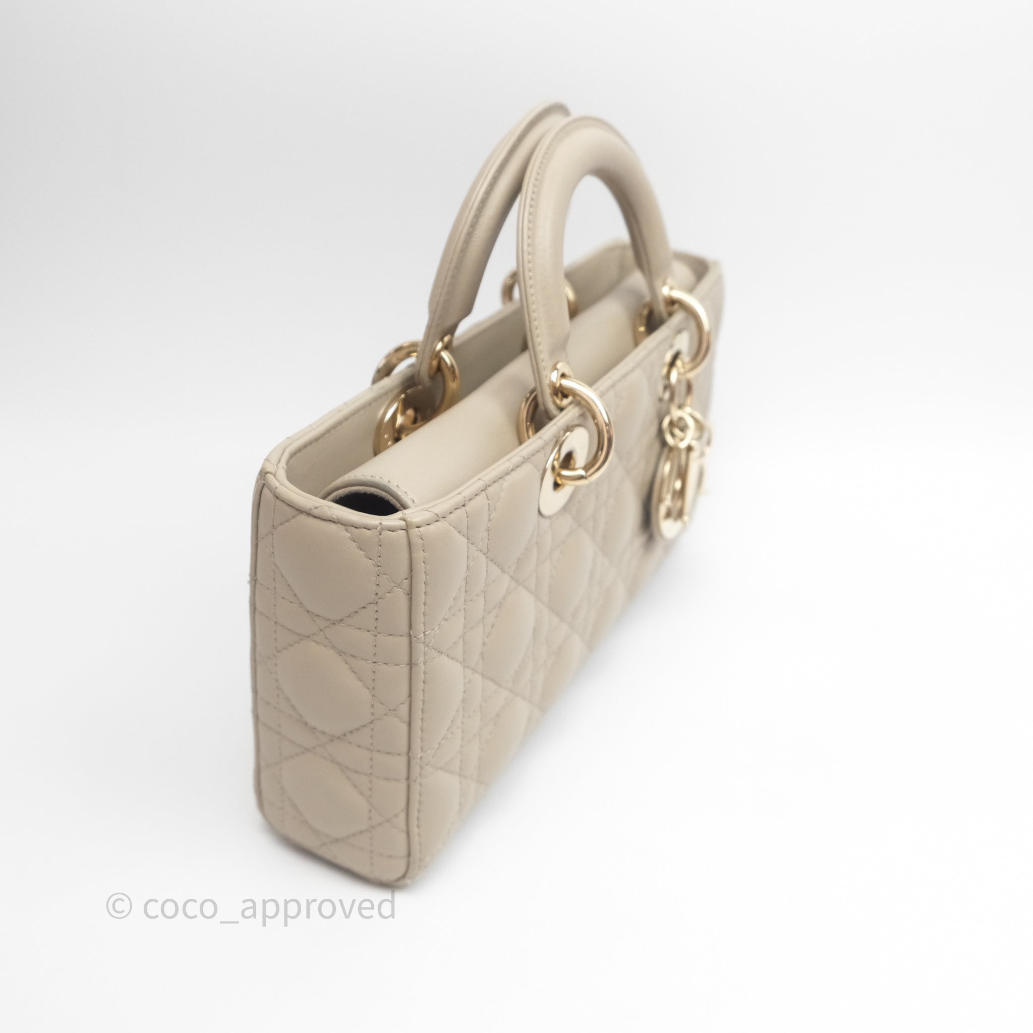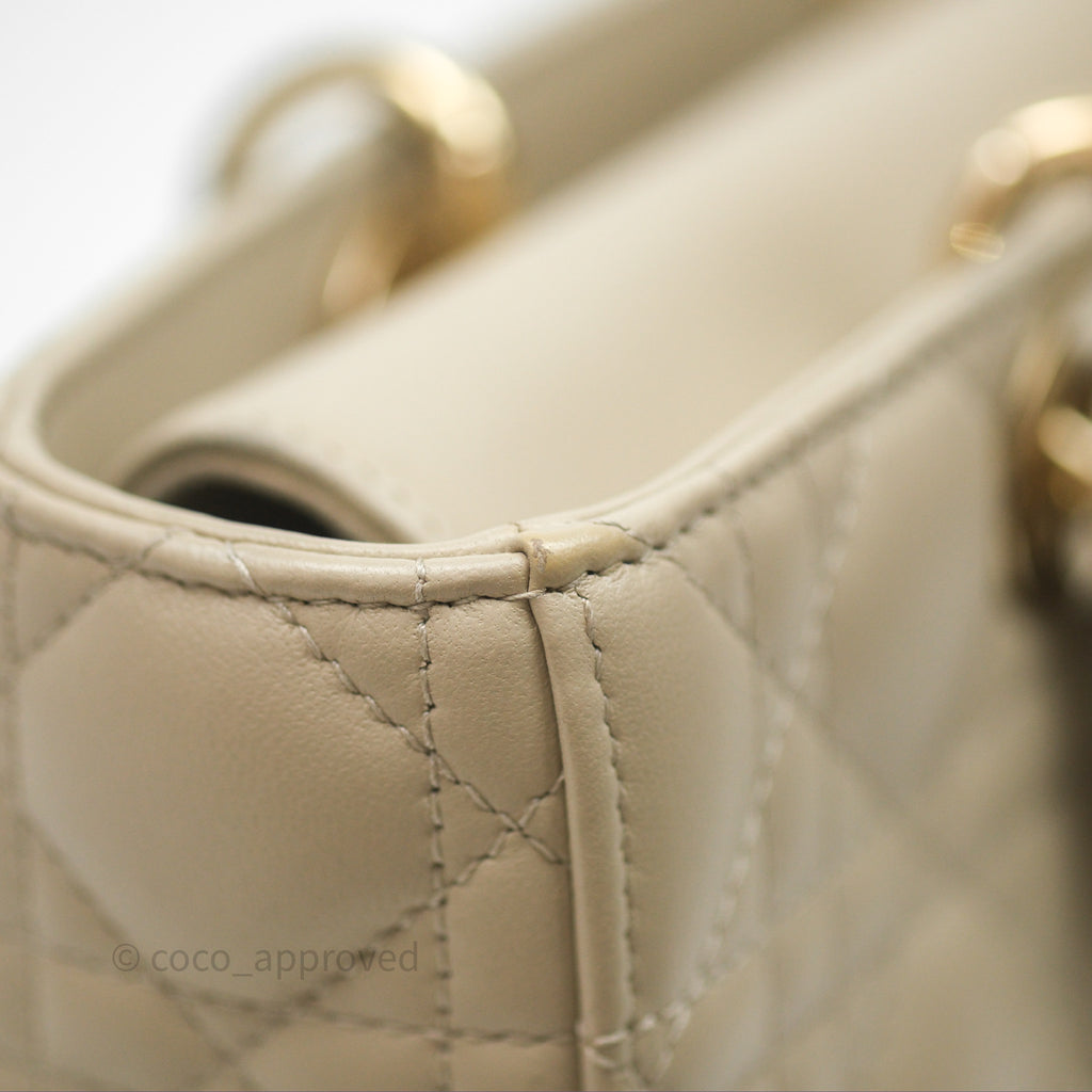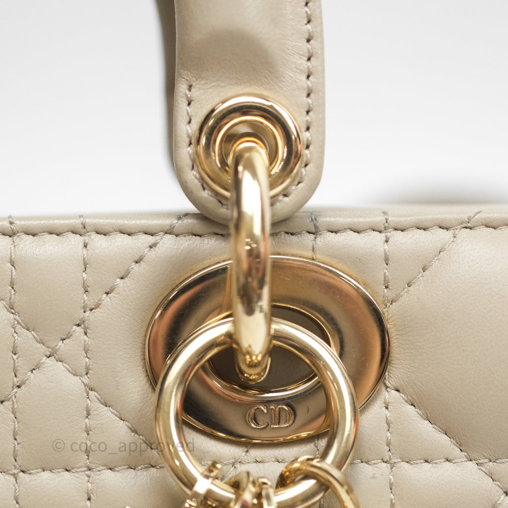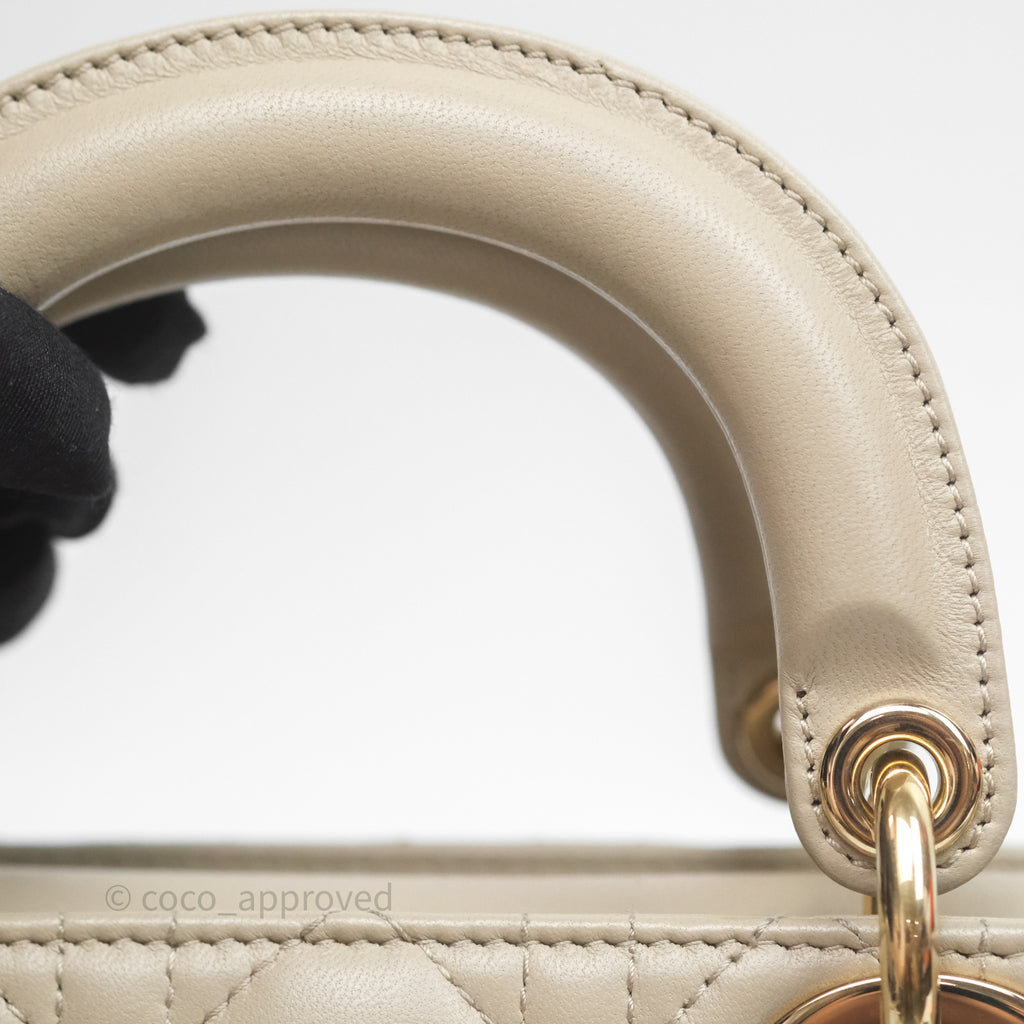 Dior Medium Lady D-Joy Bag Sand Lambskin Cannage Gold Hardware