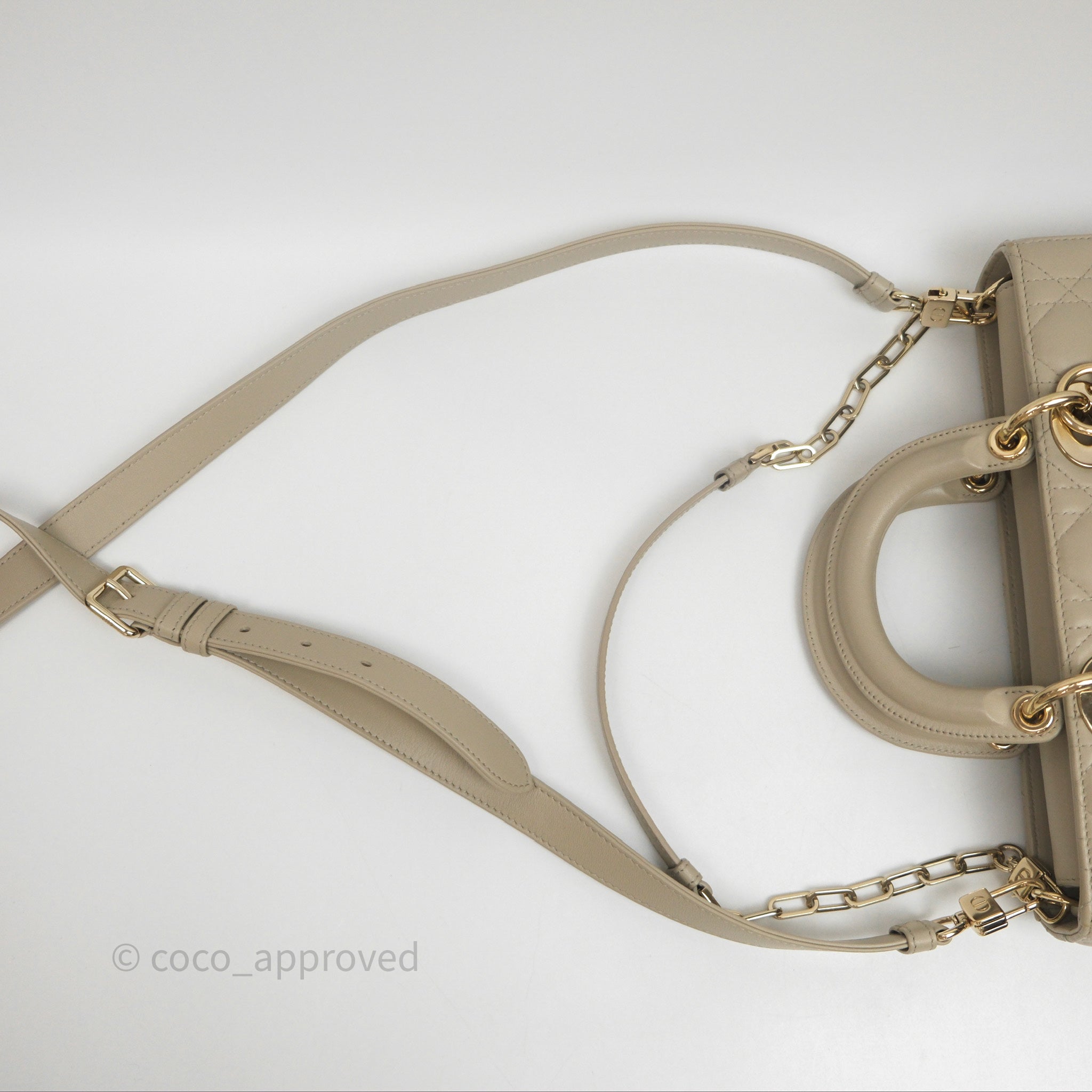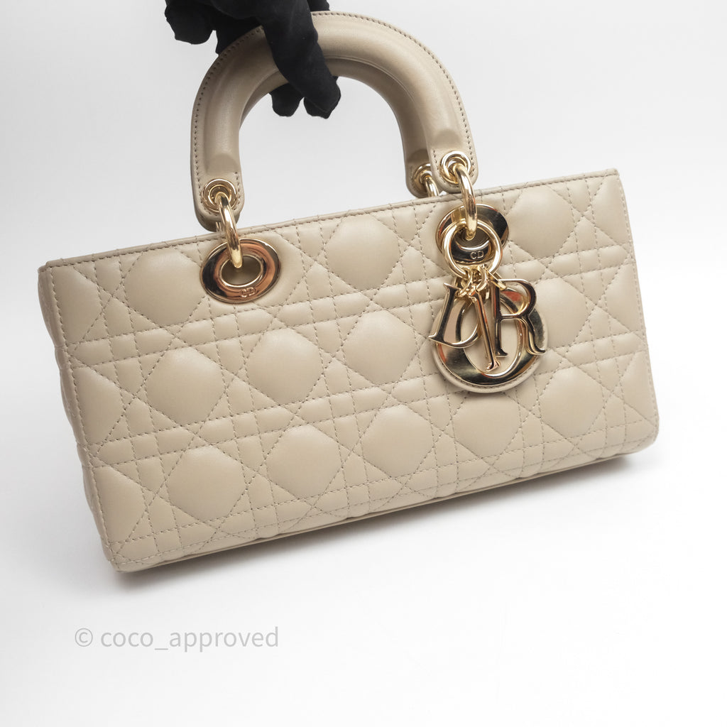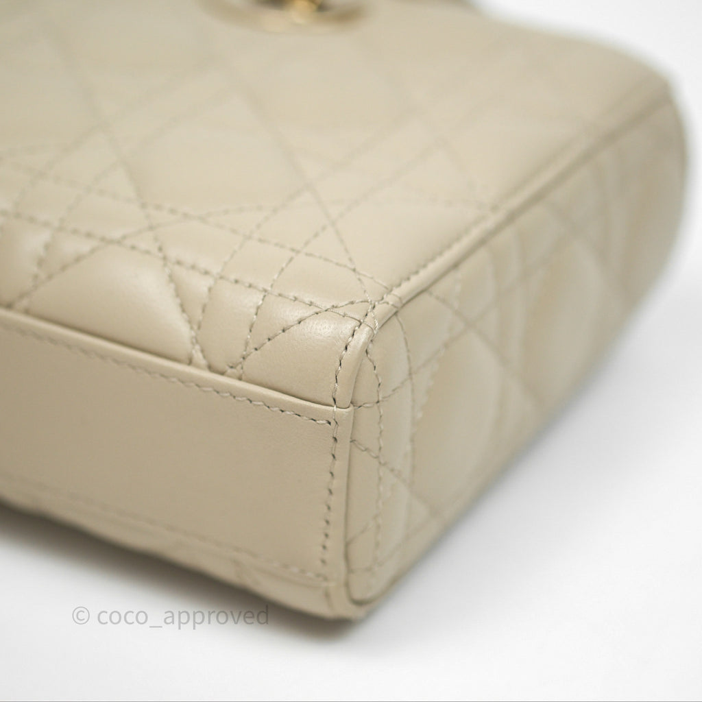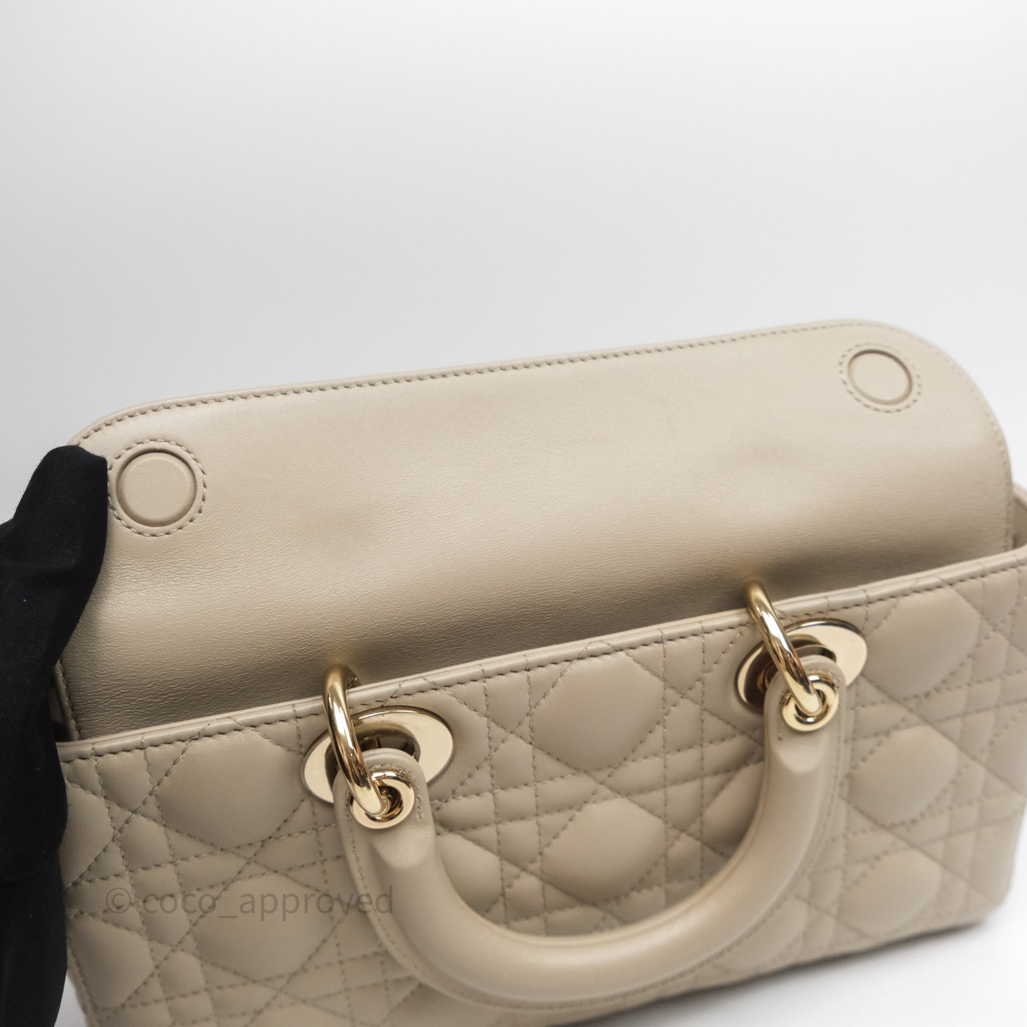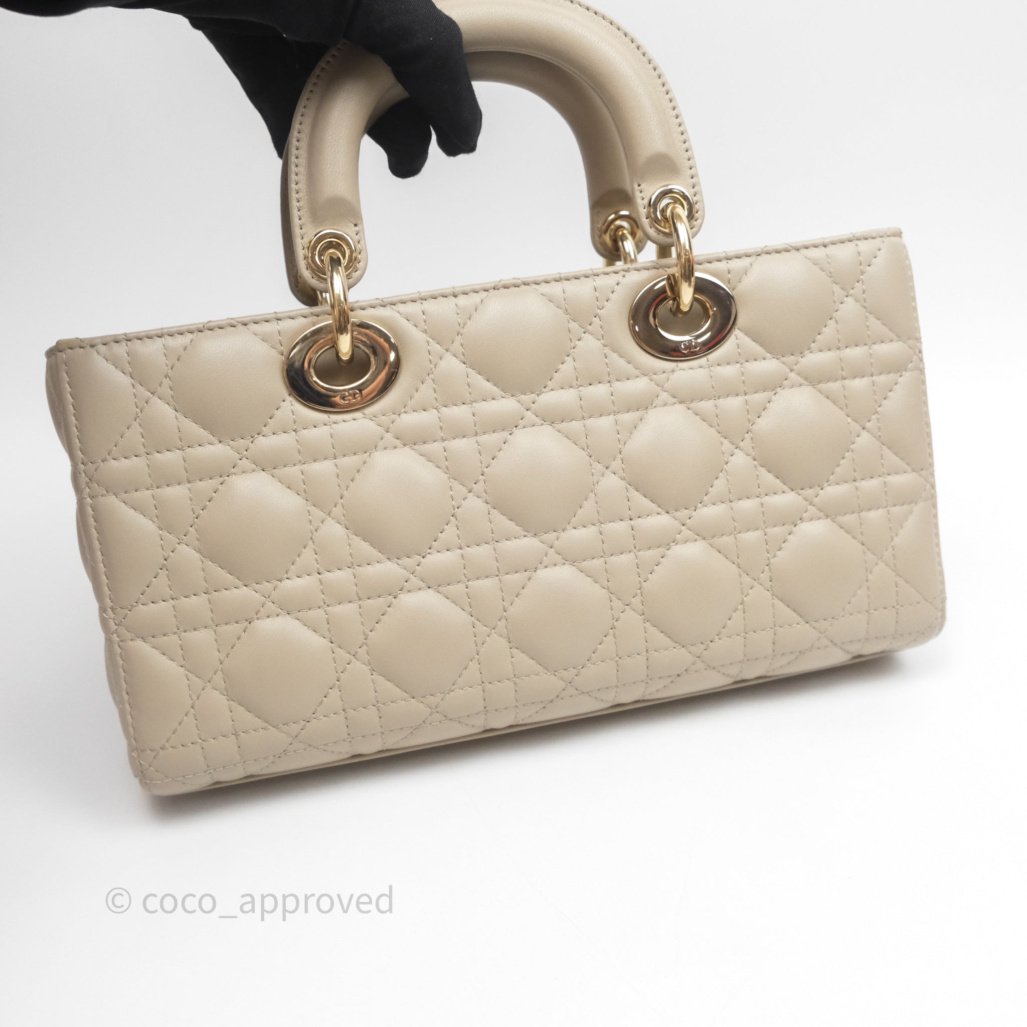 Dior Medium Lady D-Joy Bag Sand Lambskin Cannage Gold Hardware
