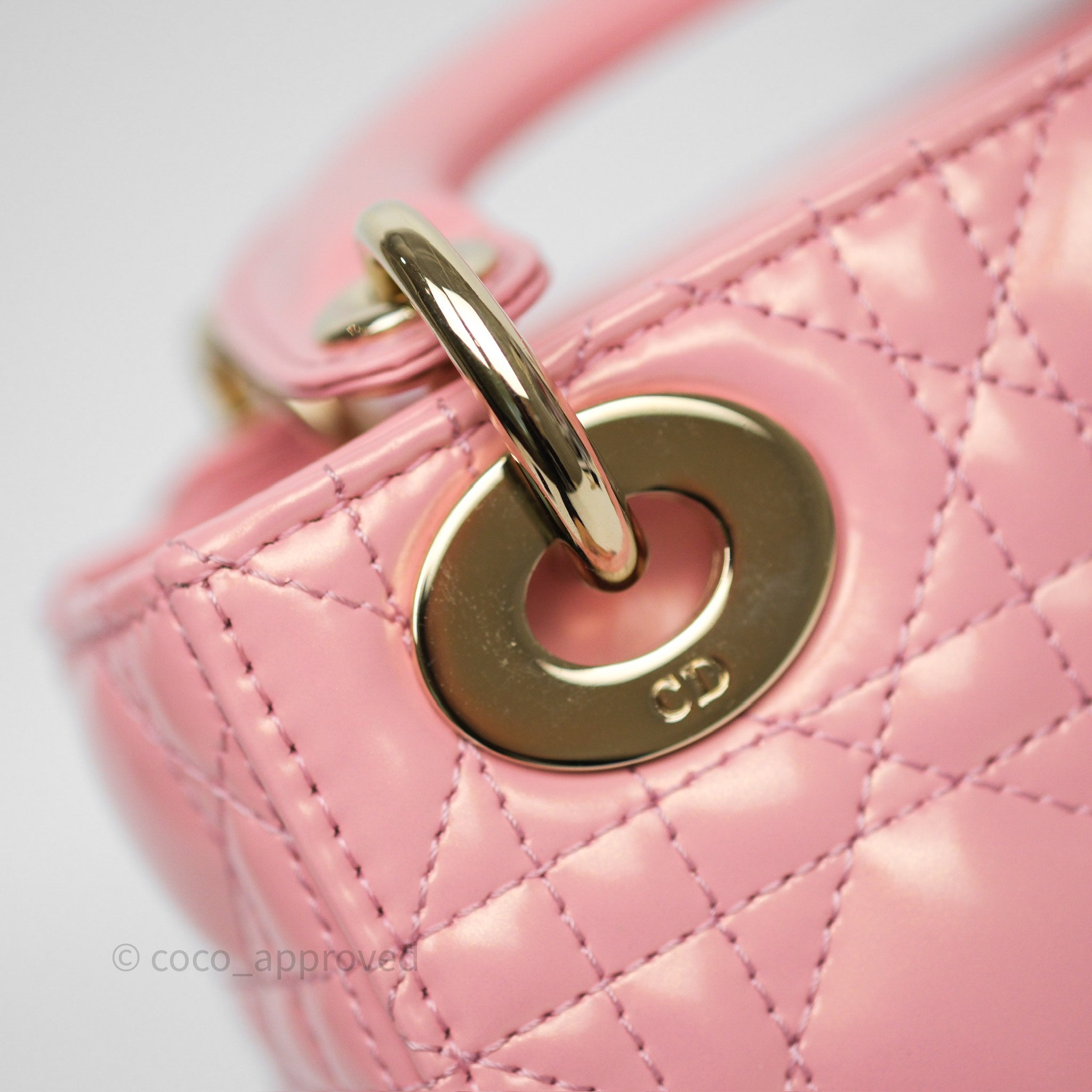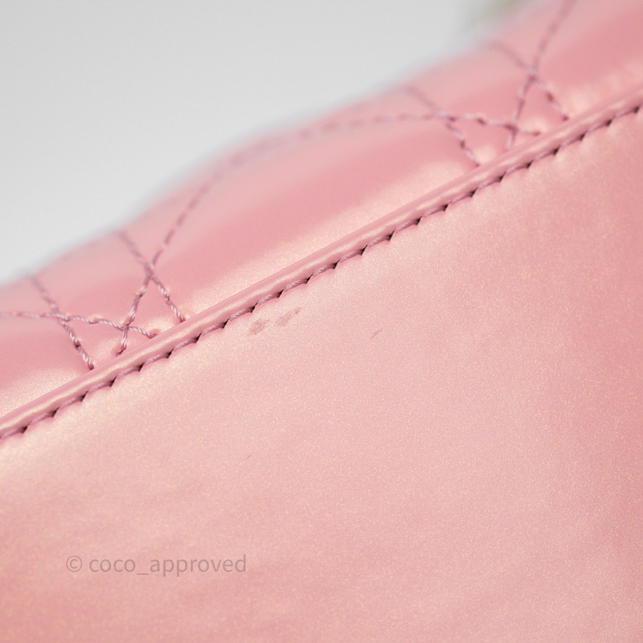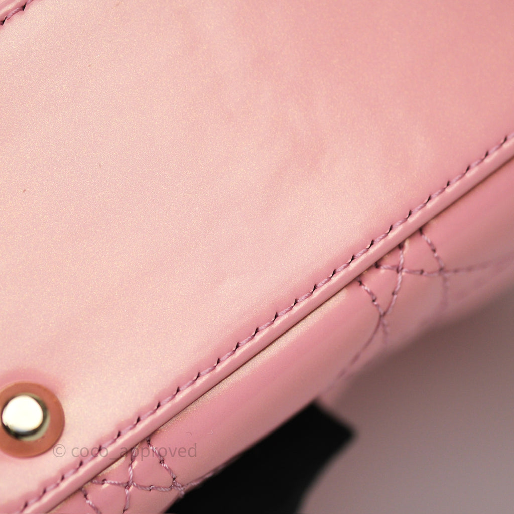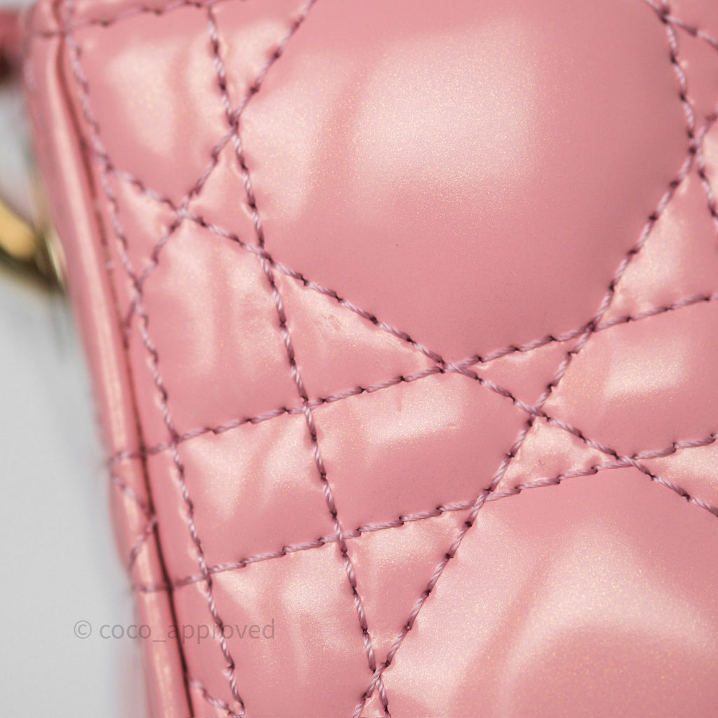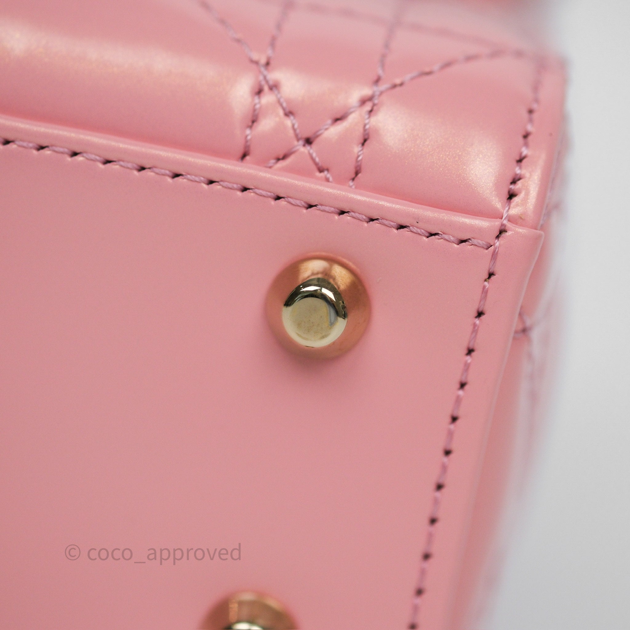 Dior Mini Lady Dior Pink Pearlescent Patent Cannage Gold Hardware