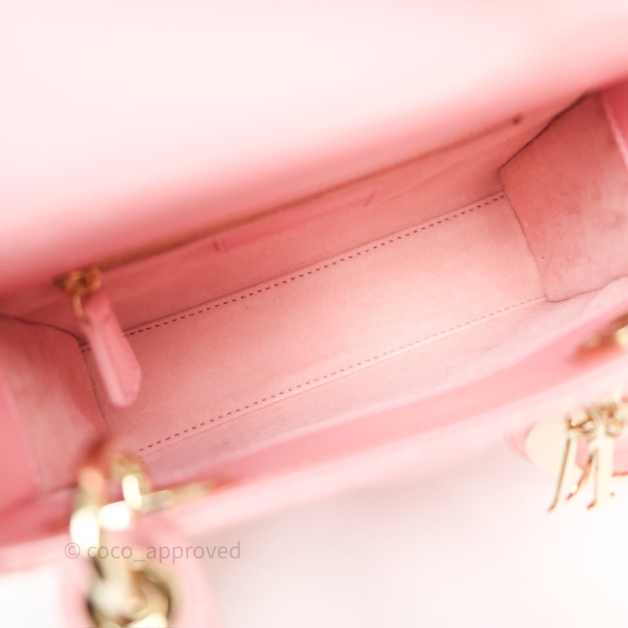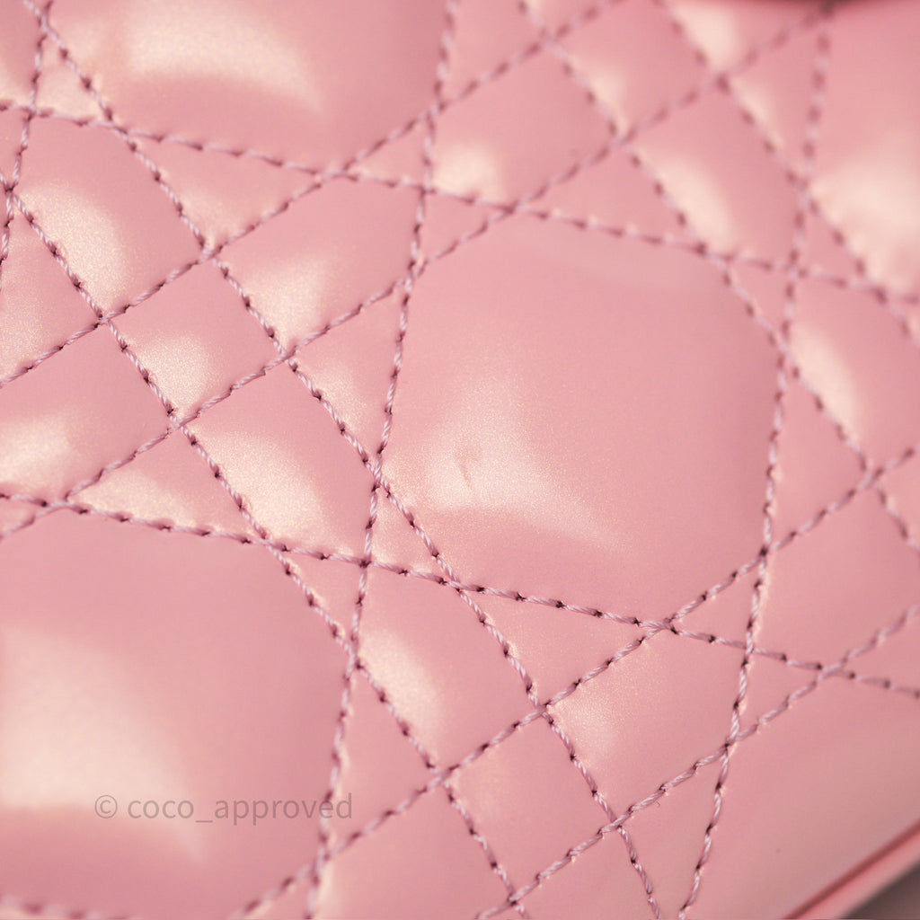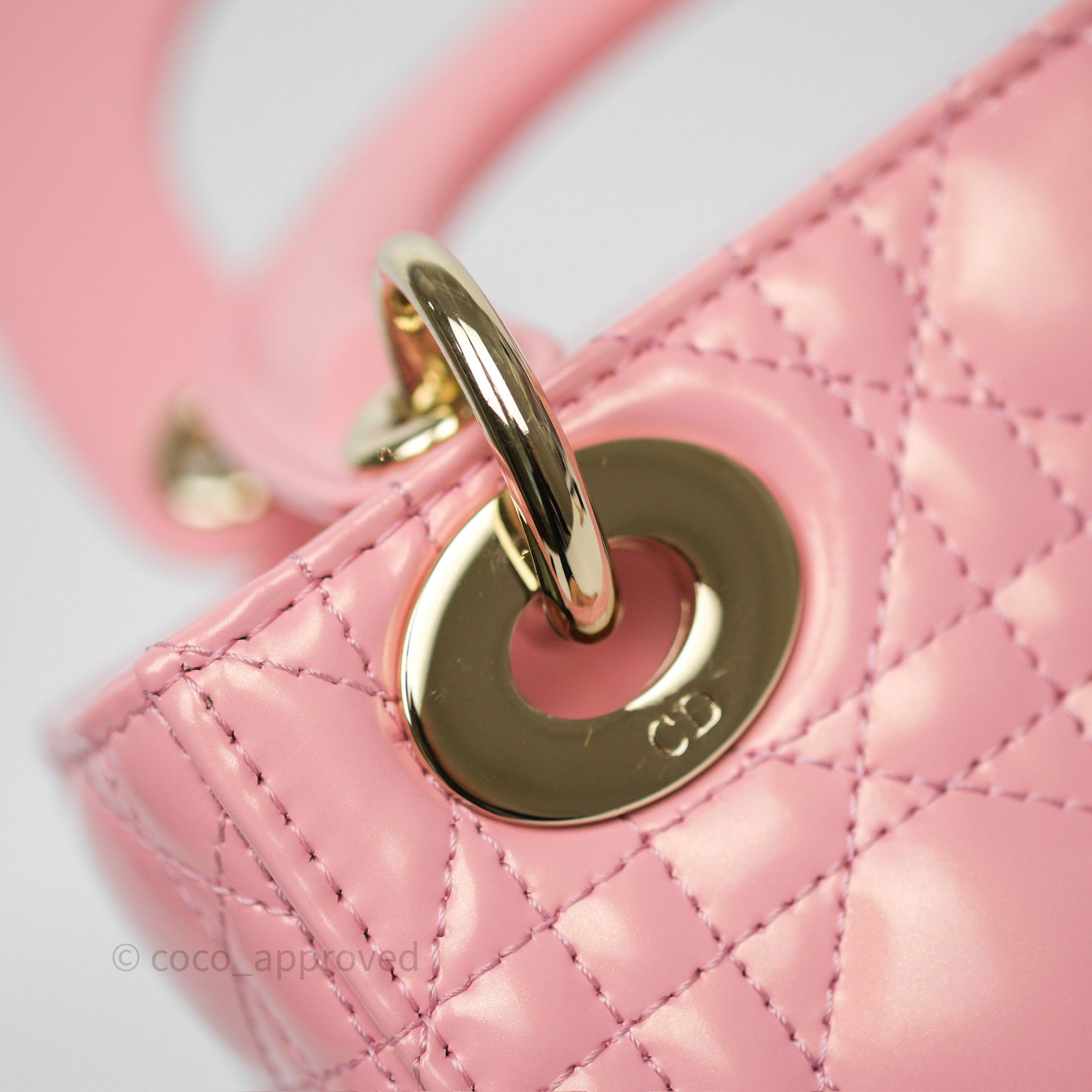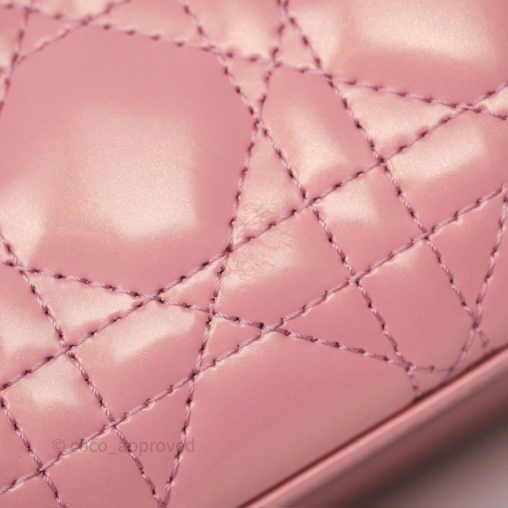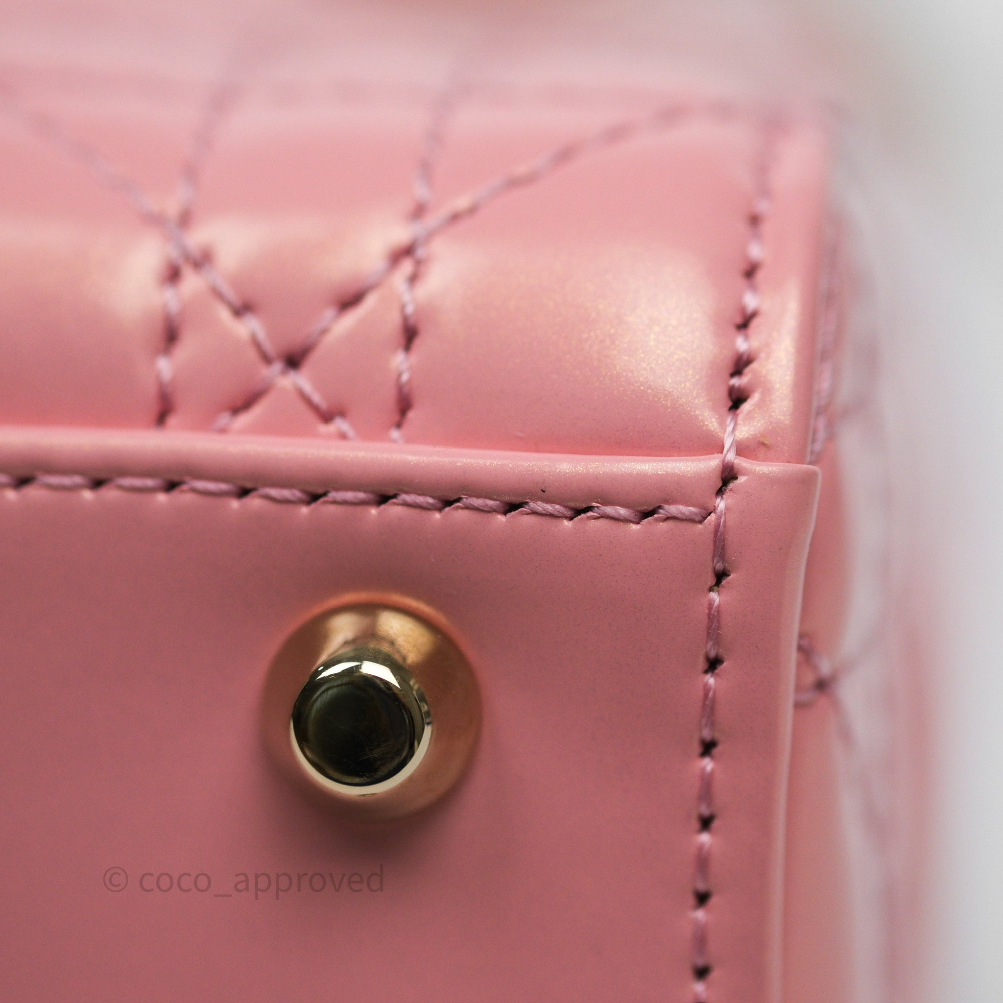 Dior Mini Lady Dior Pink Pearlescent Patent Cannage Gold Hardware