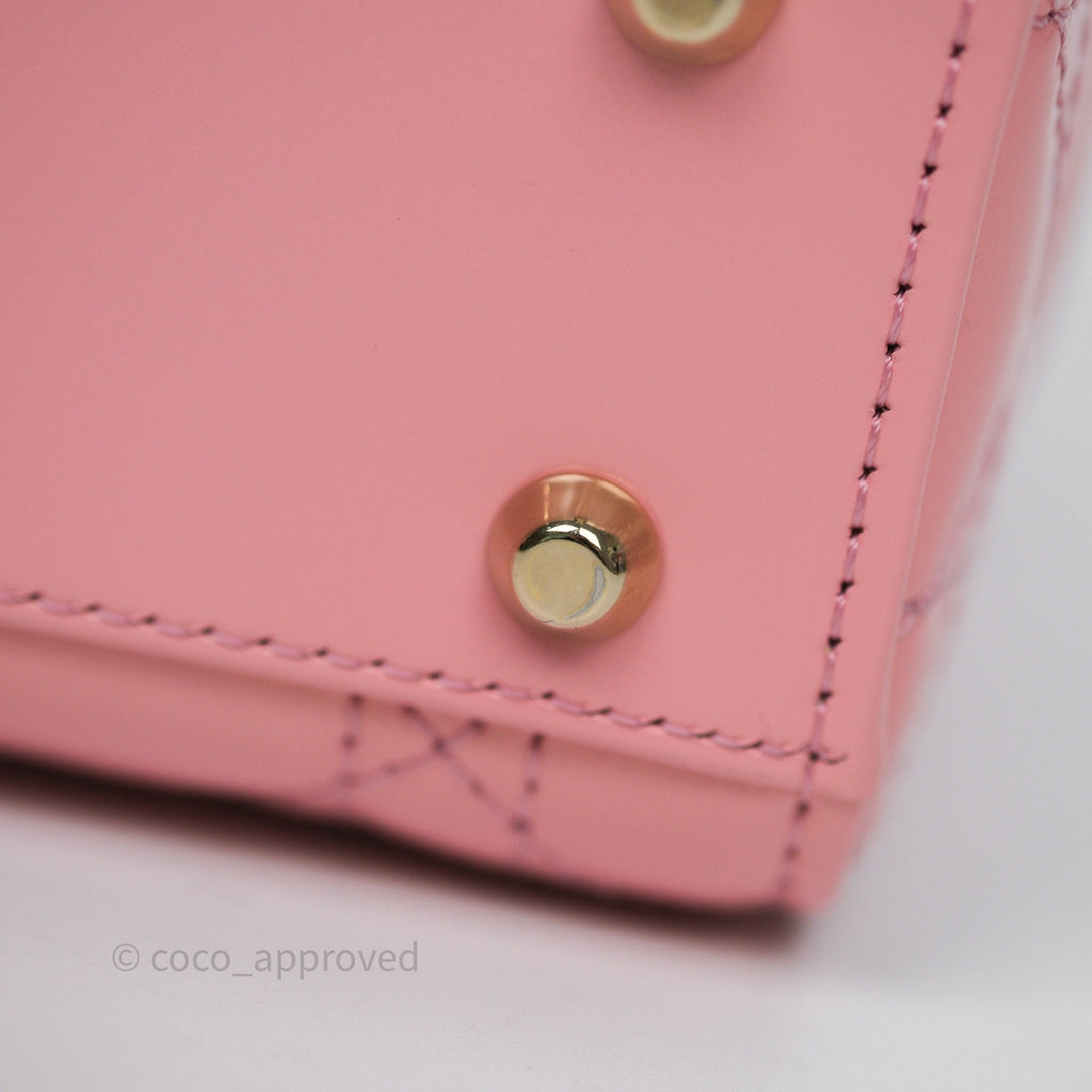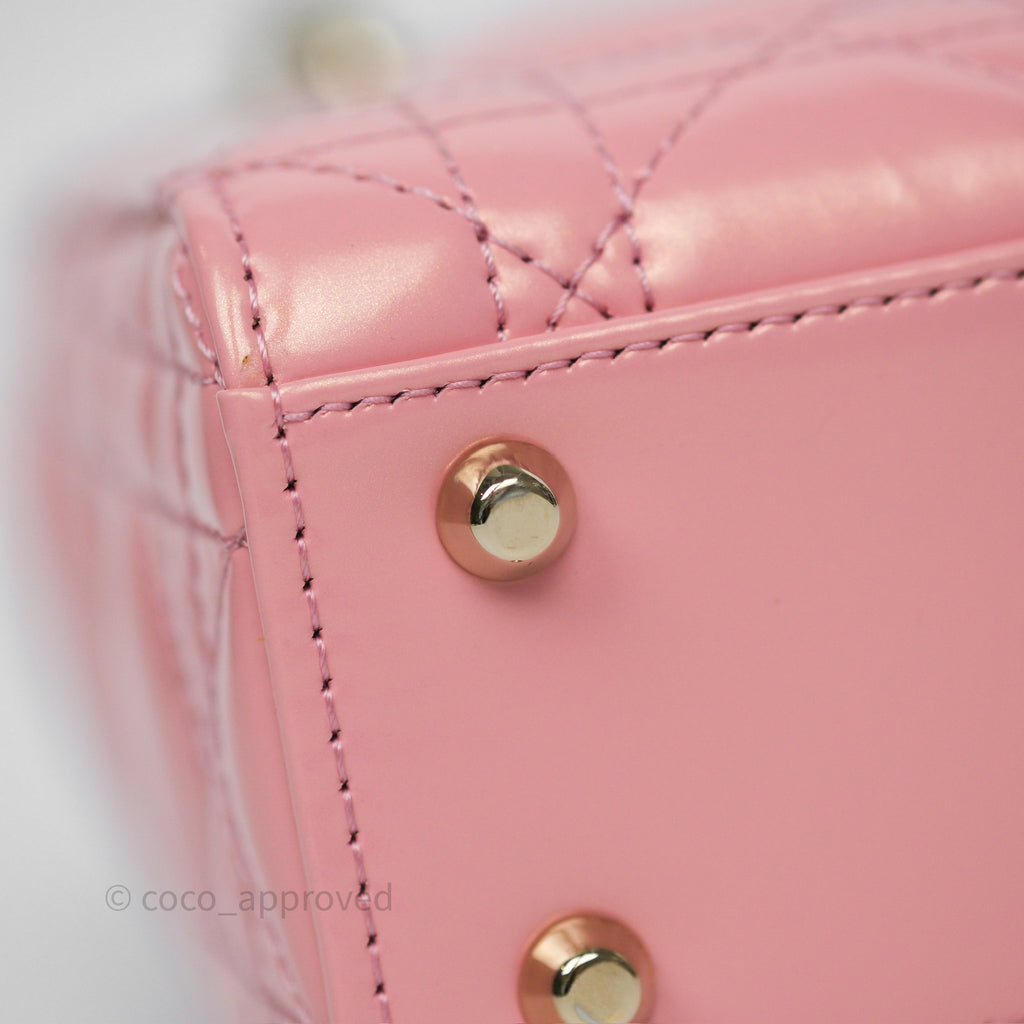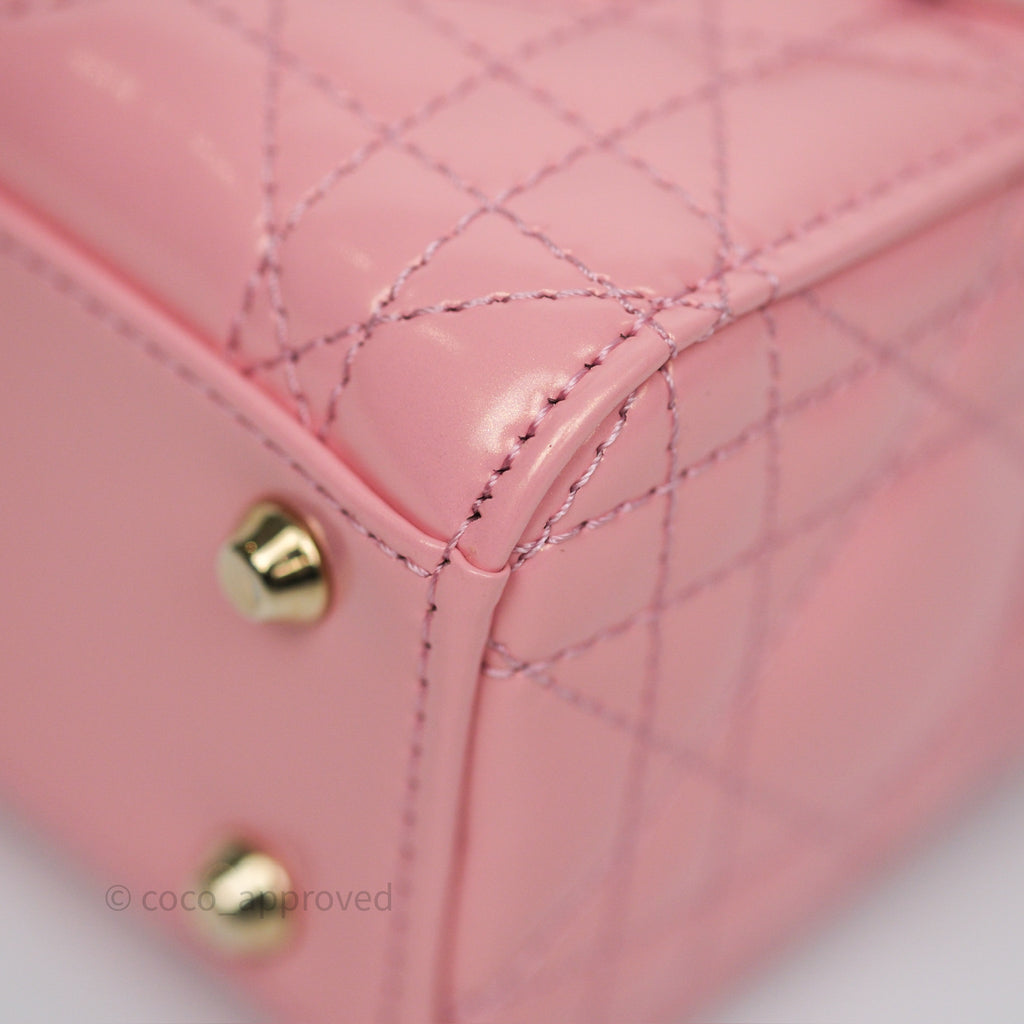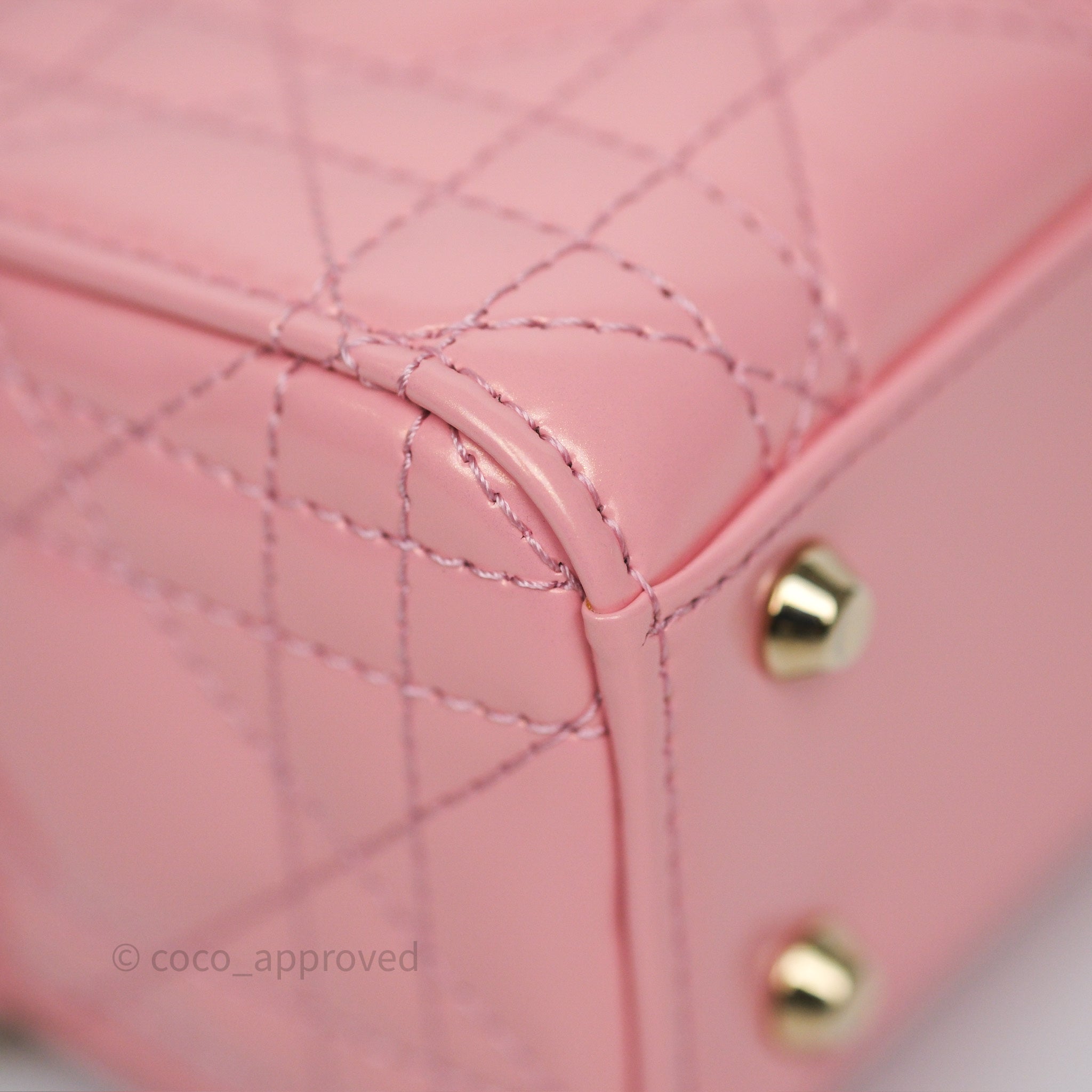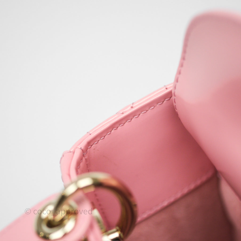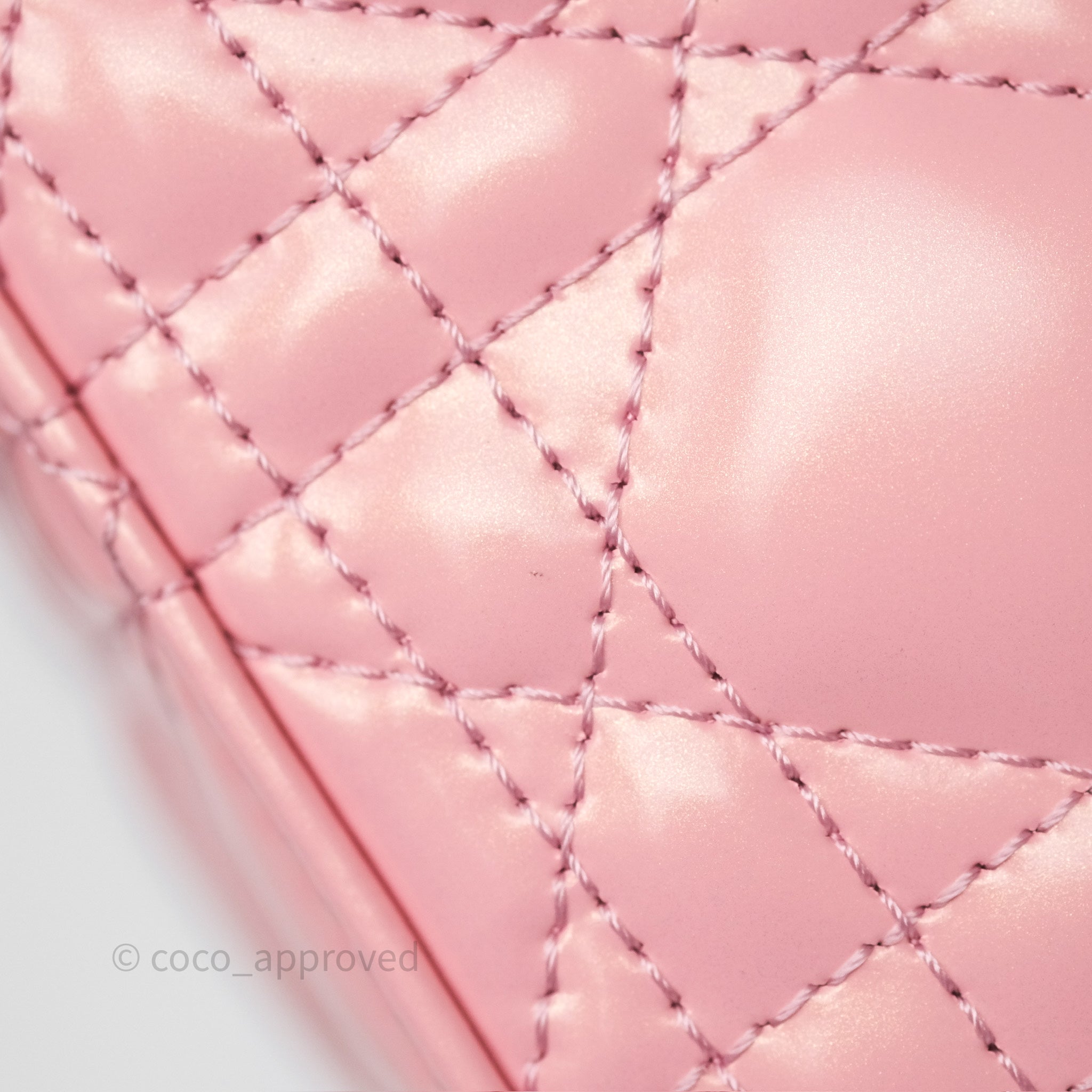 Dior Mini Lady Dior Pink Pearlescent Patent Cannage Gold Hardware