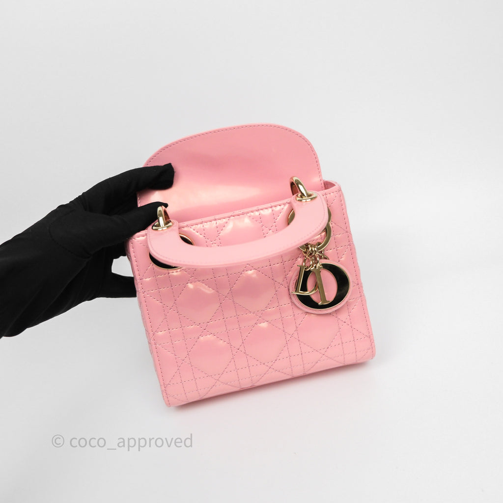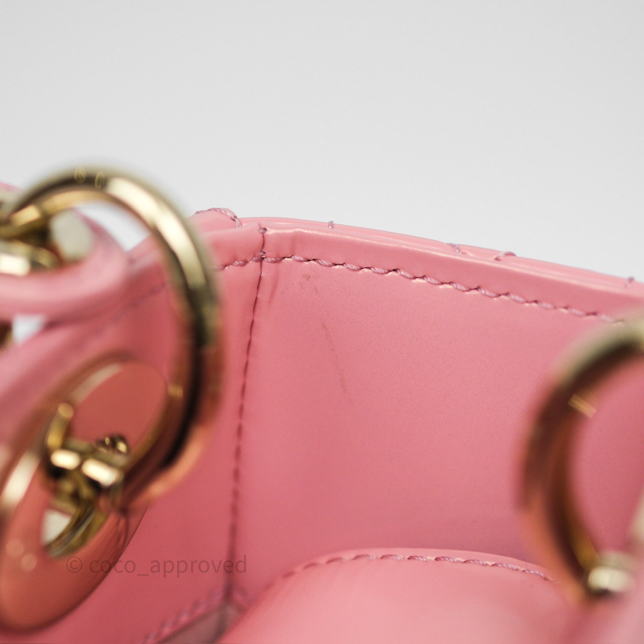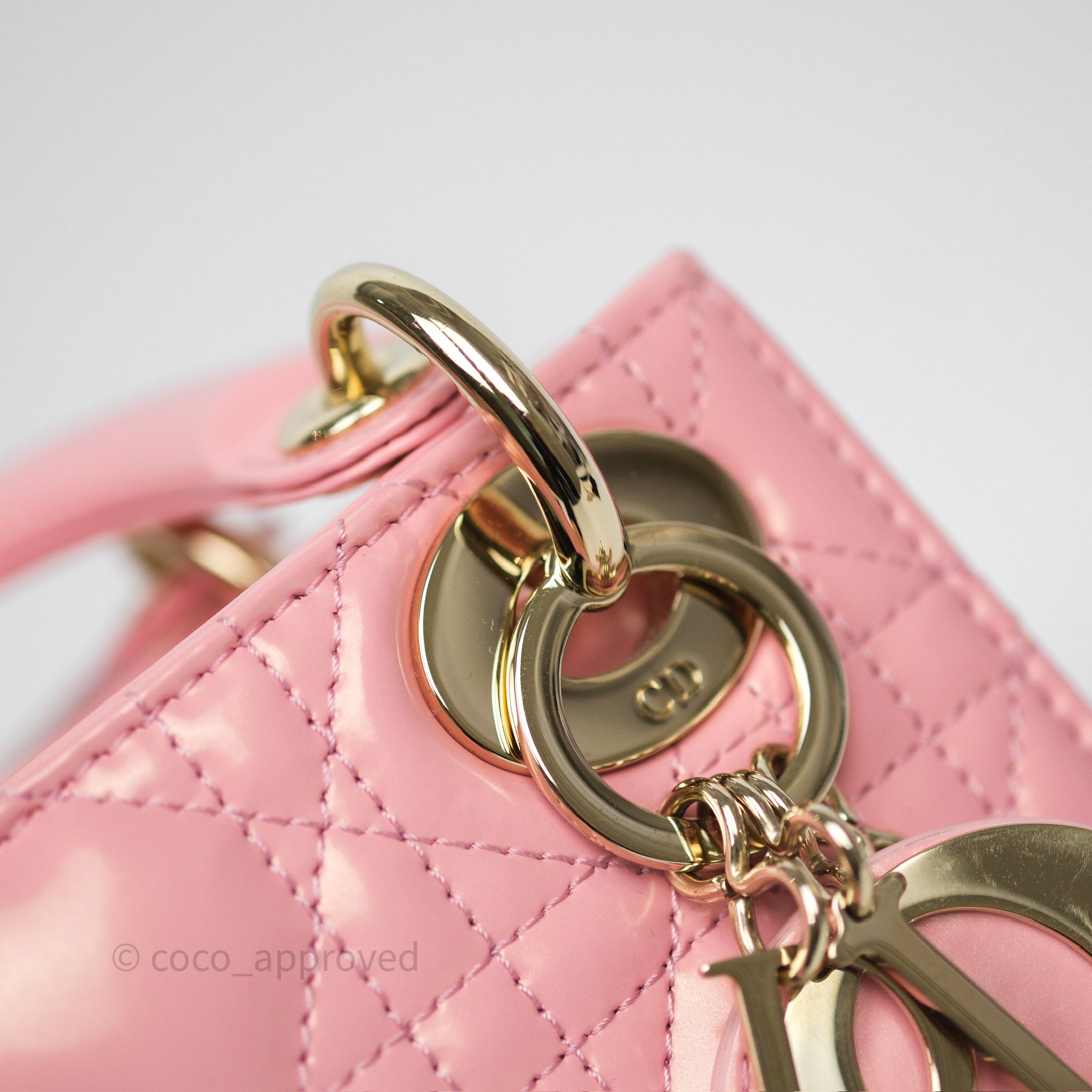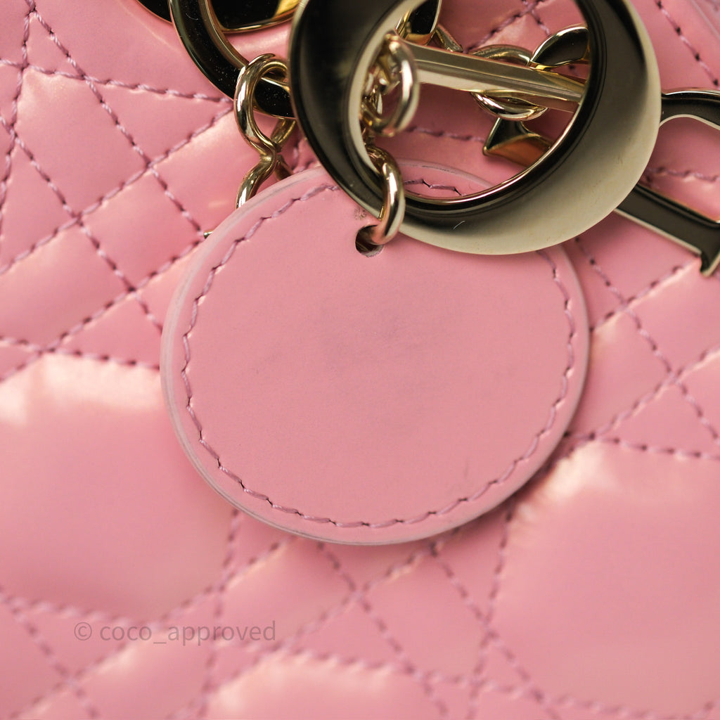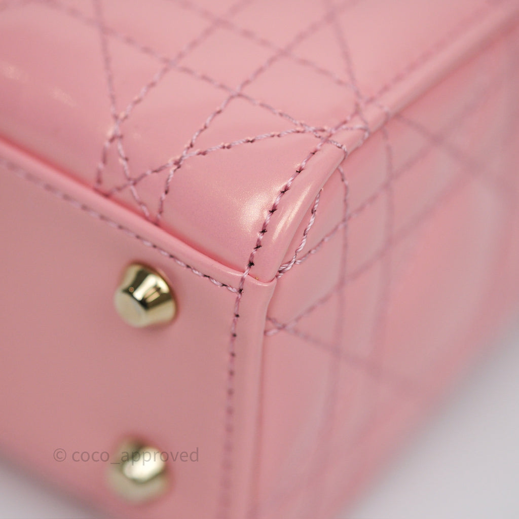 Dior Mini Lady Dior Pink Pearlescent Patent Cannage Gold Hardware