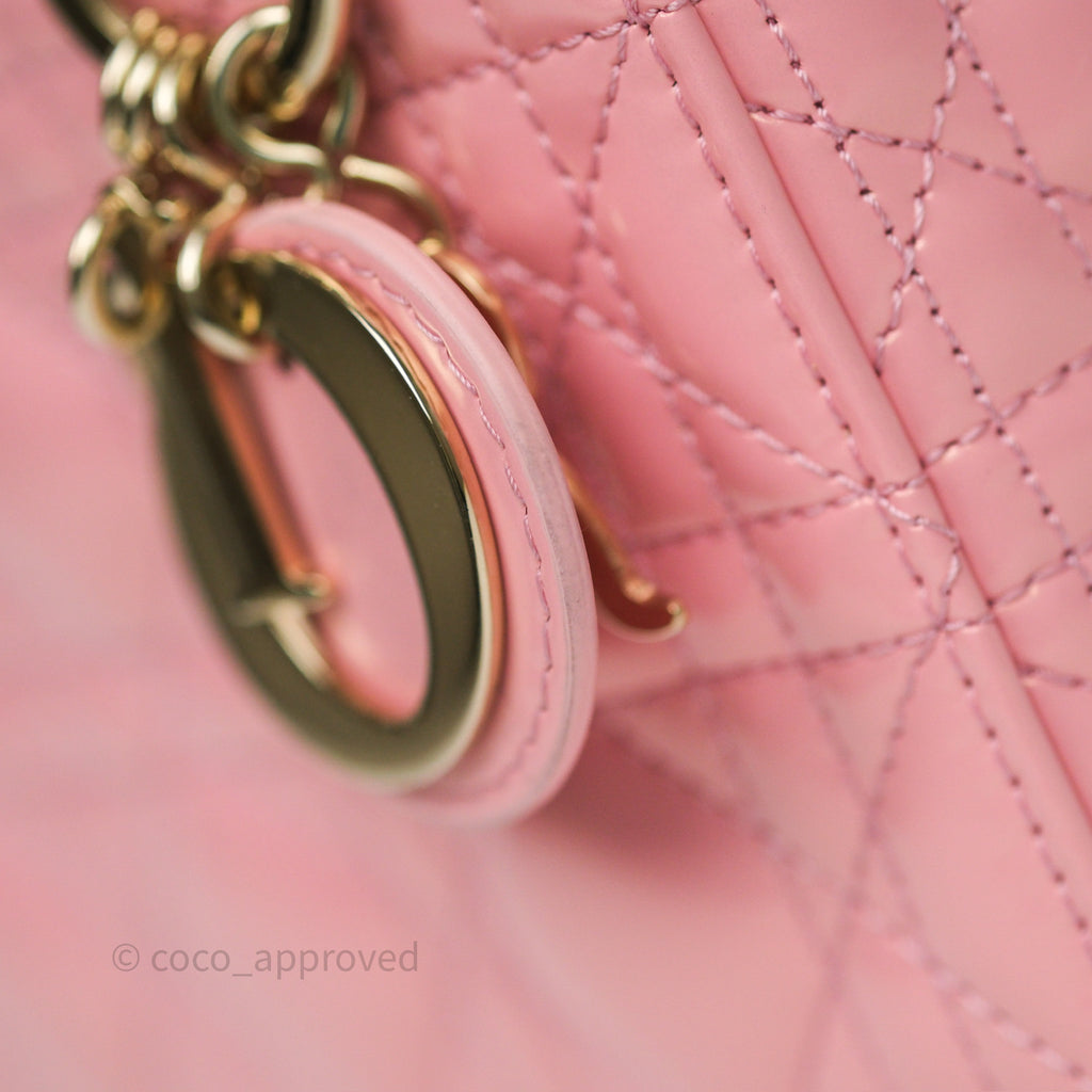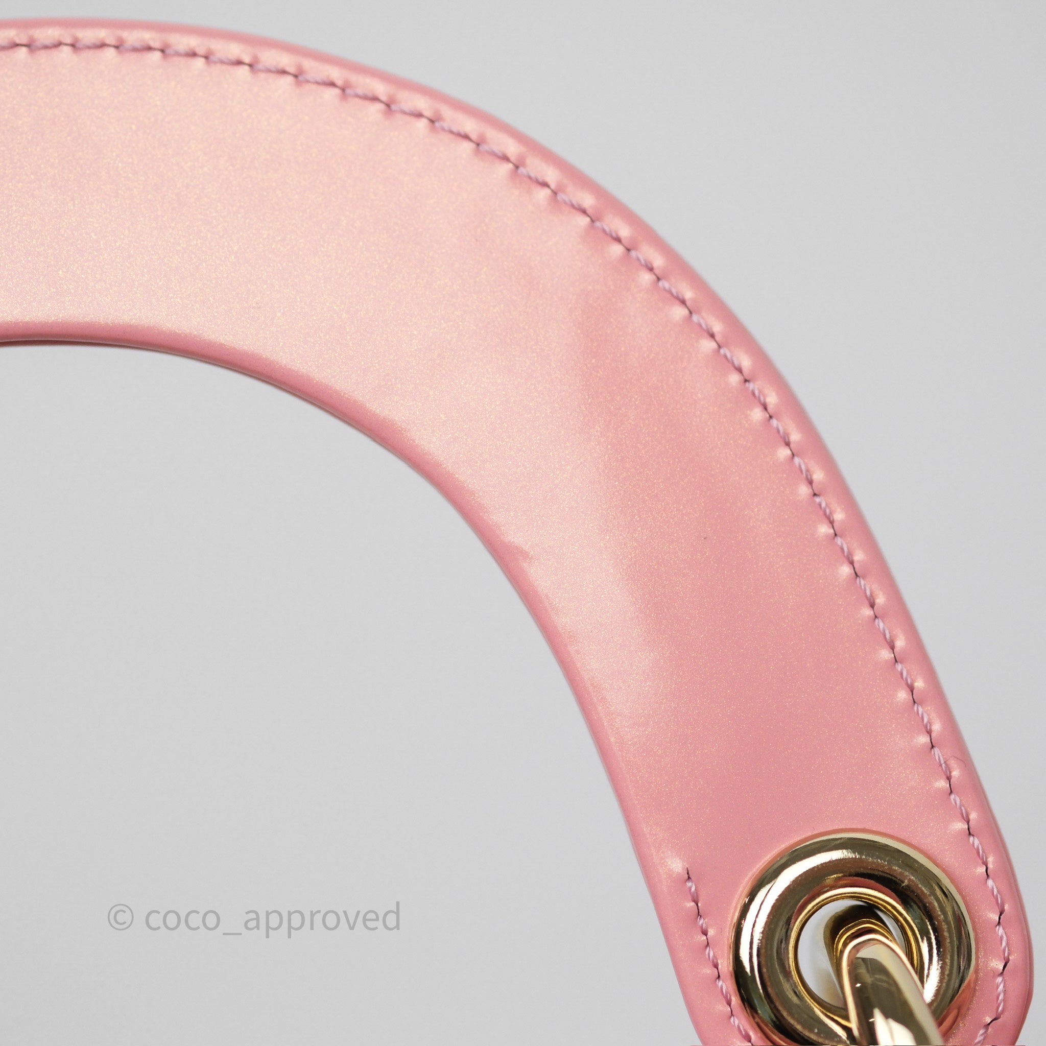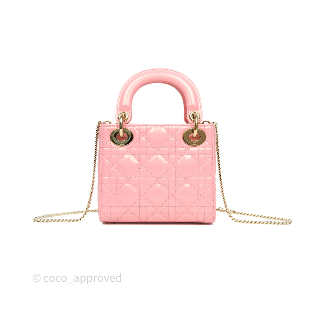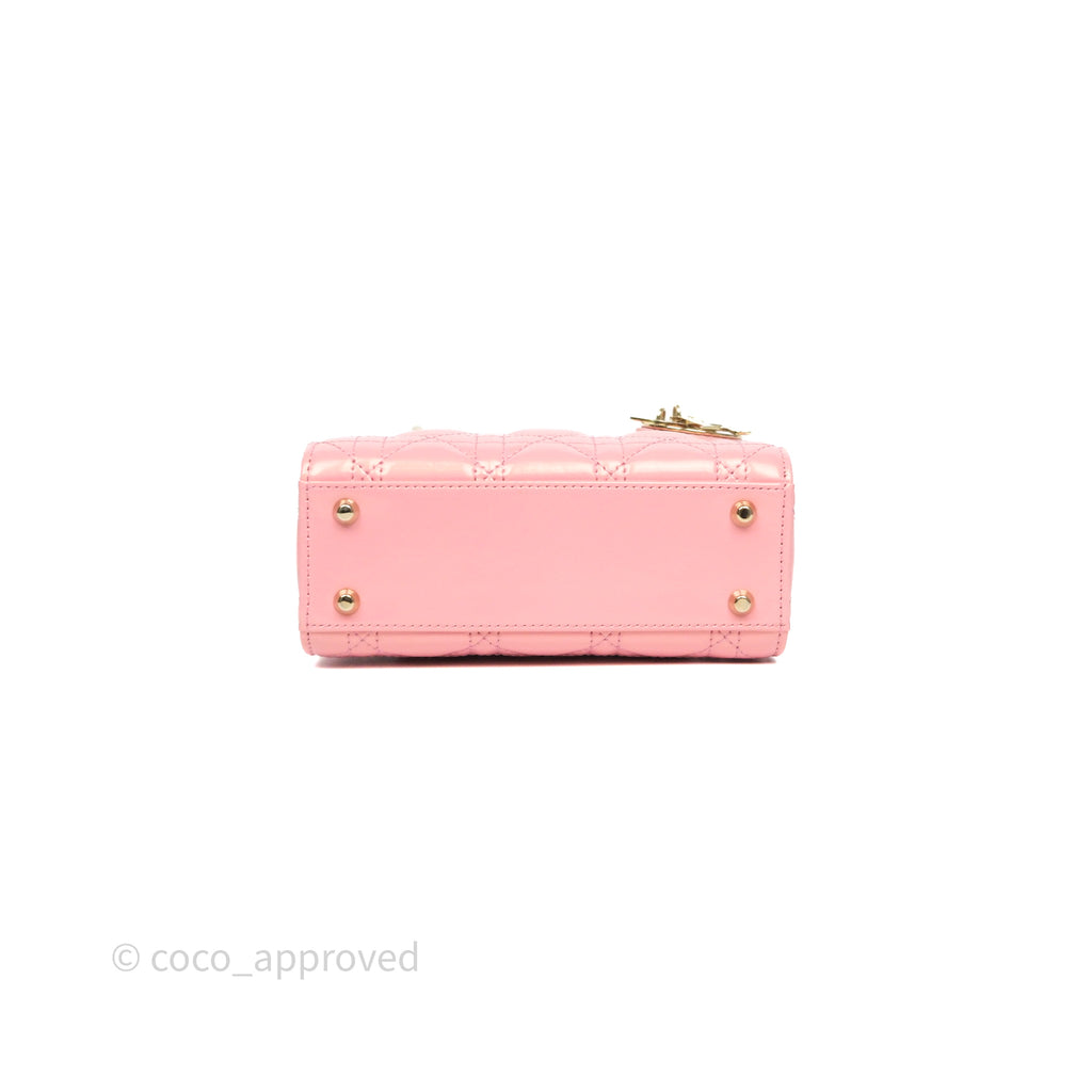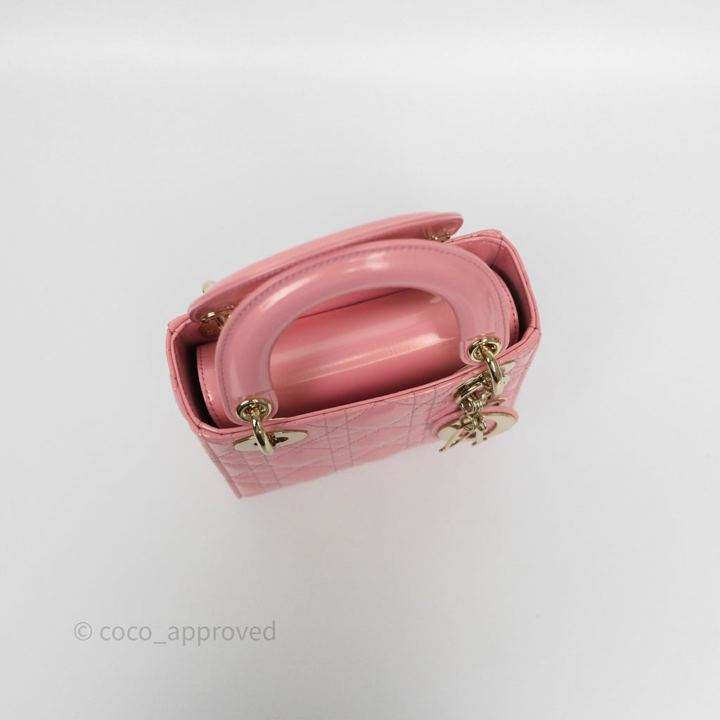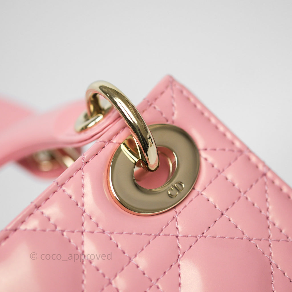 Dior Mini Lady Dior Pink Pearlescent Patent Cannage Gold Hardware