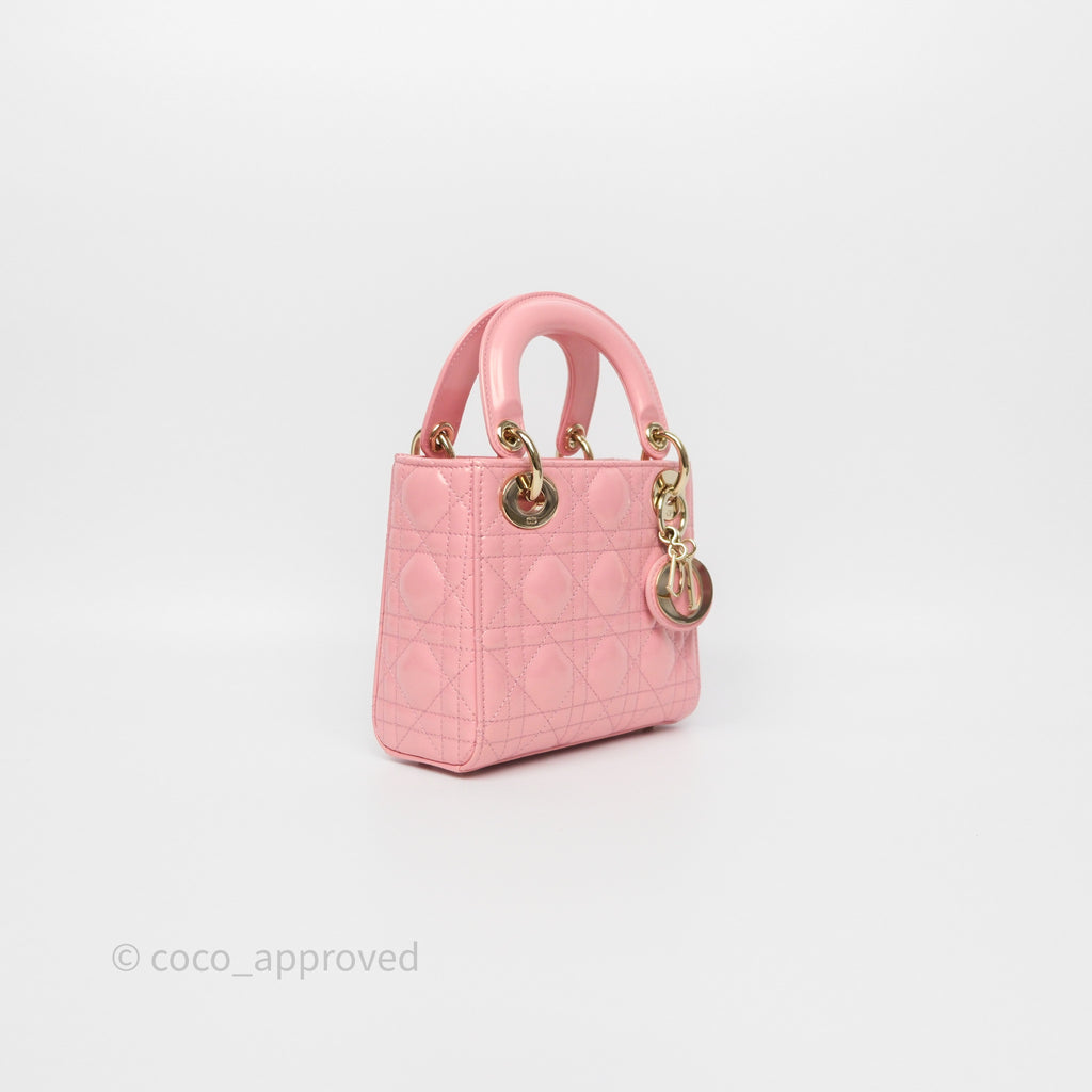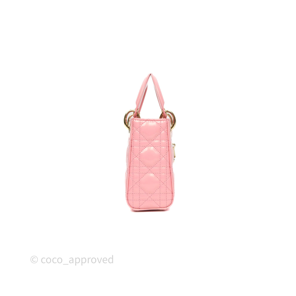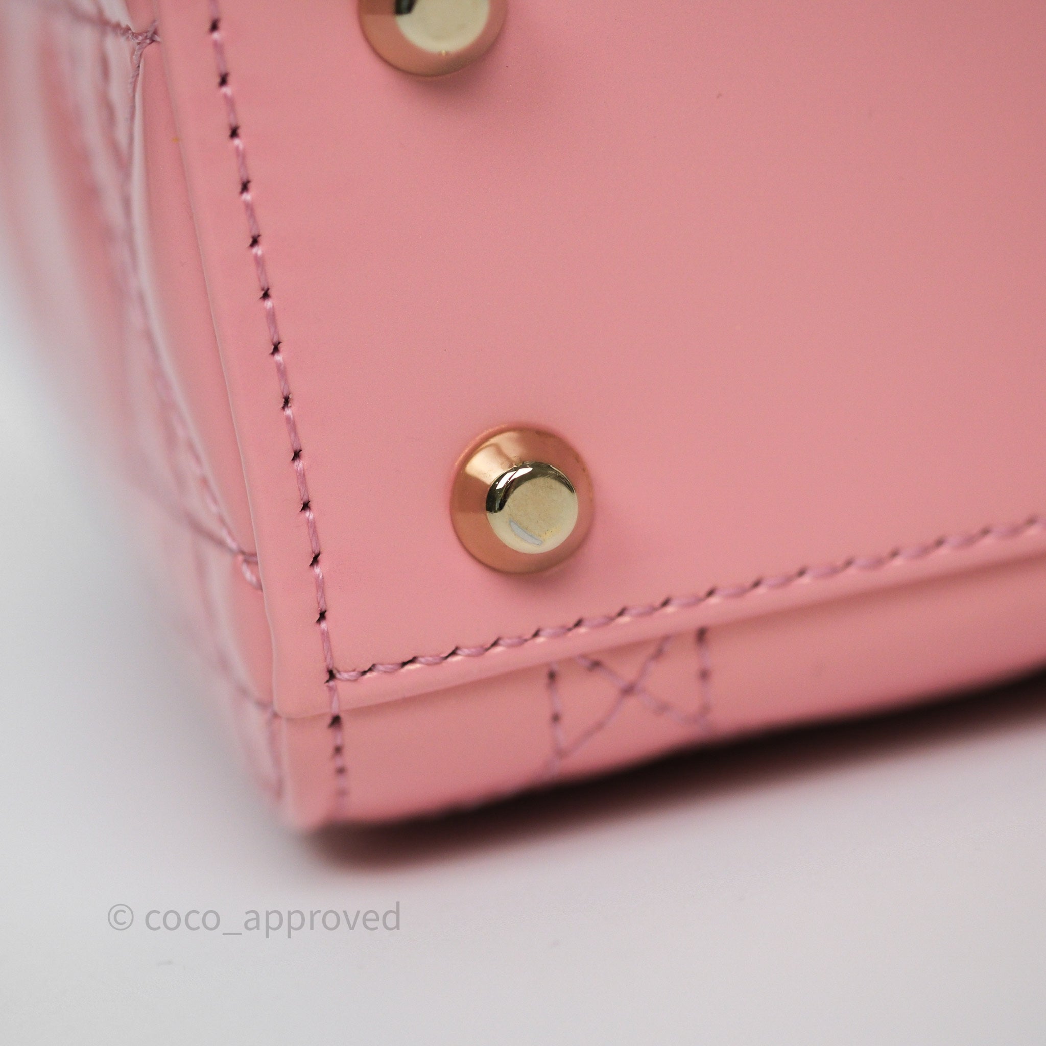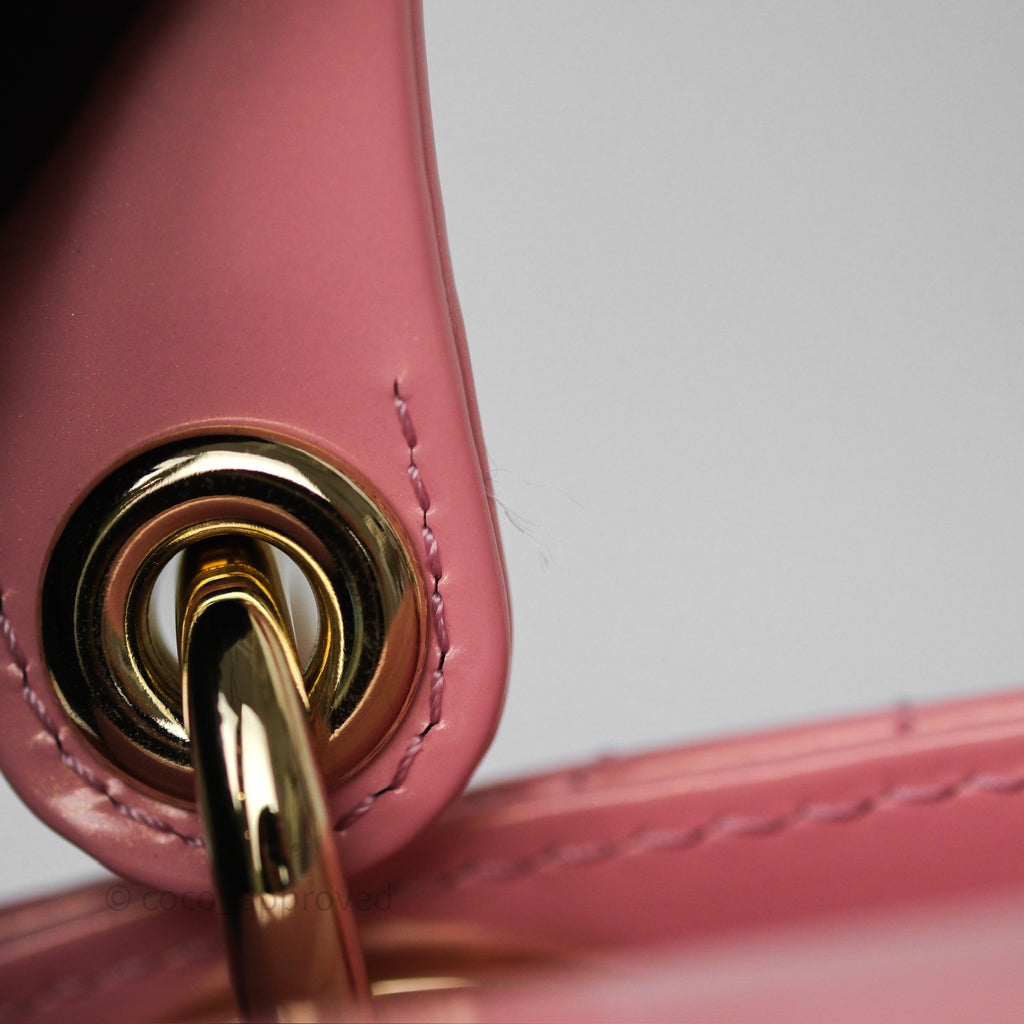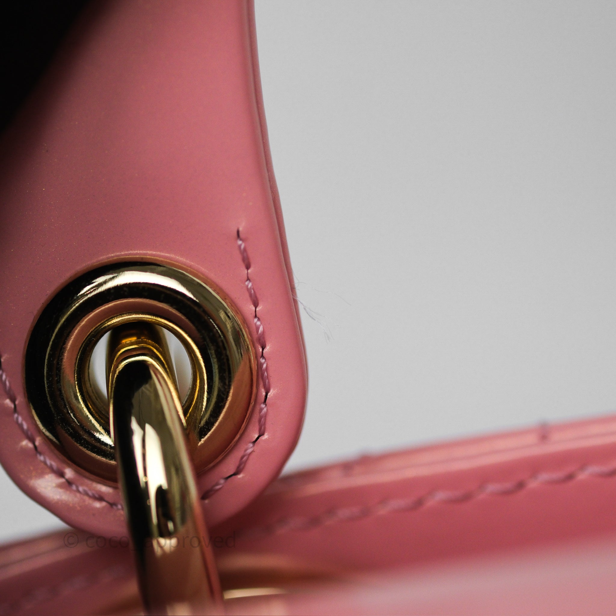 Dior Mini Lady Dior Pink Pearlescent Patent Cannage Gold Hardware