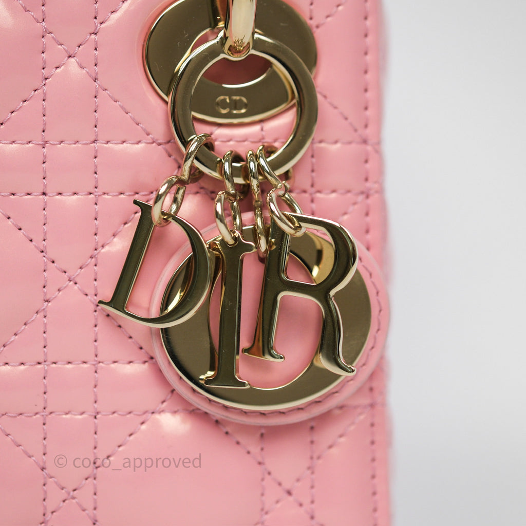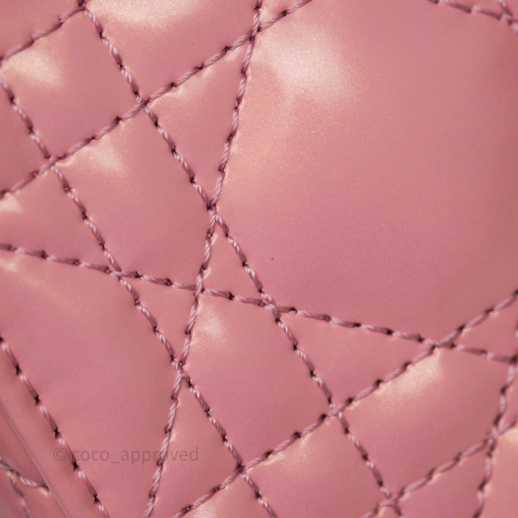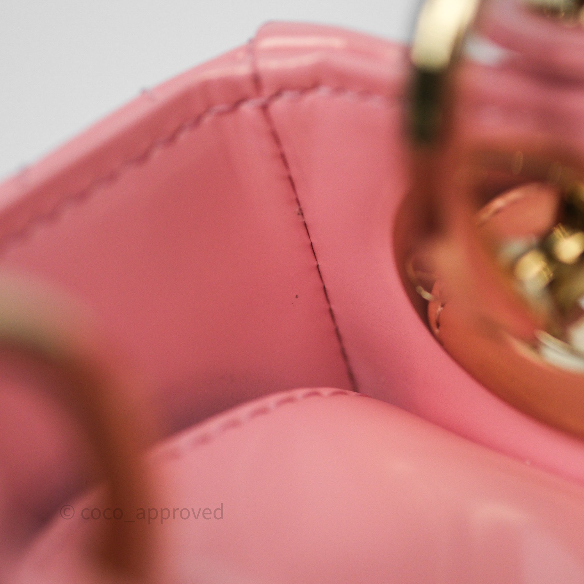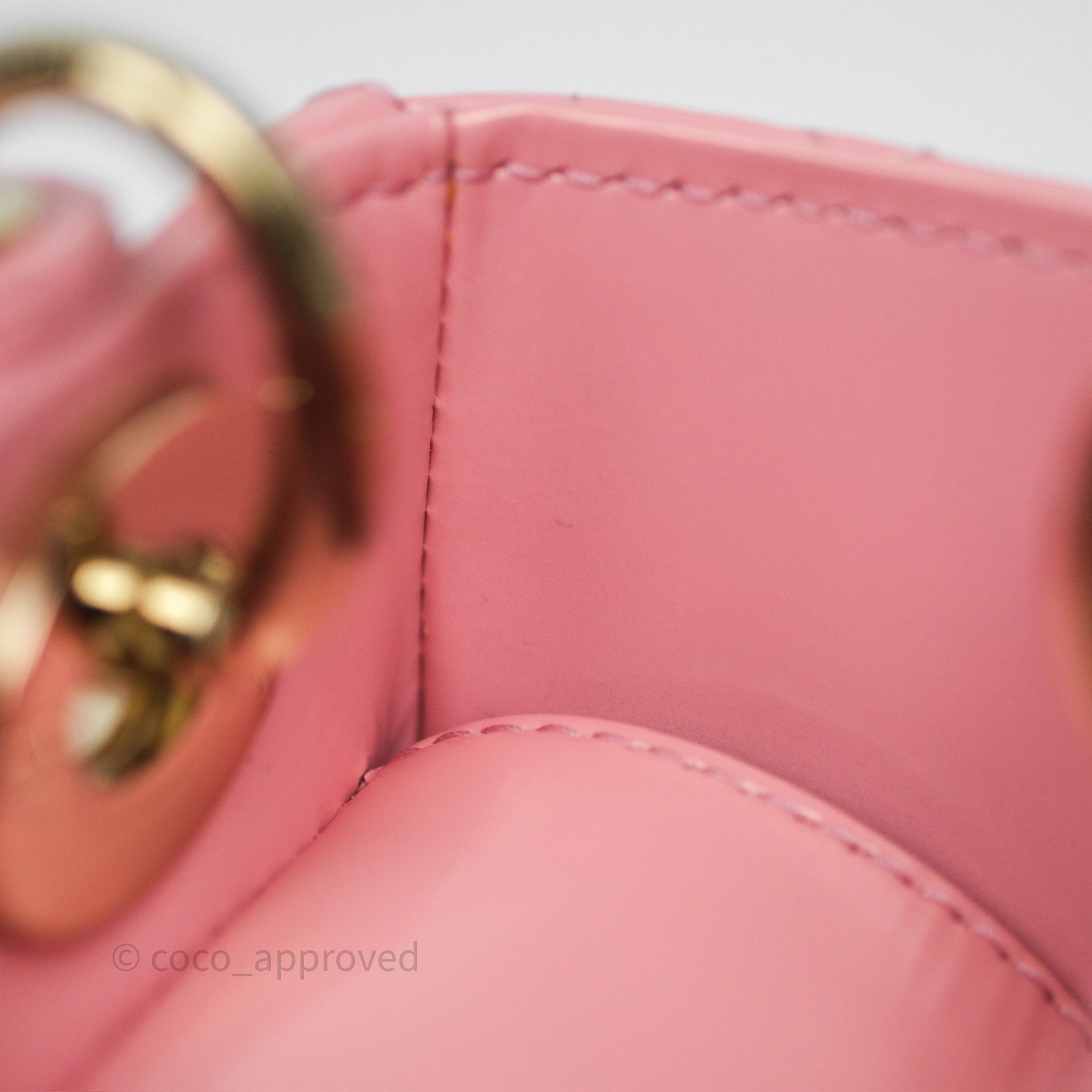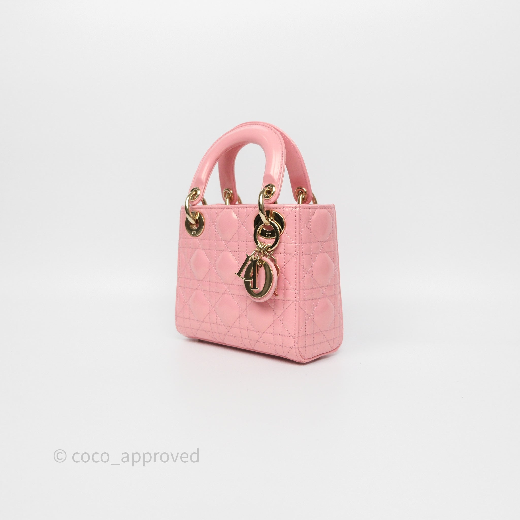 Dior Mini Lady Dior Pink Pearlescent Patent Cannage Gold Hardware