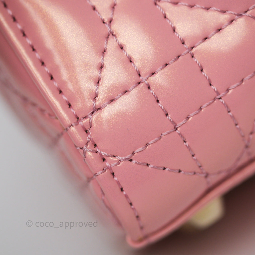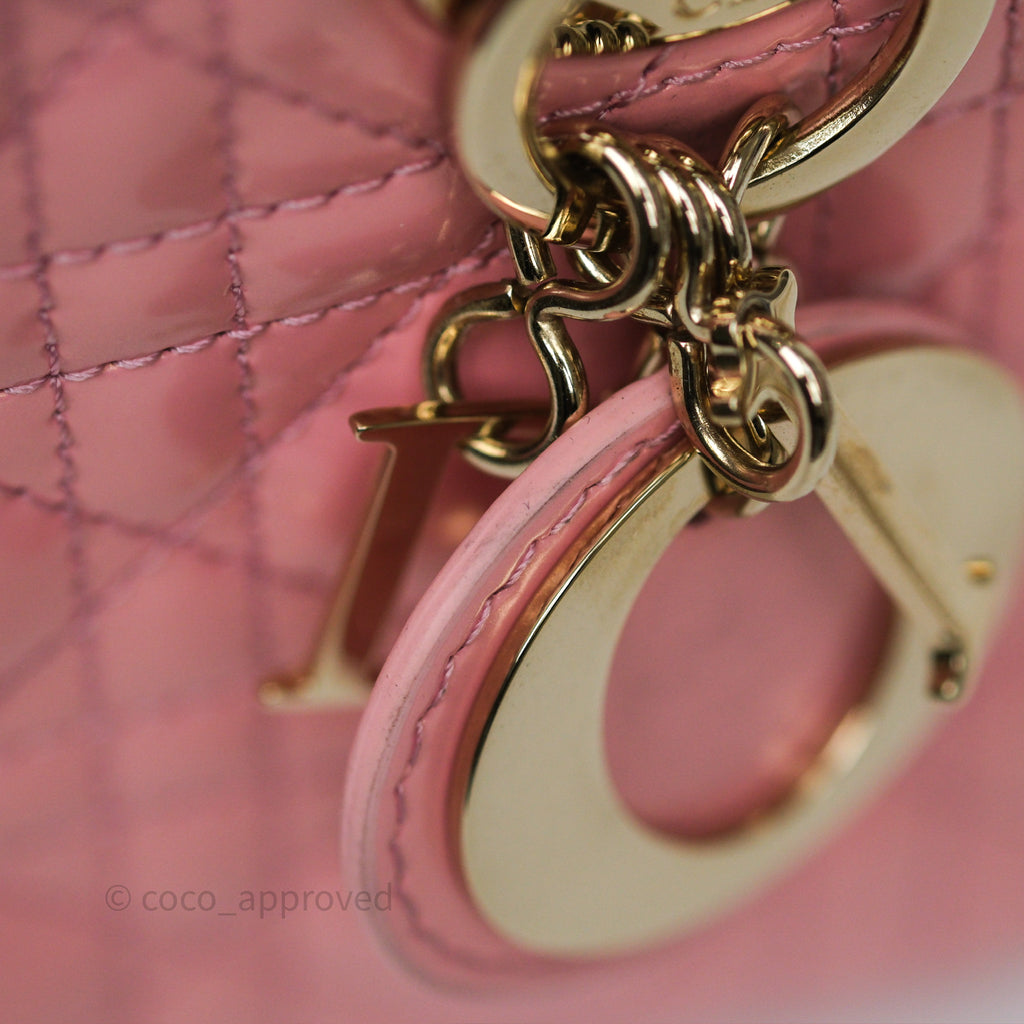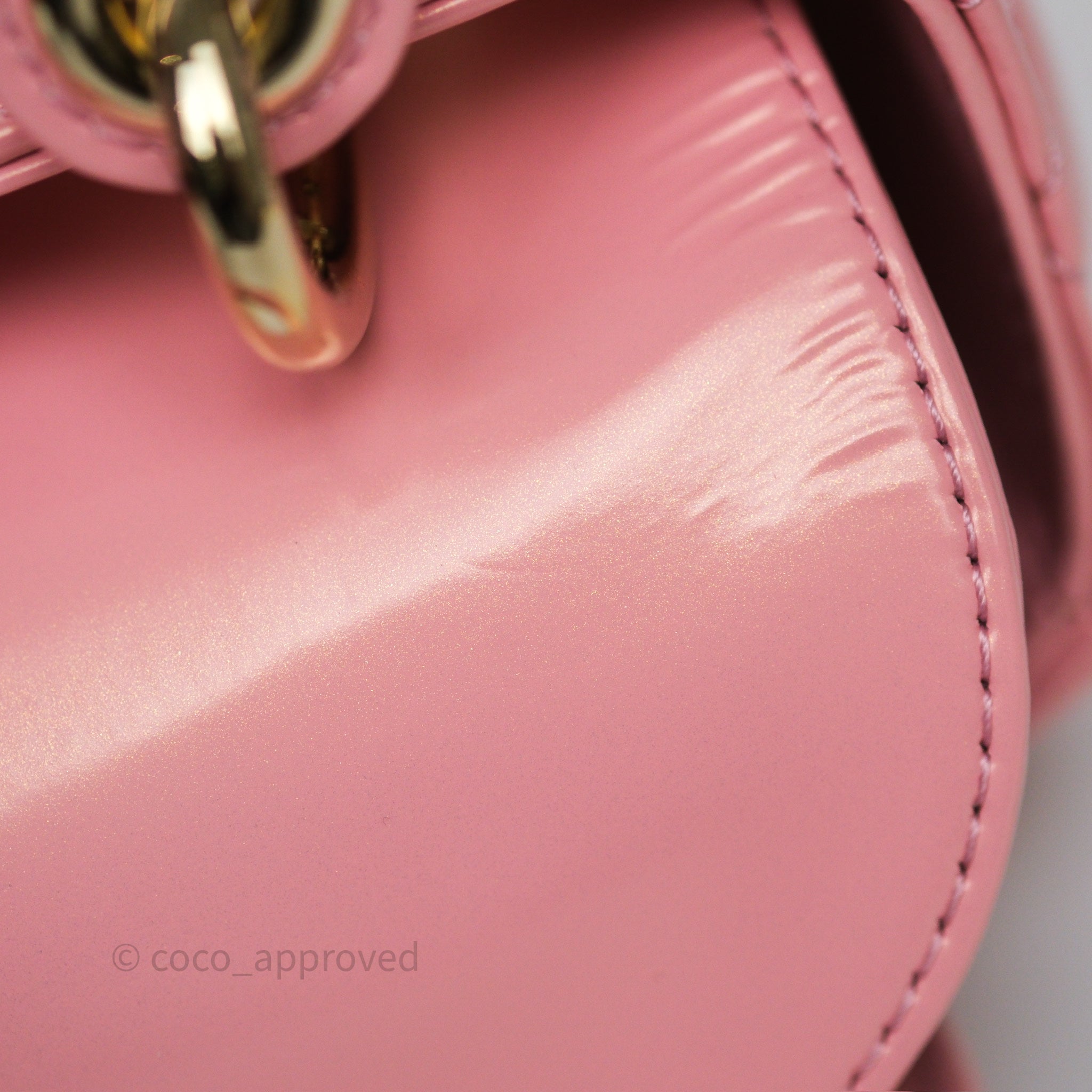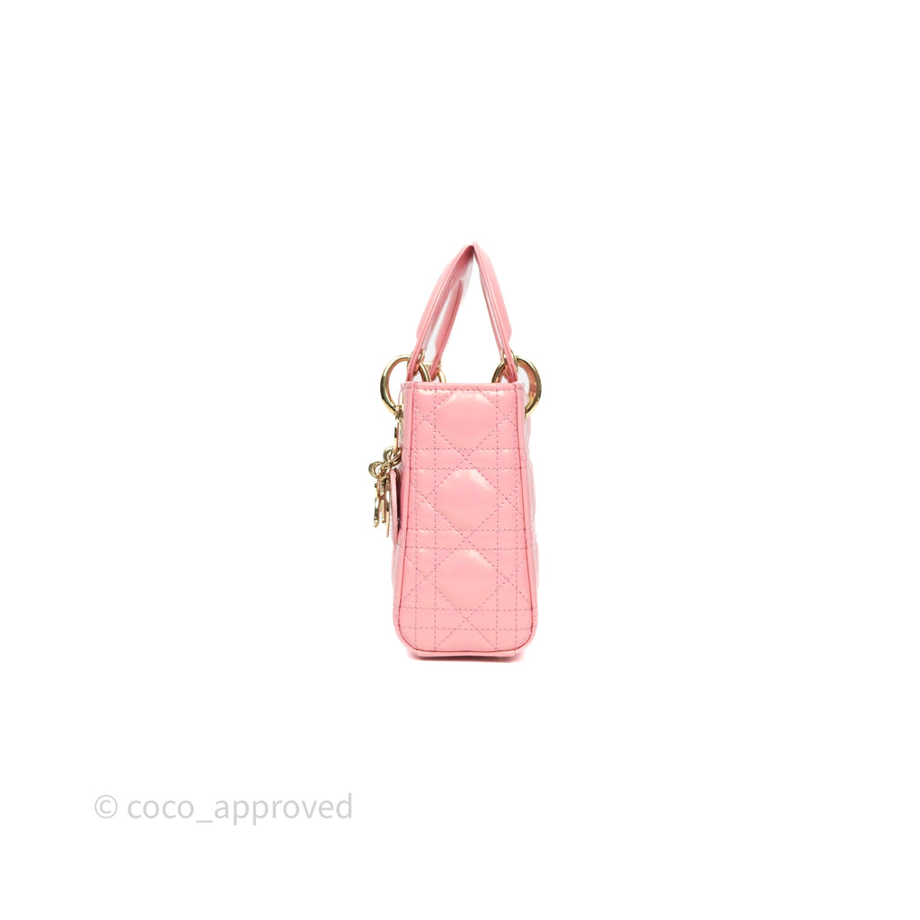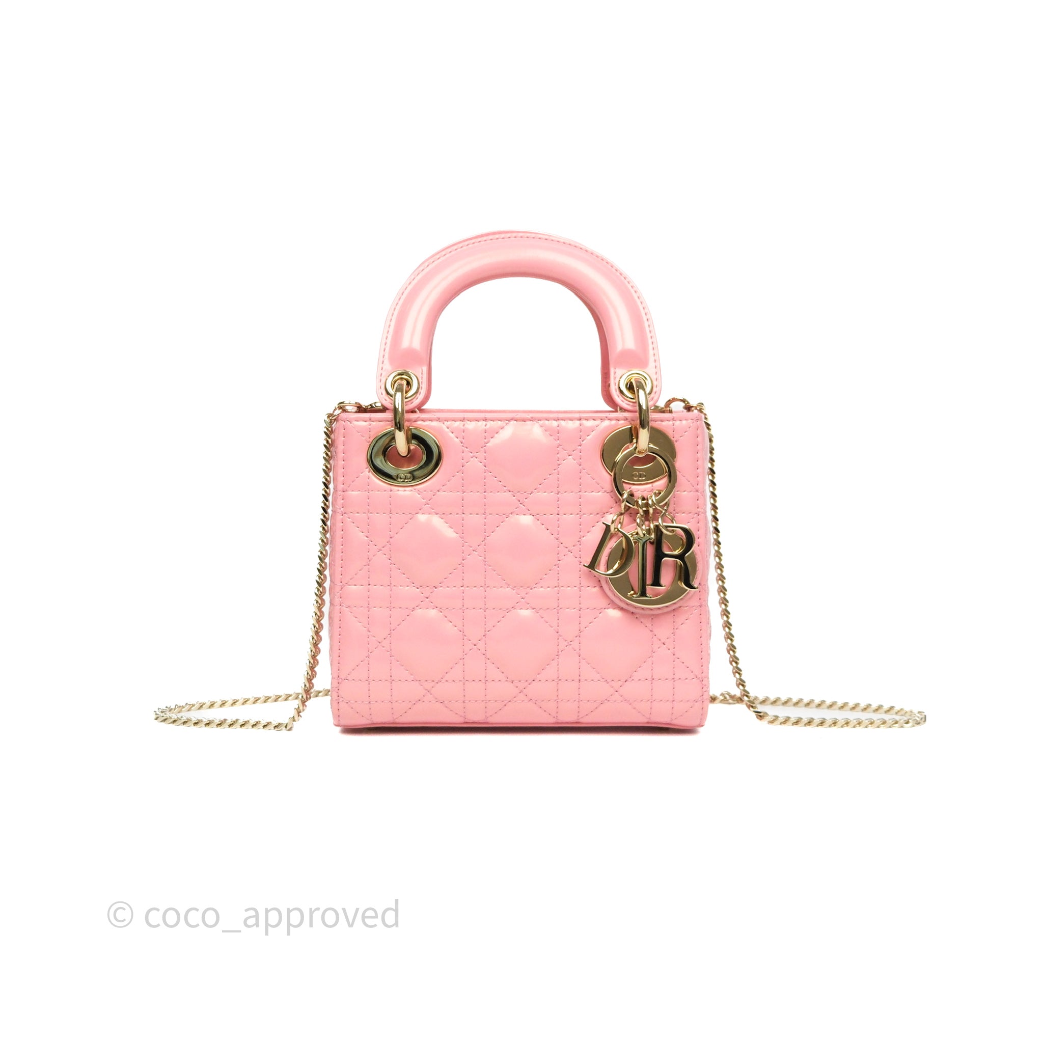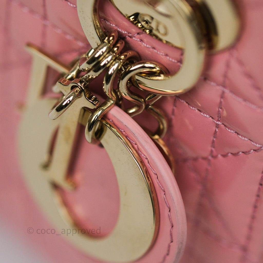Dior Mini Lady Dior Pink Pearlescent Patent Cannage Gold Hardware