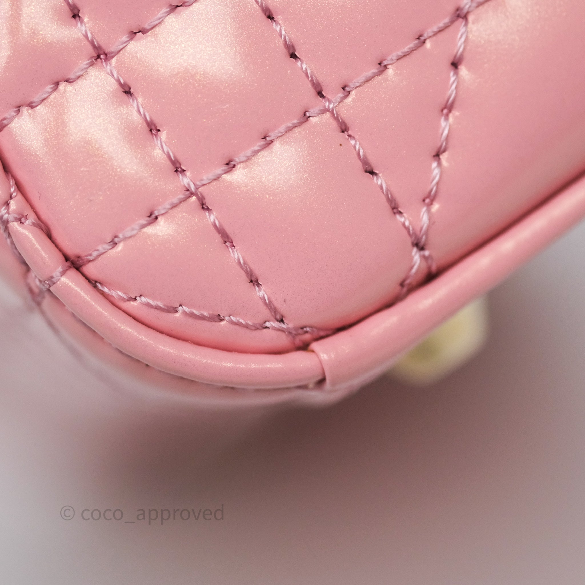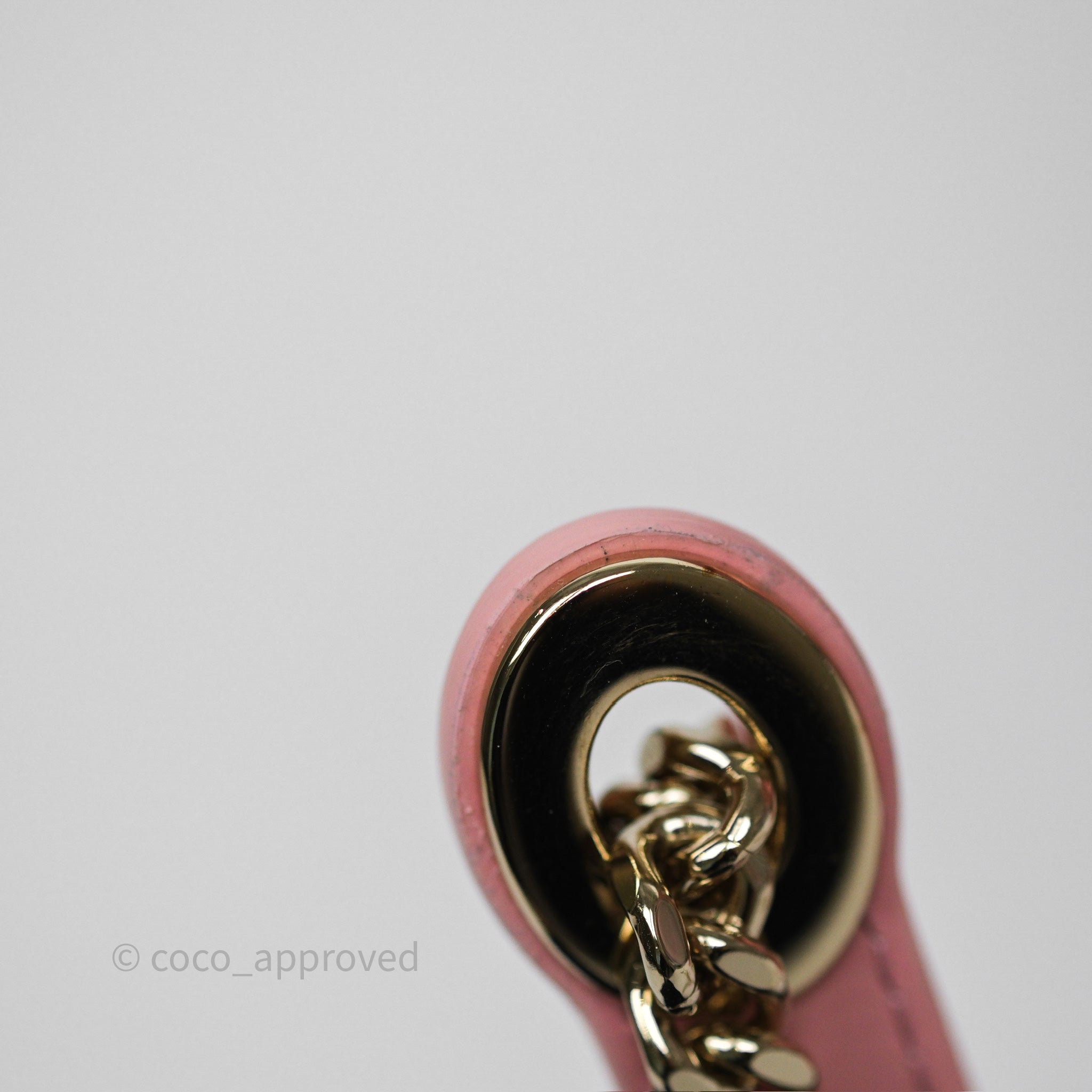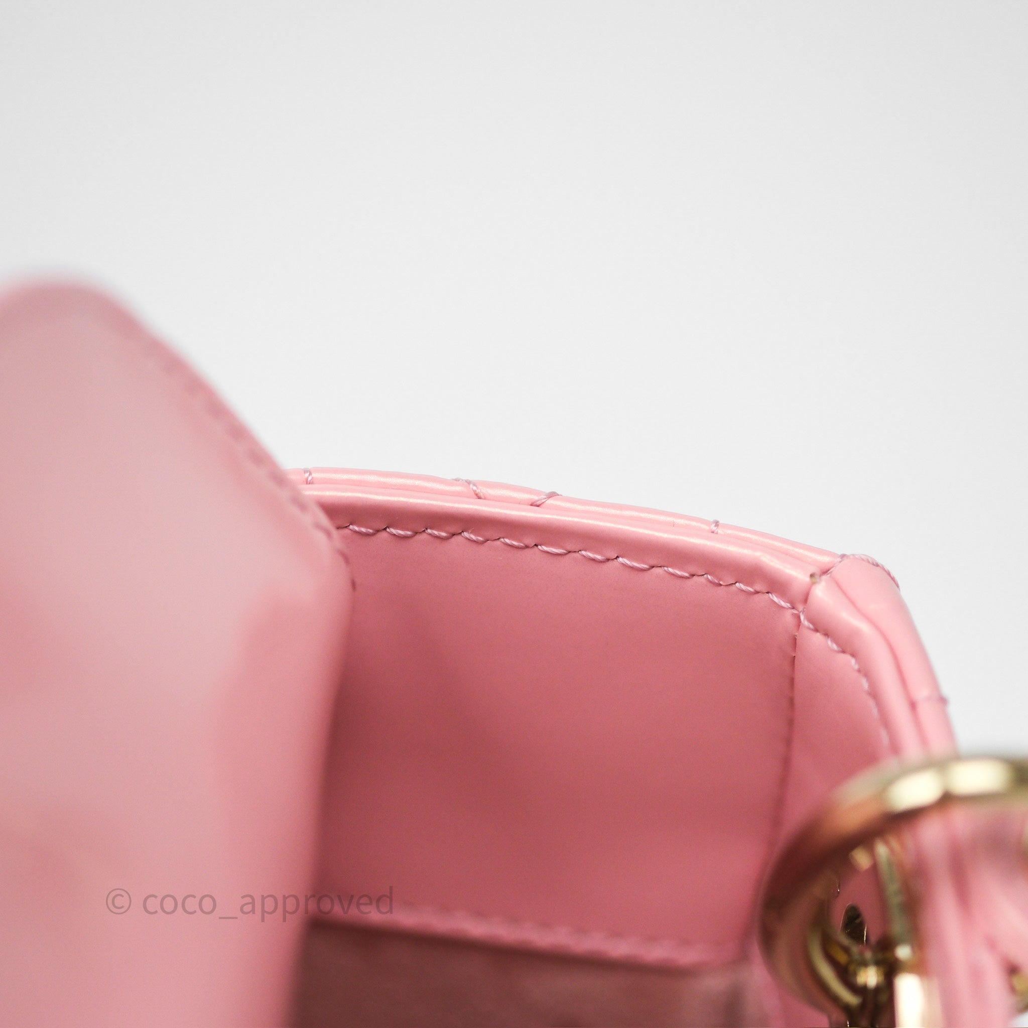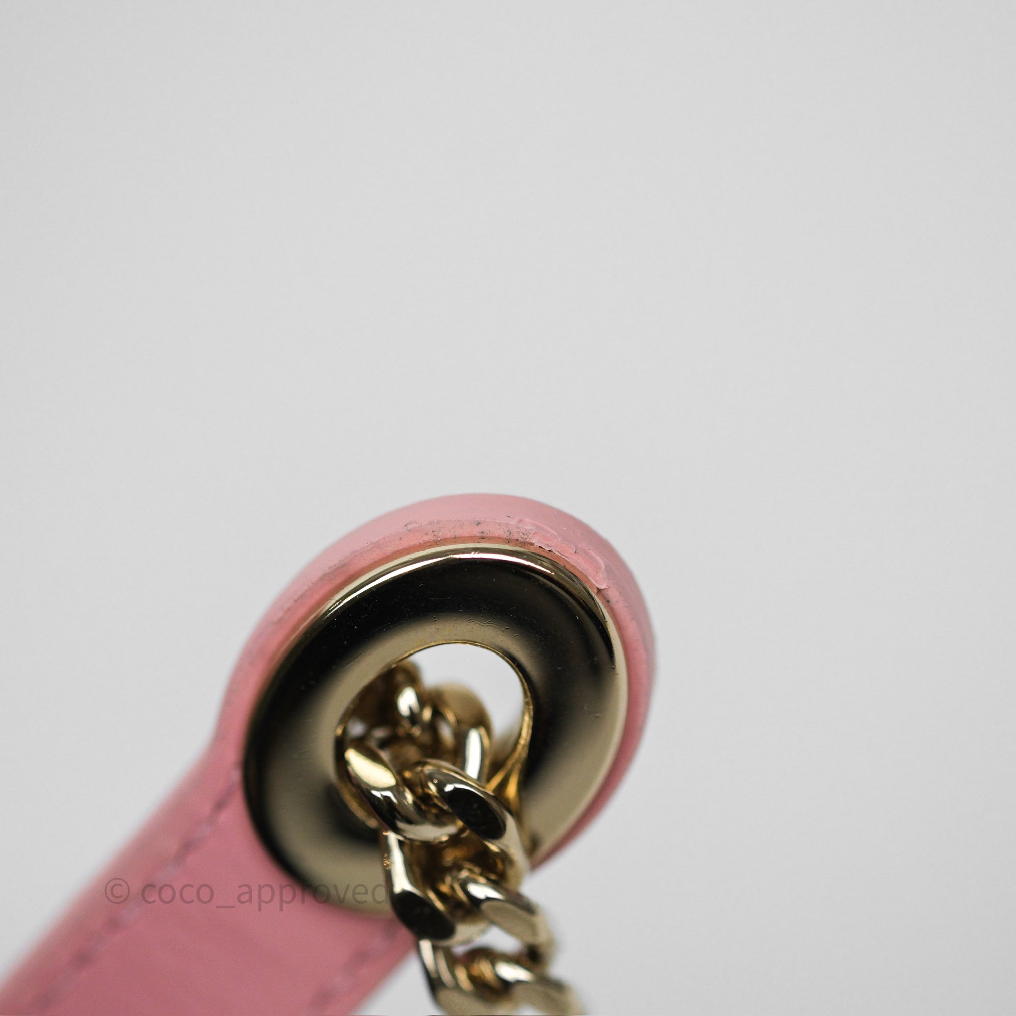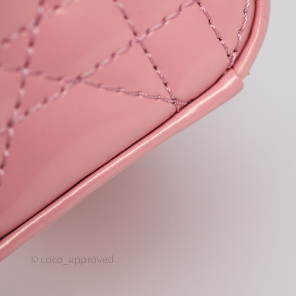 Dior Mini Lady Dior Pink Pearlescent Patent Cannage Gold Hardware