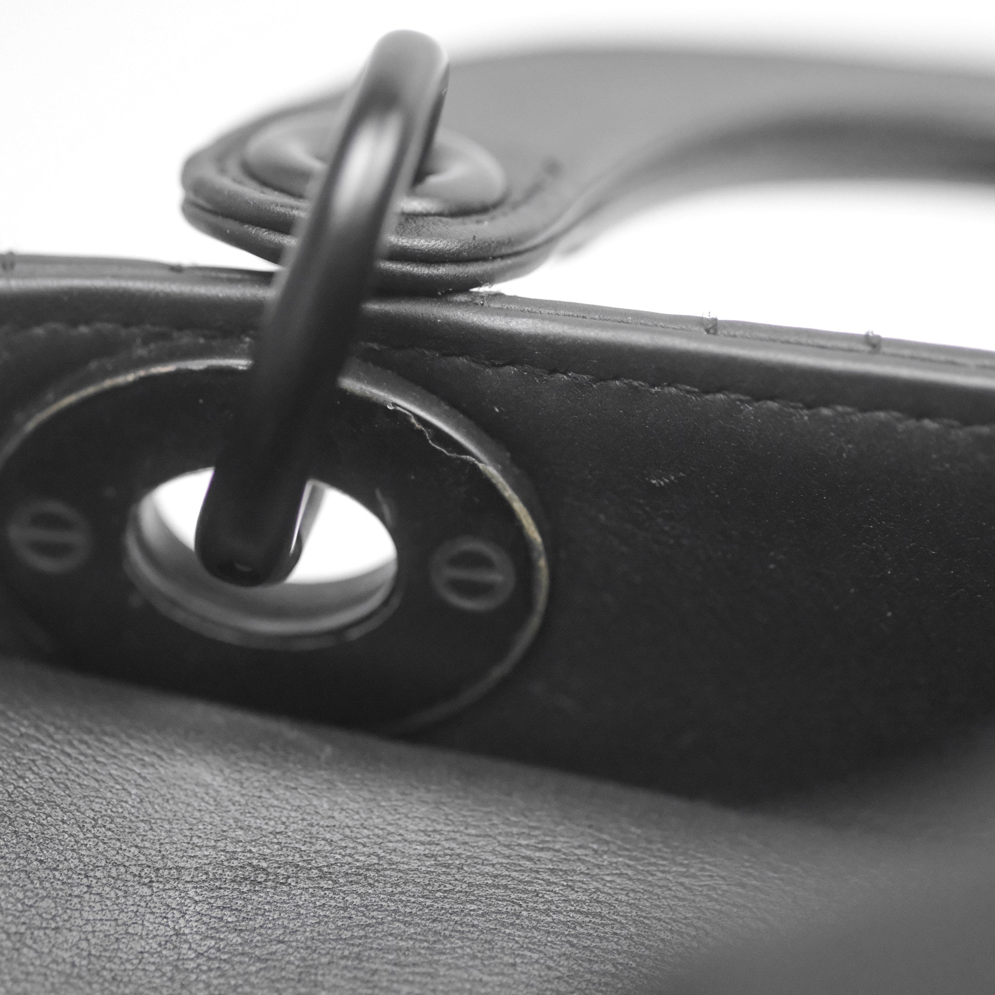 9.4/10 excellent to mint condition. Hairlines on handles. Minor dent on inner flap. Sign of use on interior.