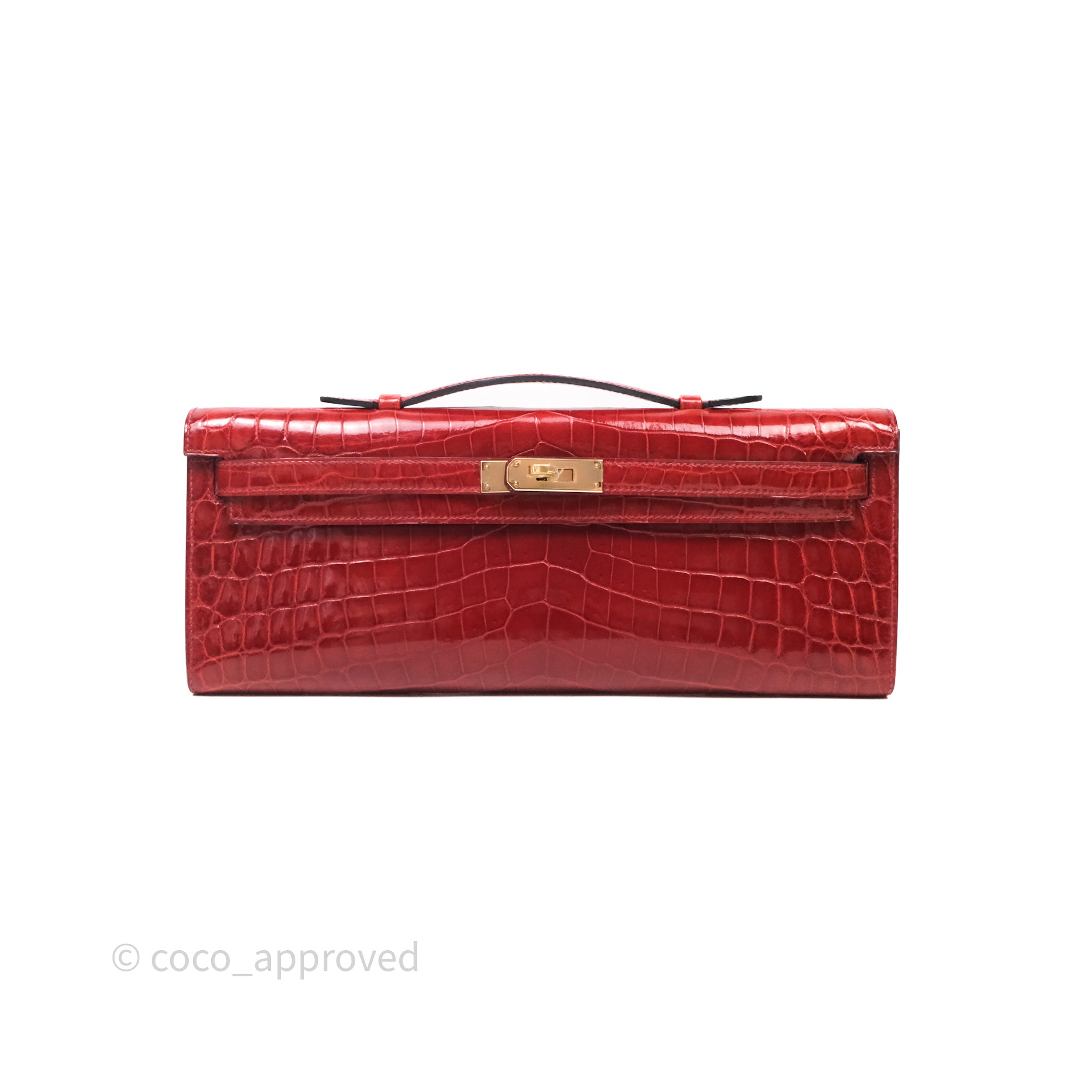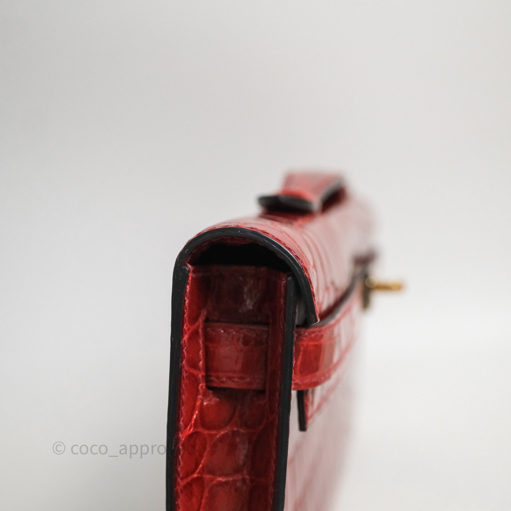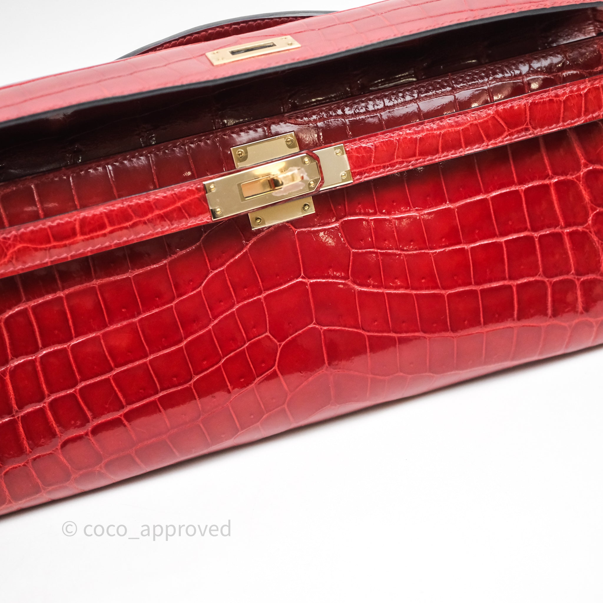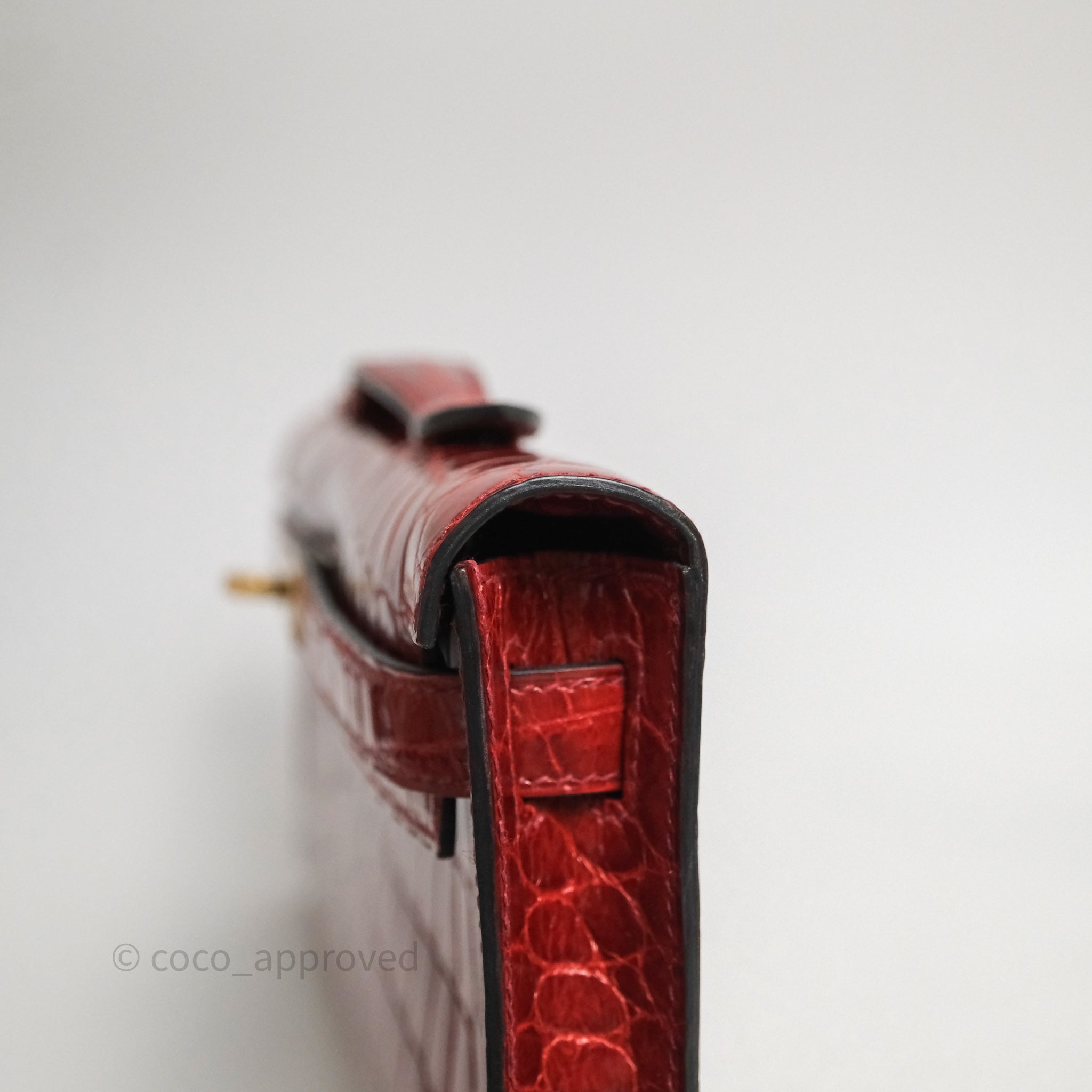 - DM/Email To Purchase - Hermes Kelly Cut Rouge H Shiny Niloticus Crocodile Gold Hardware