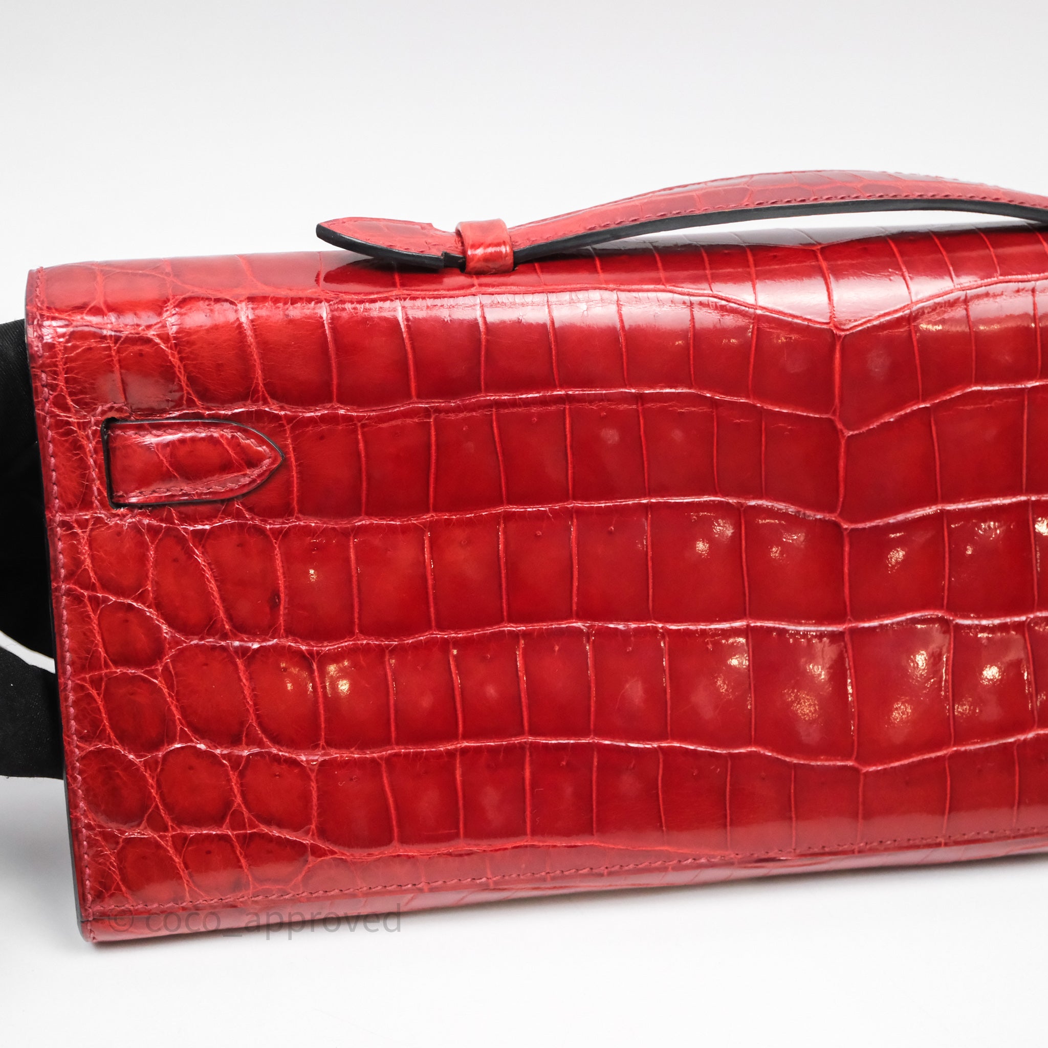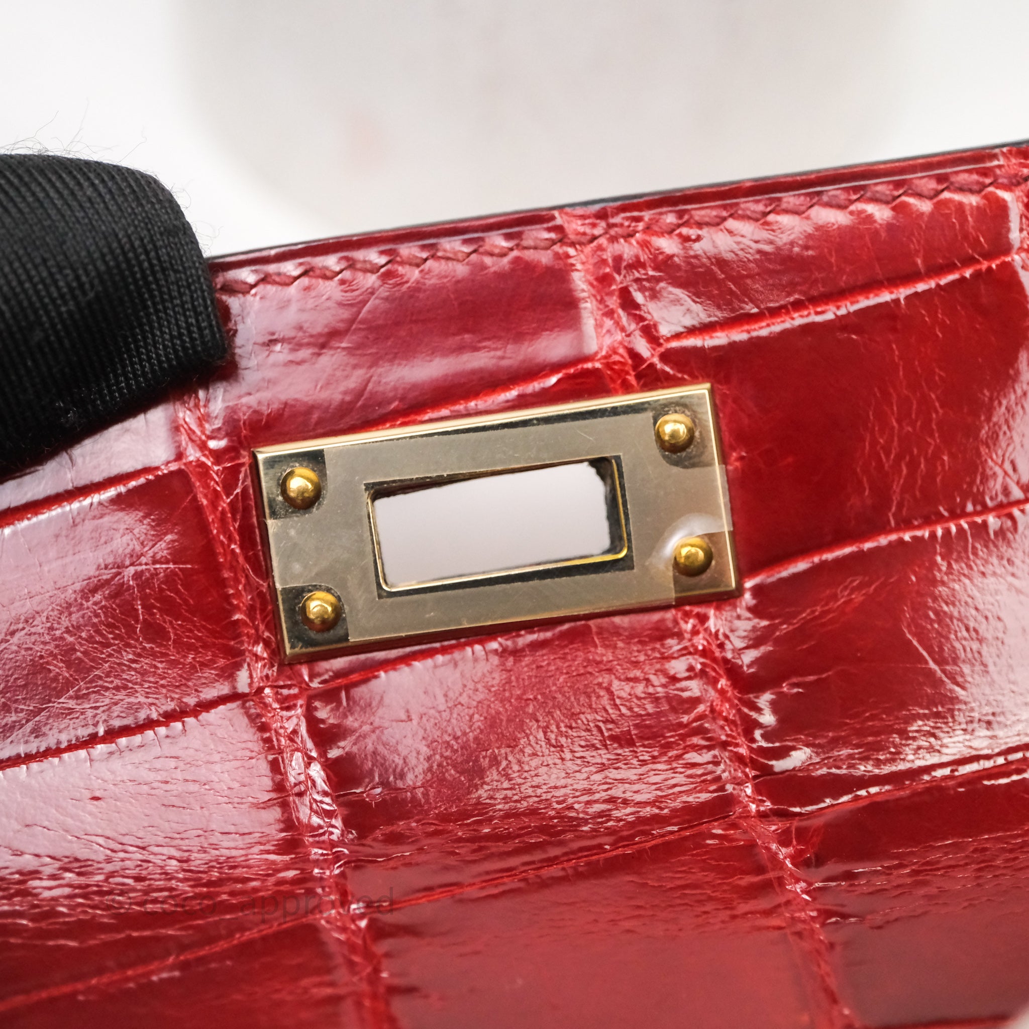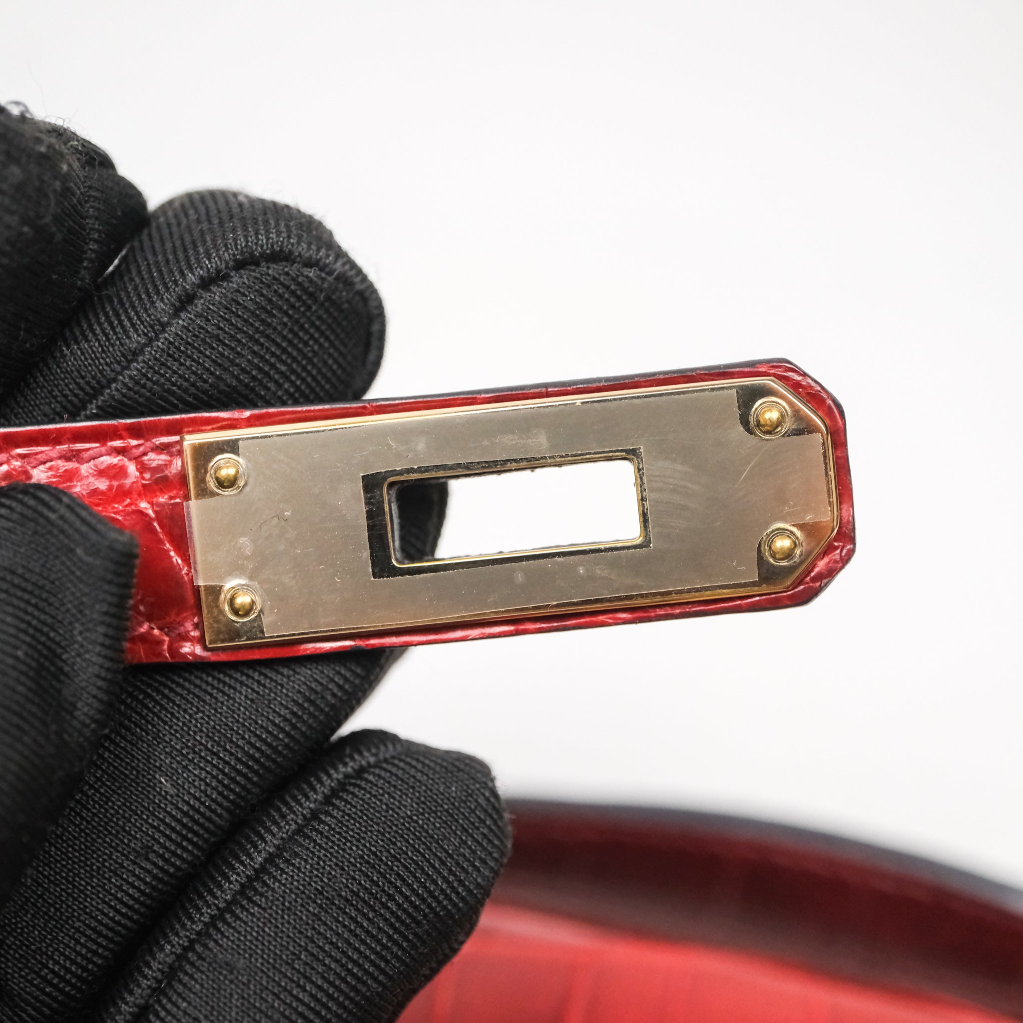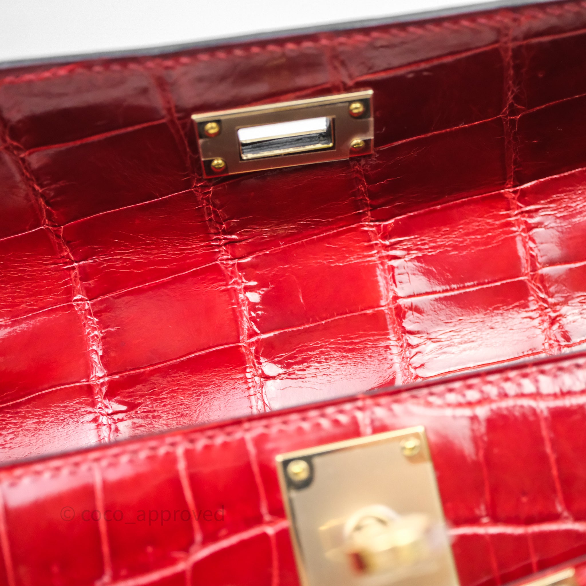 - DM/Email To Purchase - Hermes Kelly Cut Rouge H Shiny Niloticus Crocodile Gold Hardware