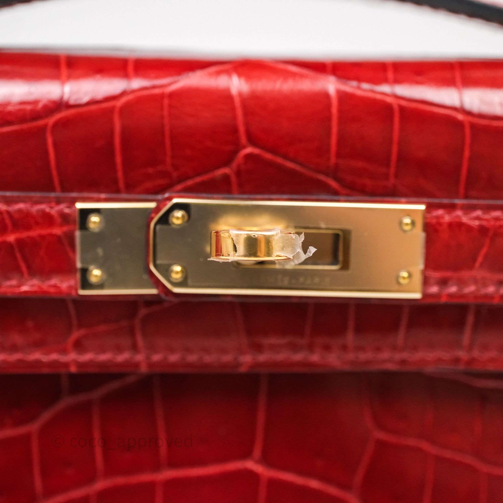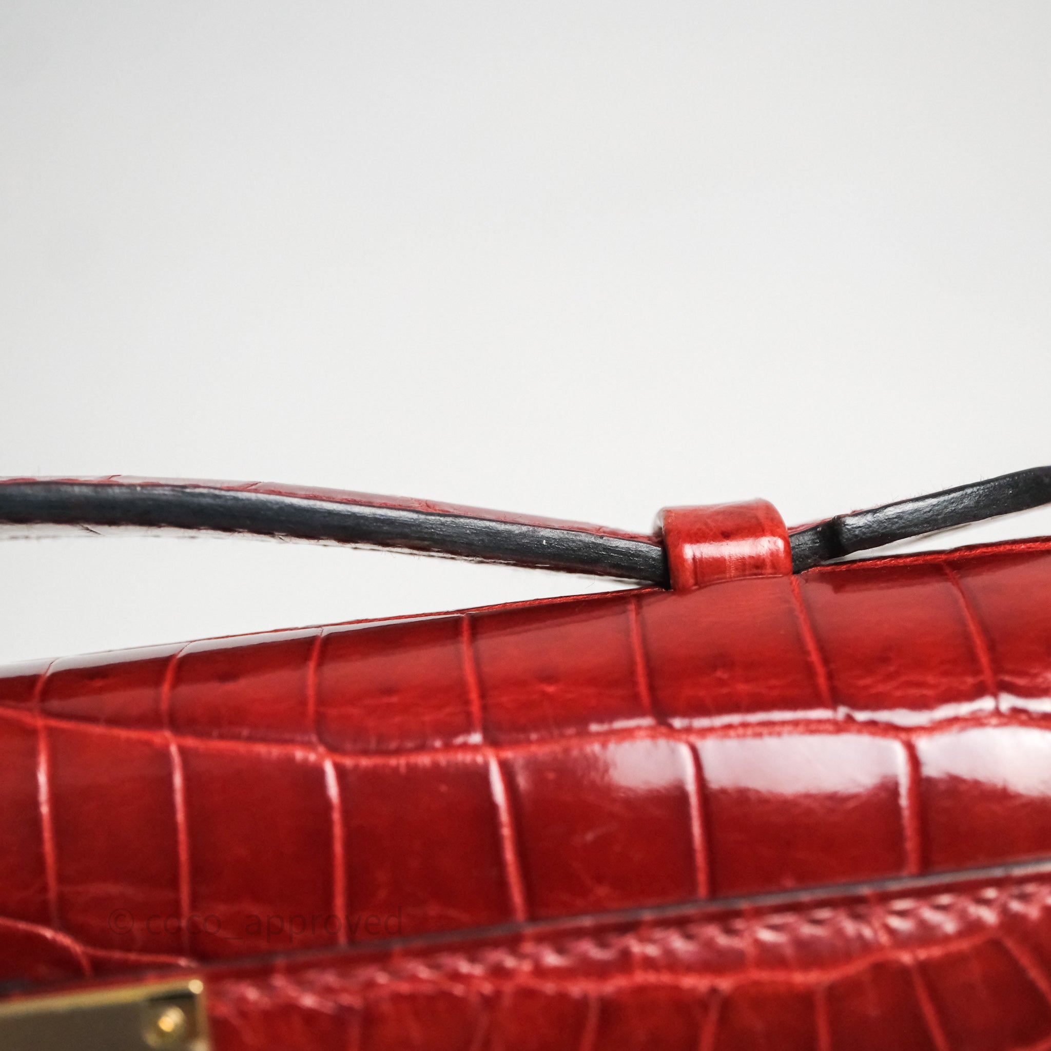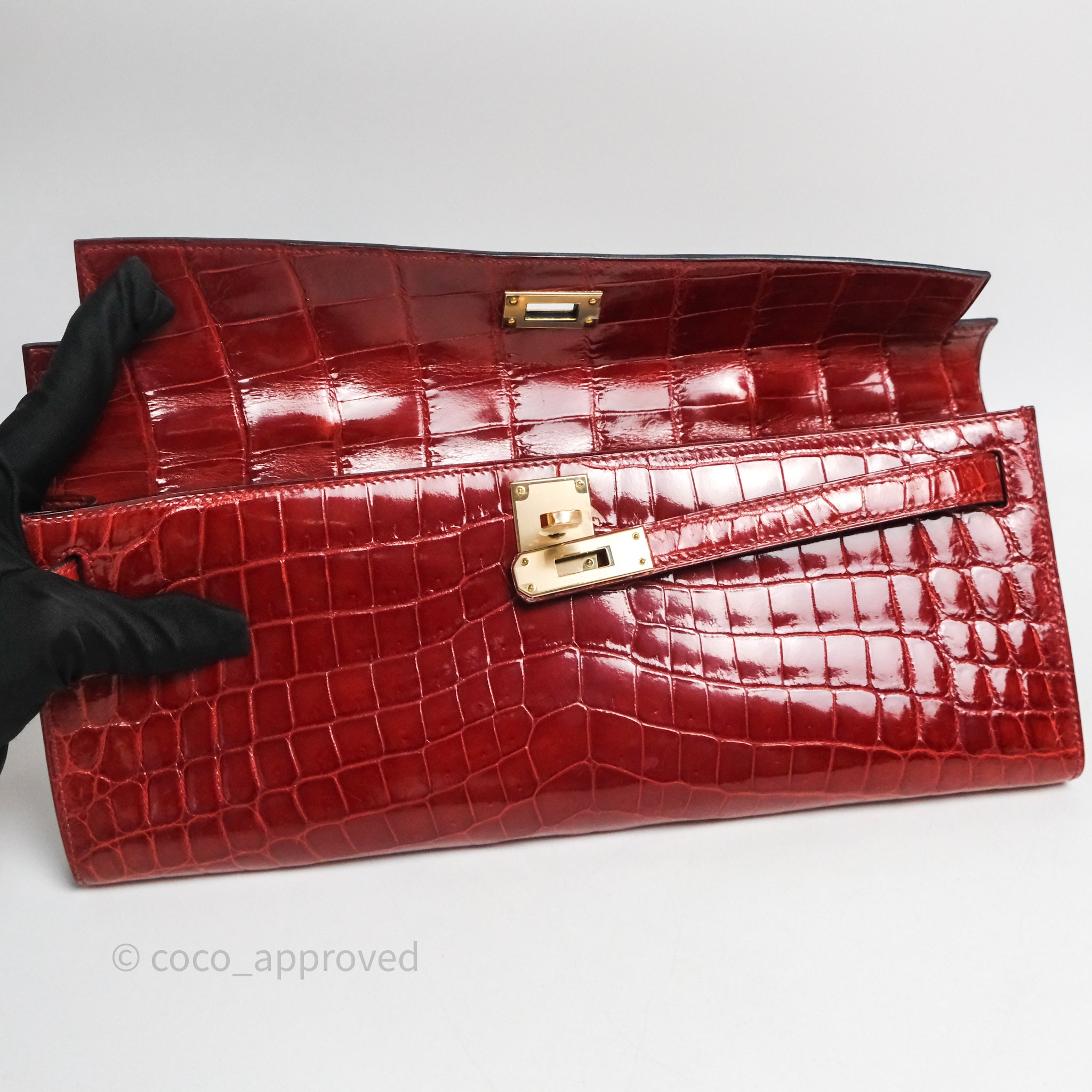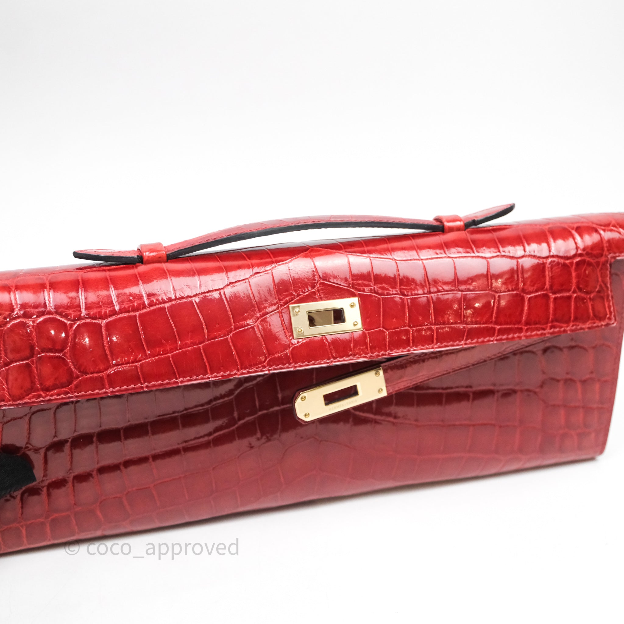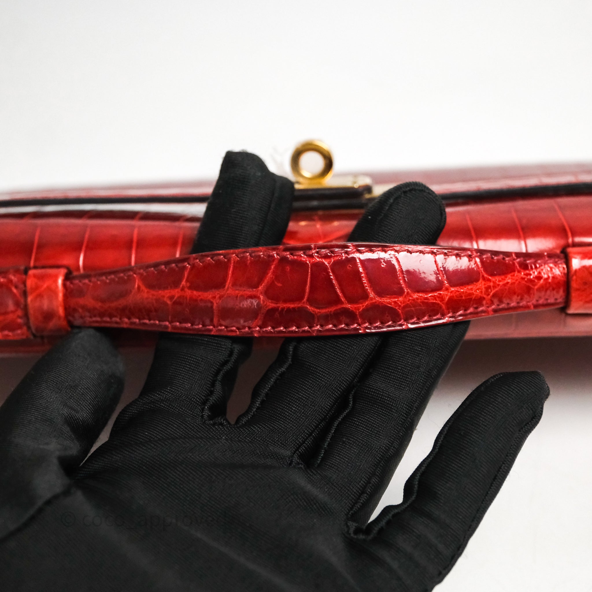 - DM/Email To Purchase - Hermes Kelly Cut Rouge H Shiny Niloticus Crocodile Gold Hardware